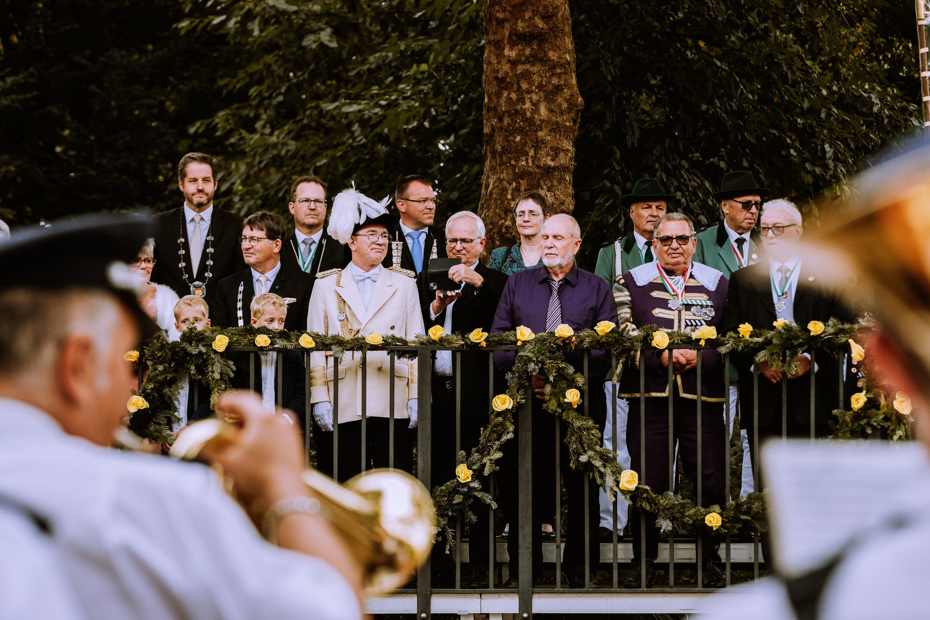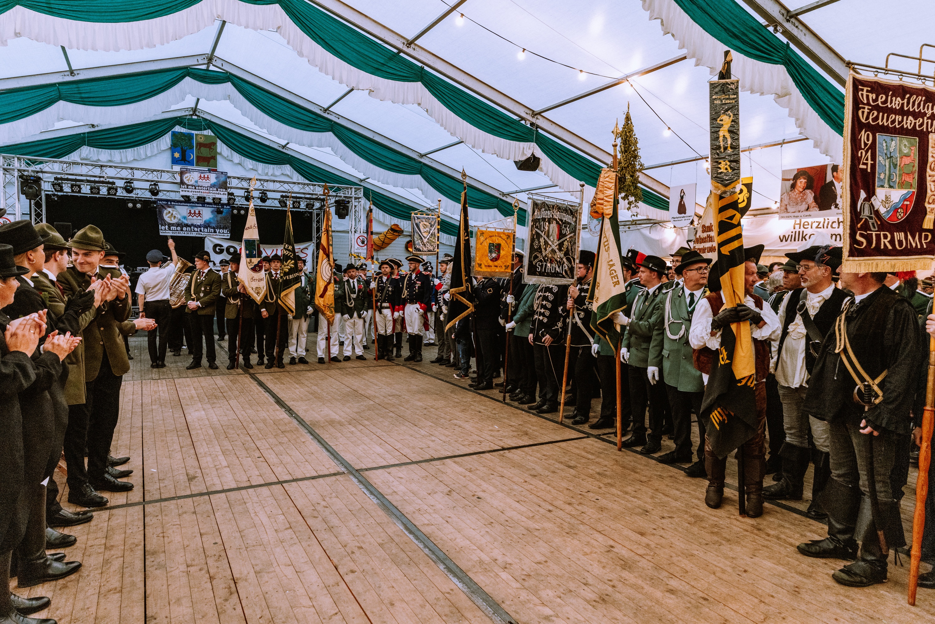 Wappen, Bühnenbild, Schützenbaum, Fahnen, Standarte