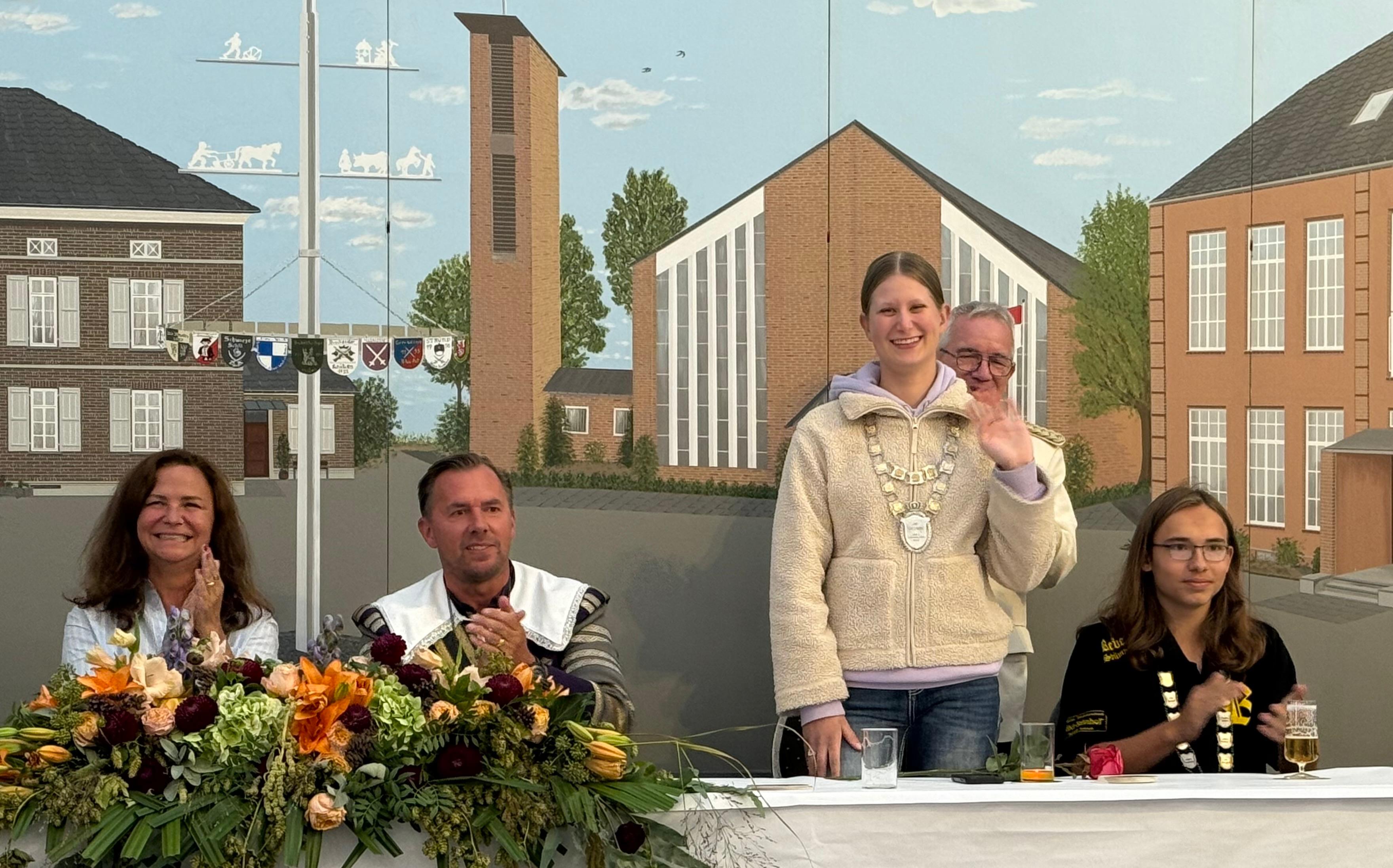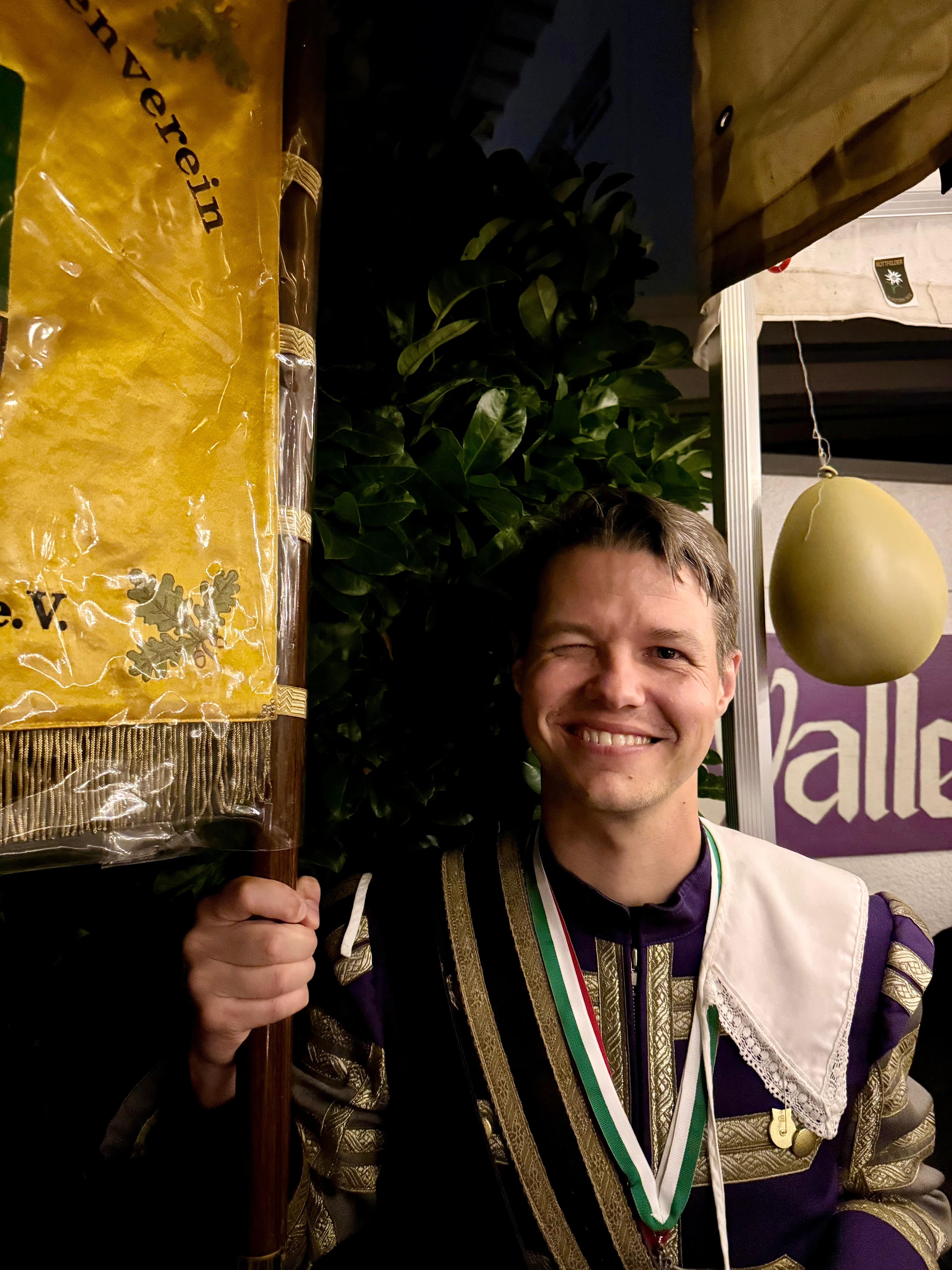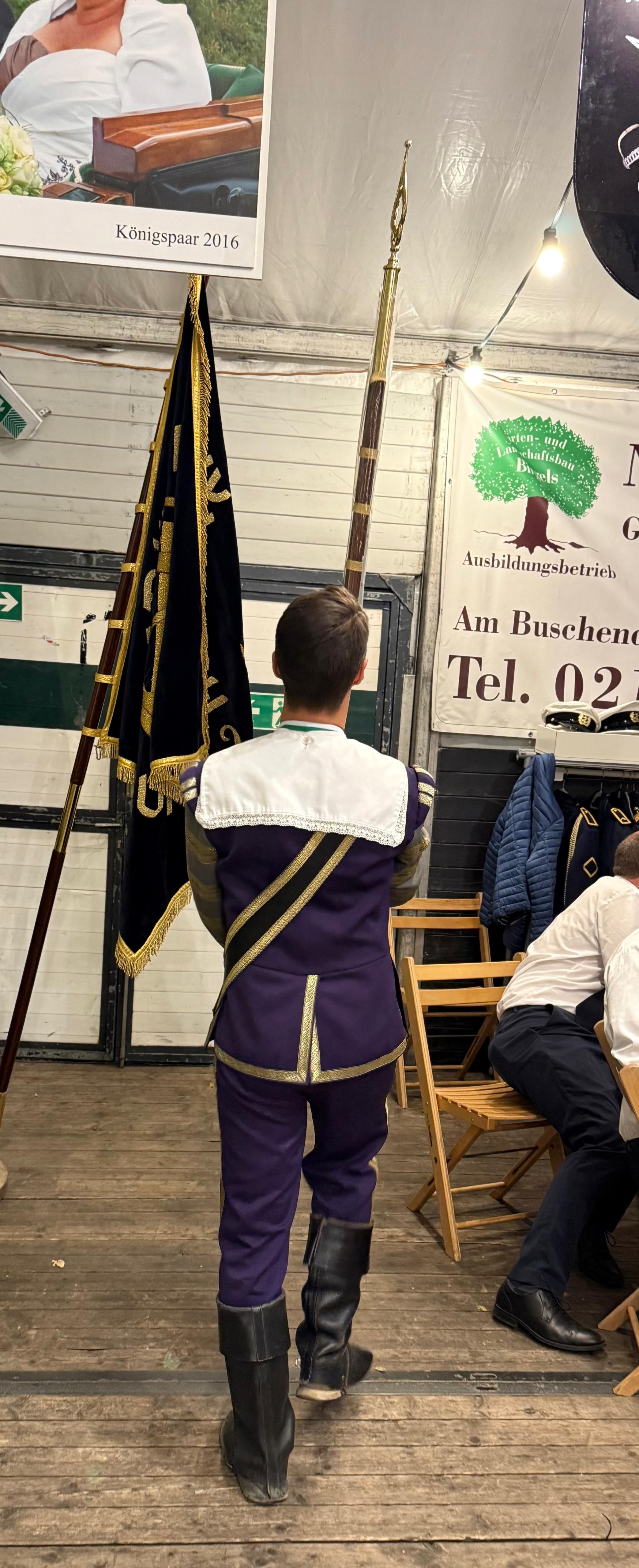 Wappen, Bühnenbild, Schützenbaum, Fahnen, Standarte