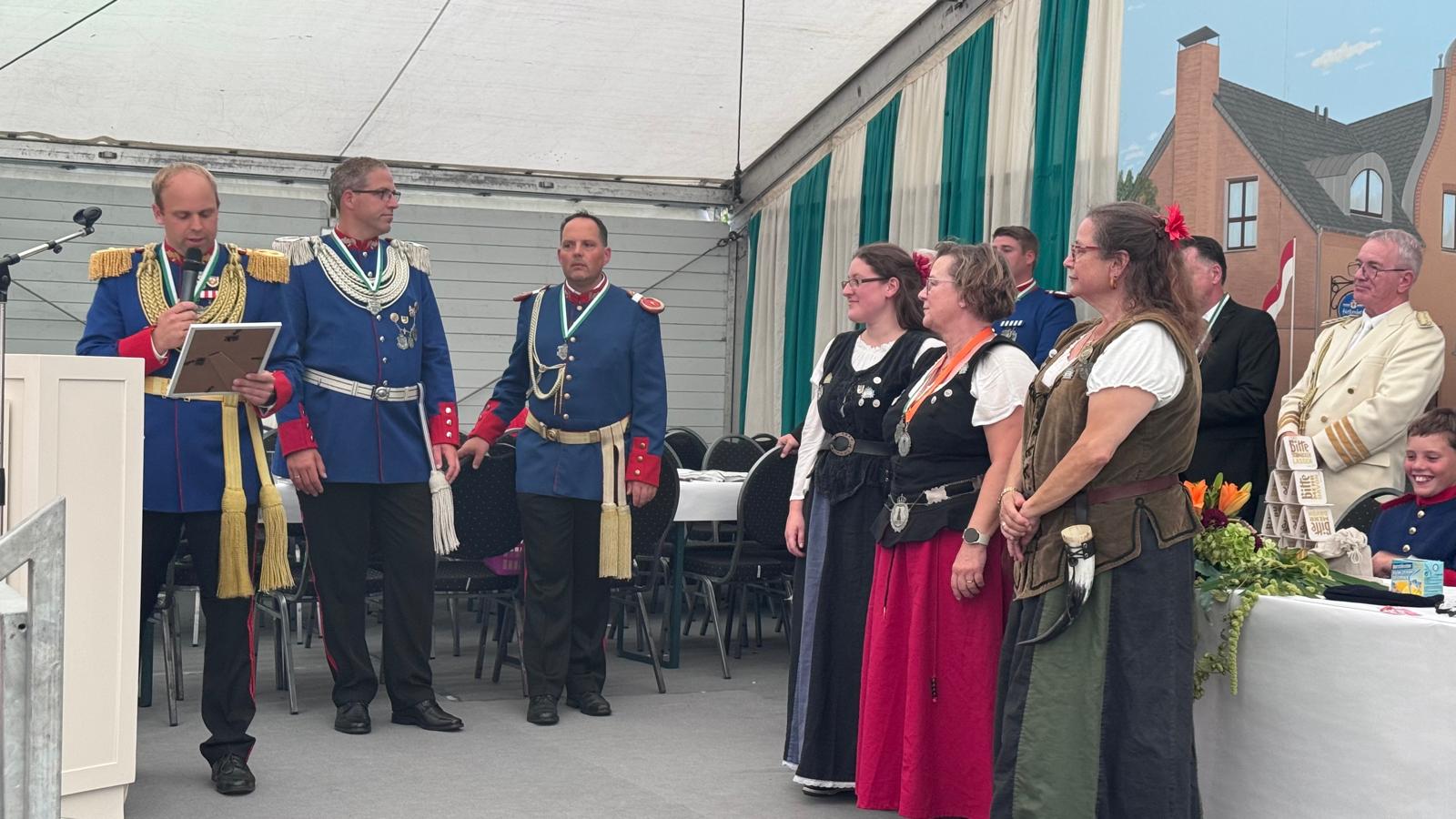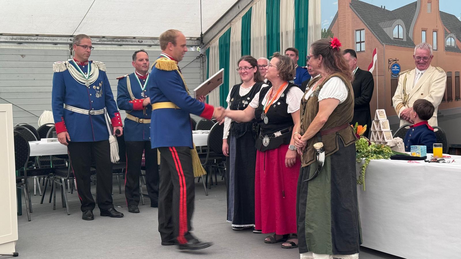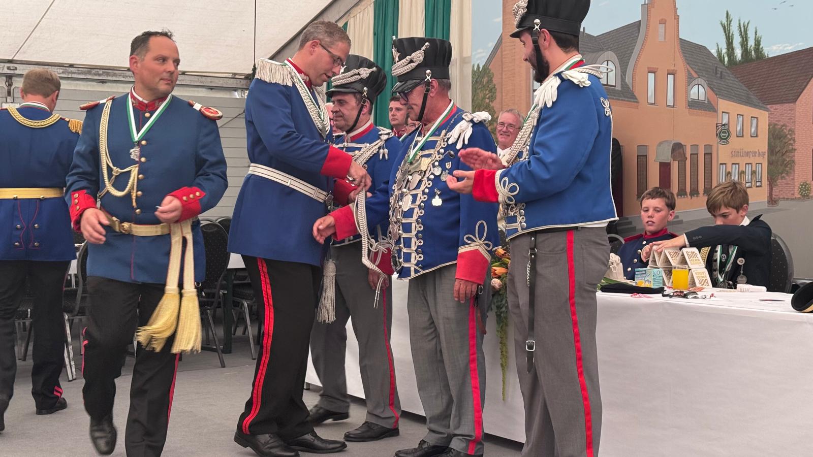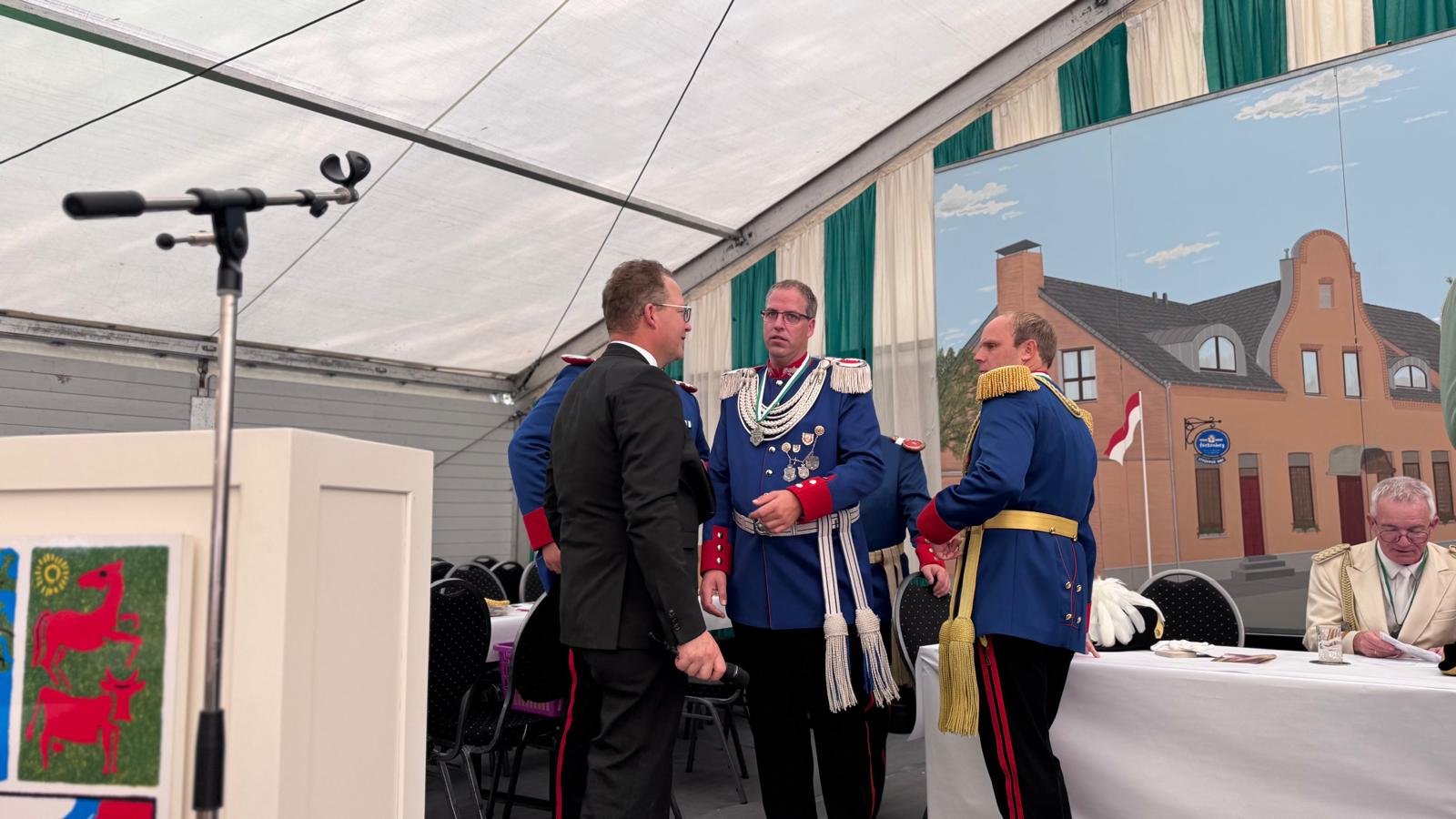 Wappen, Bühnenbild, Schützenbaum, Fahnen, Standarte