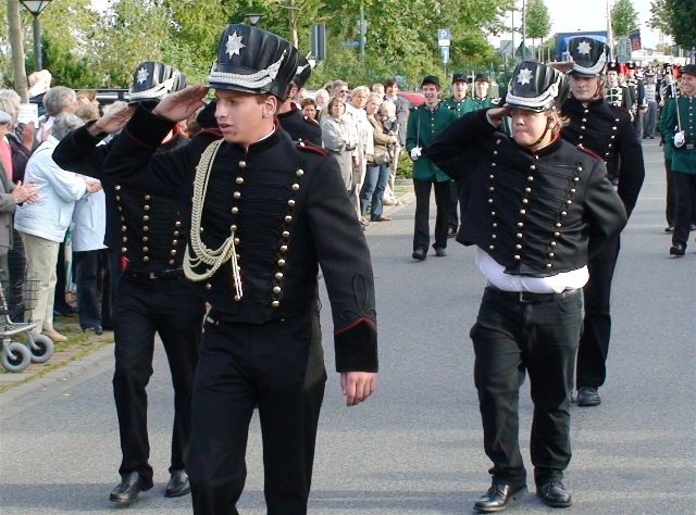 Wappen, Bühnenbild, Schützenbaum, Fahnen, Standarte