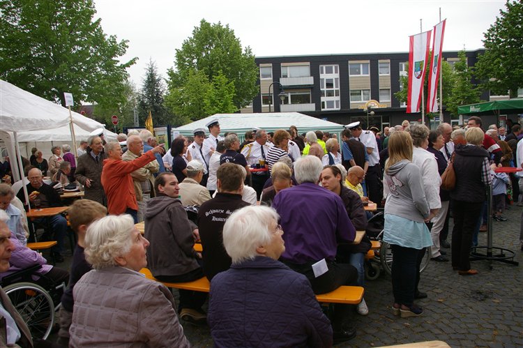 Wappen, Bühnenbild, Schützenbaum, Fahnen, Standarte