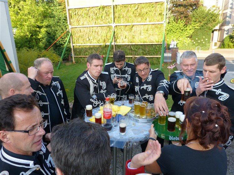 Wappen, Bühnenbild, Schützenbaum, Fahnen, Standarte