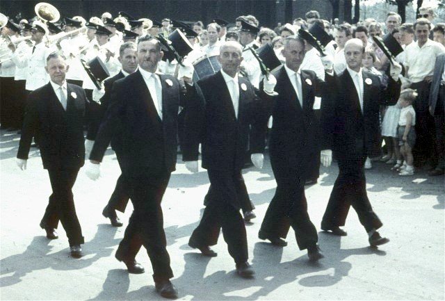 v.l.: Sepp Schmidhofer, Michael Dörper, Franz Eck, weiter 1 Reihe: Karl Steinfort, Heinz Kraus, Gottfried Webers, Karl-Wilhelm Moll, Heinz Webers, Hans Webers, Hans Steinfort