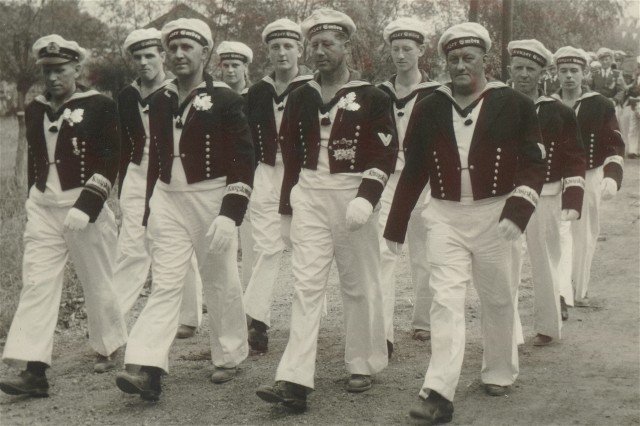 von links: Stephan Stirken, Johann Wolf, Peter Nelsen, Paul Bühning, Theo Baumeister, Parreith?, Jakob Steinfels