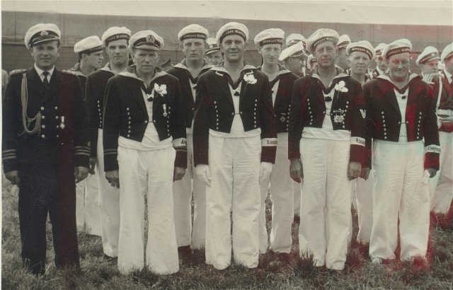 von links: Bernhard Fucken, Peter Schrotz, Karl-Wilhelm Eller, Hans Hansen, Theo Broecke, Franz (Tilly) Stirken, Hermann Platen, Franz Stirken, Hans Leiers