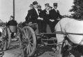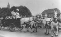 auf dem Kutschbock: Mundschenk Ludwig Bommersim Bildhintergrund: der Turm der Strümper Kirche Amandus & Vedastus