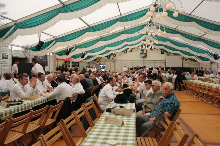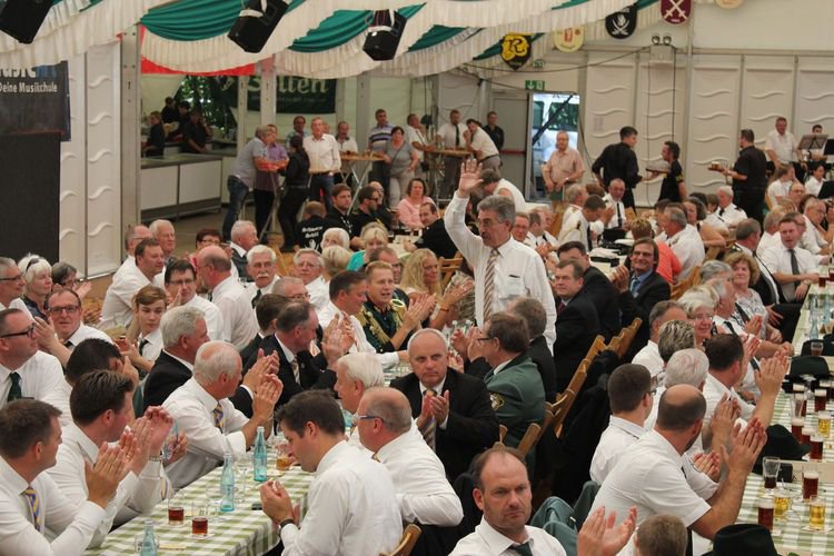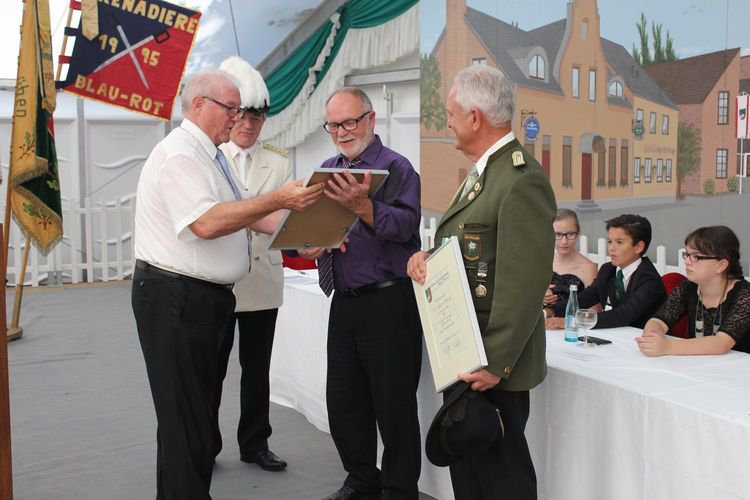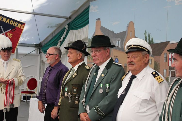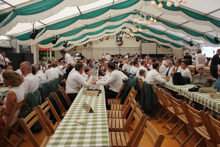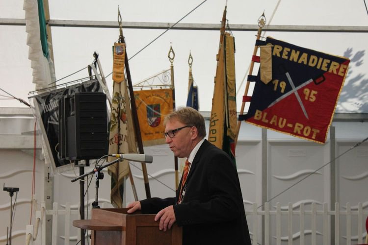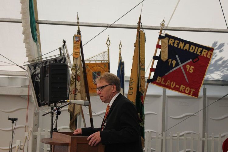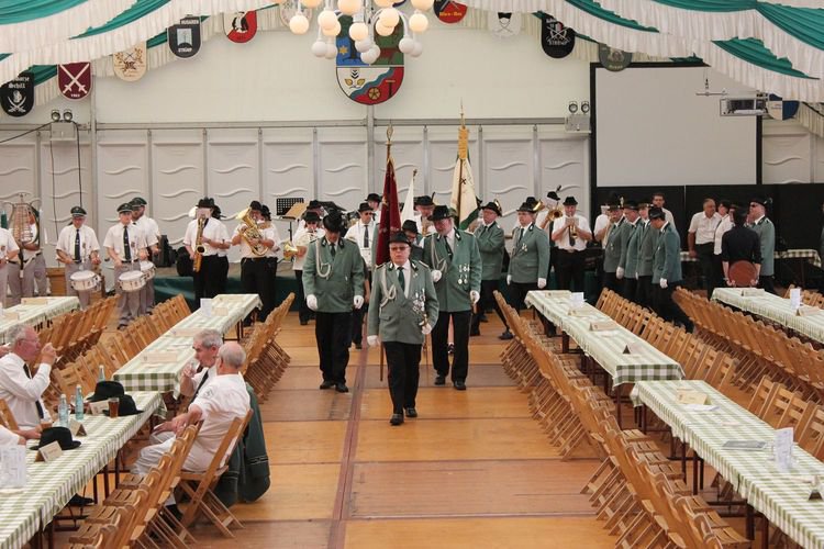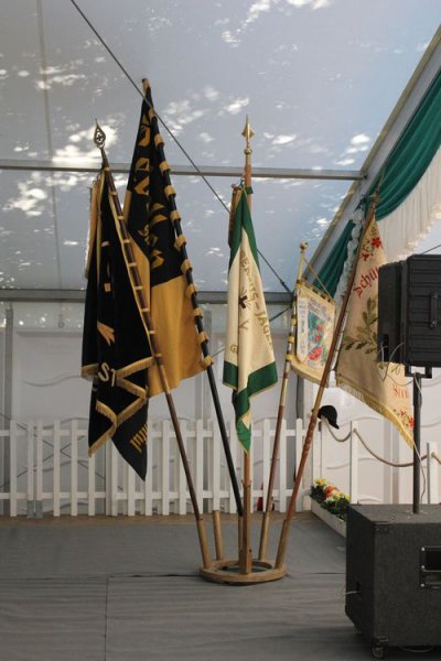 Wappen, Bühnenbild, Schützenbaum, Fahnen, Standarte