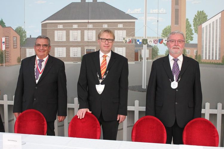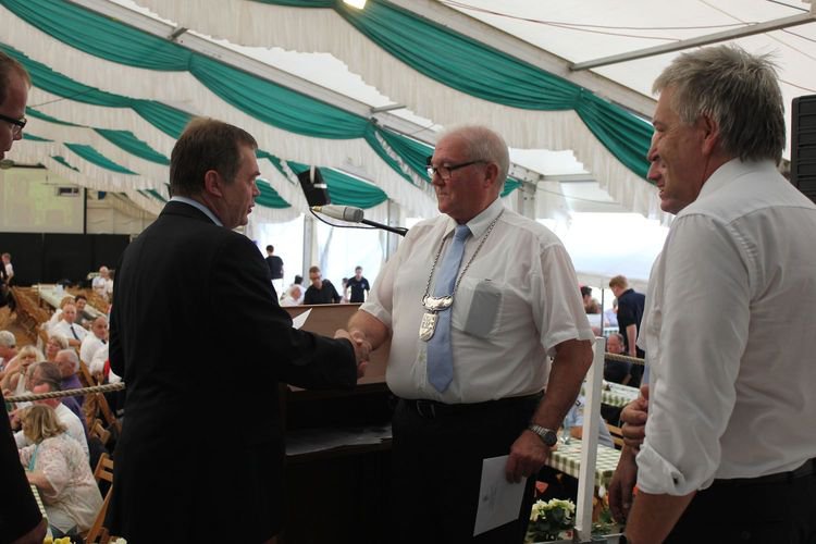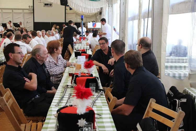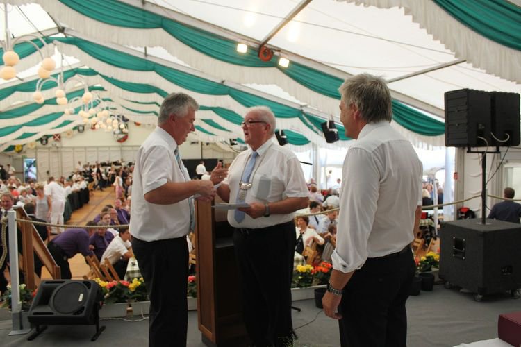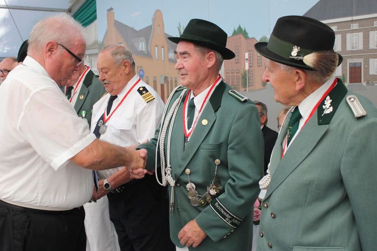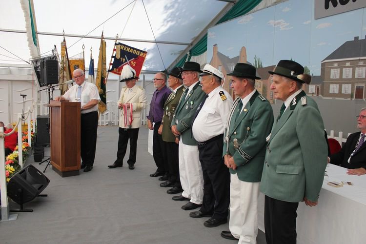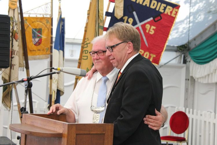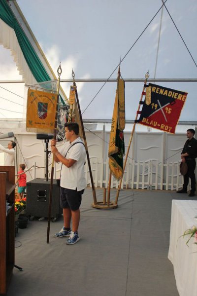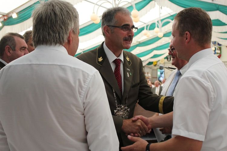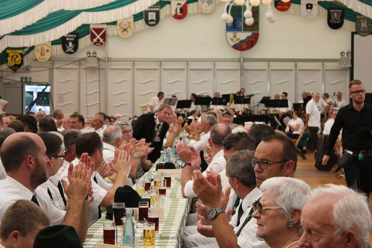 Wappen, Bühnenbild, Schützenbaum, Fahnen, Standarte