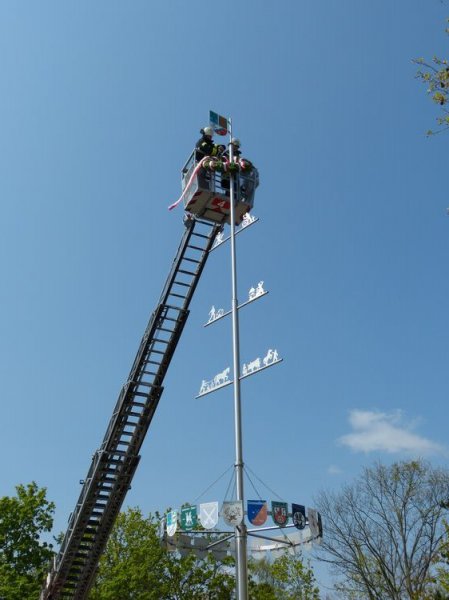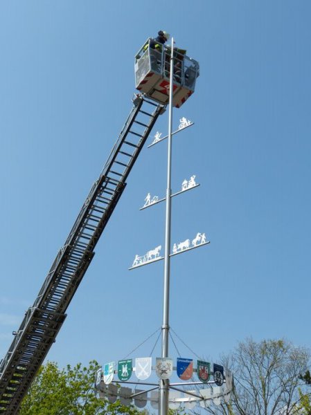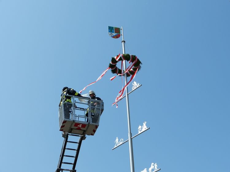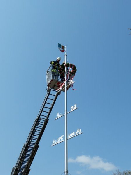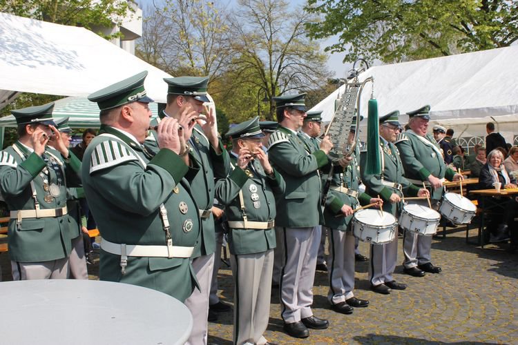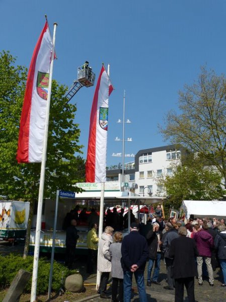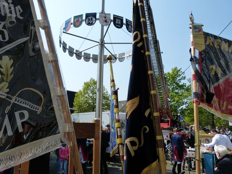 Wappen, Bühnenbild, Schützenbaum, Fahnen, Standarte