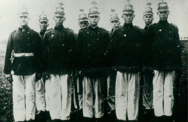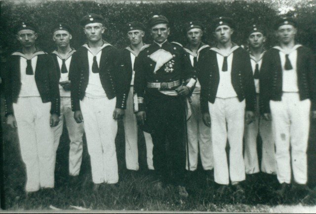 Schill'sche Offiziere 1925 oder 1929vordere Reihe von links: Hubert Platen, Gottfried Webers, Josef Radmacher, Max Poligowski, Bruno Poligowski, Johann Radmacher (vorne)