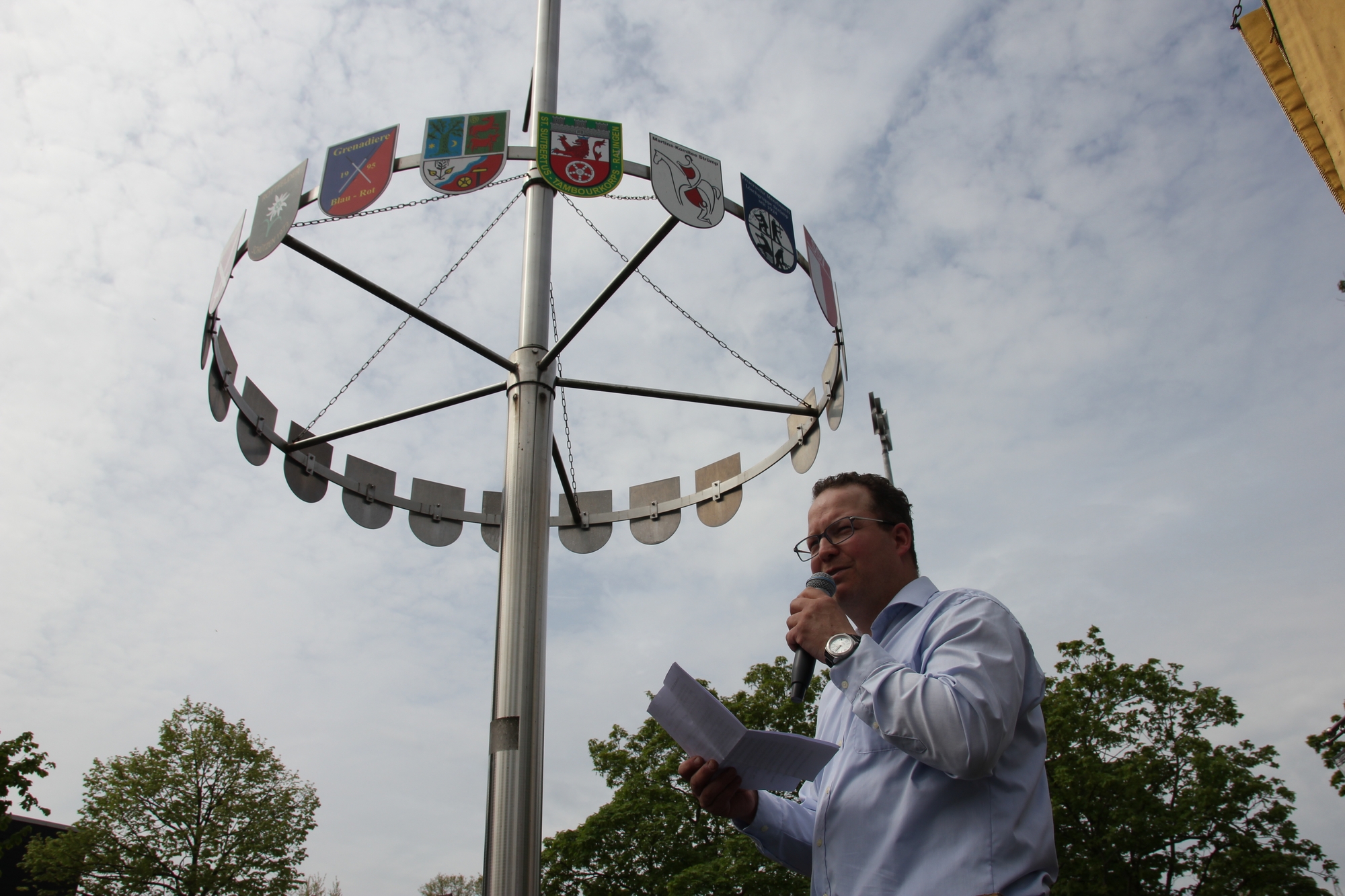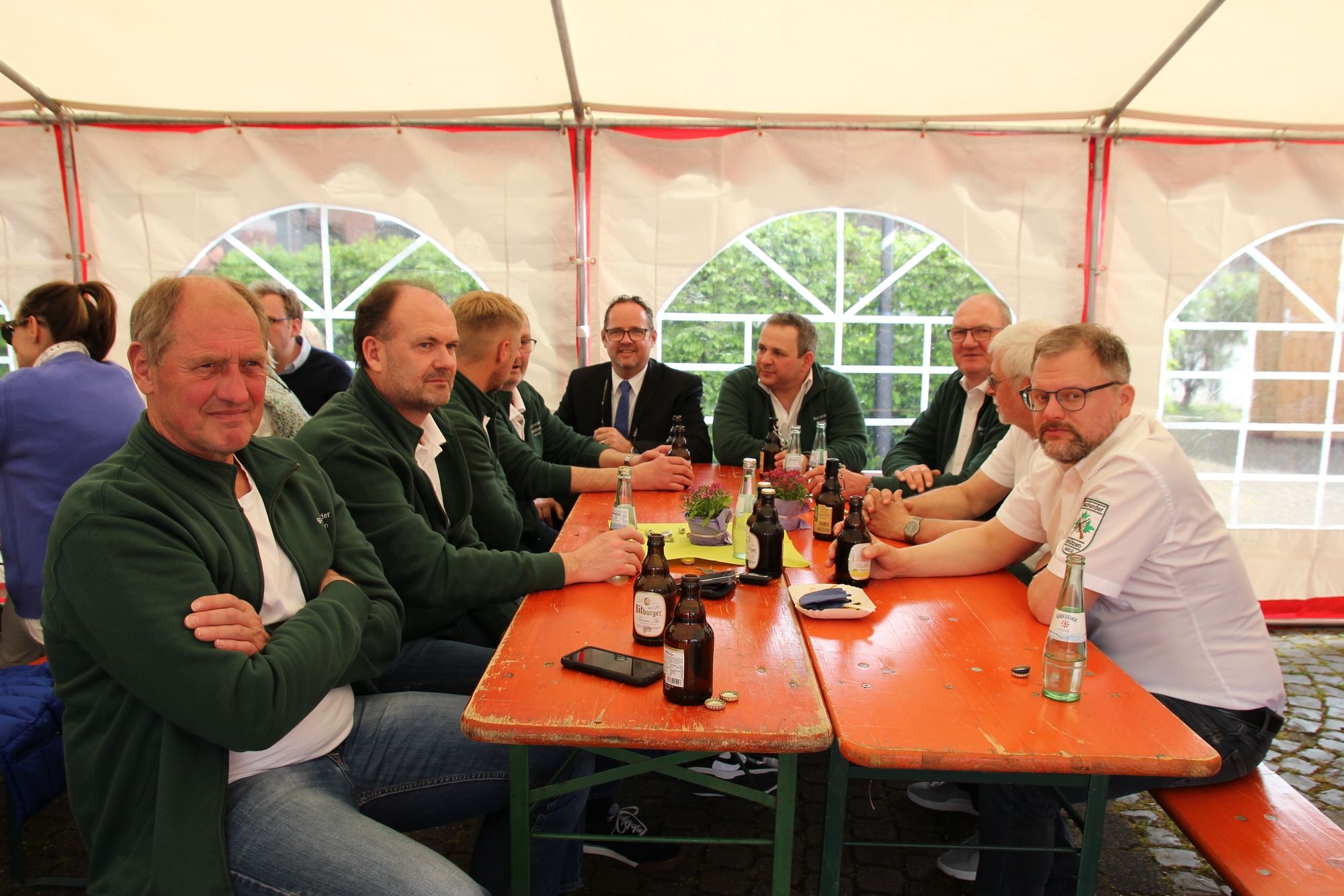 Wappen, Bühnenbild, Schützenbaum, Fahnen, Standarte
