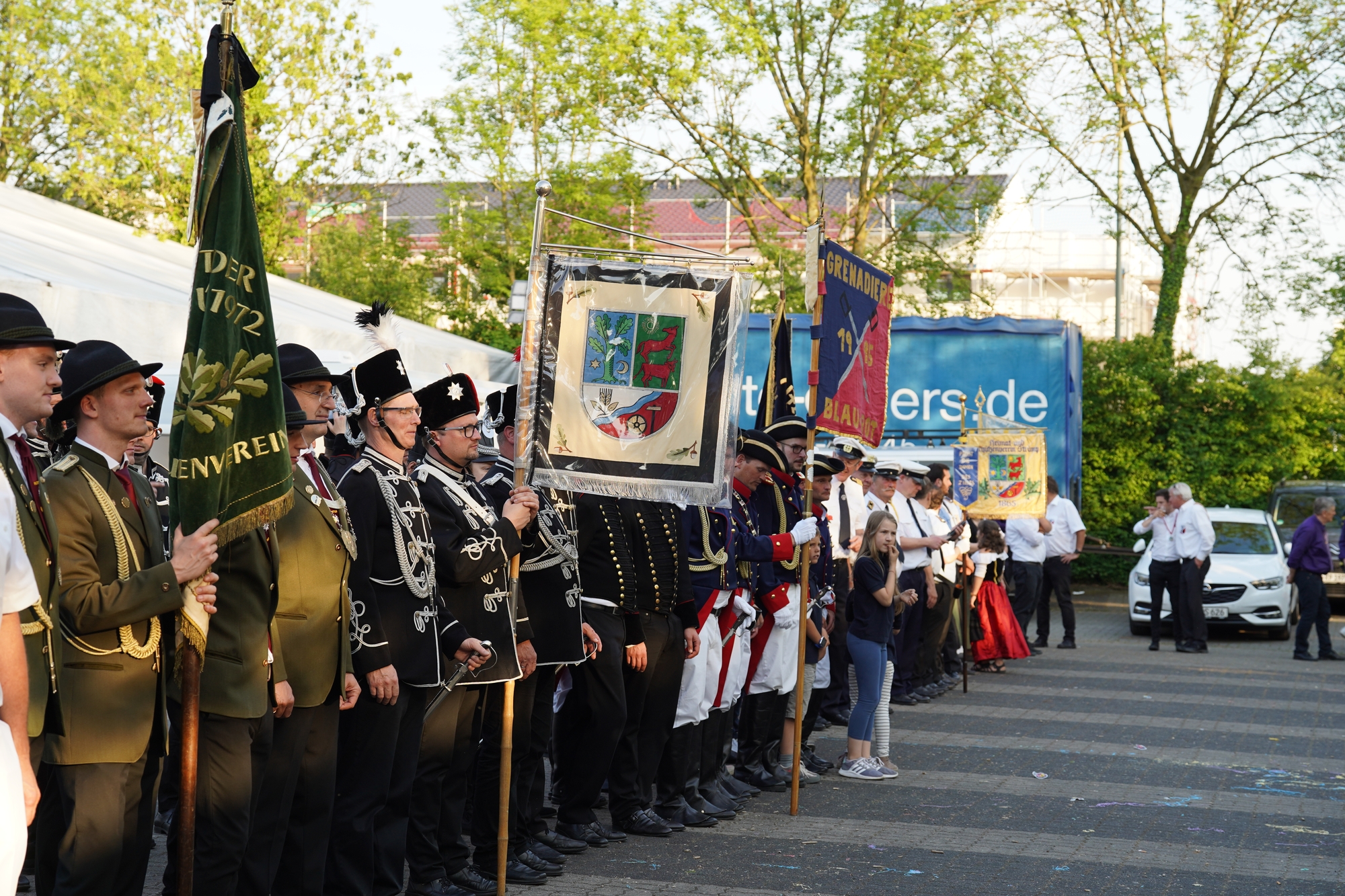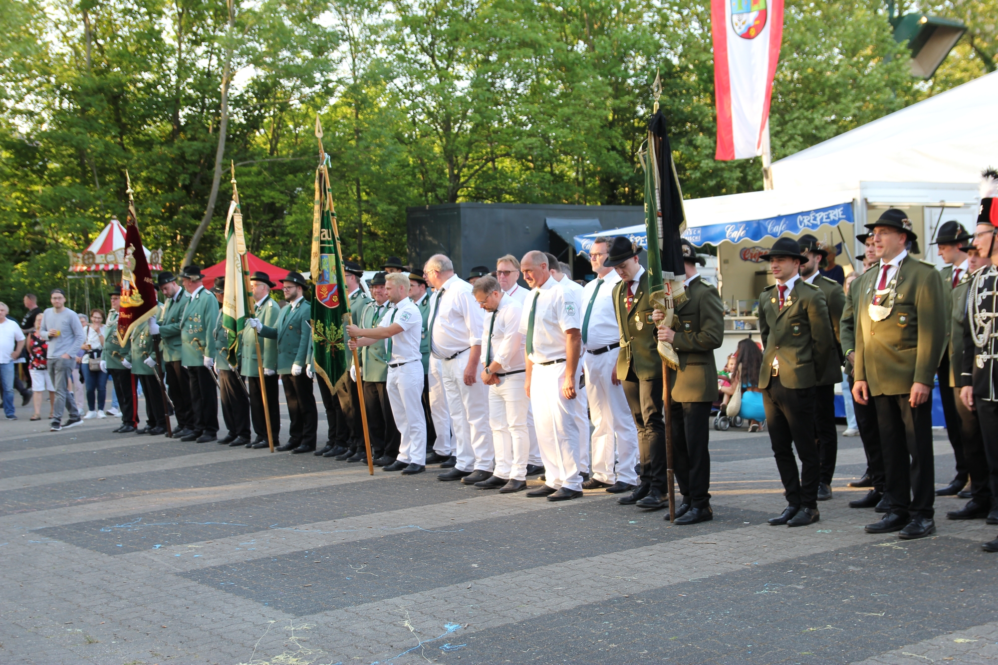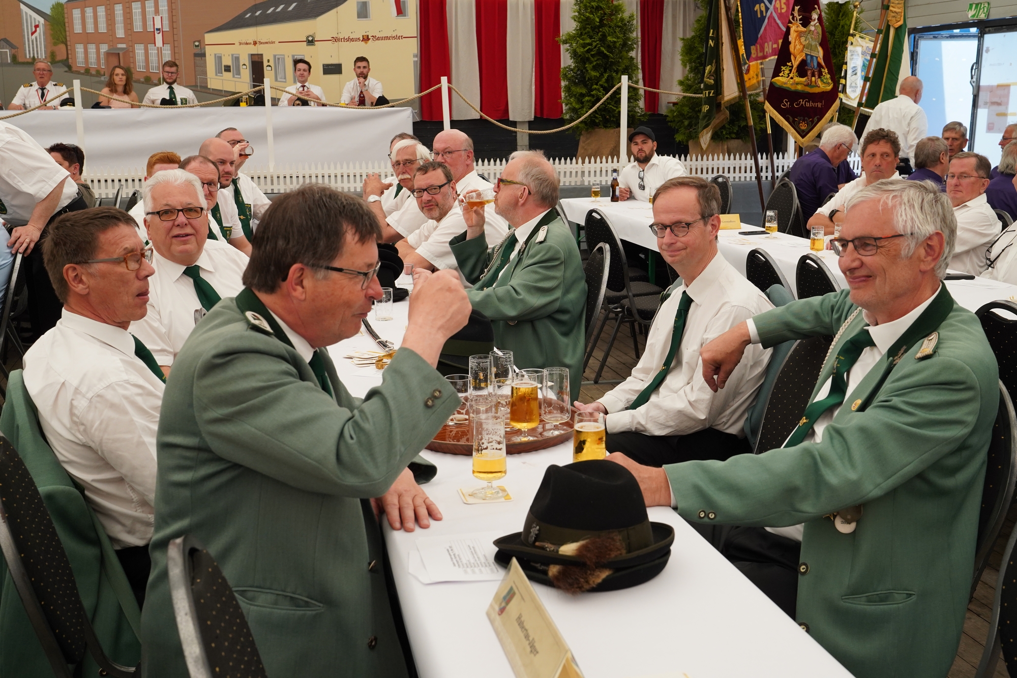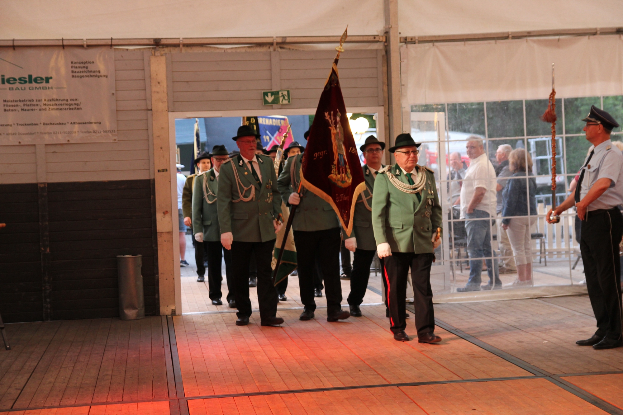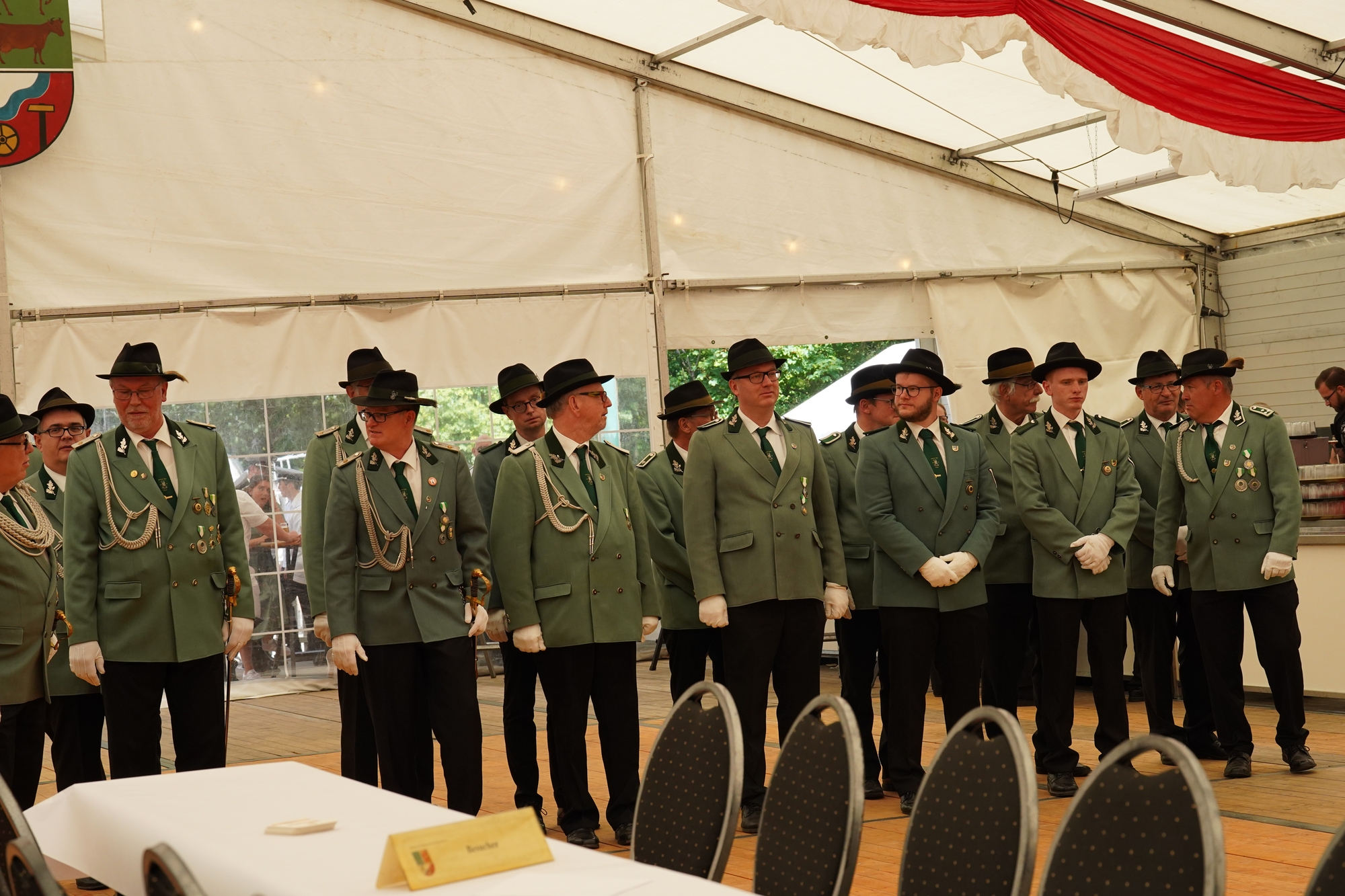 Wappen, Bühnenbild, Schützenbaum, Fahnen, Standarte