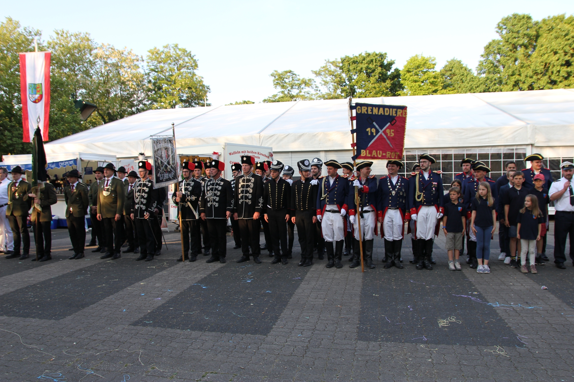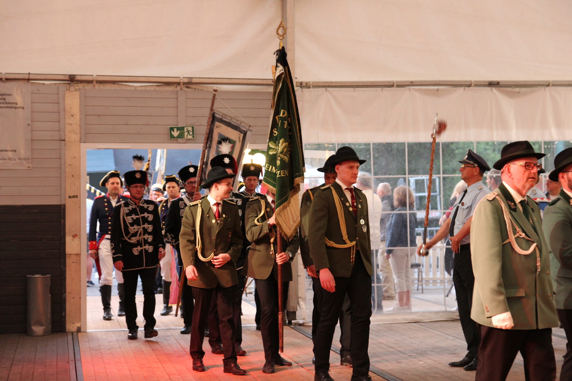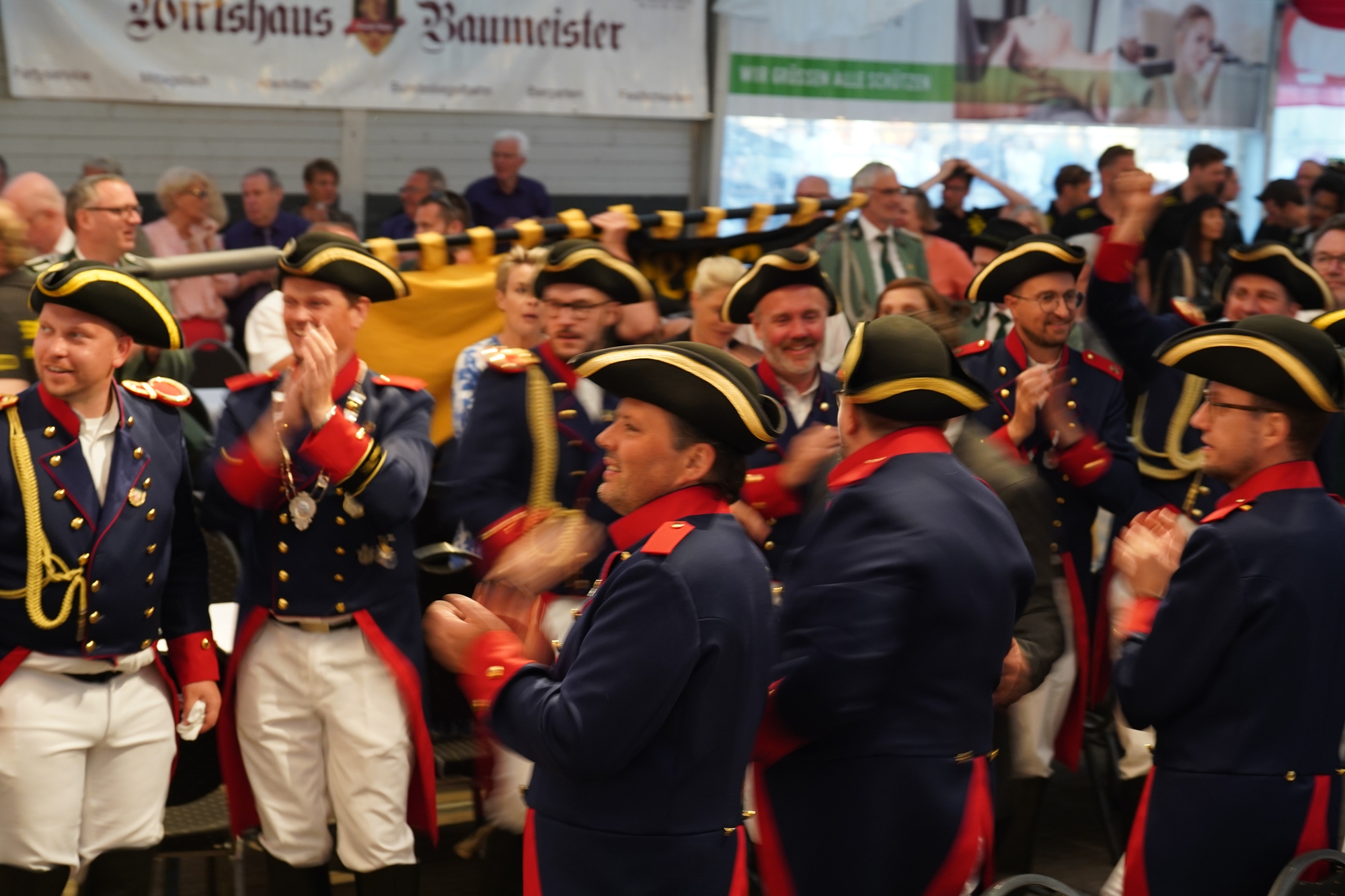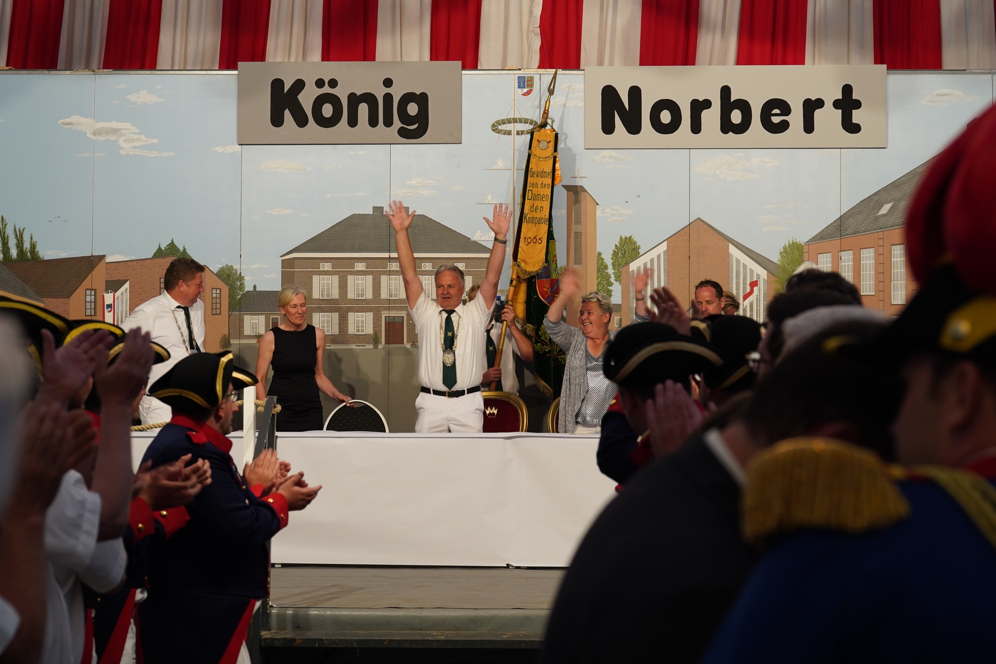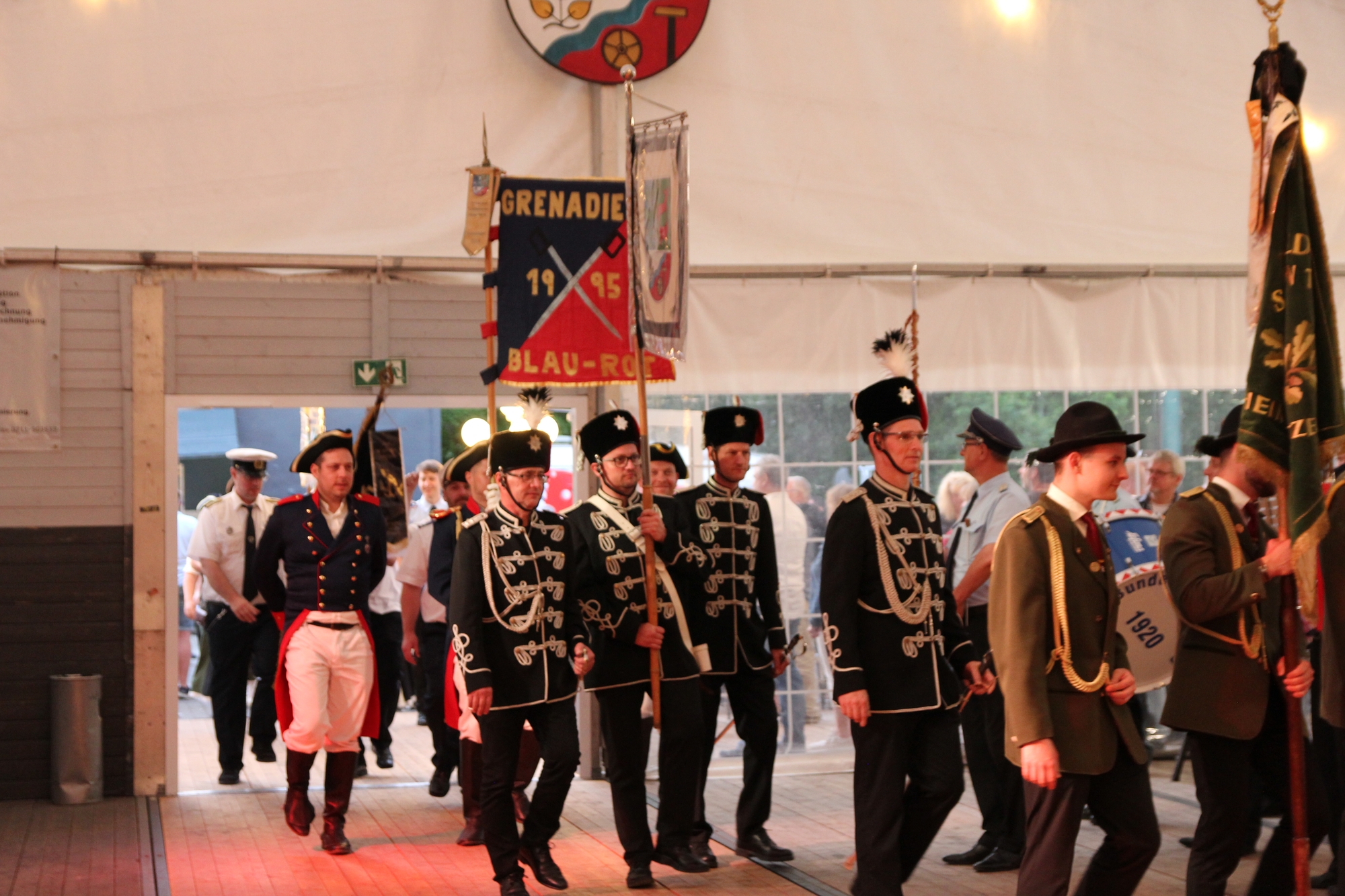 Wappen, Bühnenbild, Schützenbaum, Fahnen, Standarte
