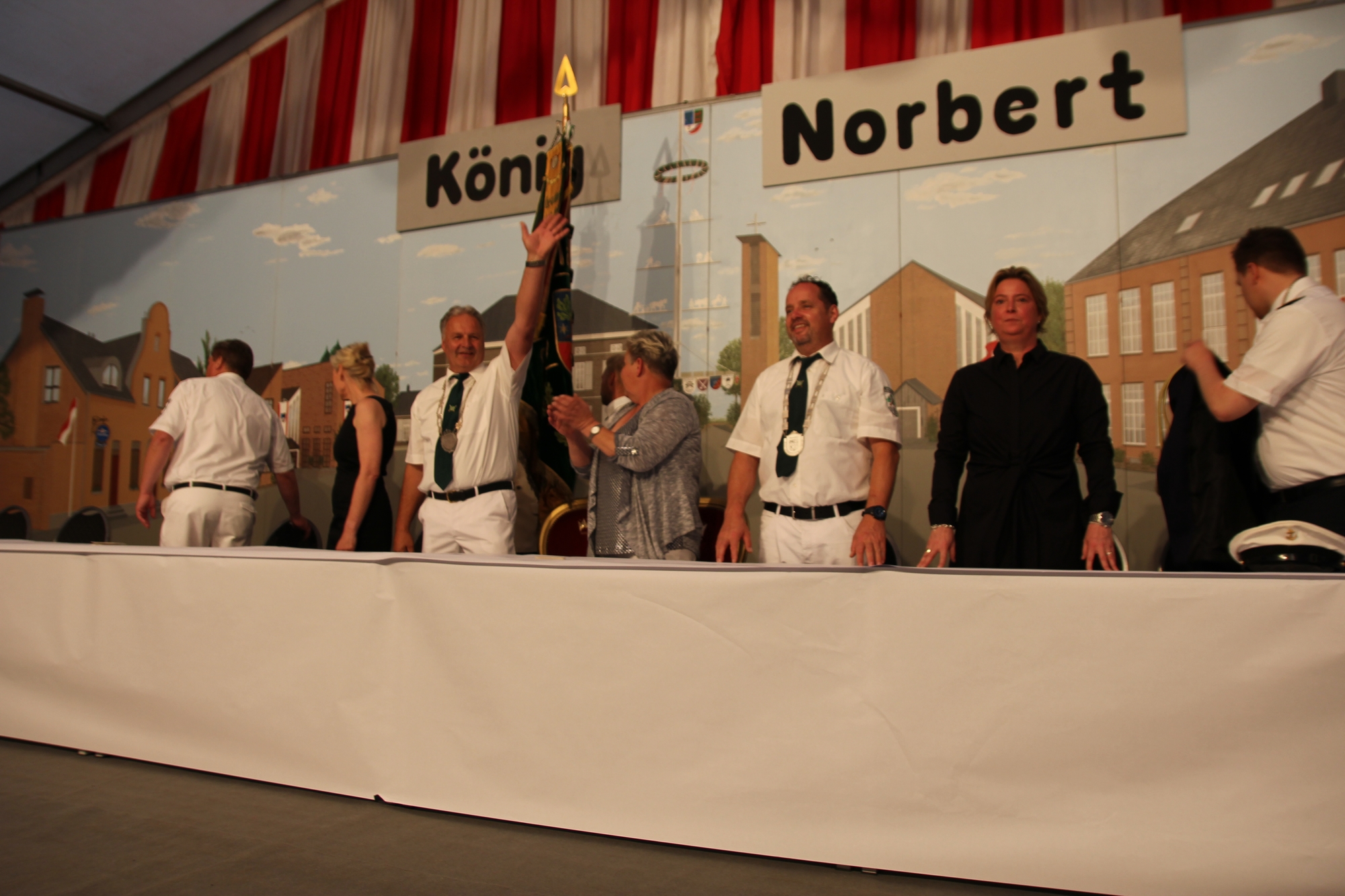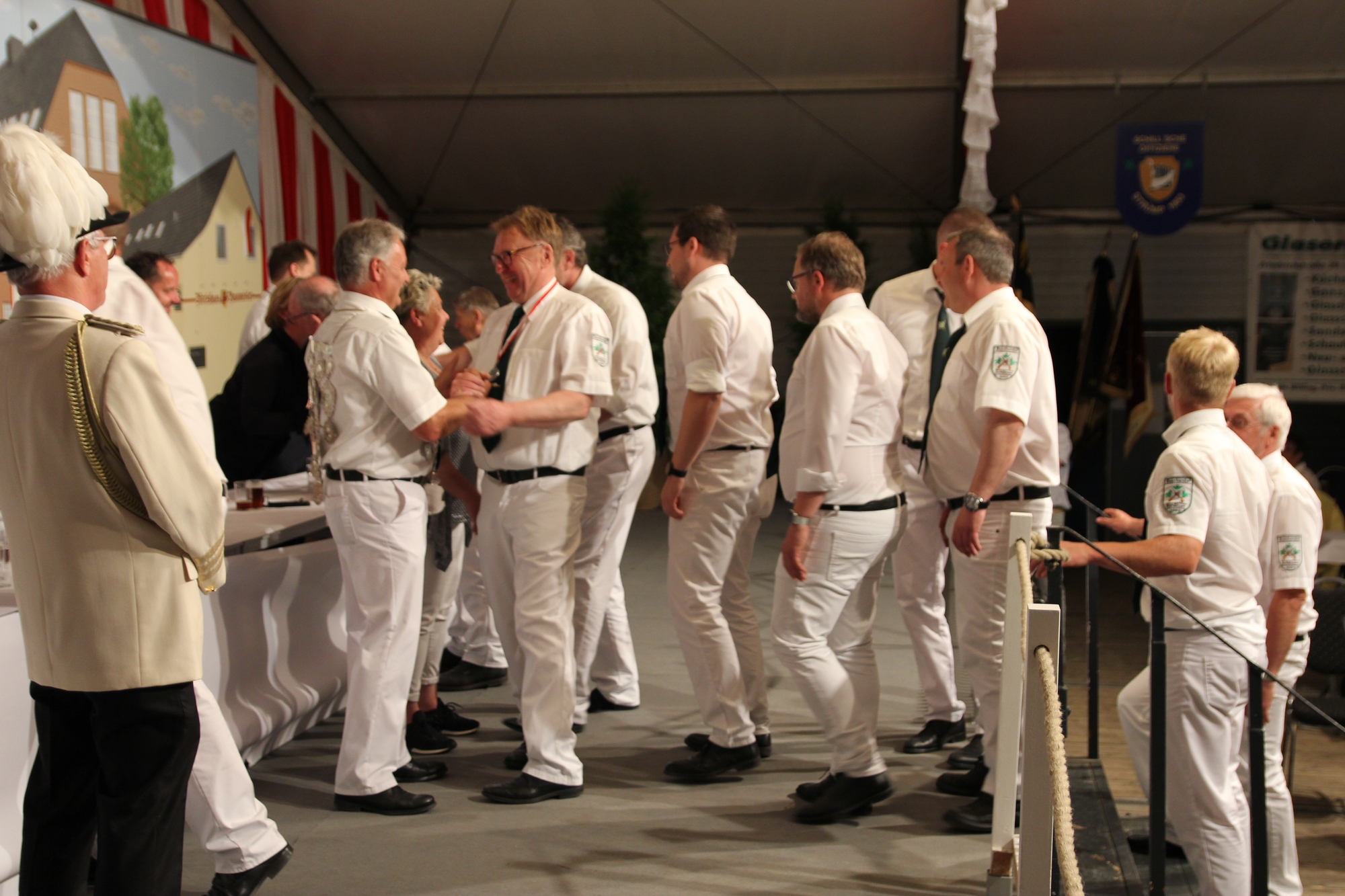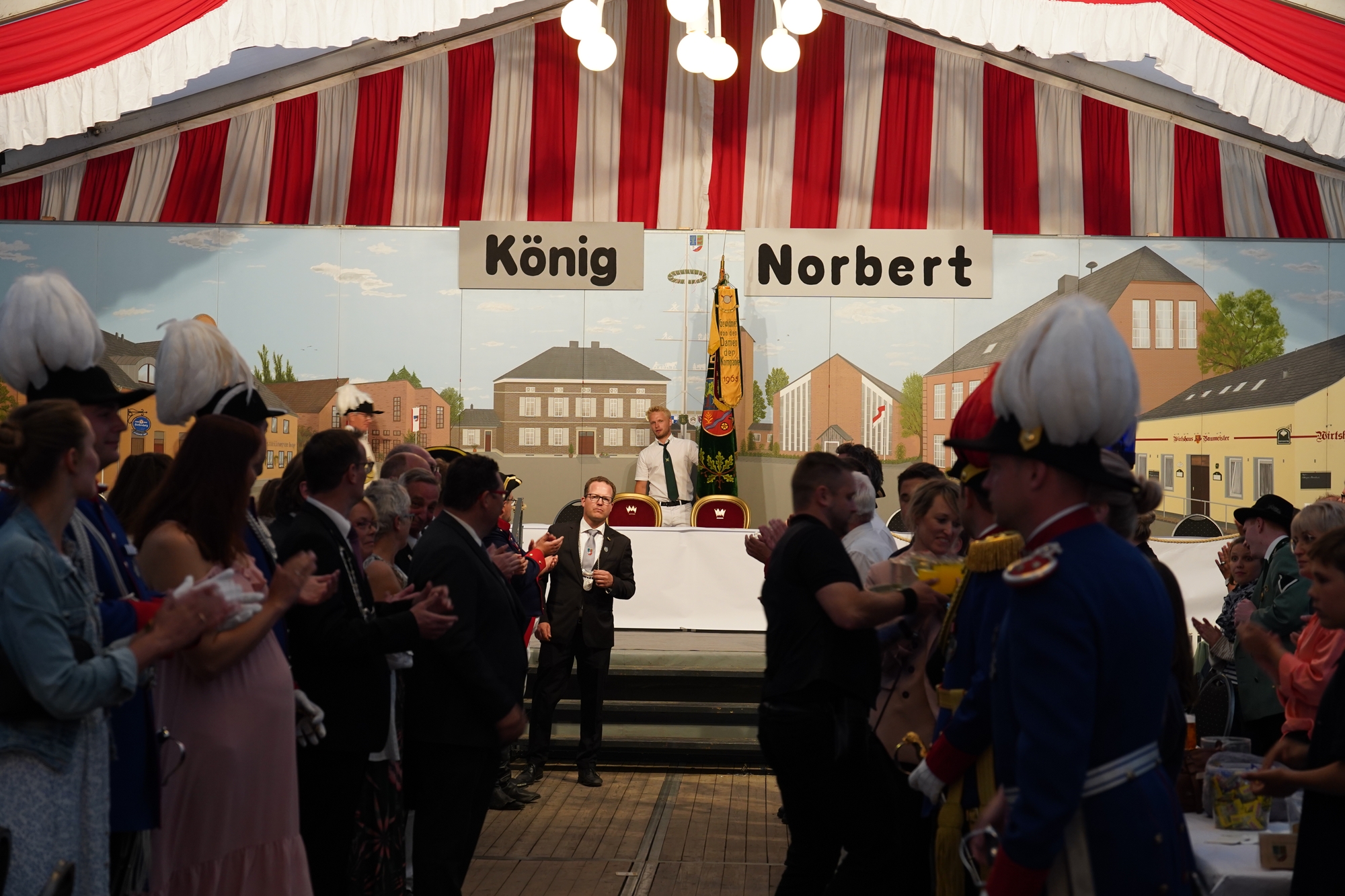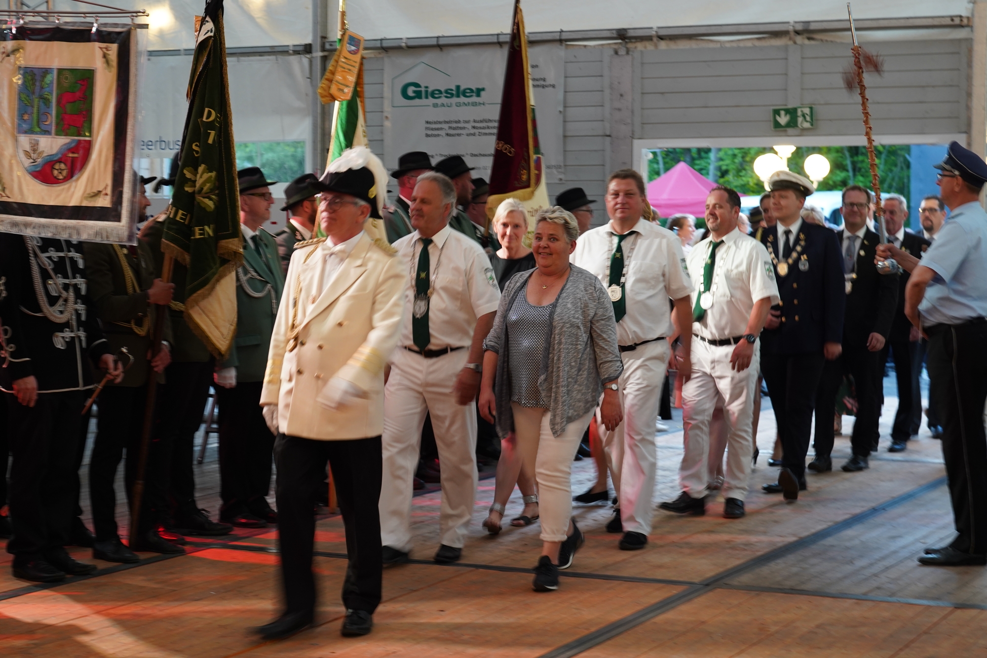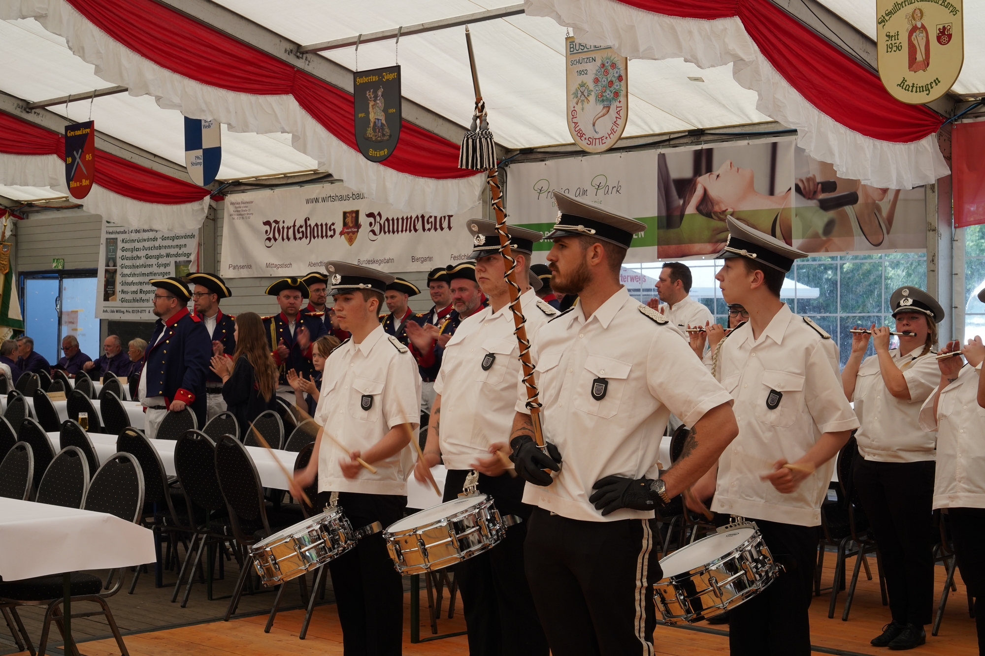 Wappen, Bühnenbild, Schützenbaum, Fahnen, Standarte