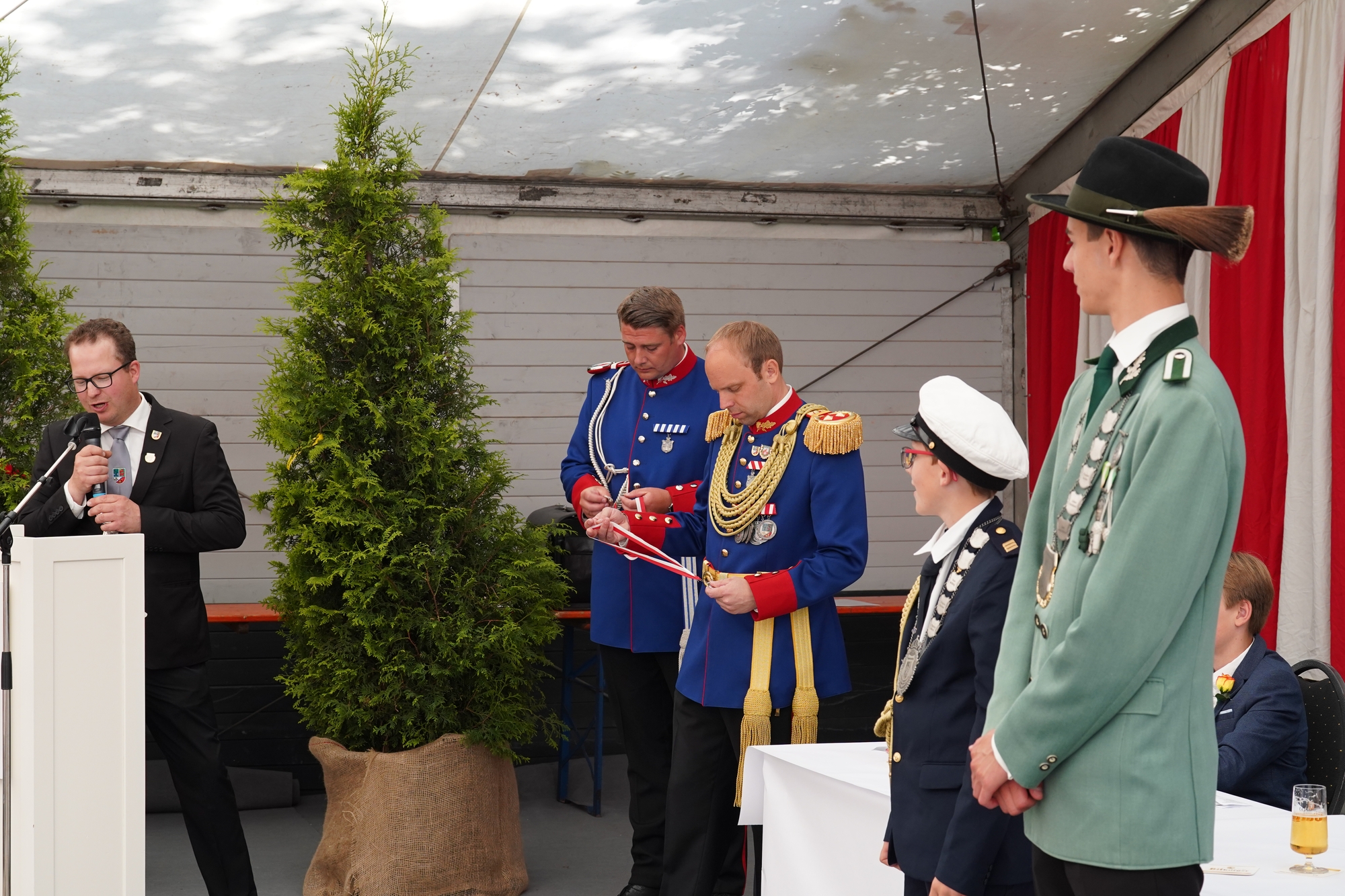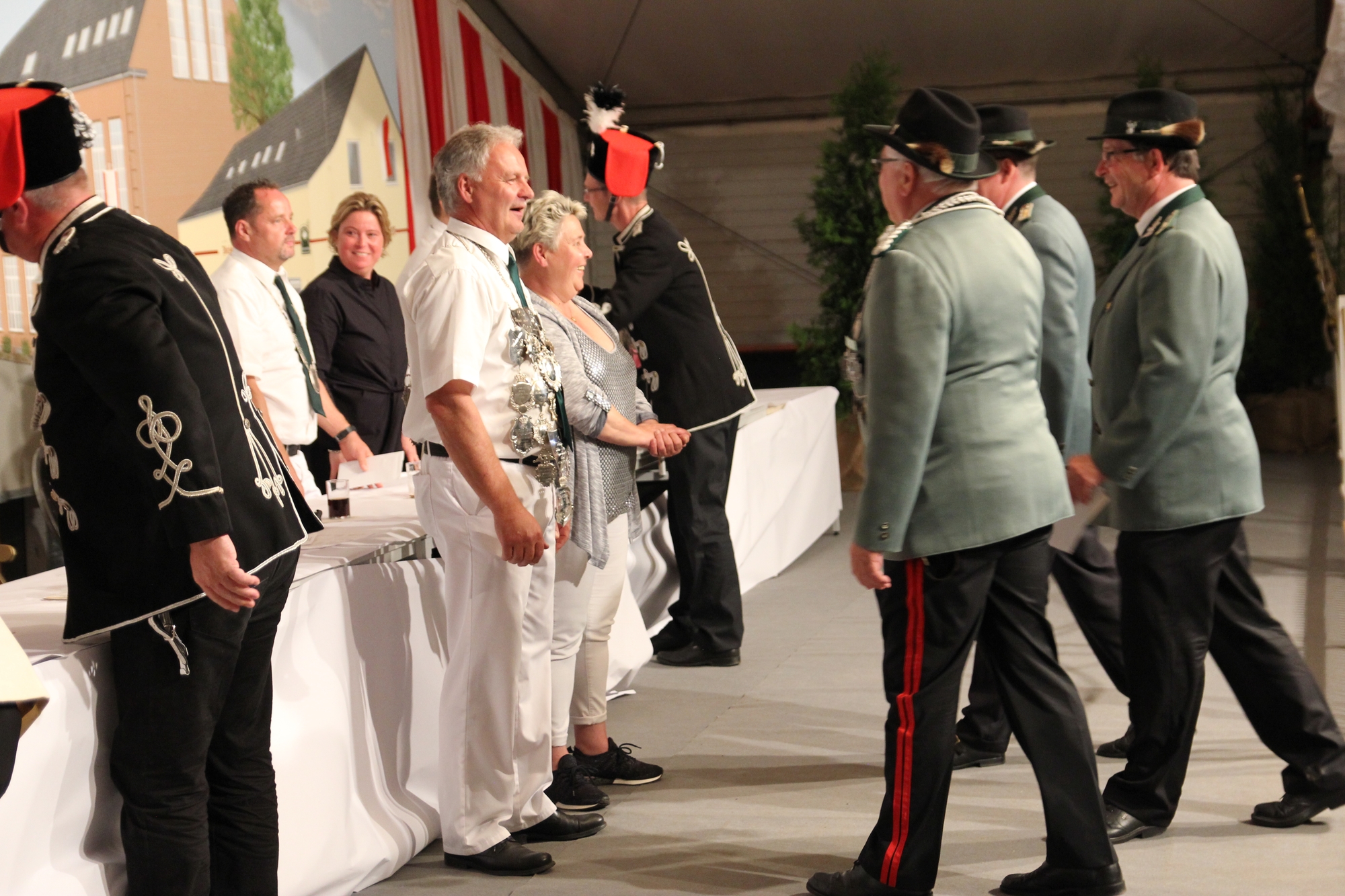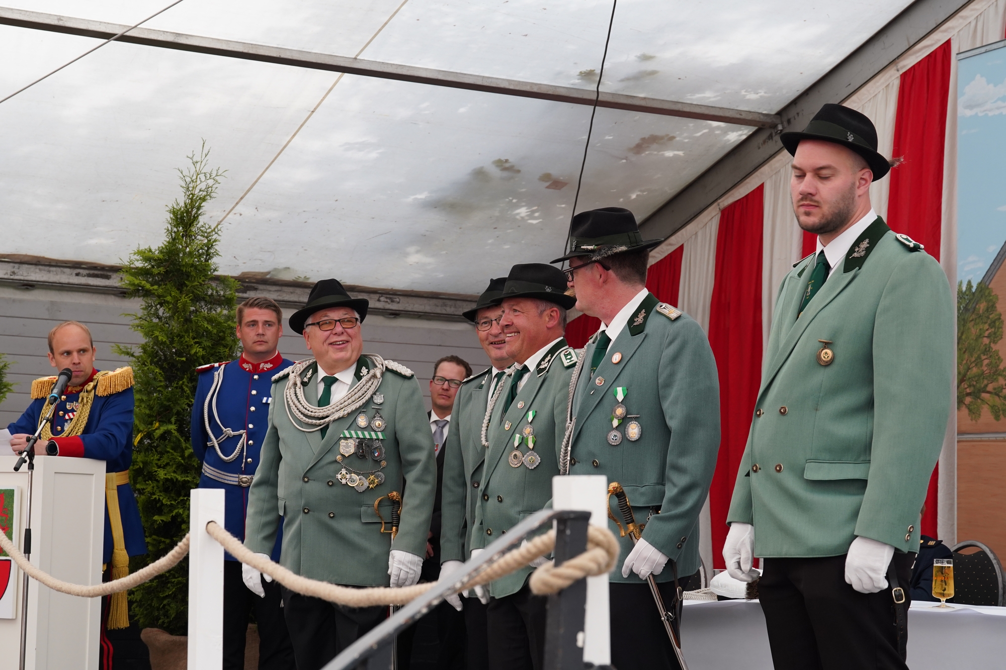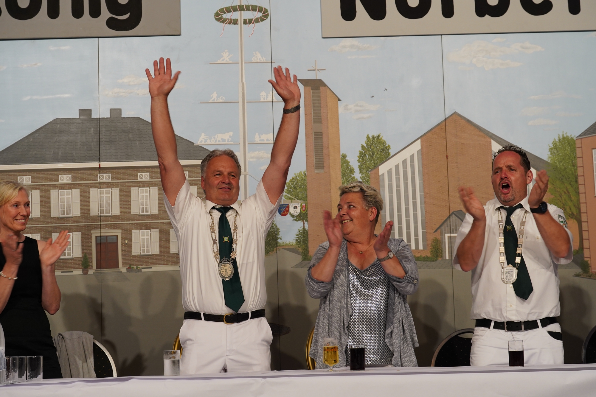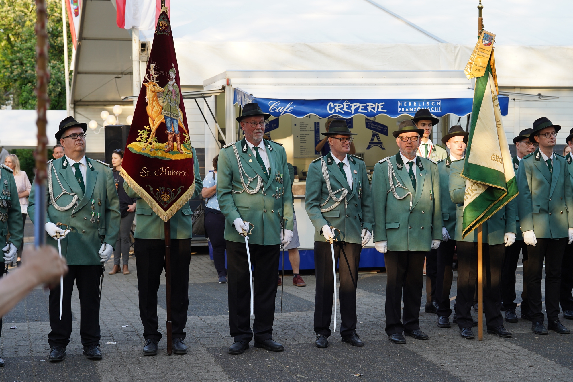 Wappen, Bühnenbild, Schützenbaum, Fahnen, Standarte