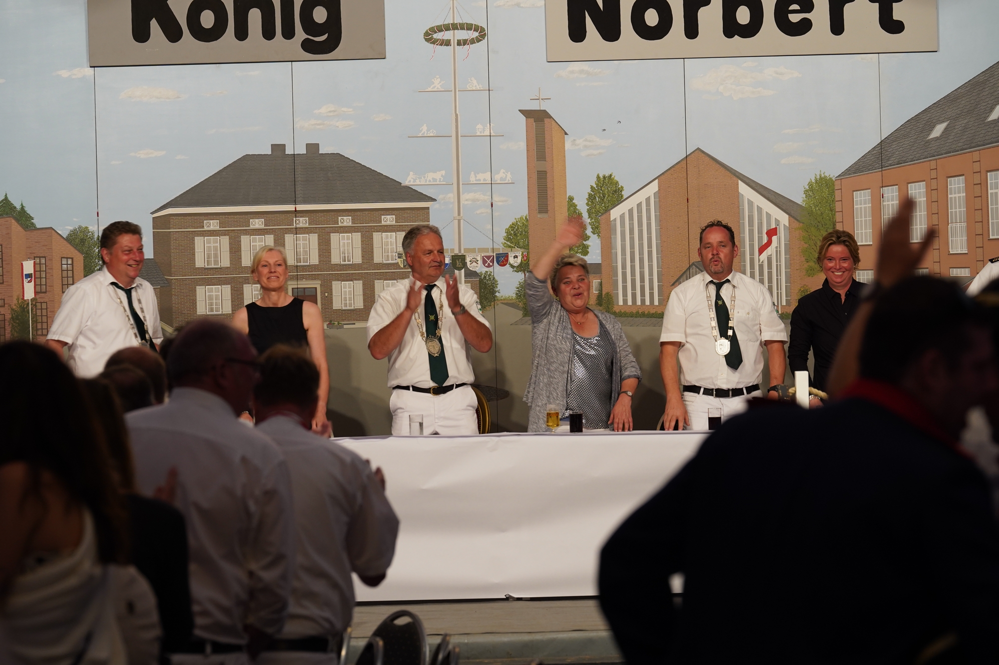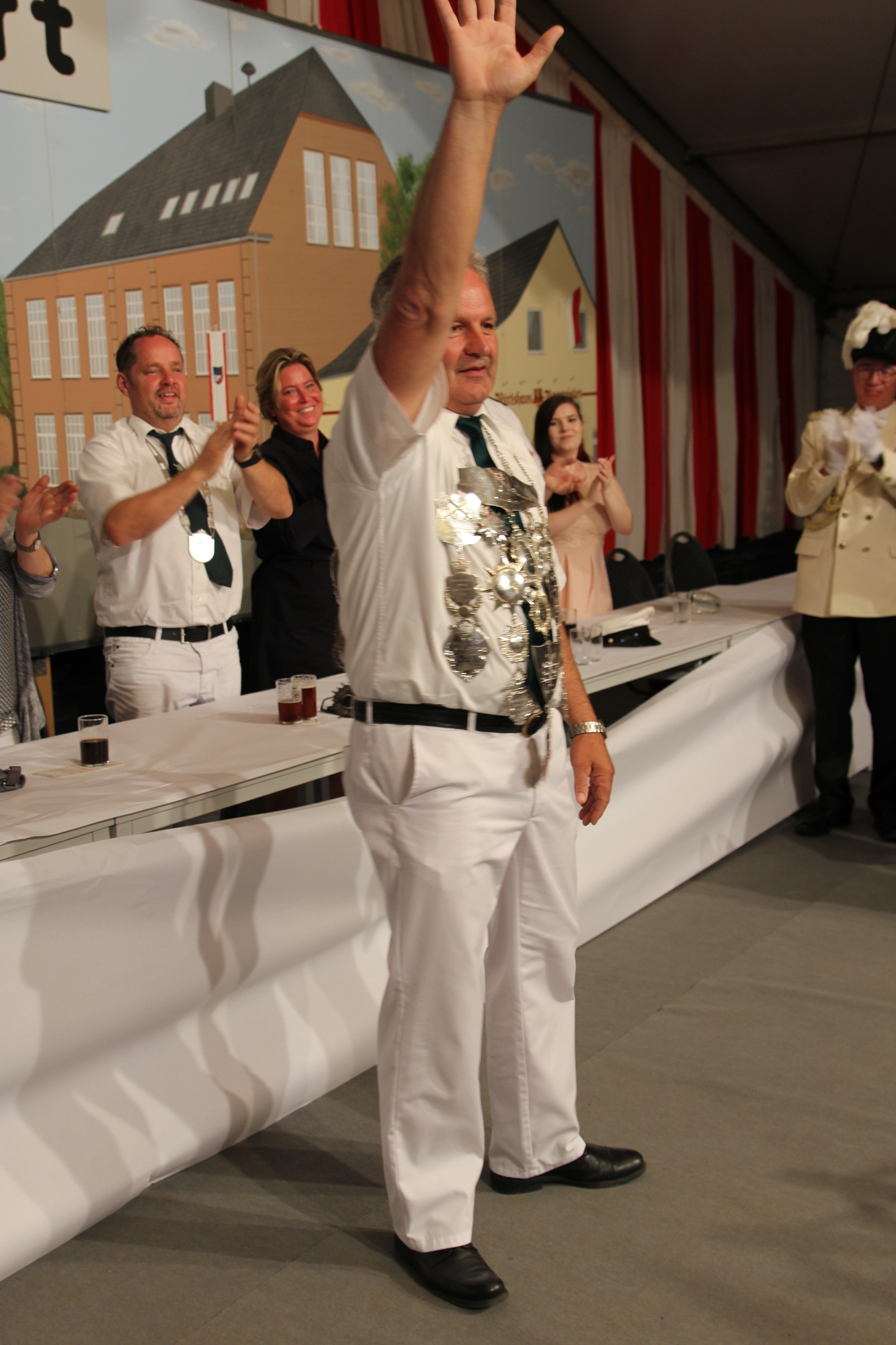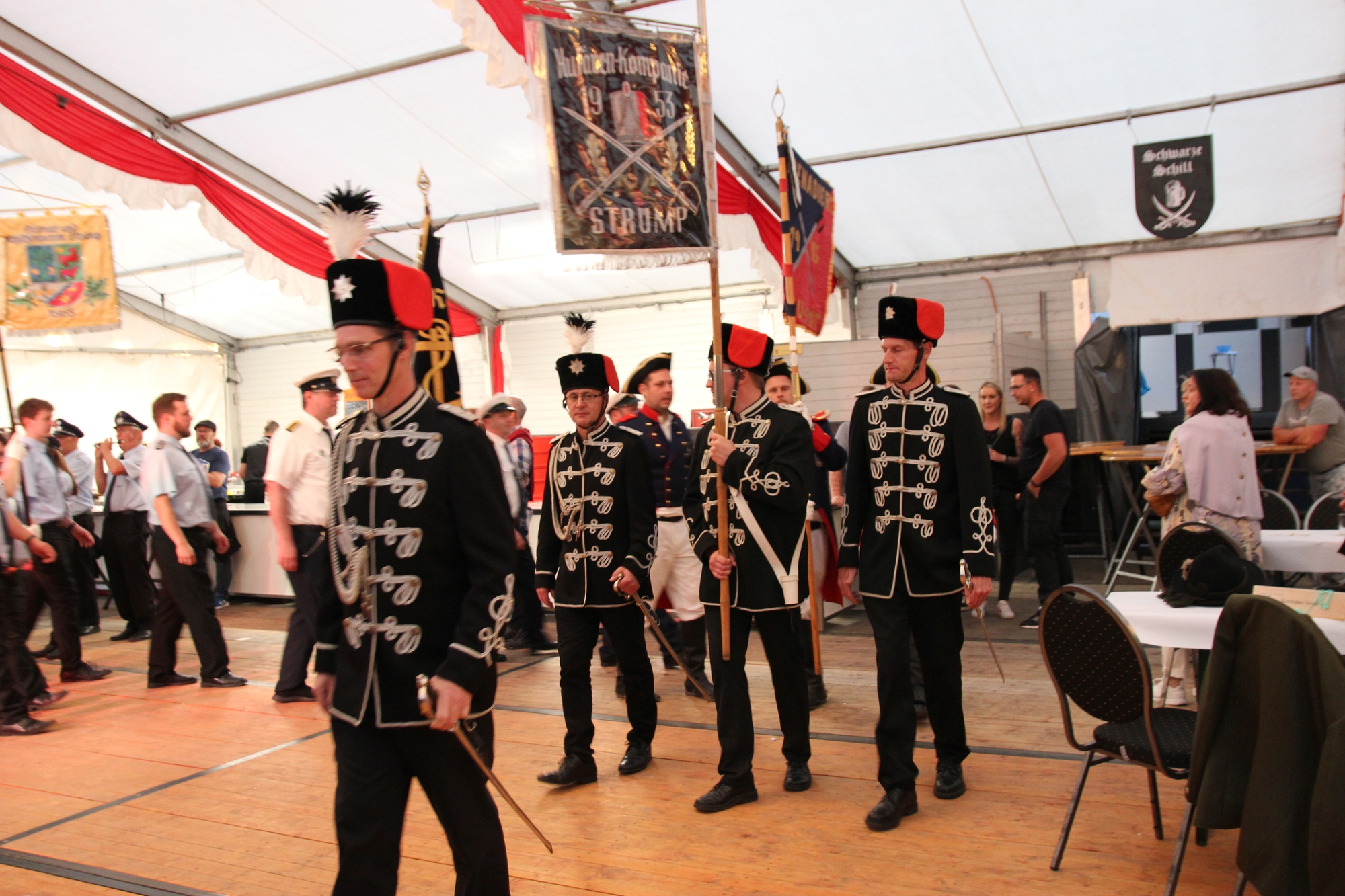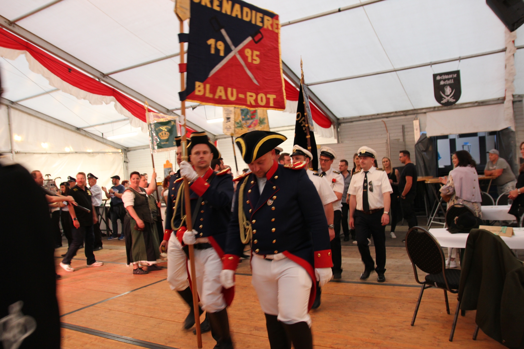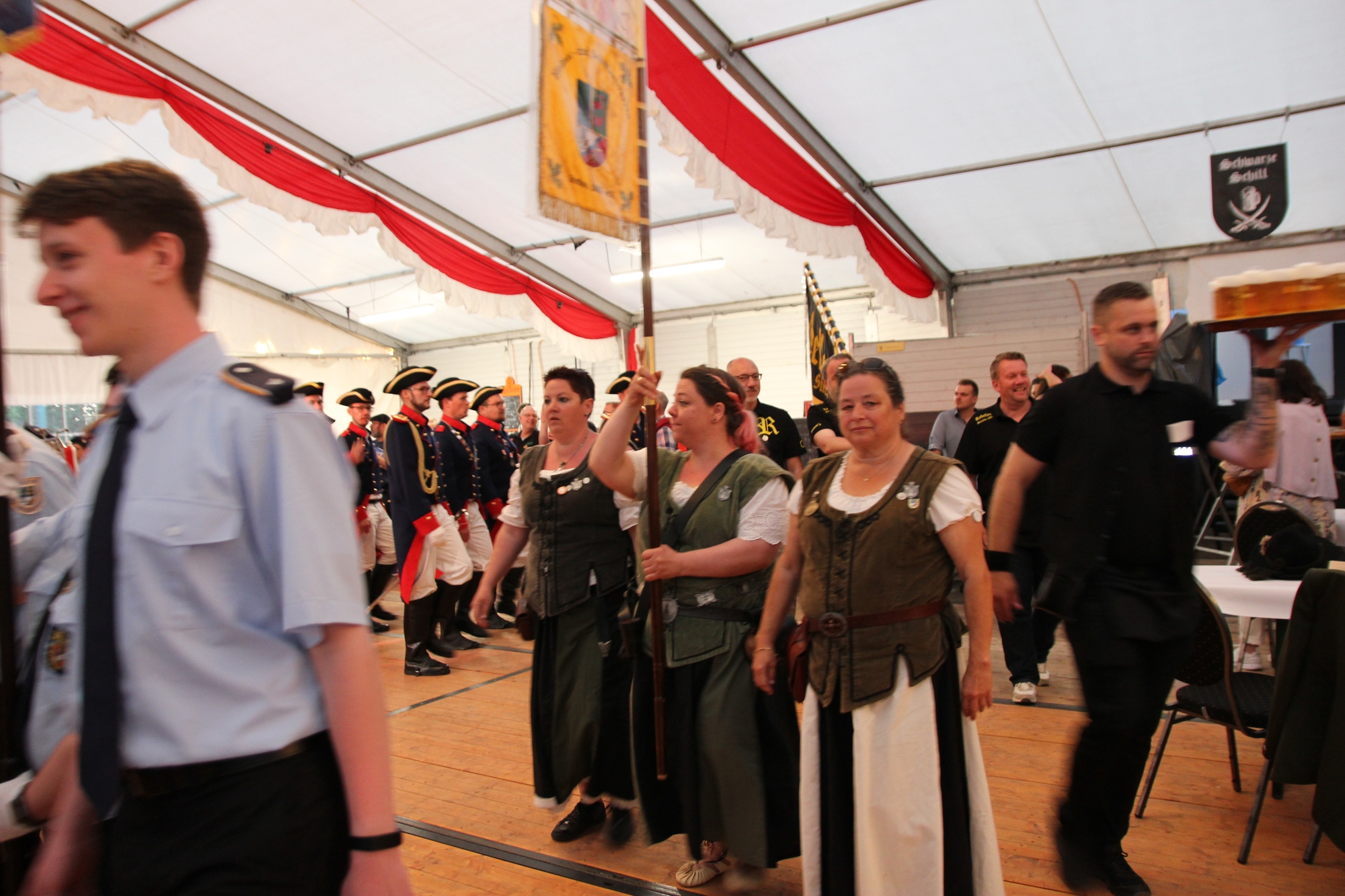 Wappen, Bühnenbild, Schützenbaum, Fahnen, Standarte