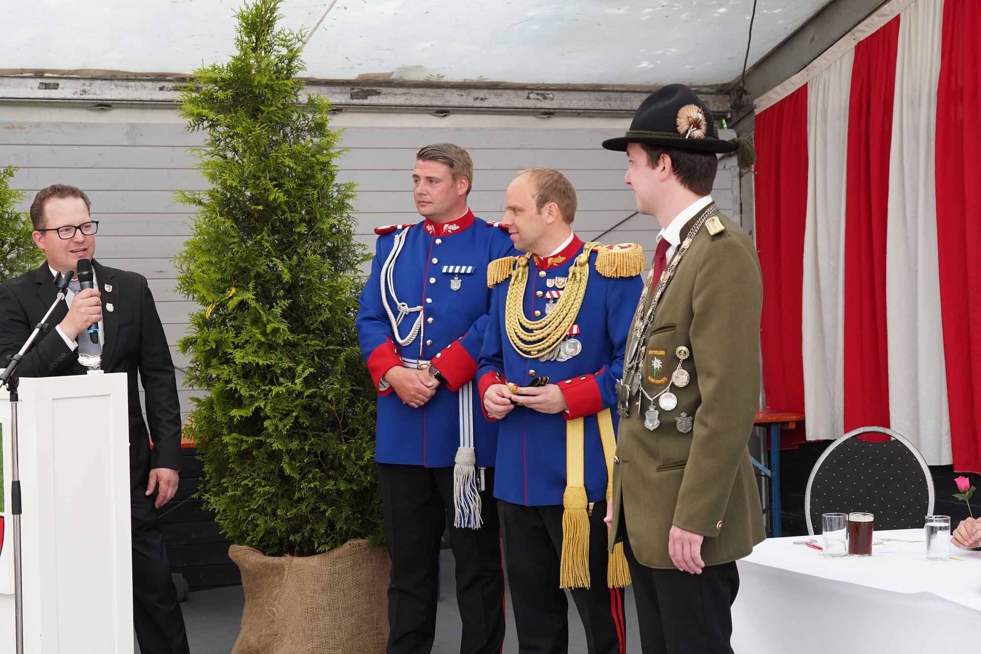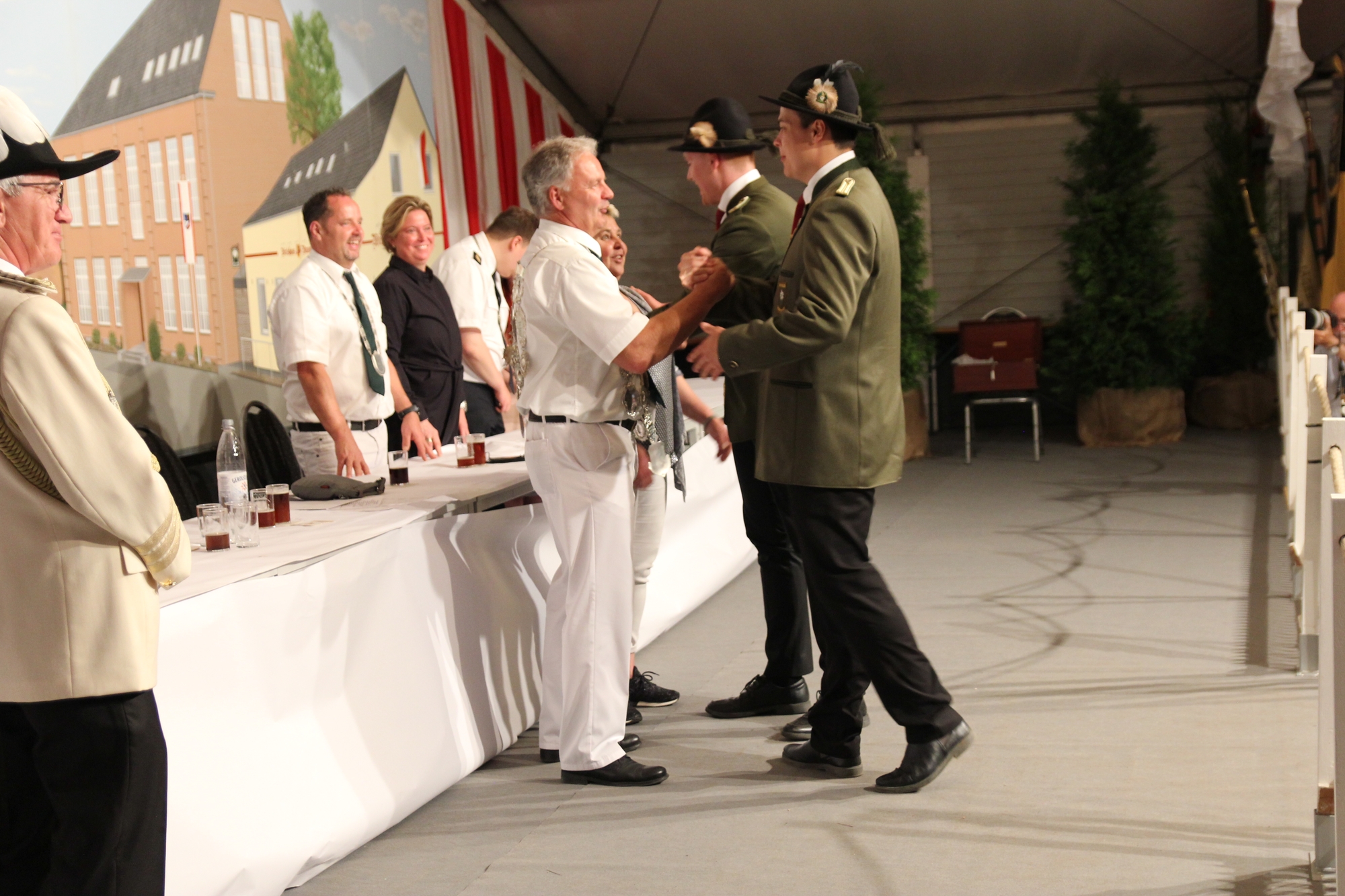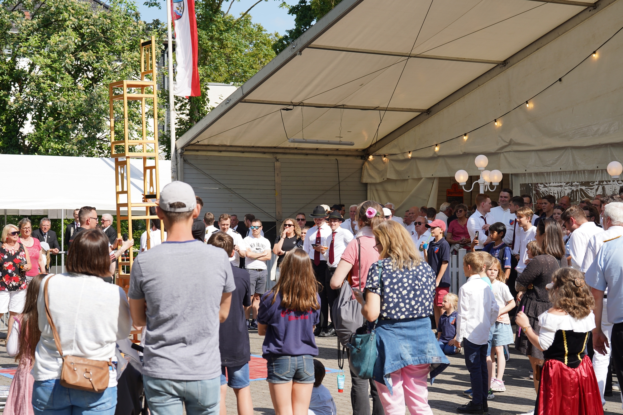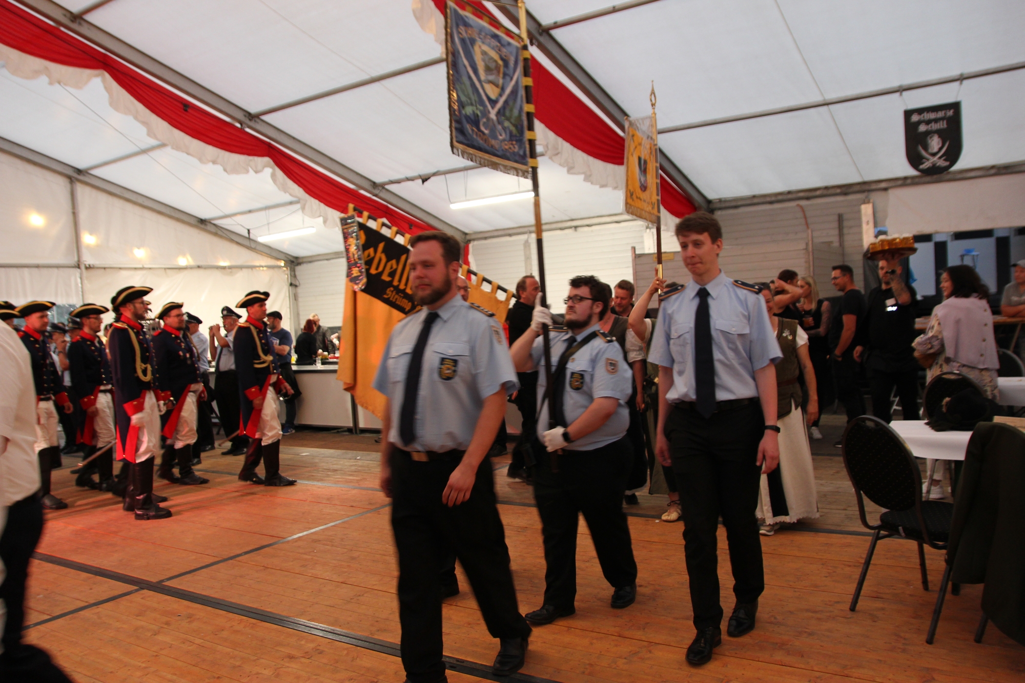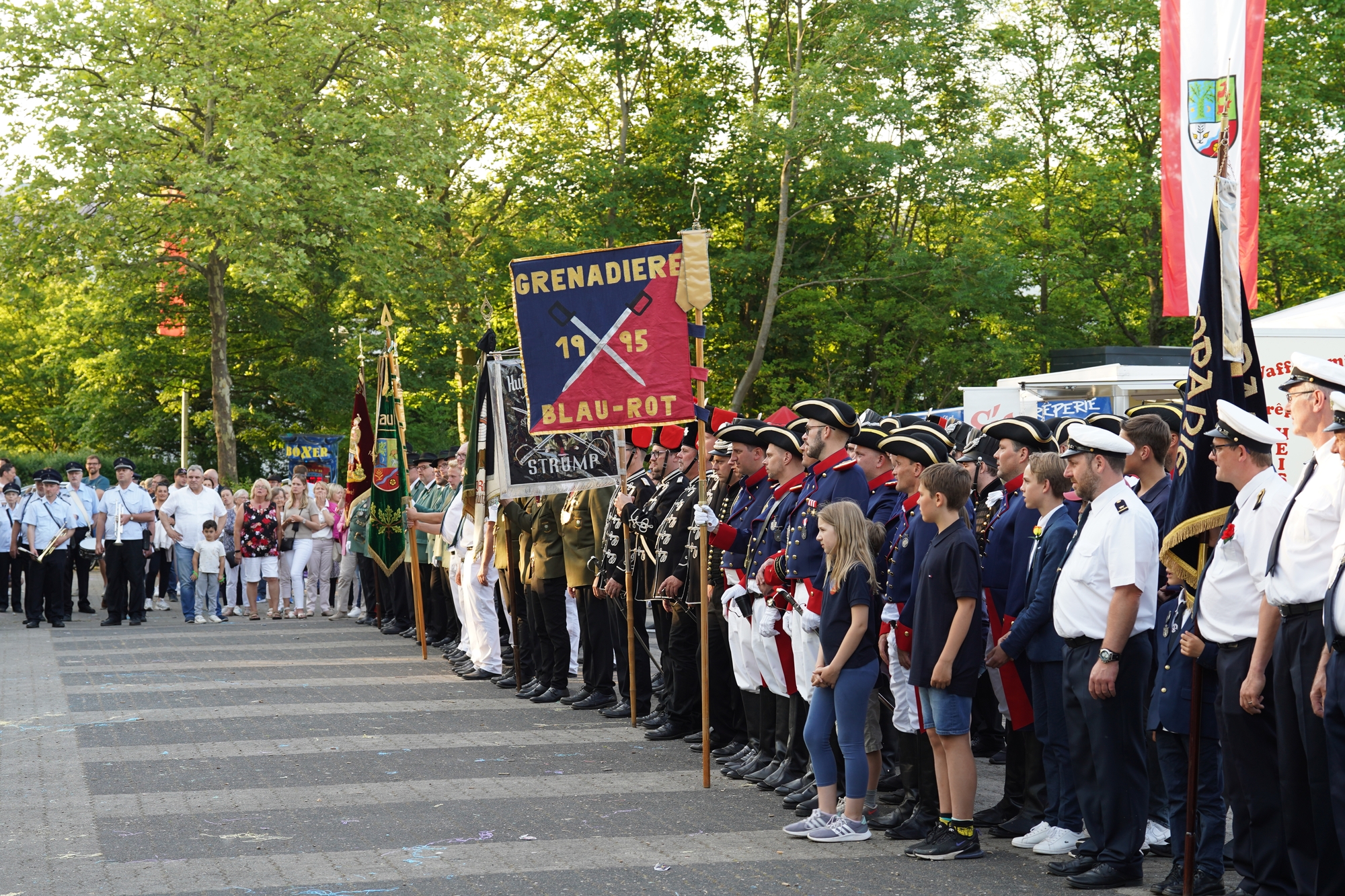 Wappen, Bühnenbild, Schützenbaum, Fahnen, Standarte