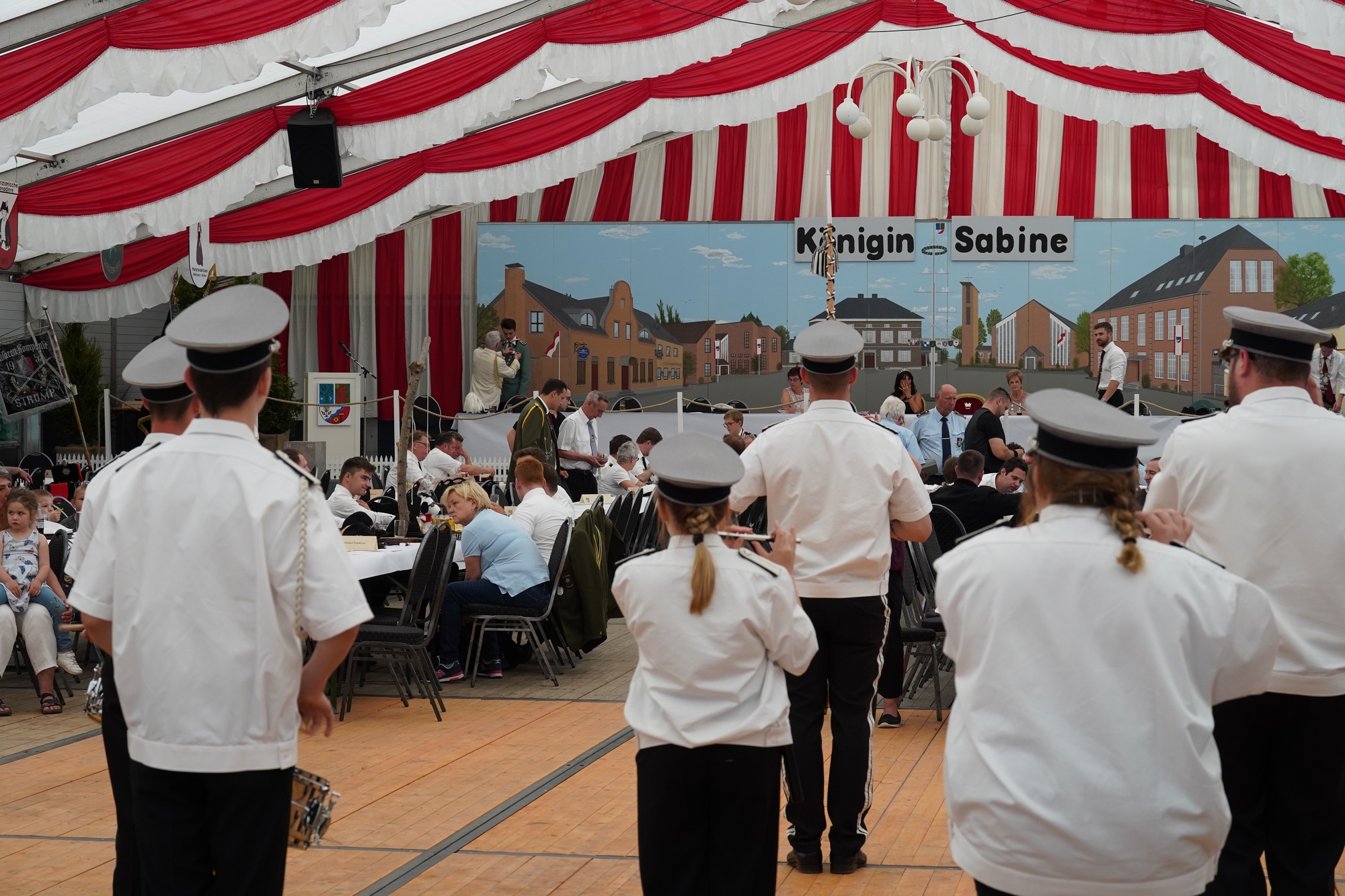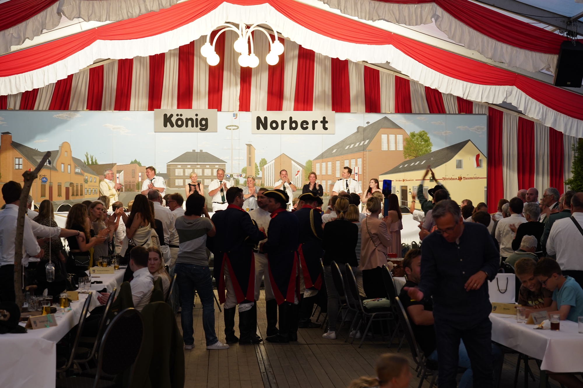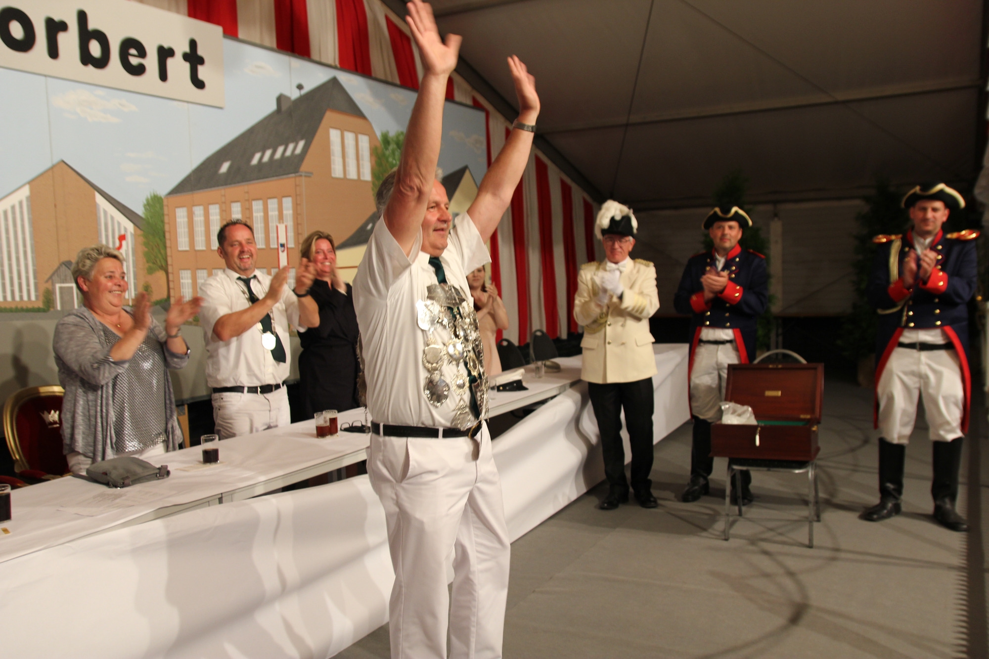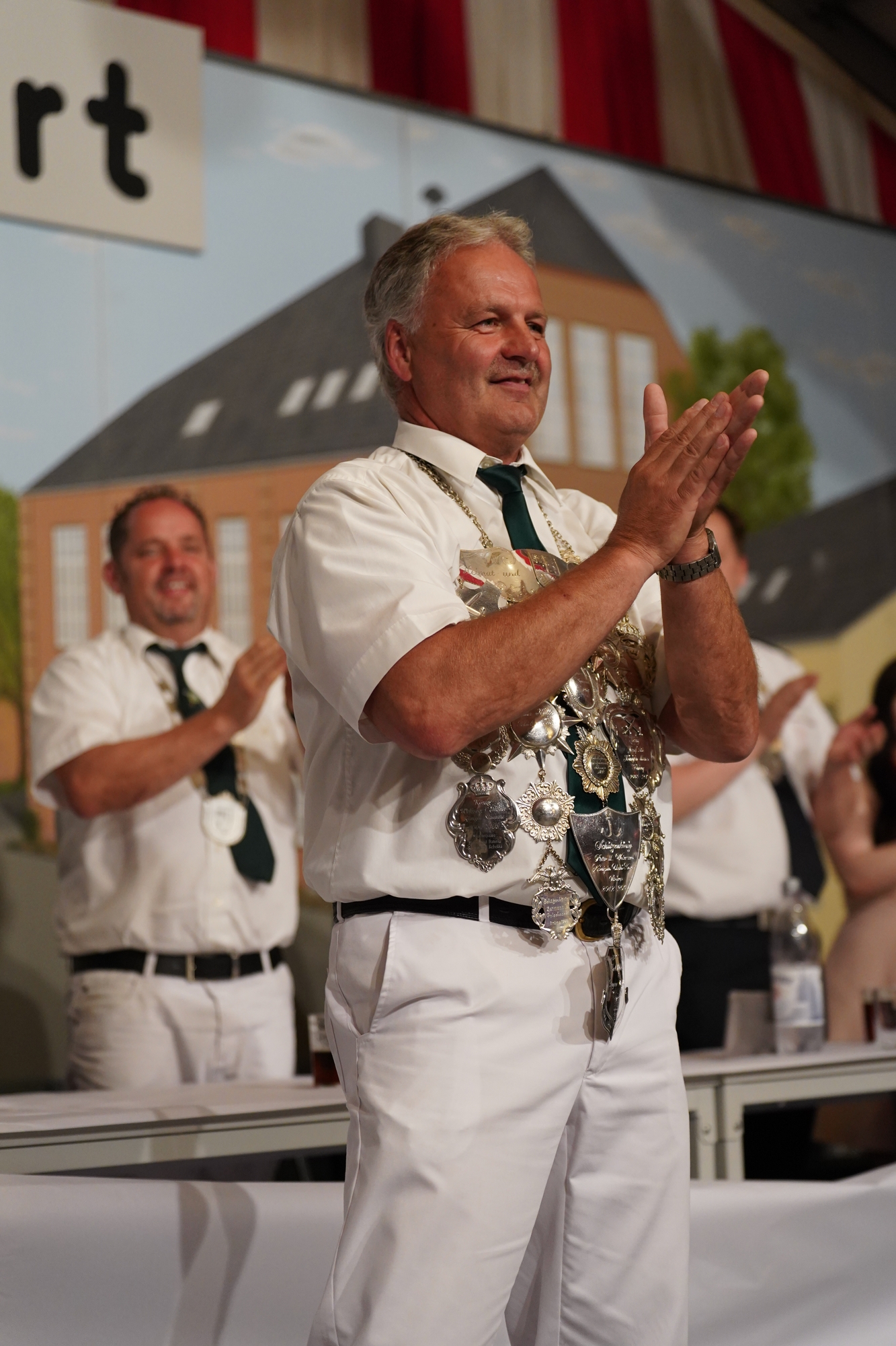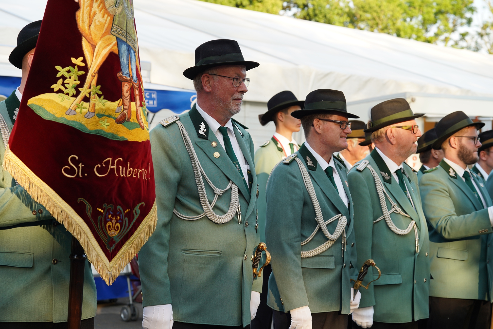 Wappen, Bühnenbild, Schützenbaum, Fahnen, Standarte