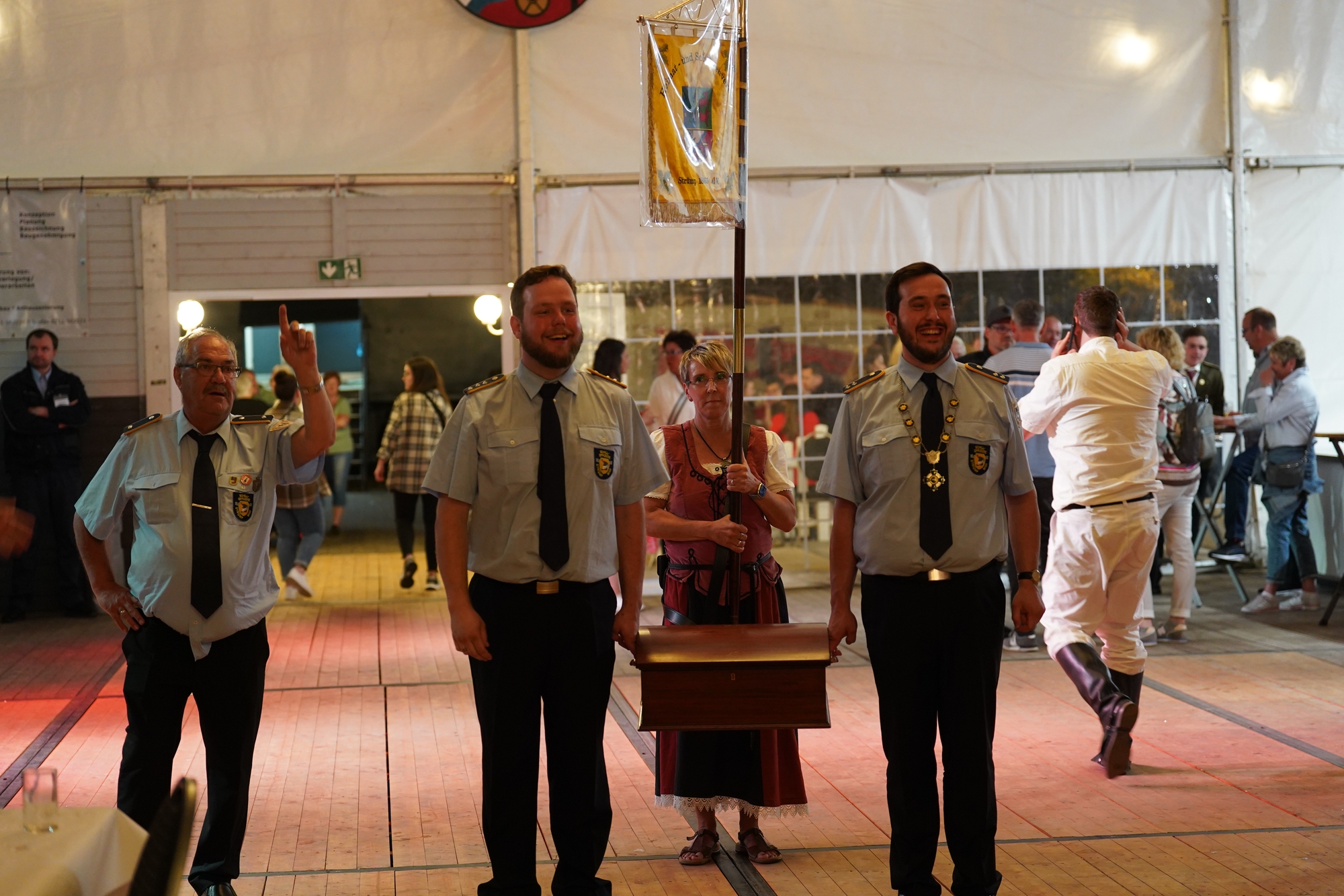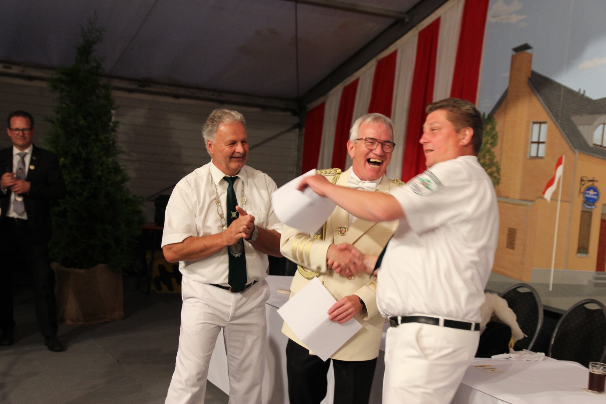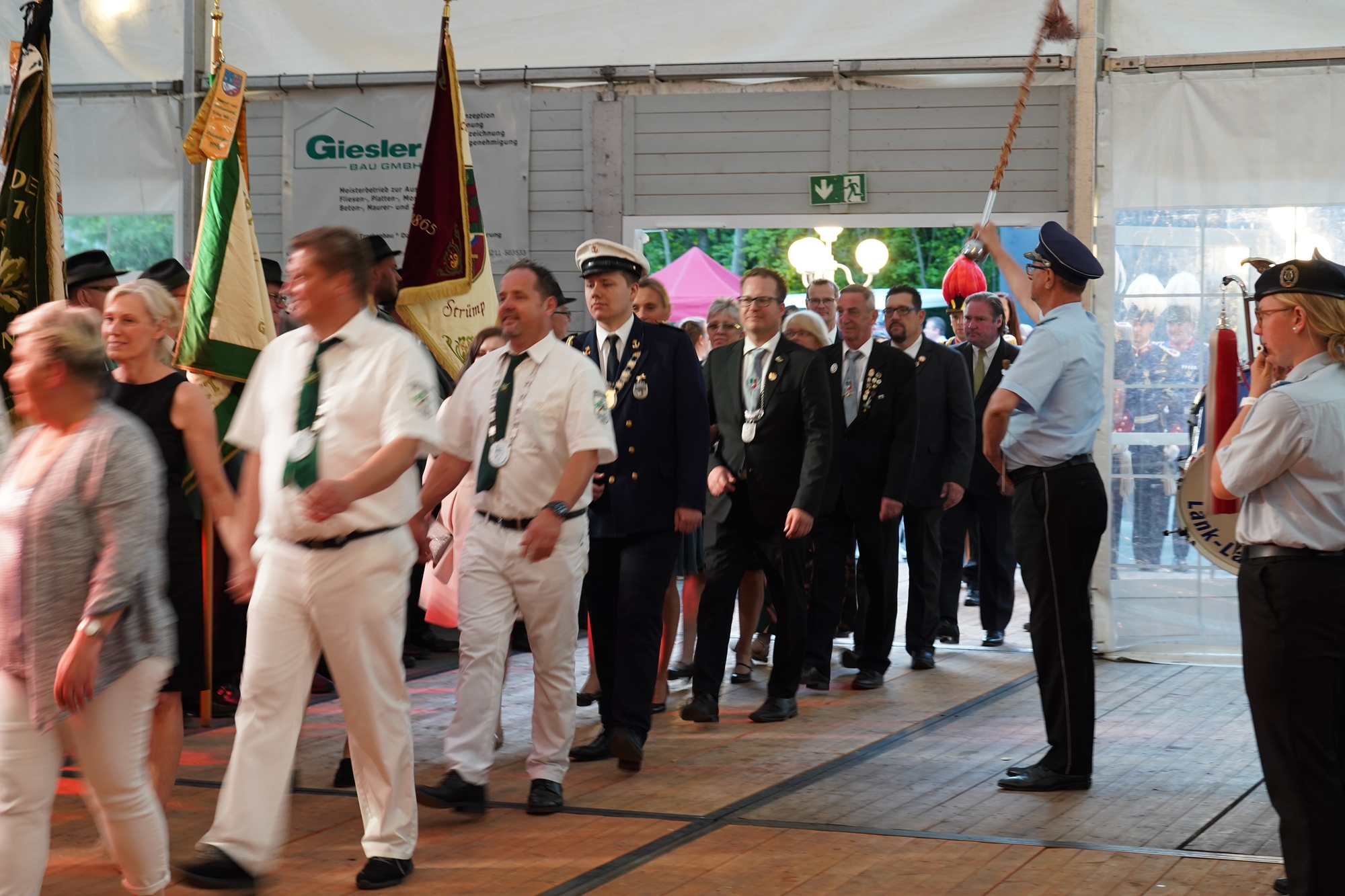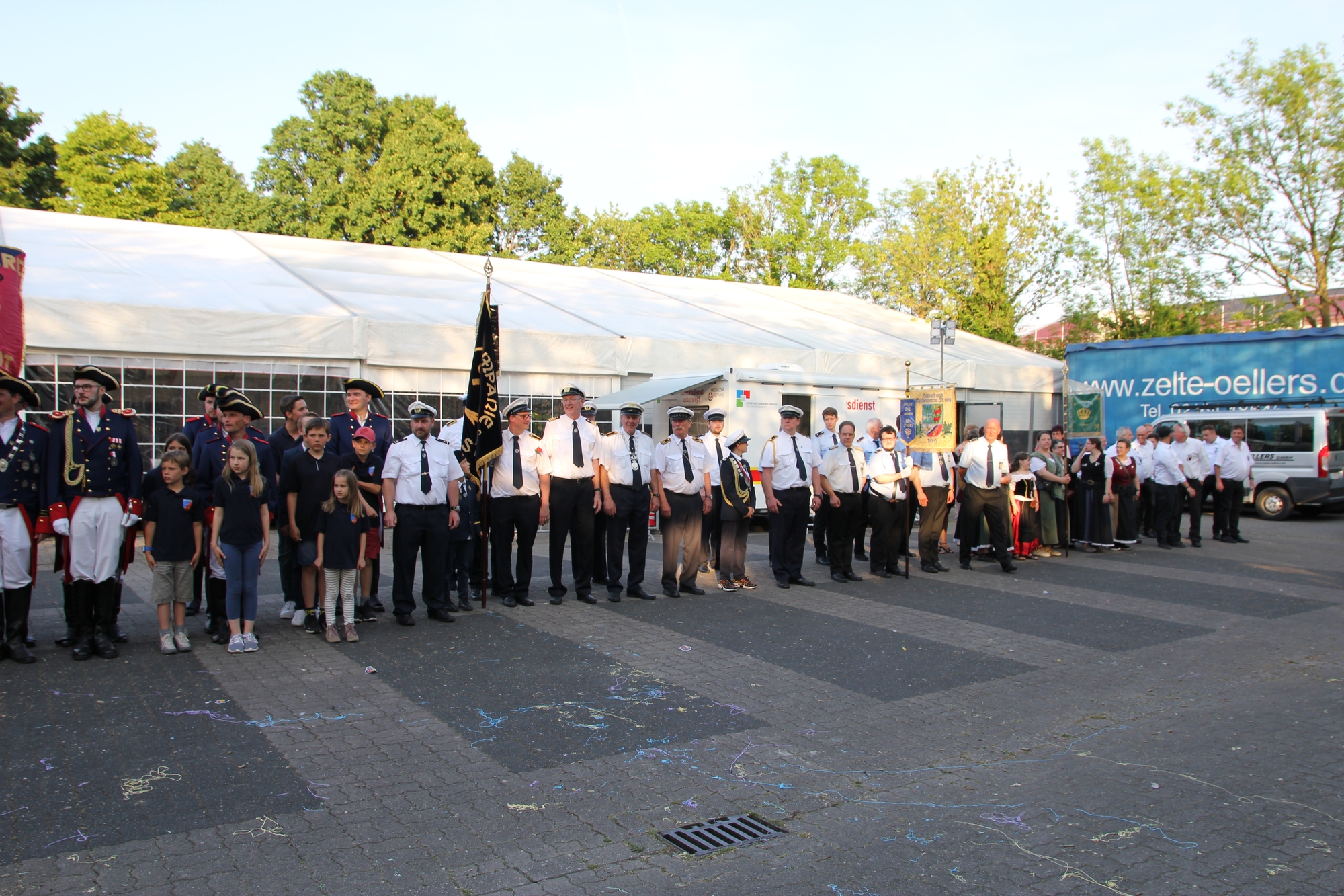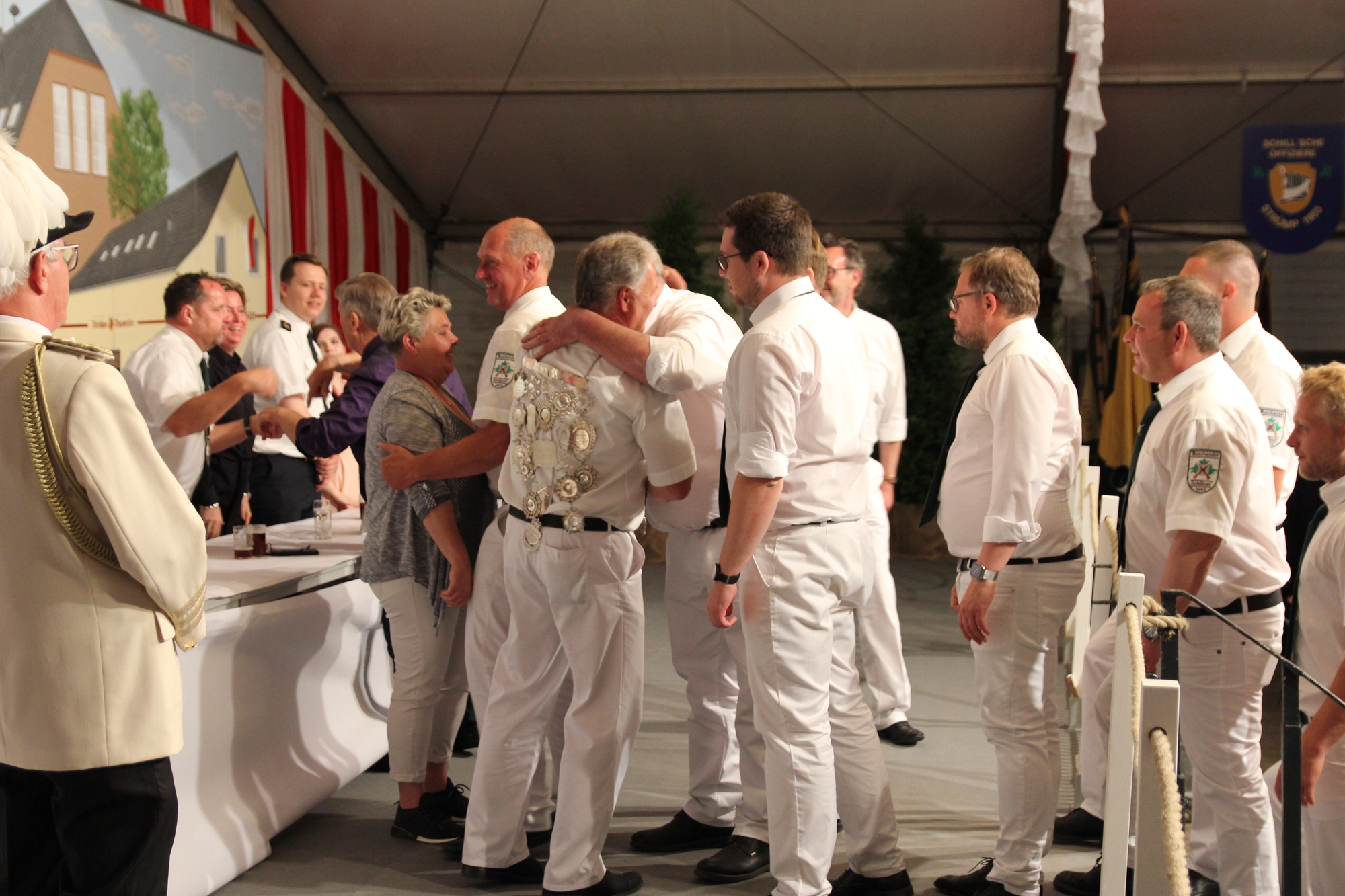 Wappen, Bühnenbild, Schützenbaum, Fahnen, Standarte
