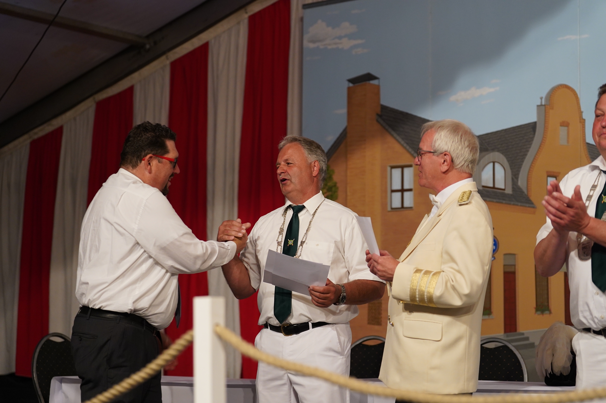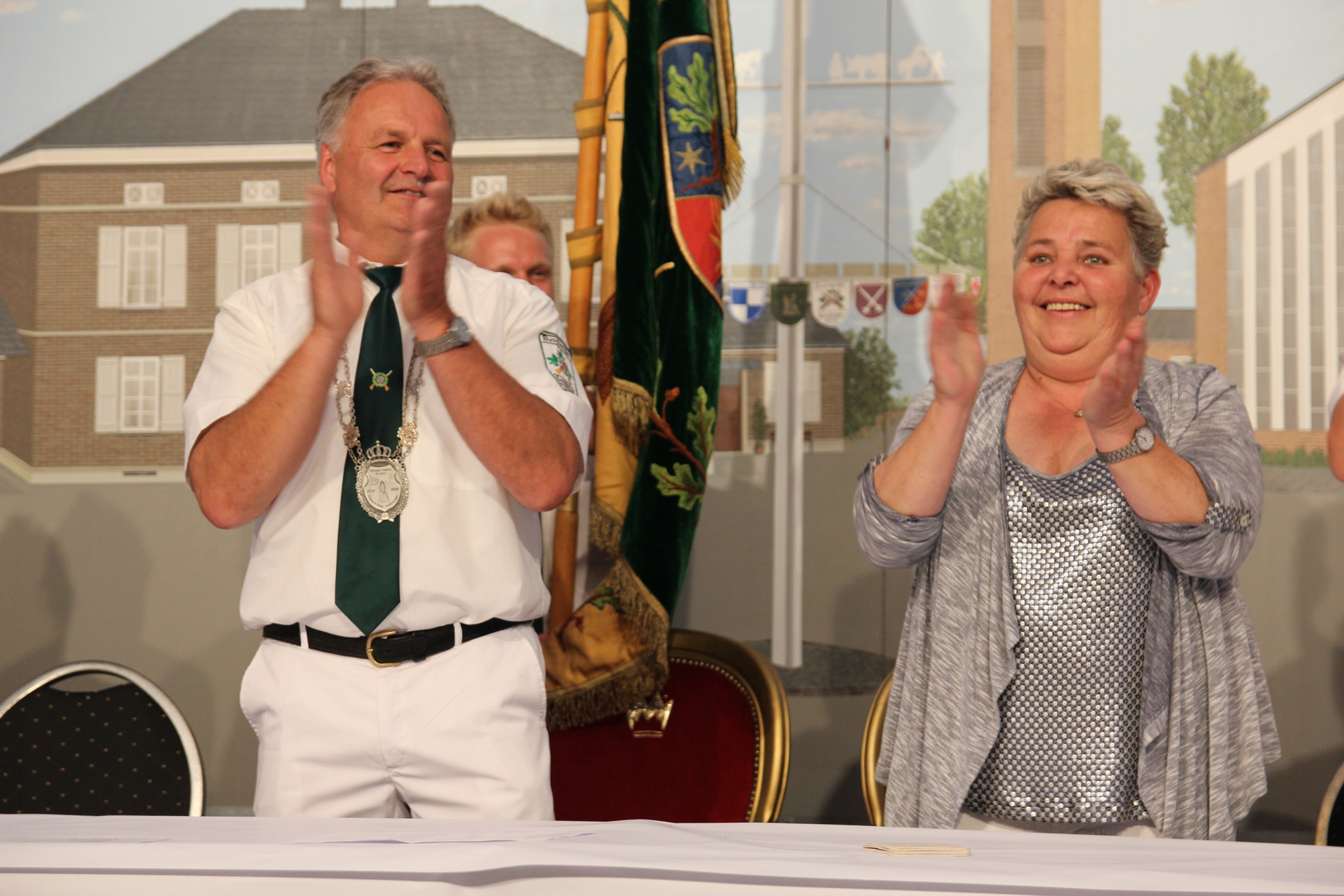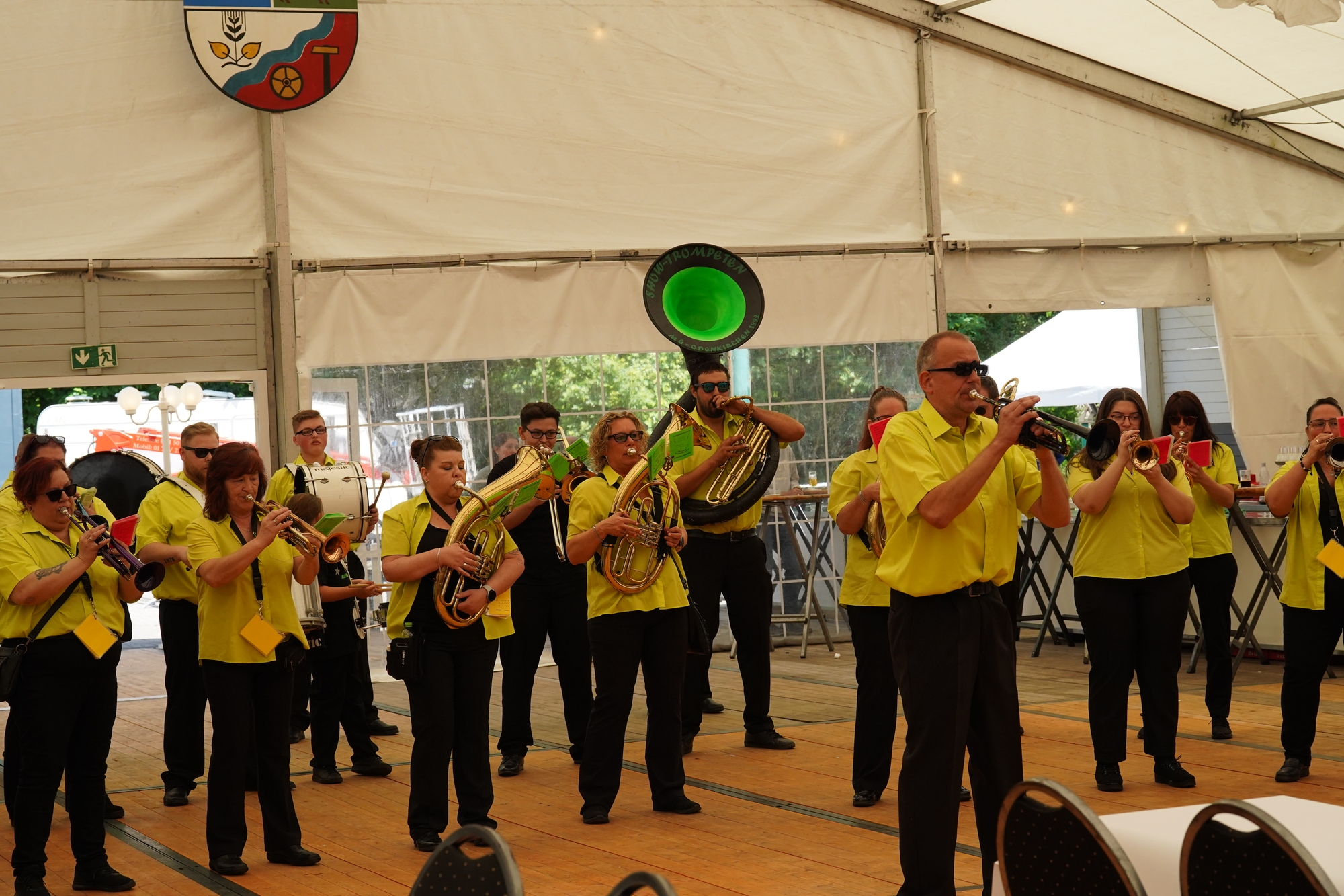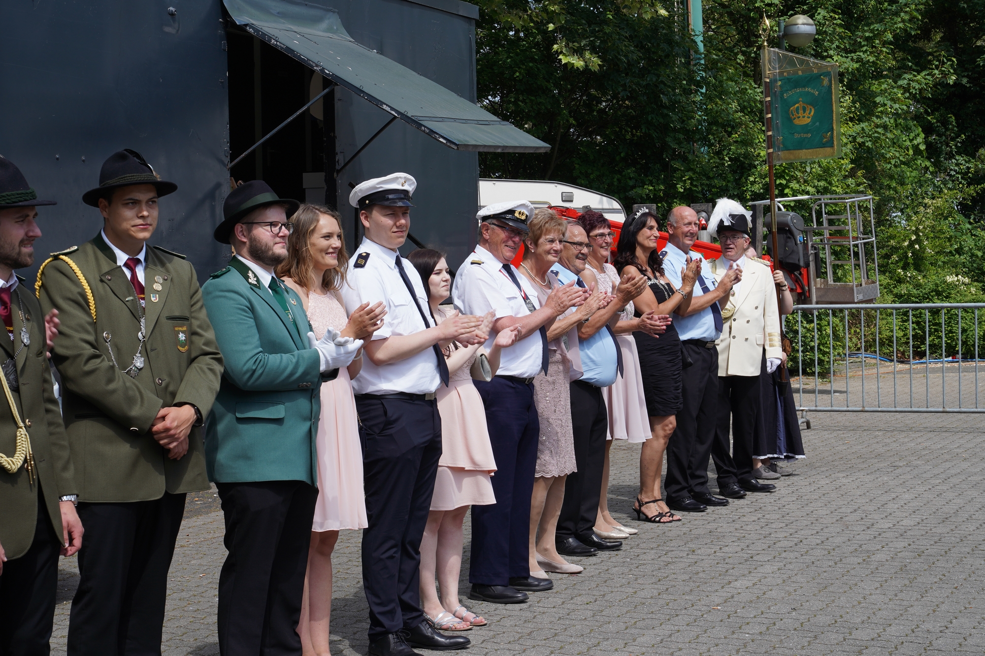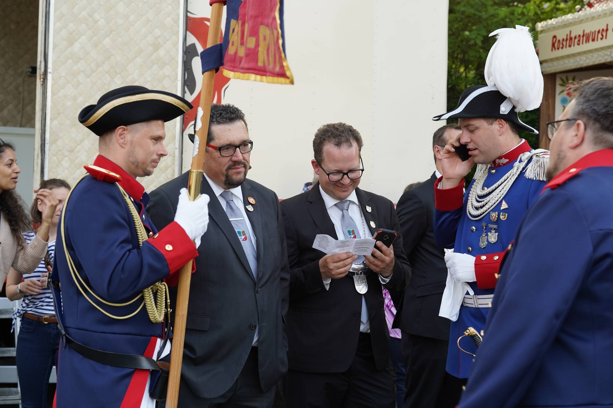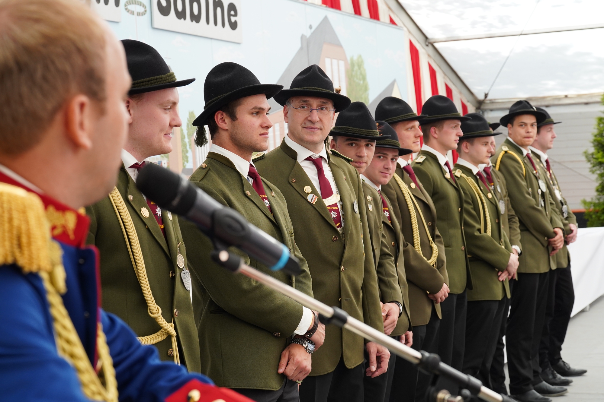 Wappen, Bühnenbild, Schützenbaum, Fahnen, Standarte