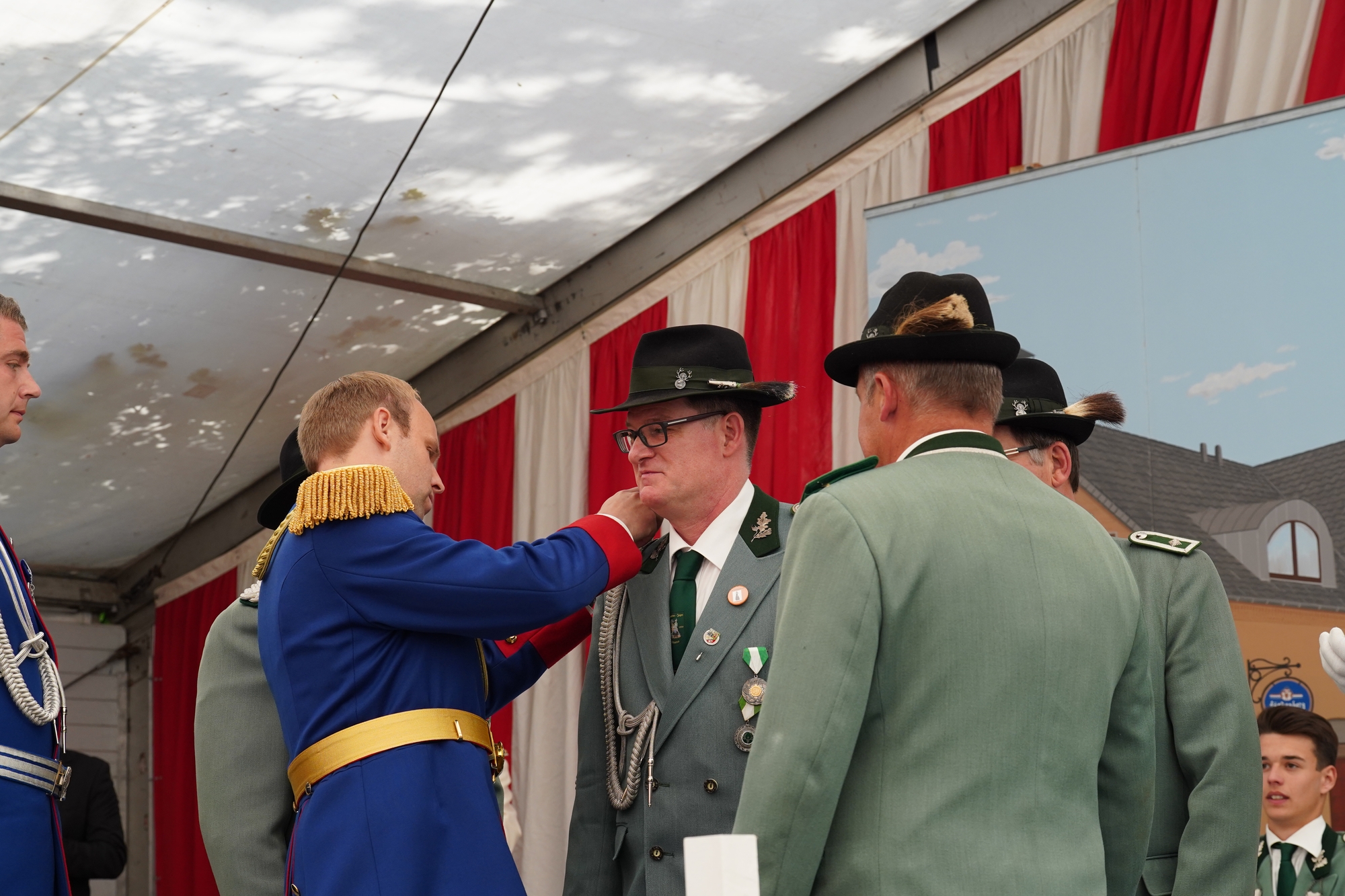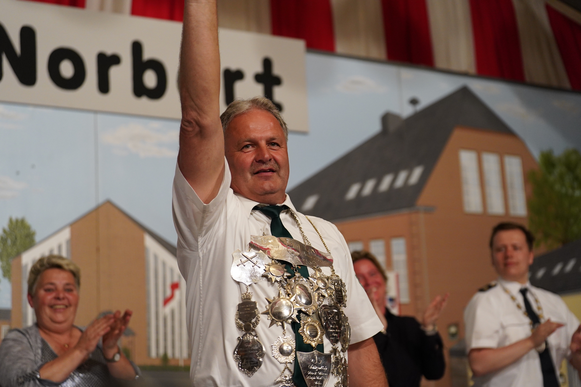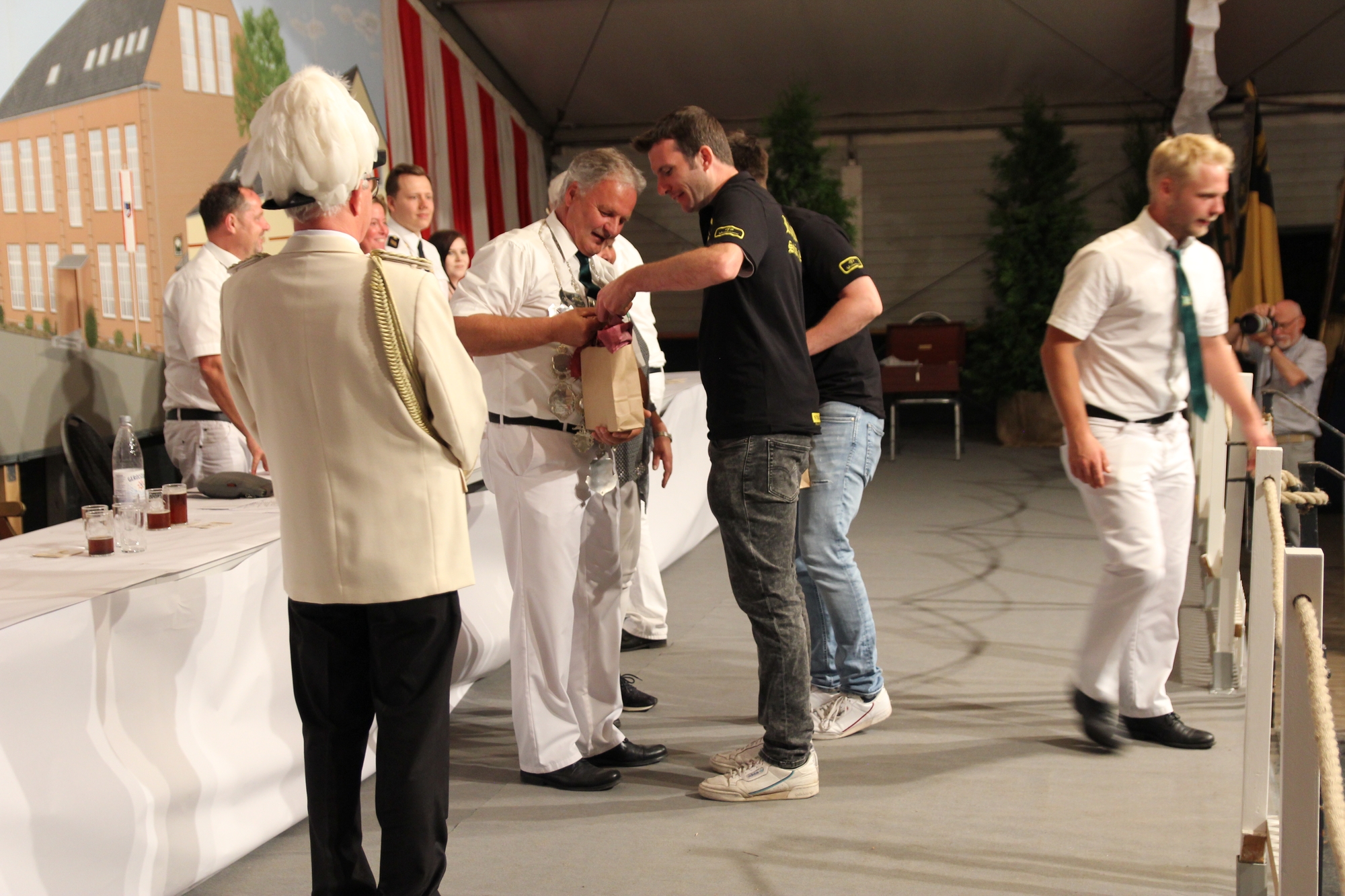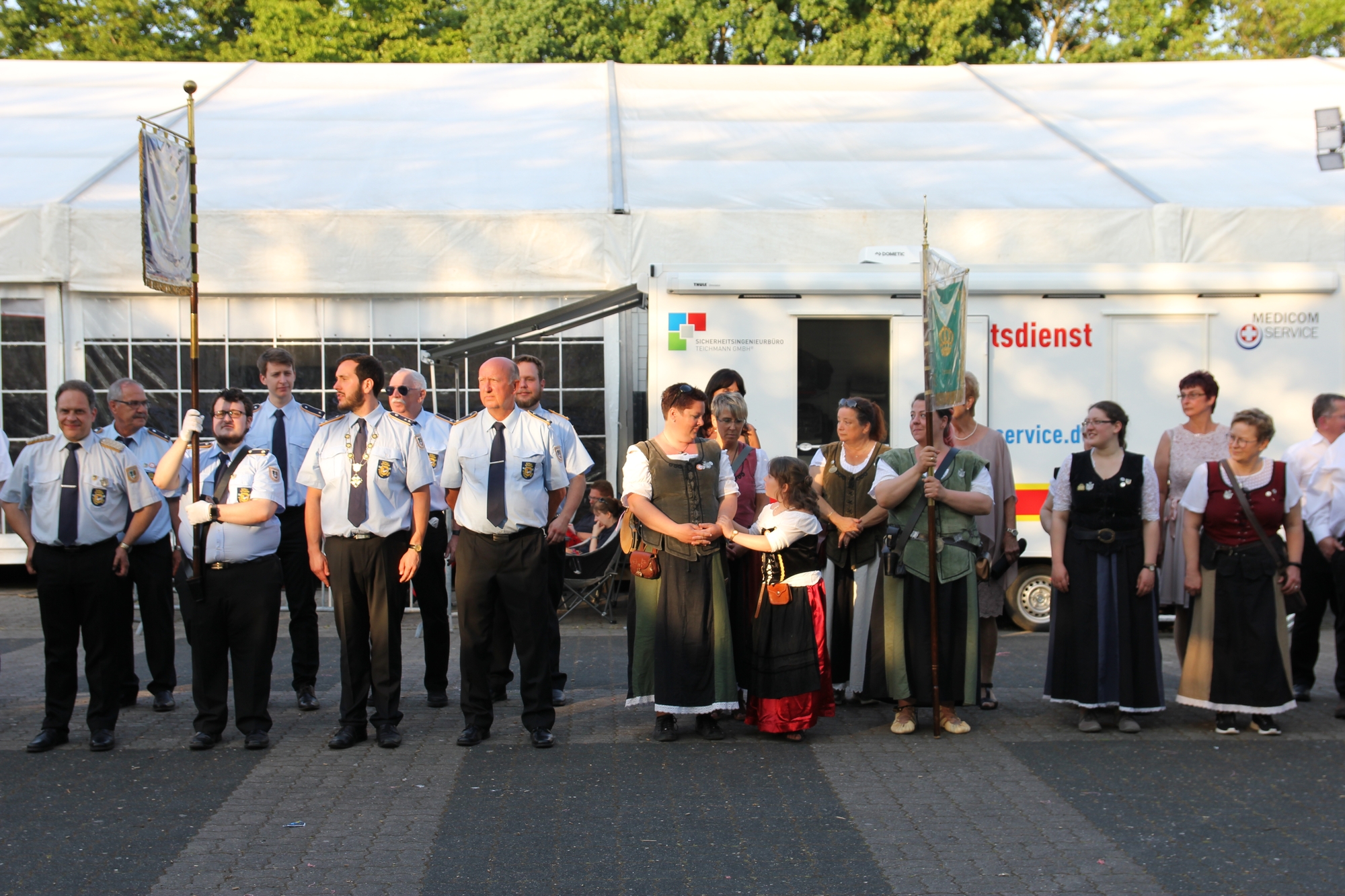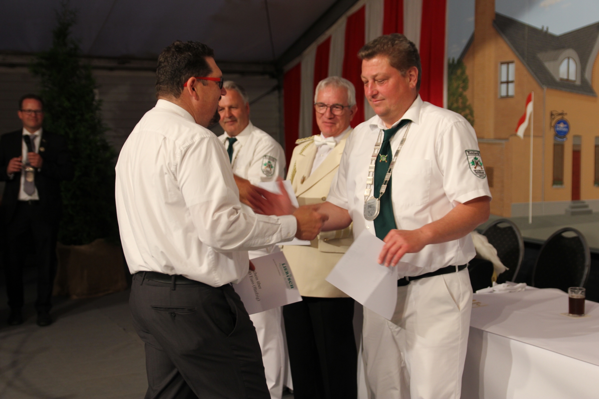 Wappen, Bühnenbild, Schützenbaum, Fahnen, Standarte