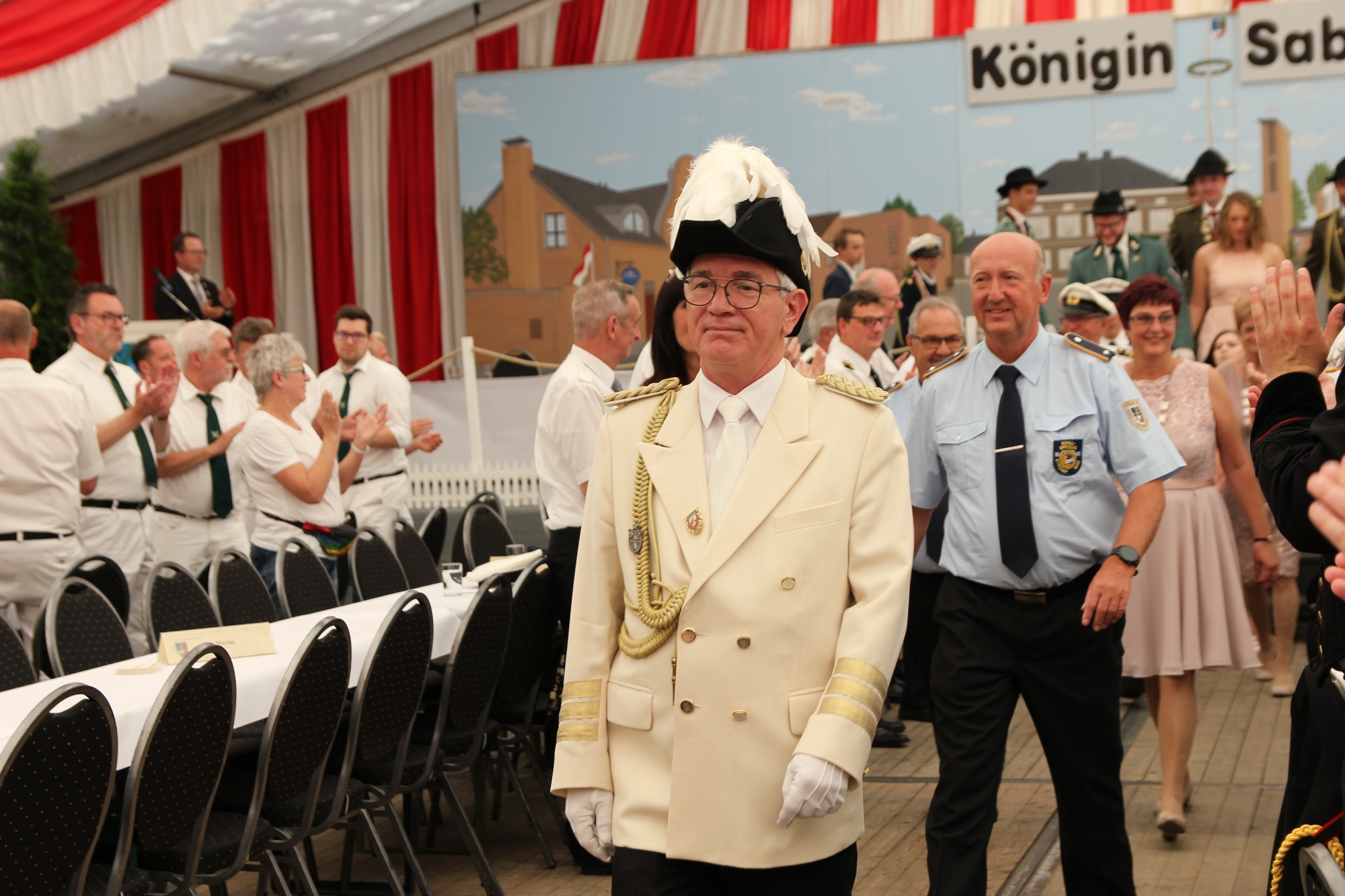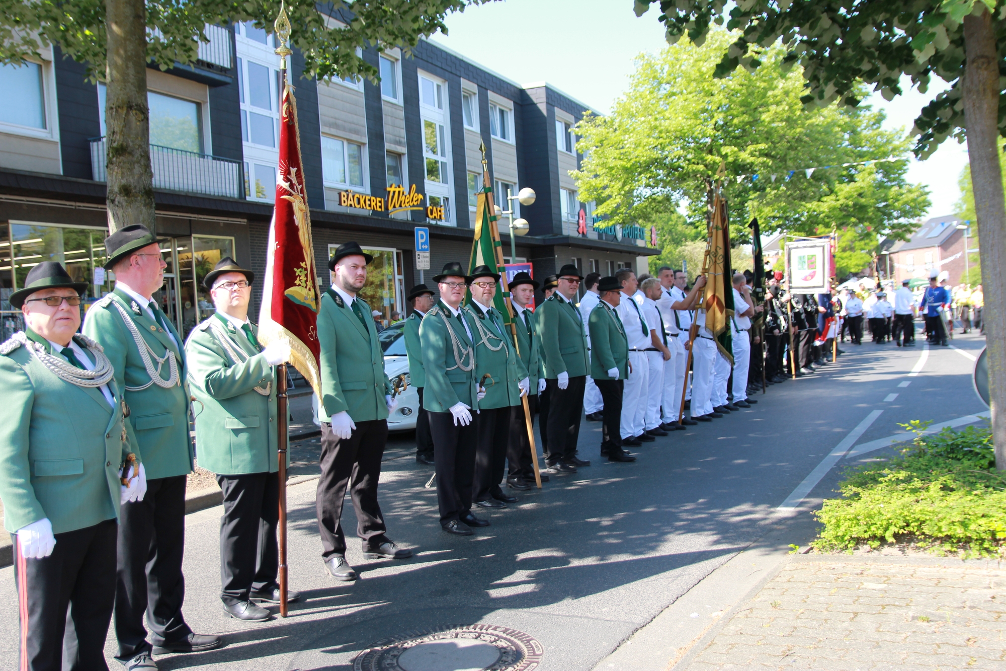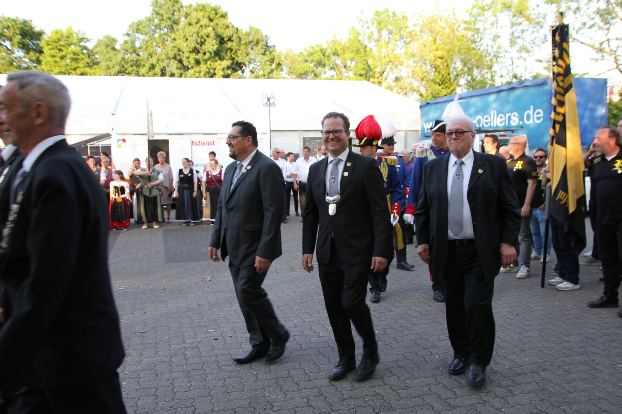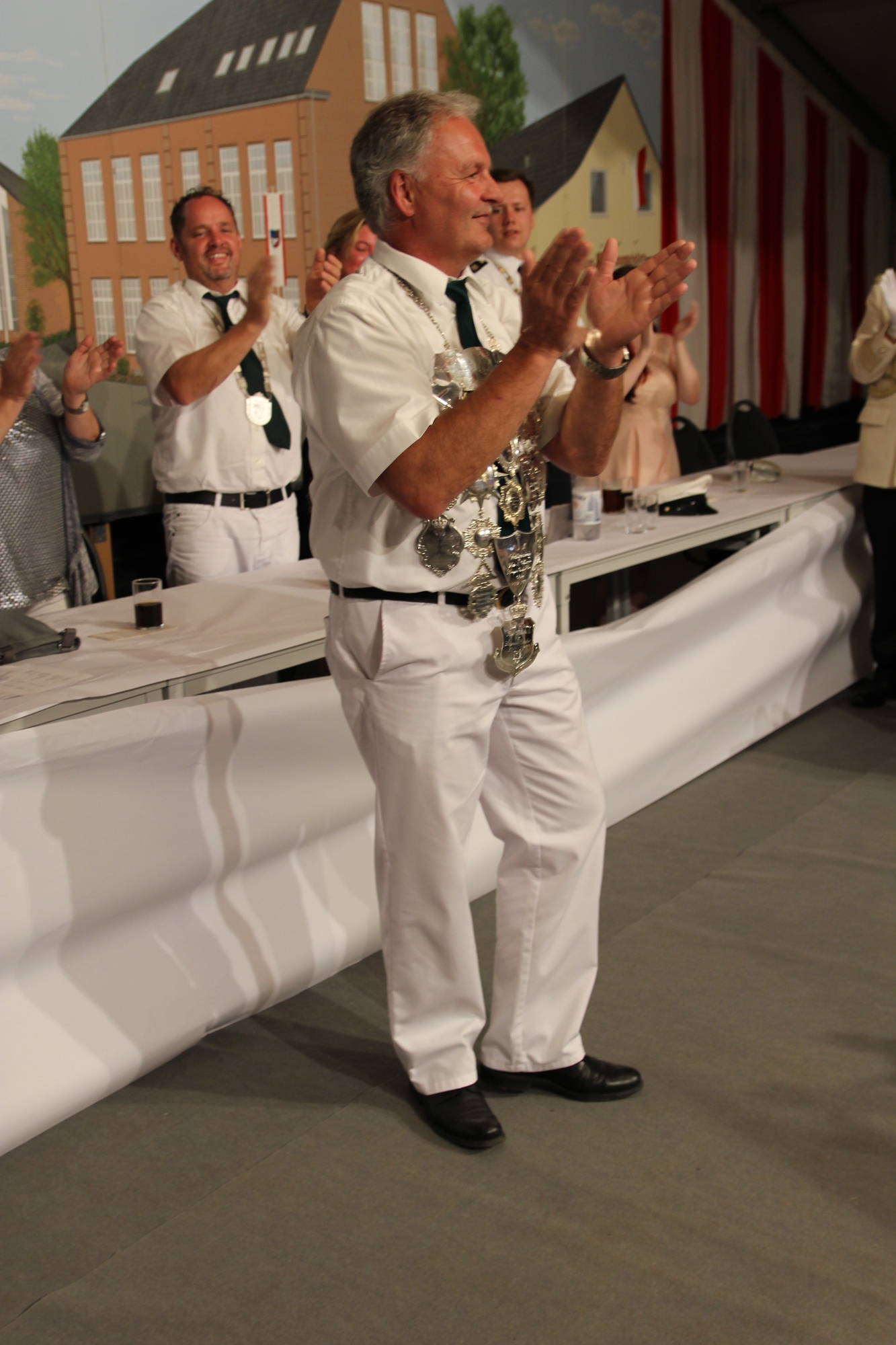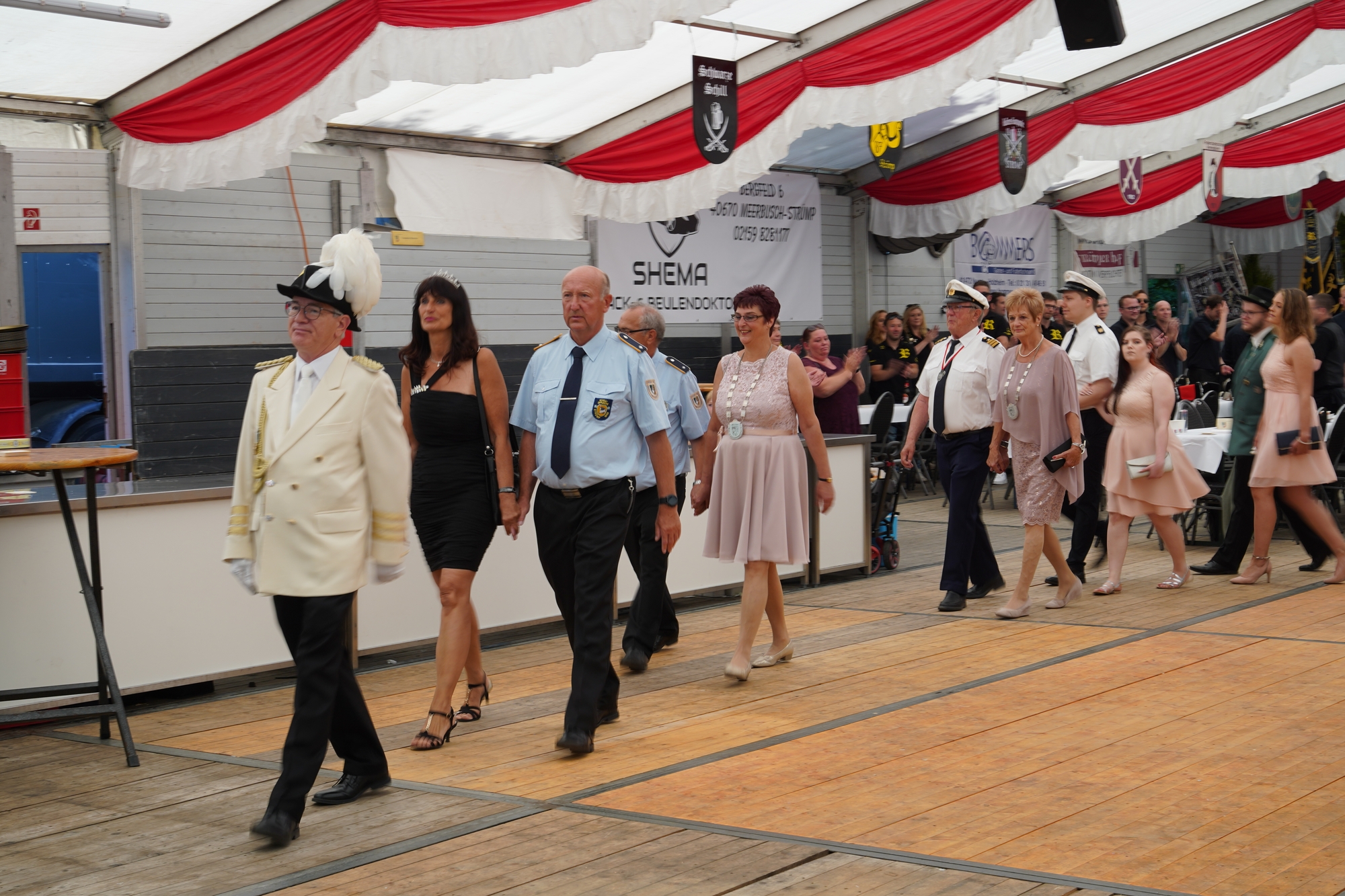 Wappen, Bühnenbild, Schützenbaum, Fahnen, Standarte