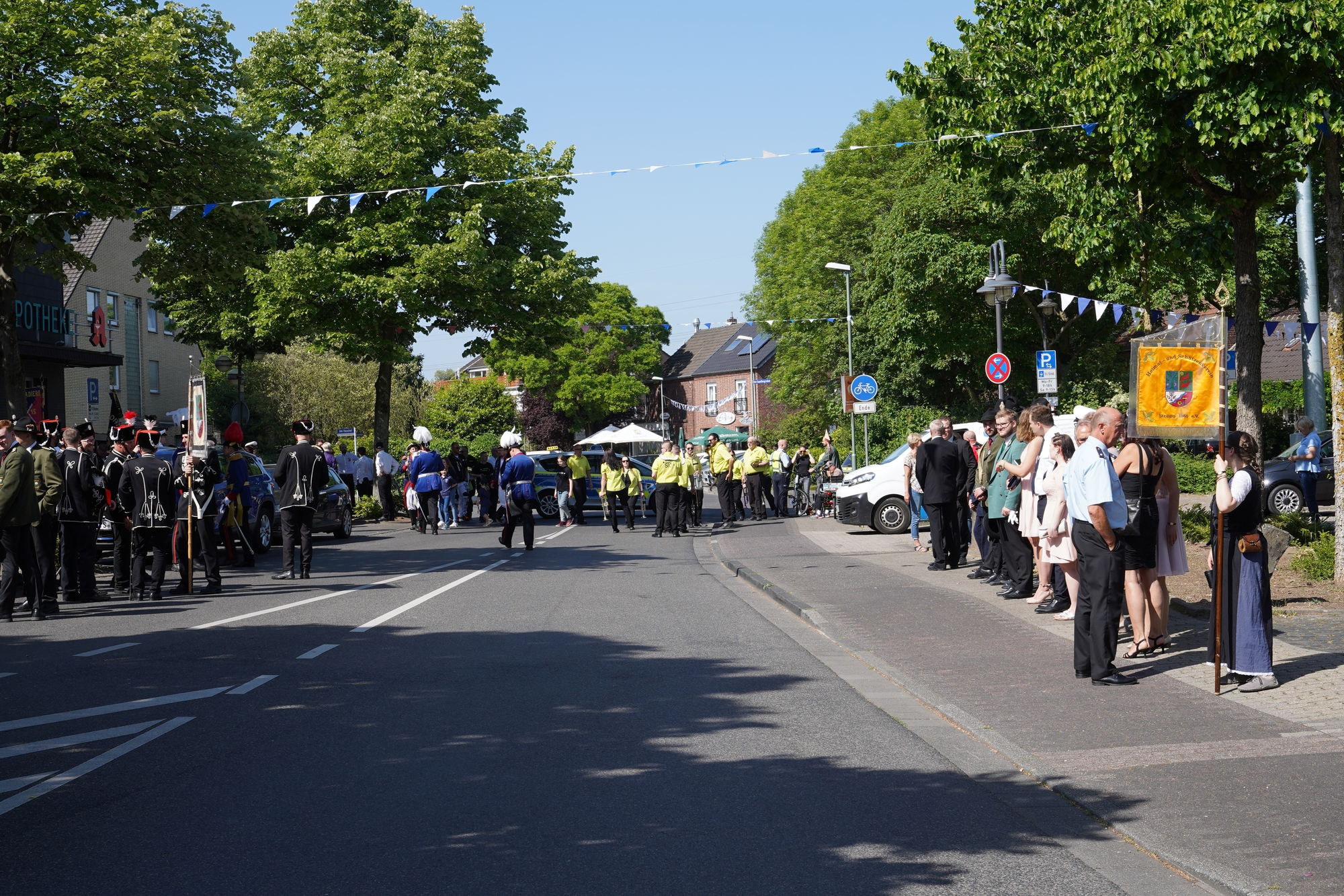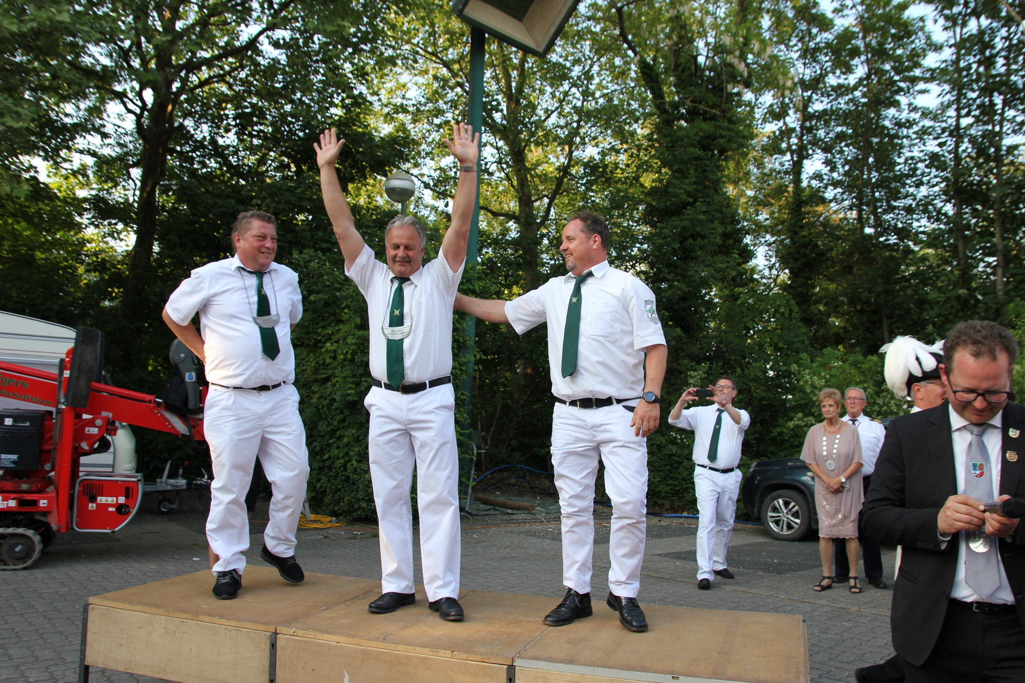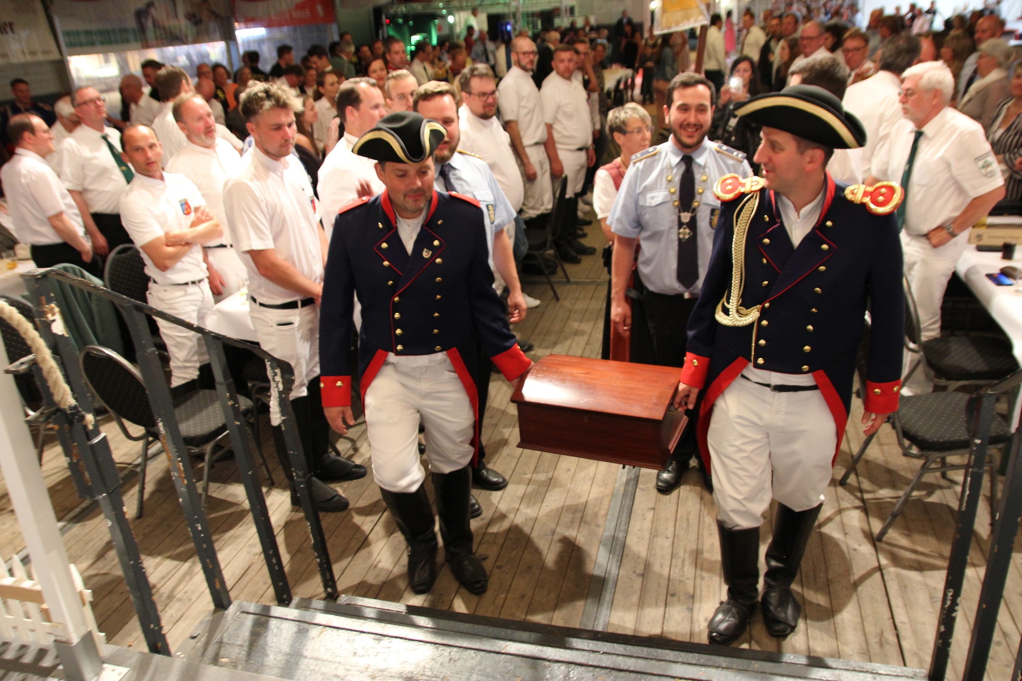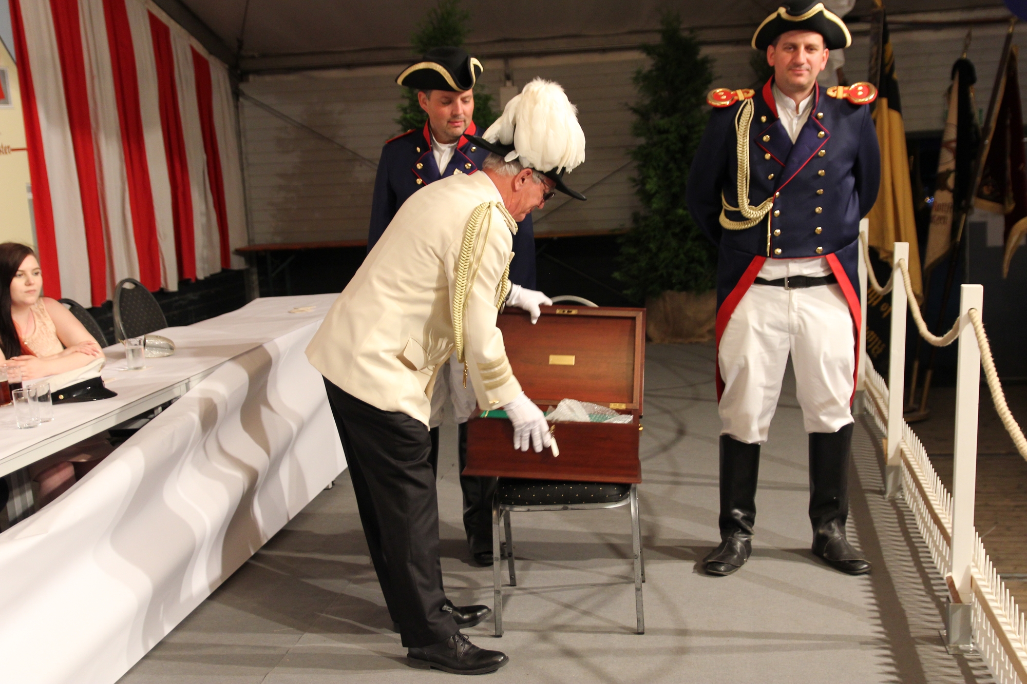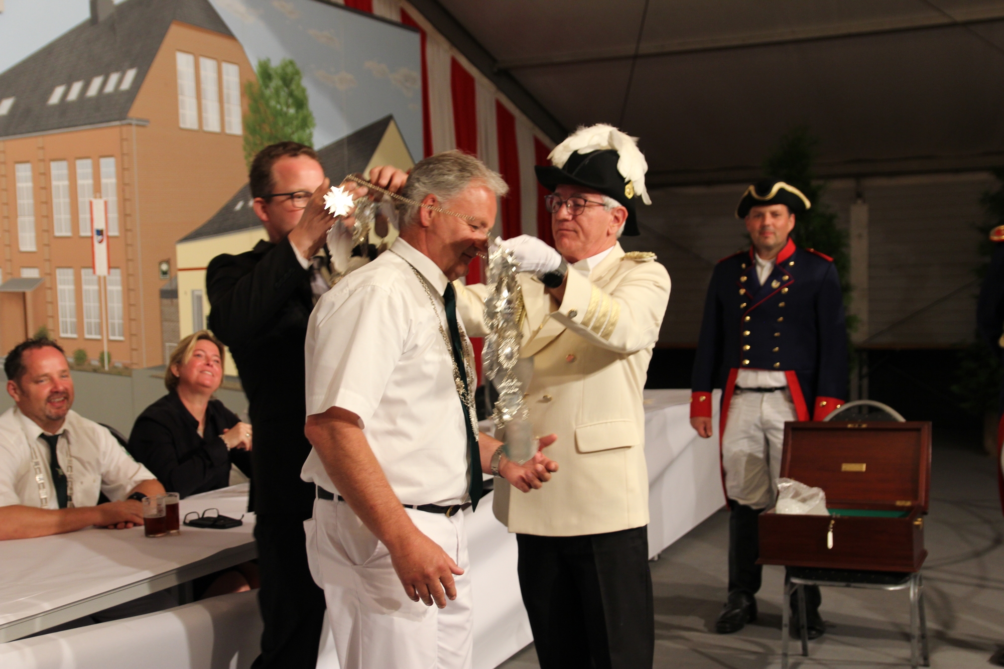 Wappen, Bühnenbild, Schützenbaum, Fahnen, Standarte