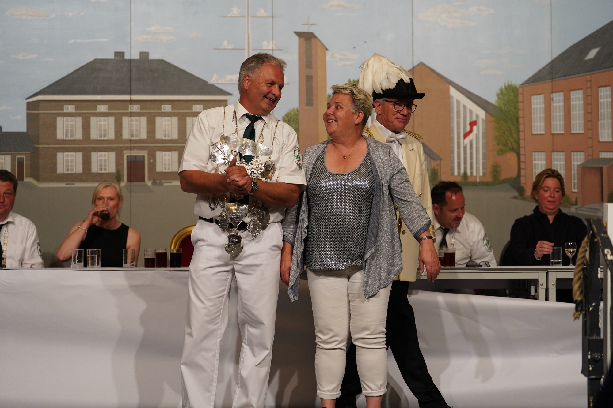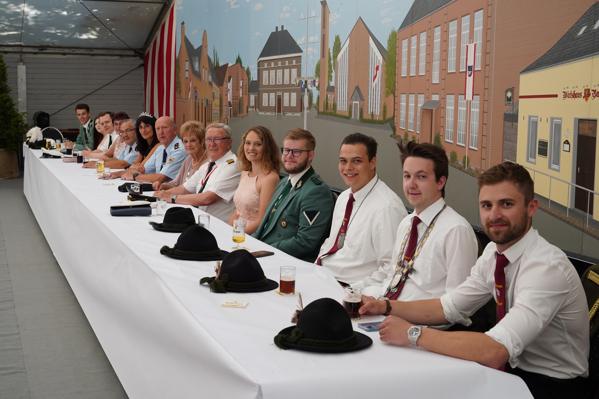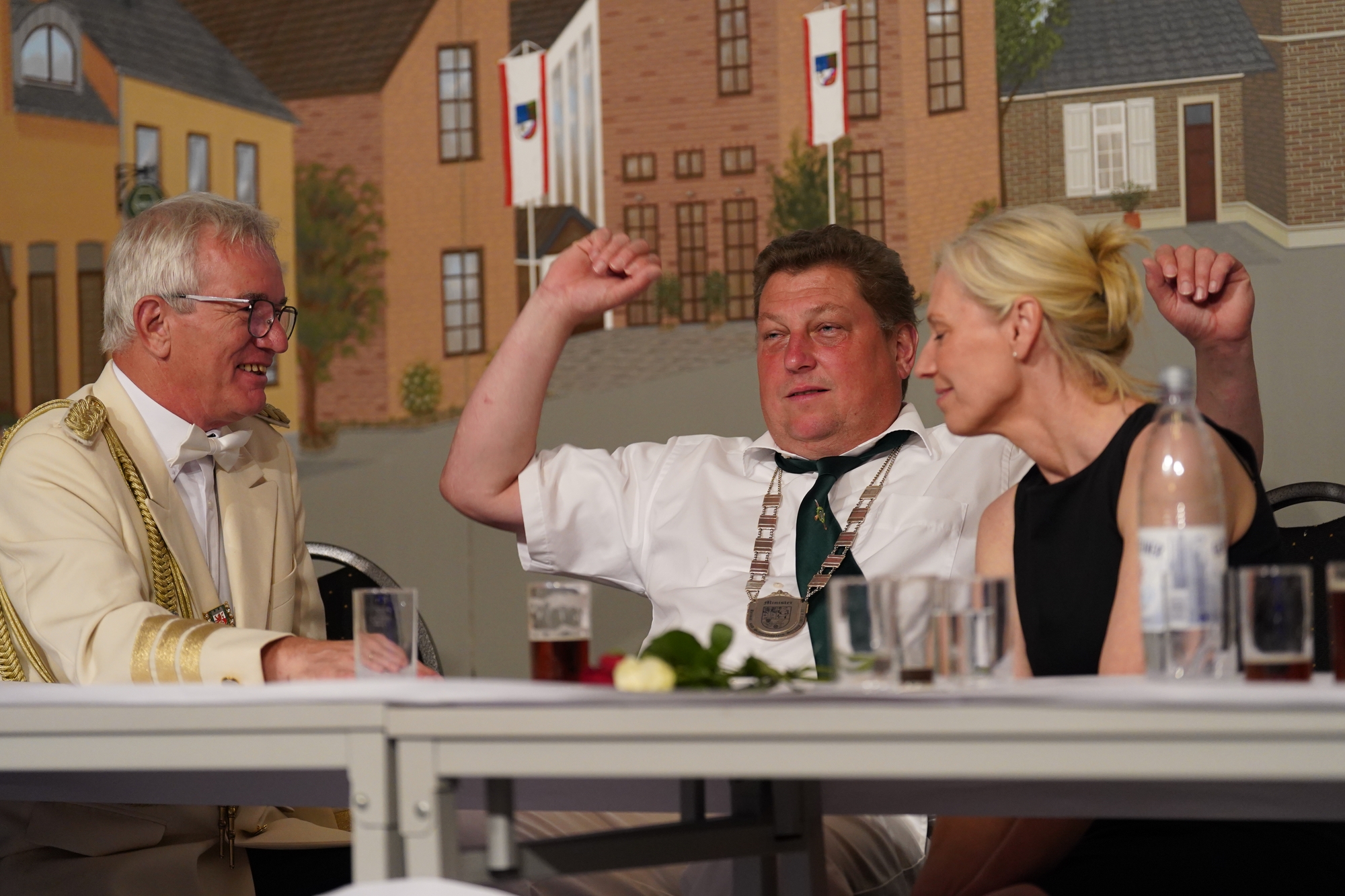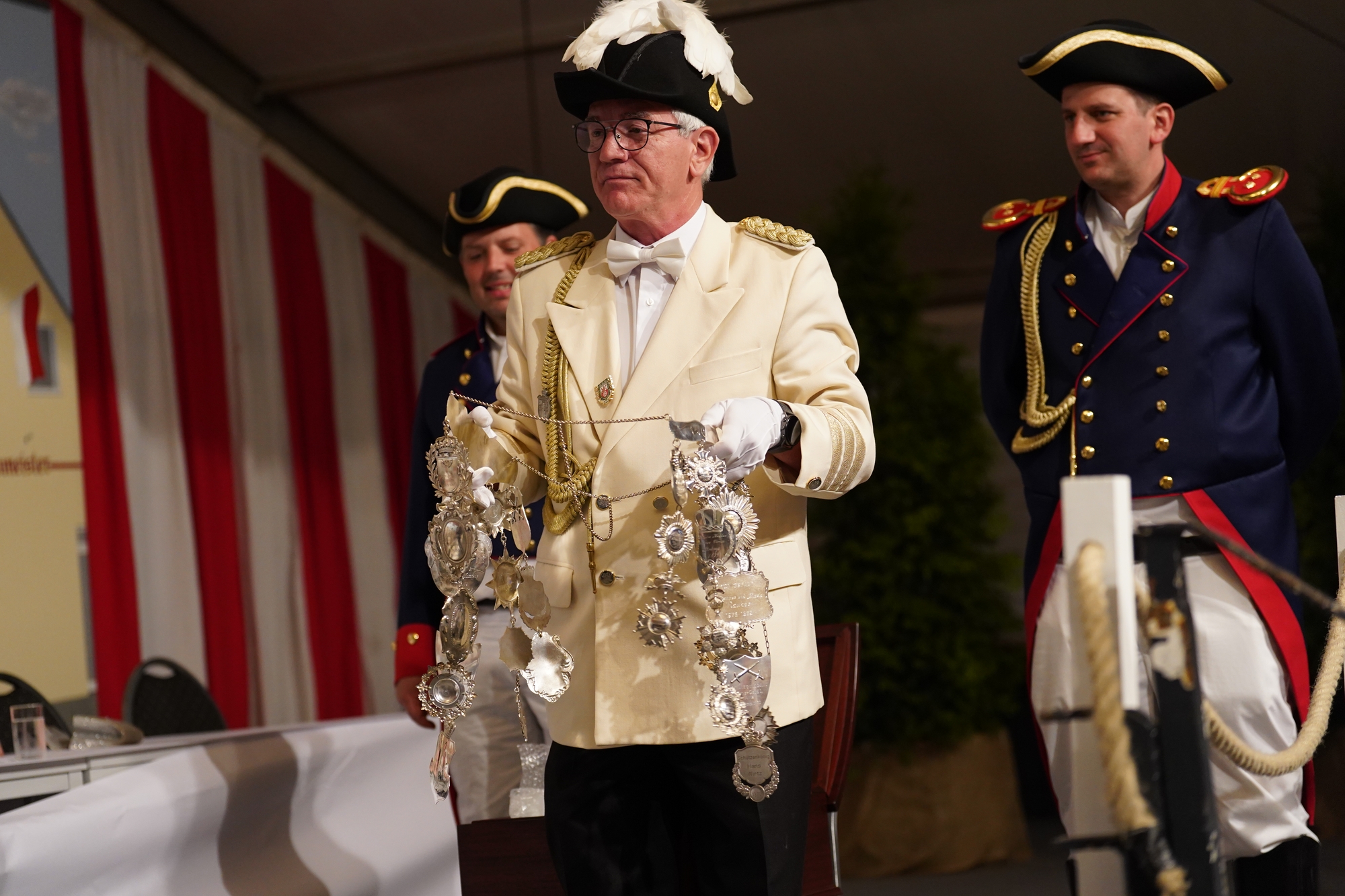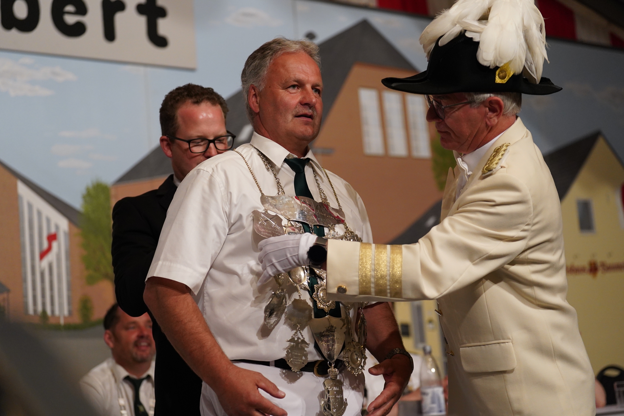 Wappen, Bühnenbild, Schützenbaum, Fahnen, Standarte