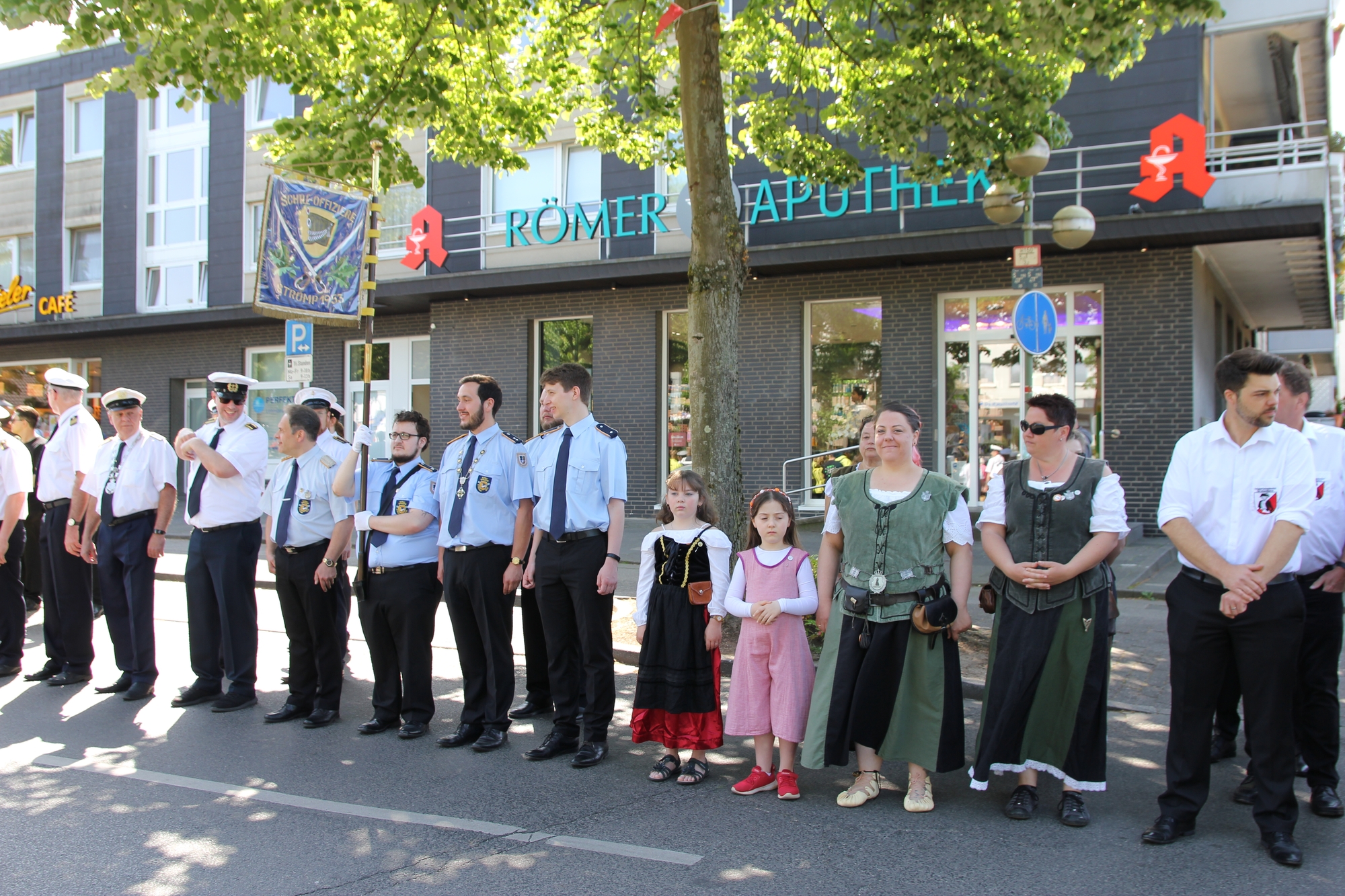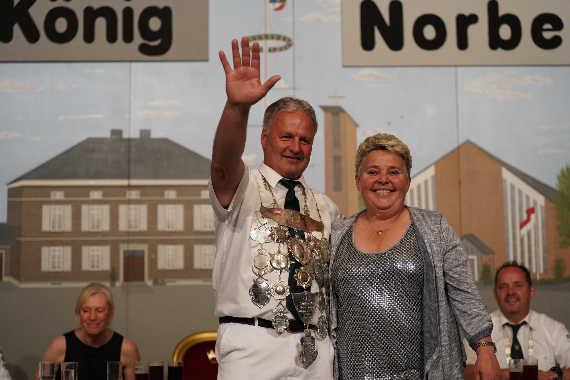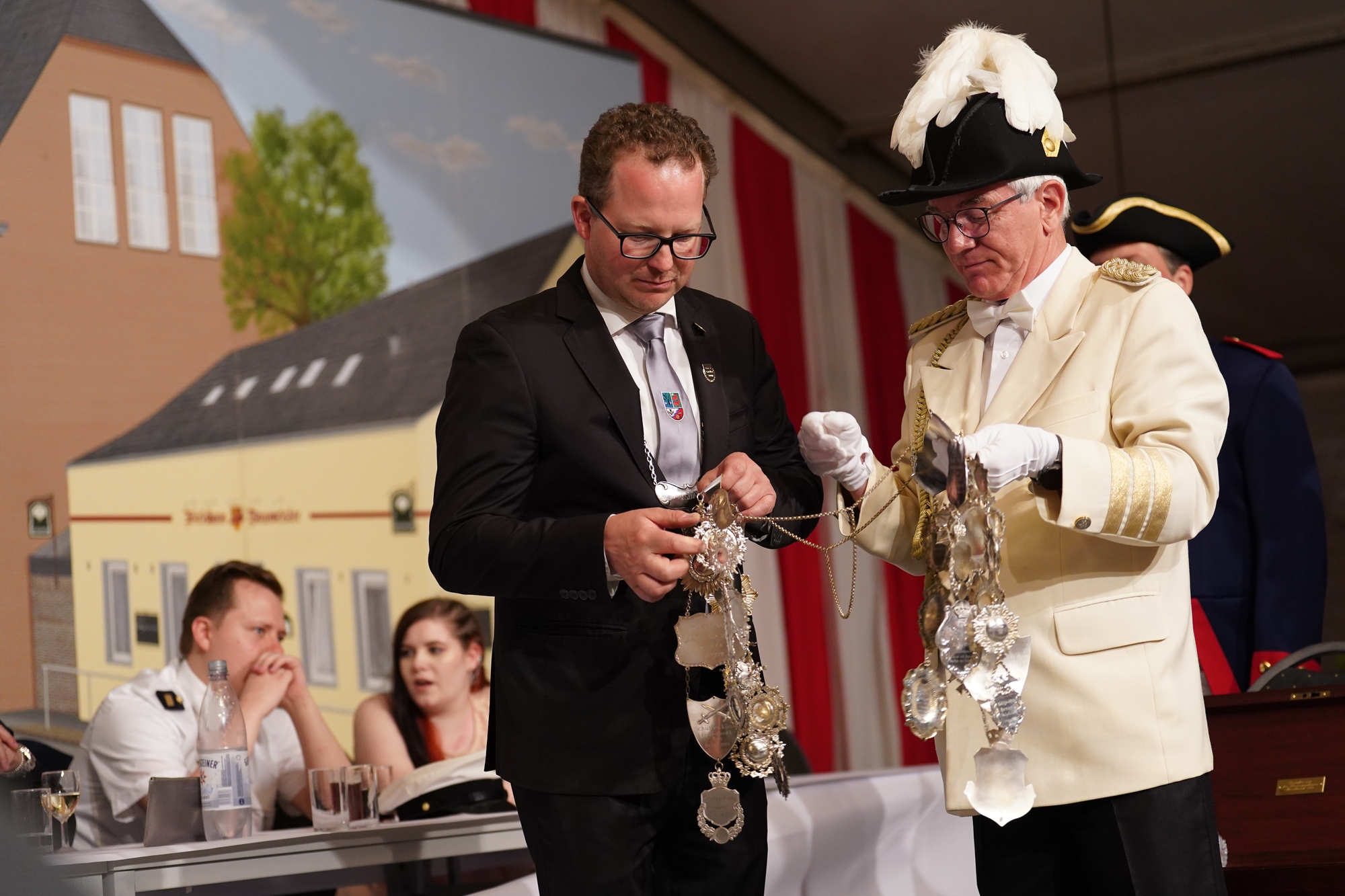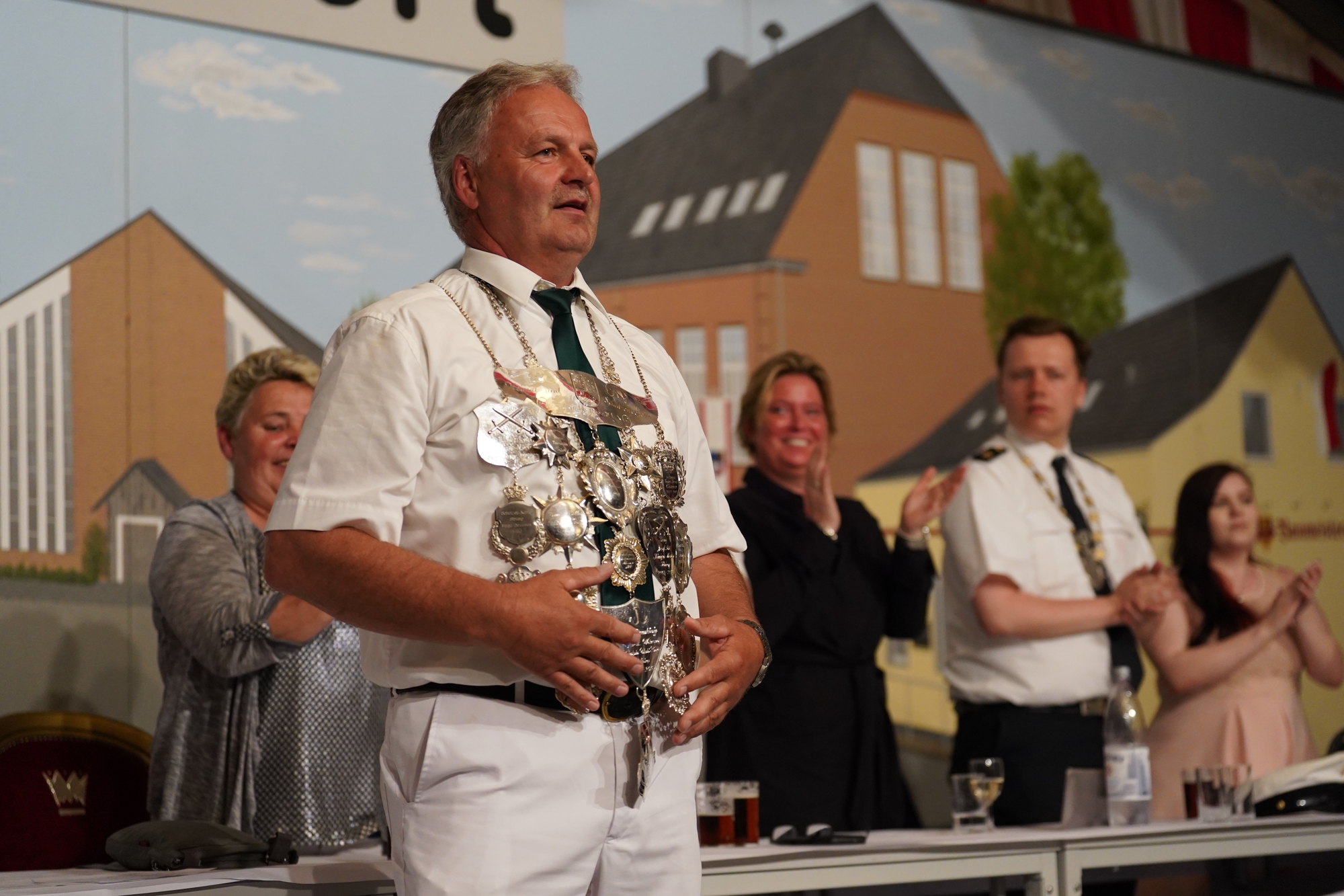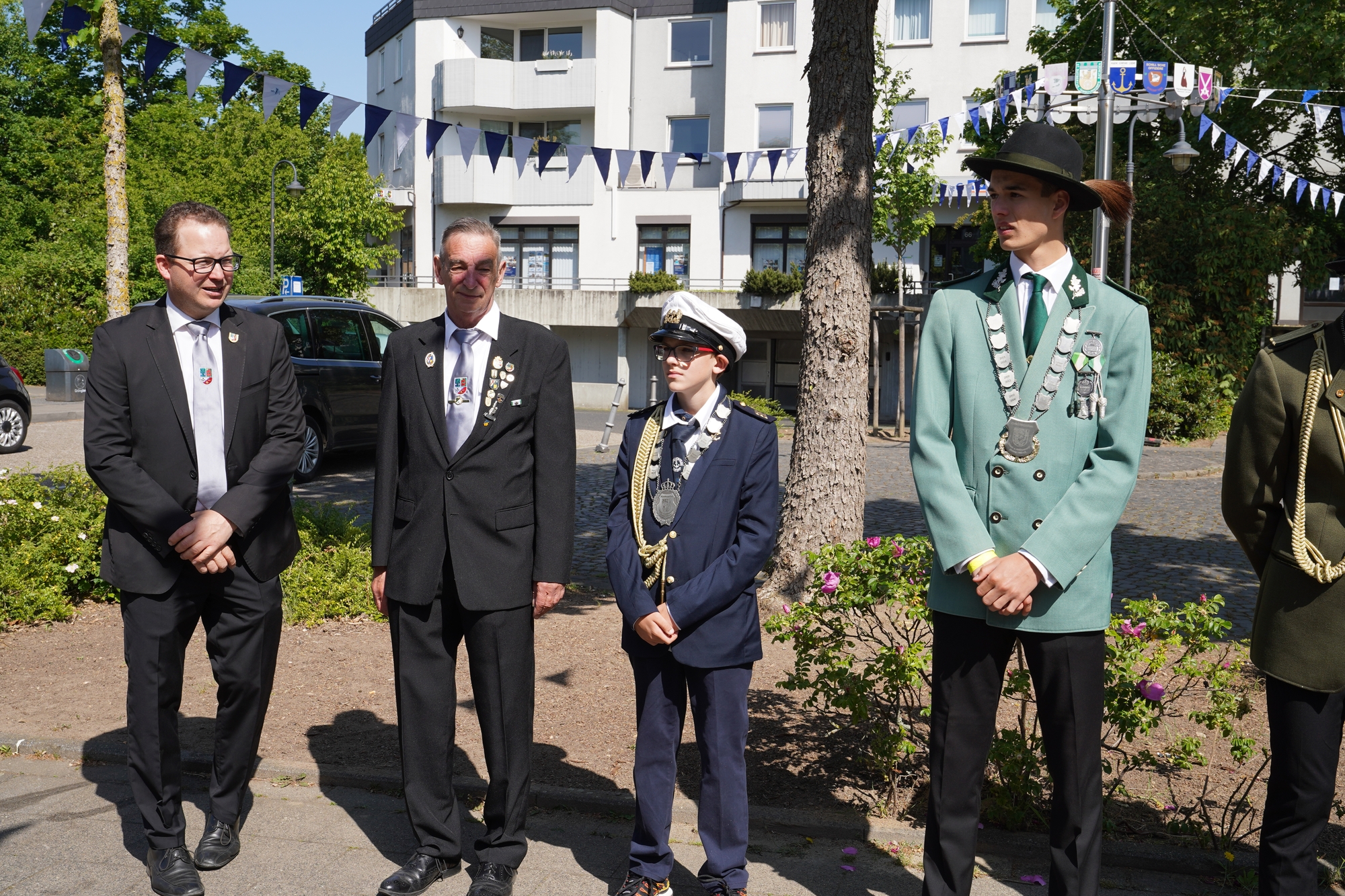 Wappen, Bühnenbild, Schützenbaum, Fahnen, Standarte