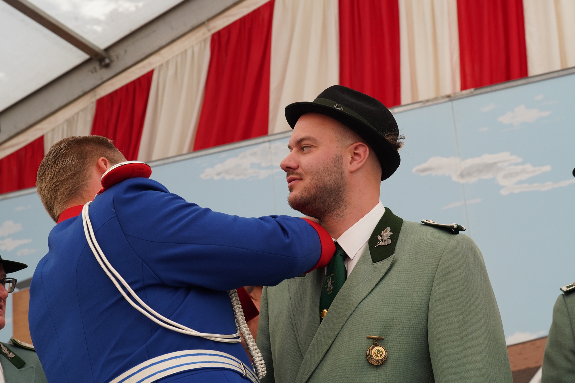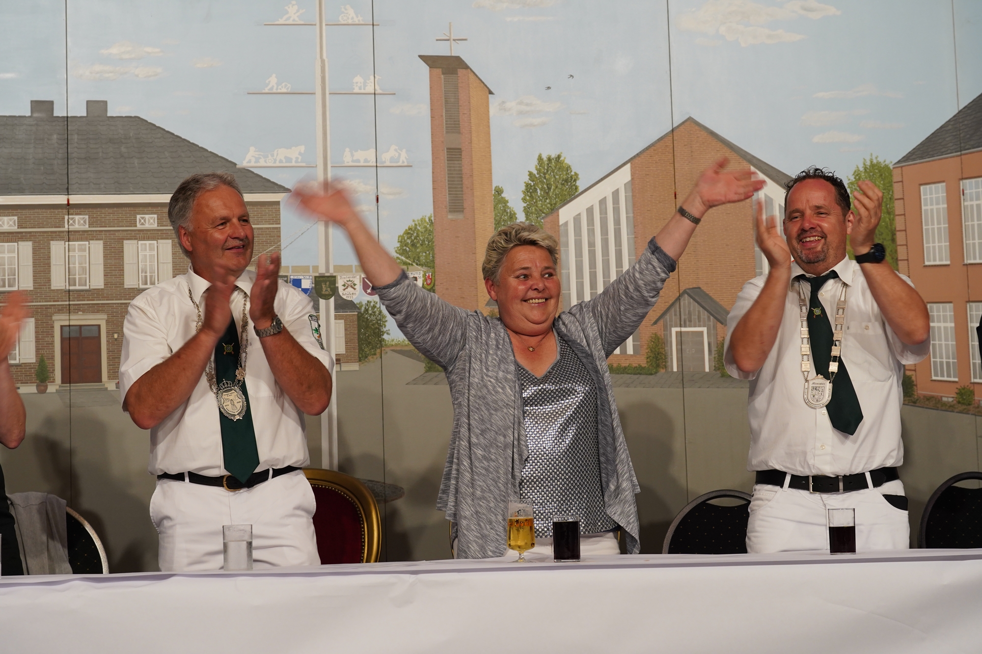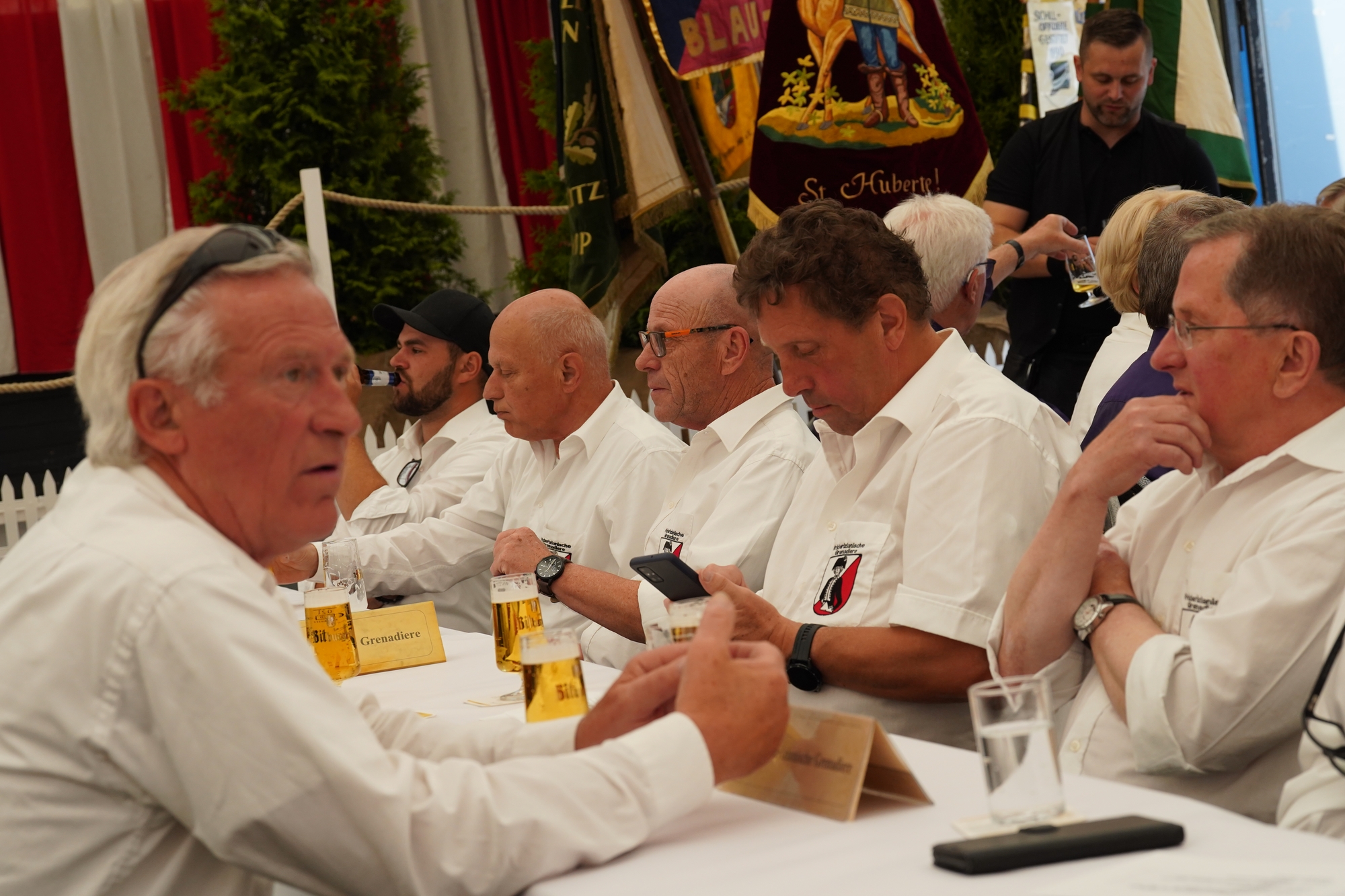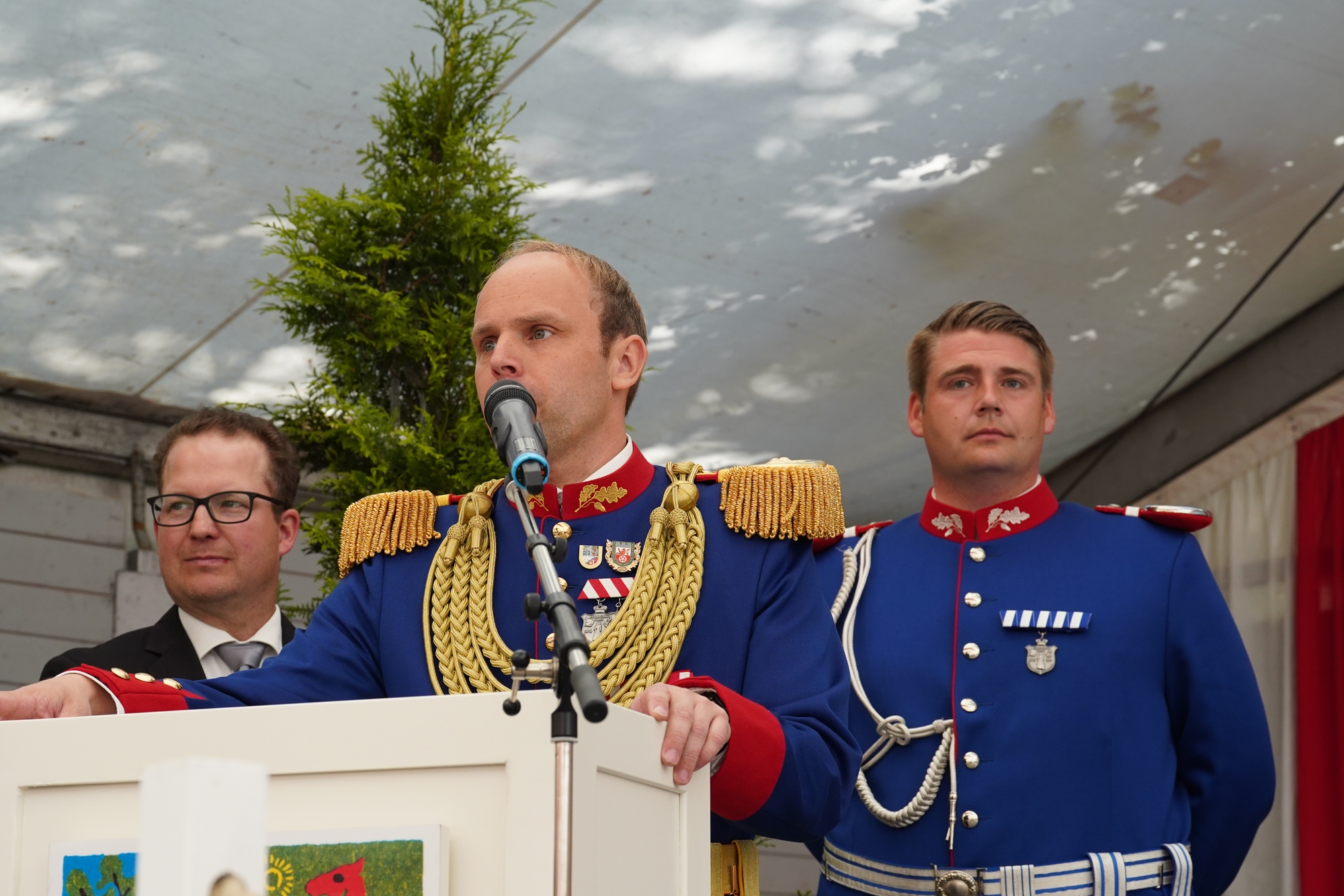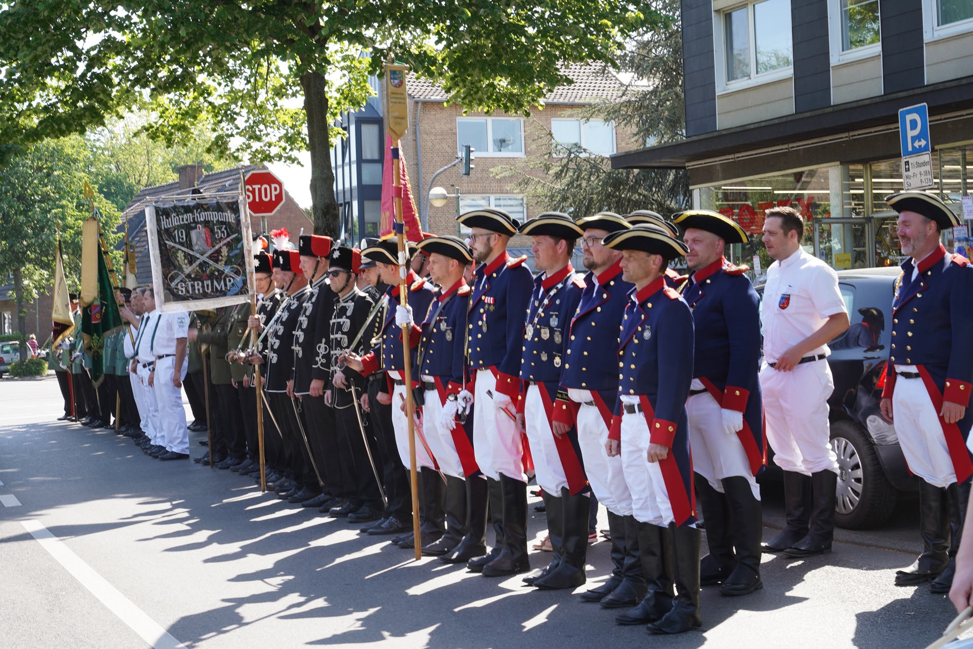 Wappen, Bühnenbild, Schützenbaum, Fahnen, Standarte
