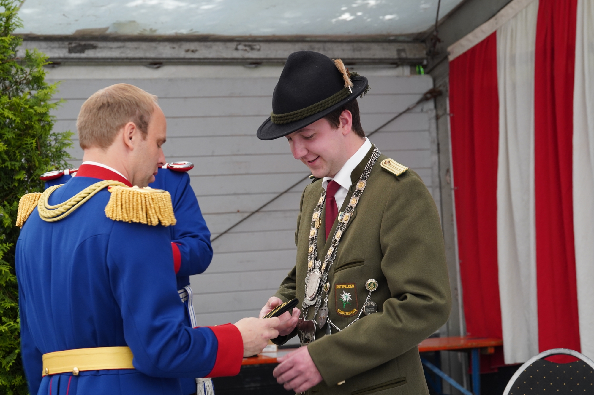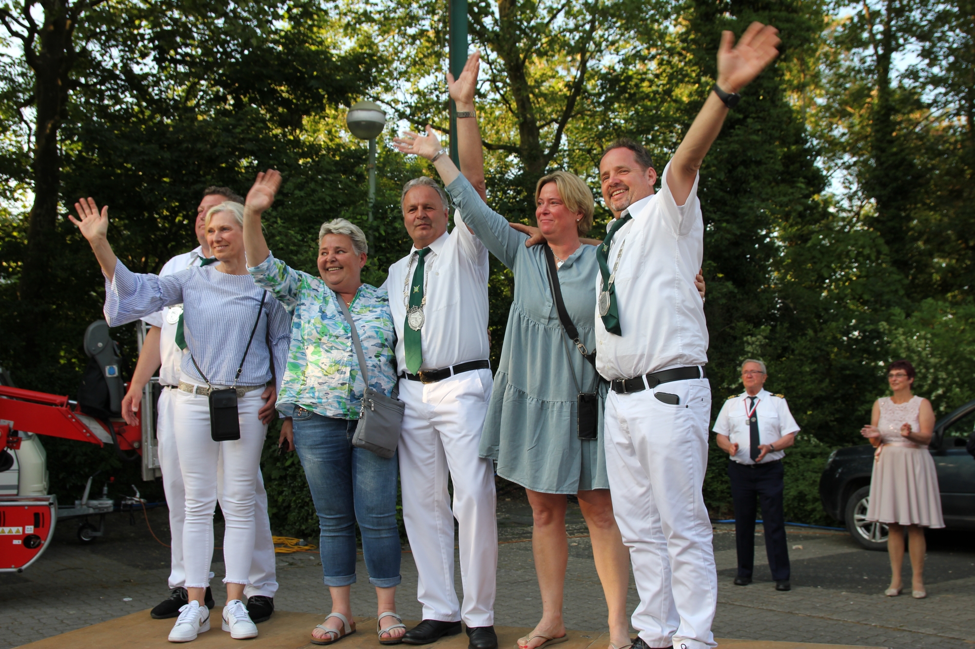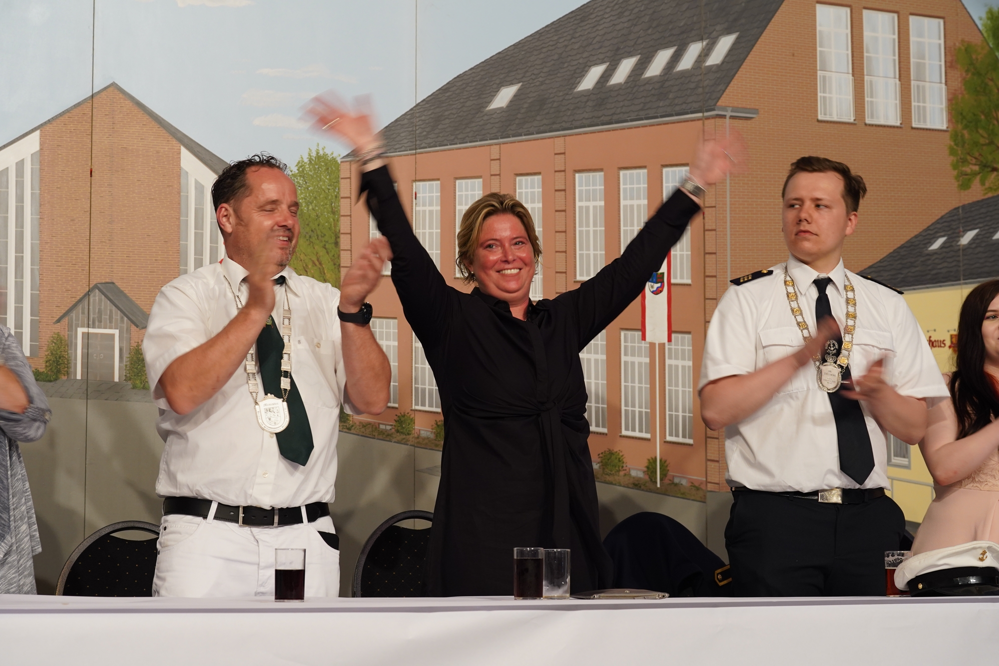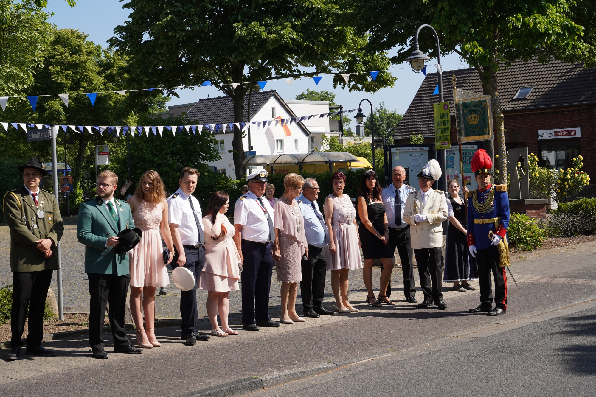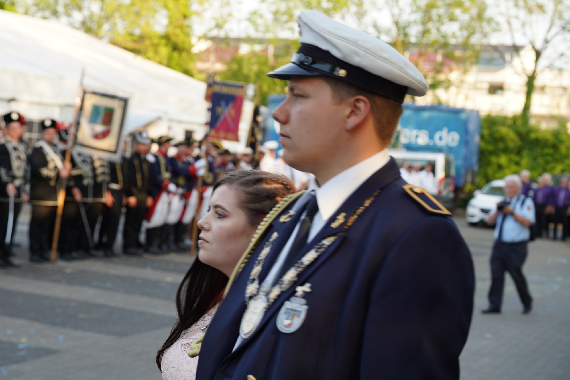 Wappen, Bühnenbild, Schützenbaum, Fahnen, Standarte