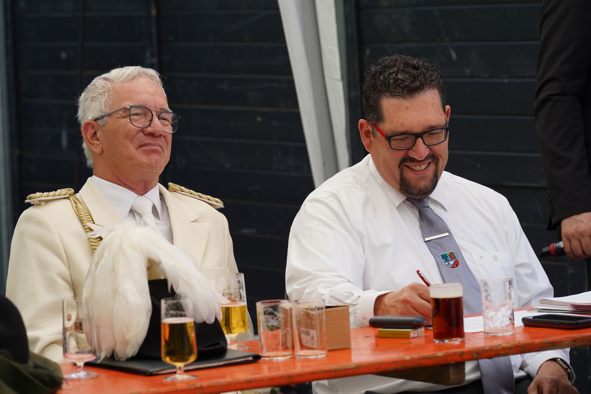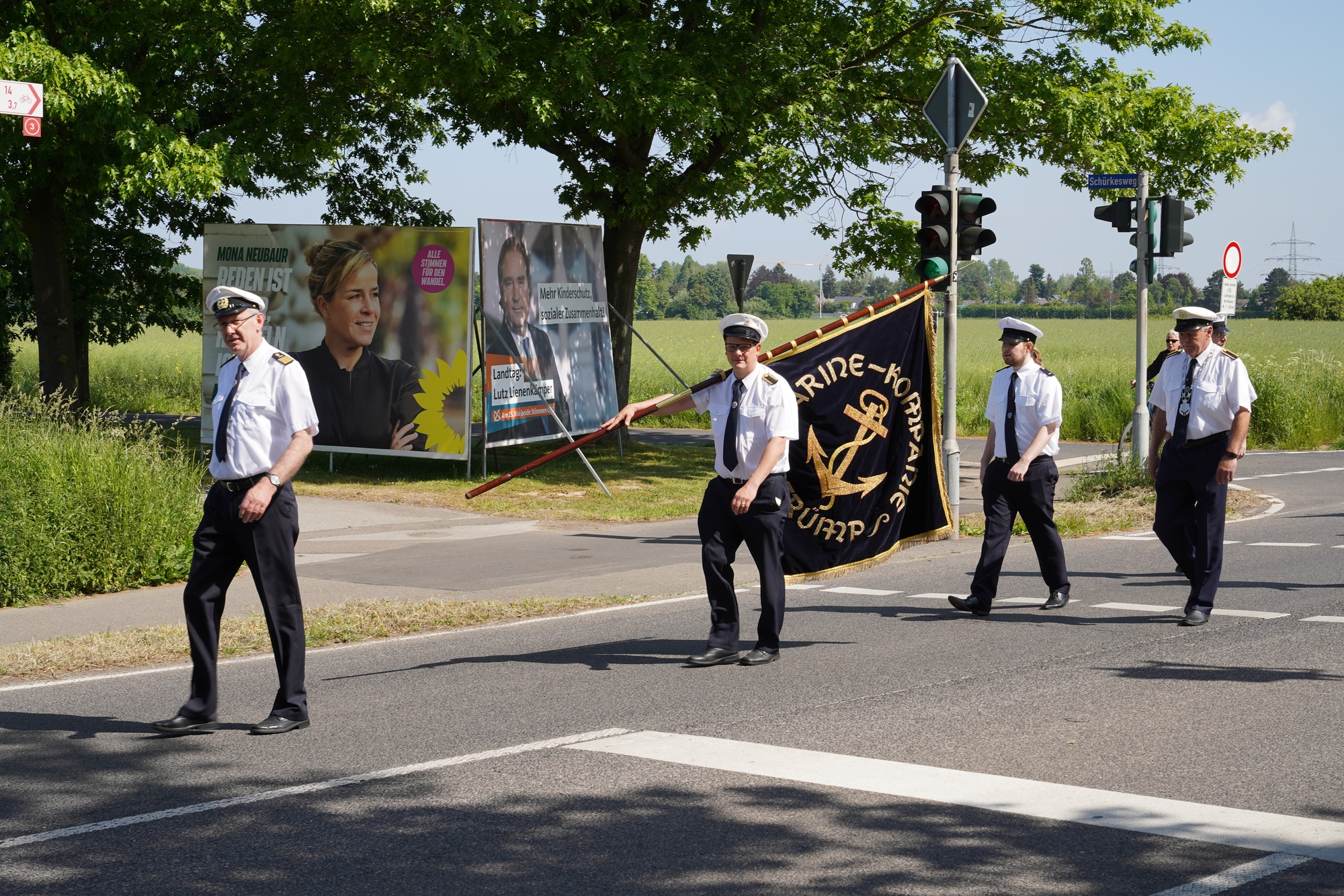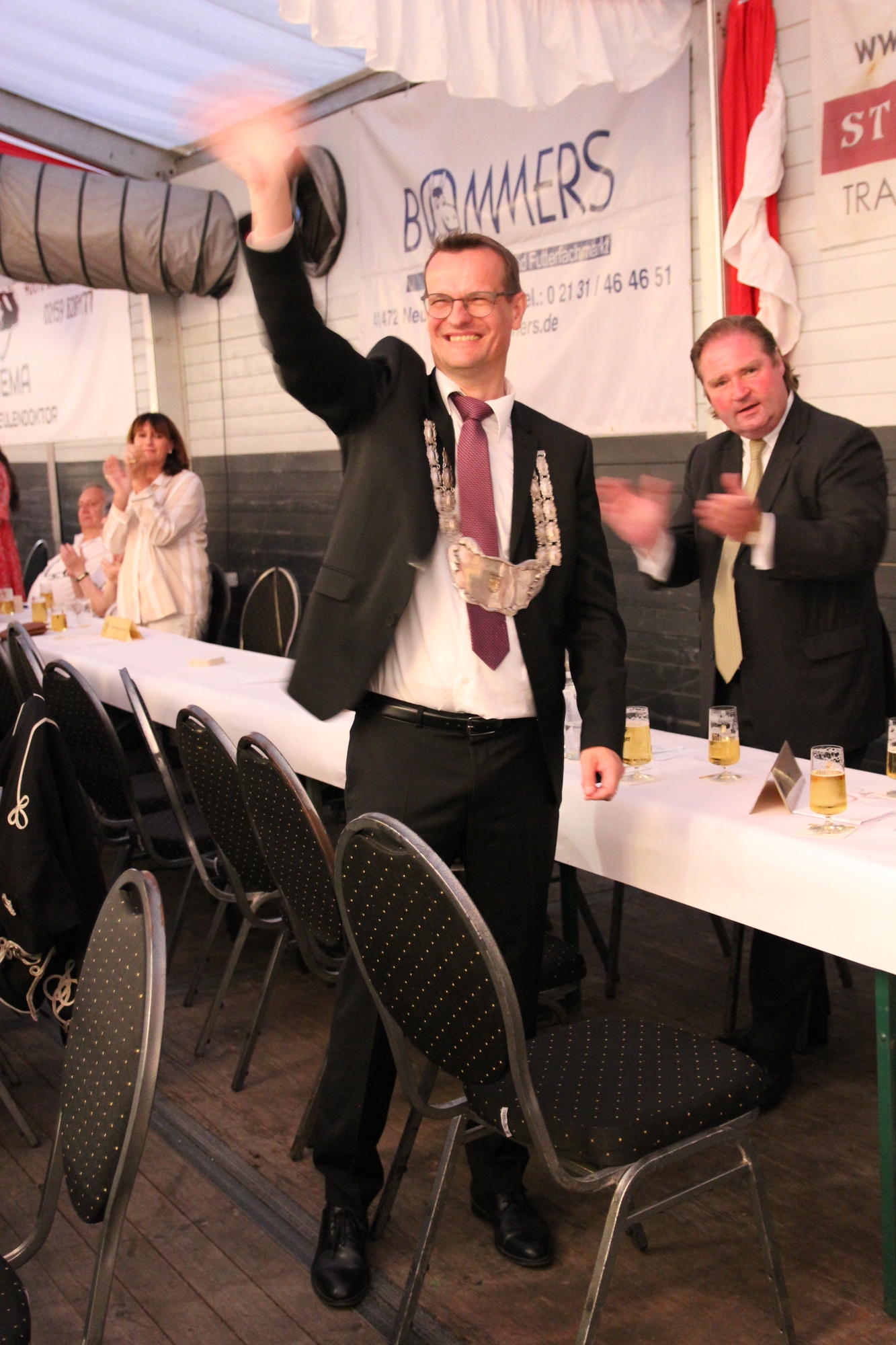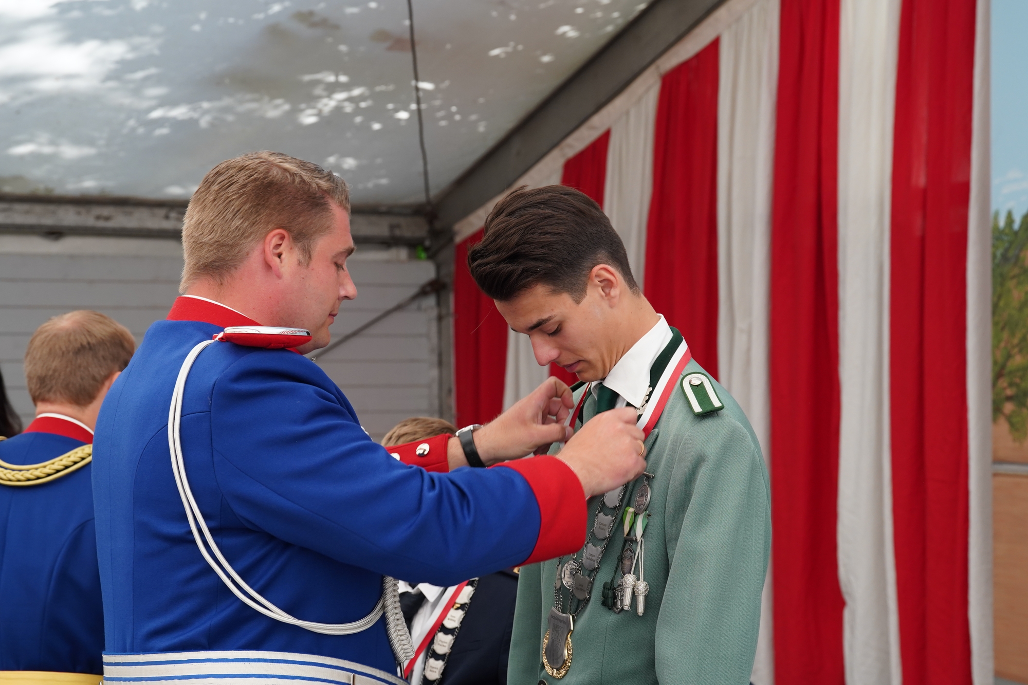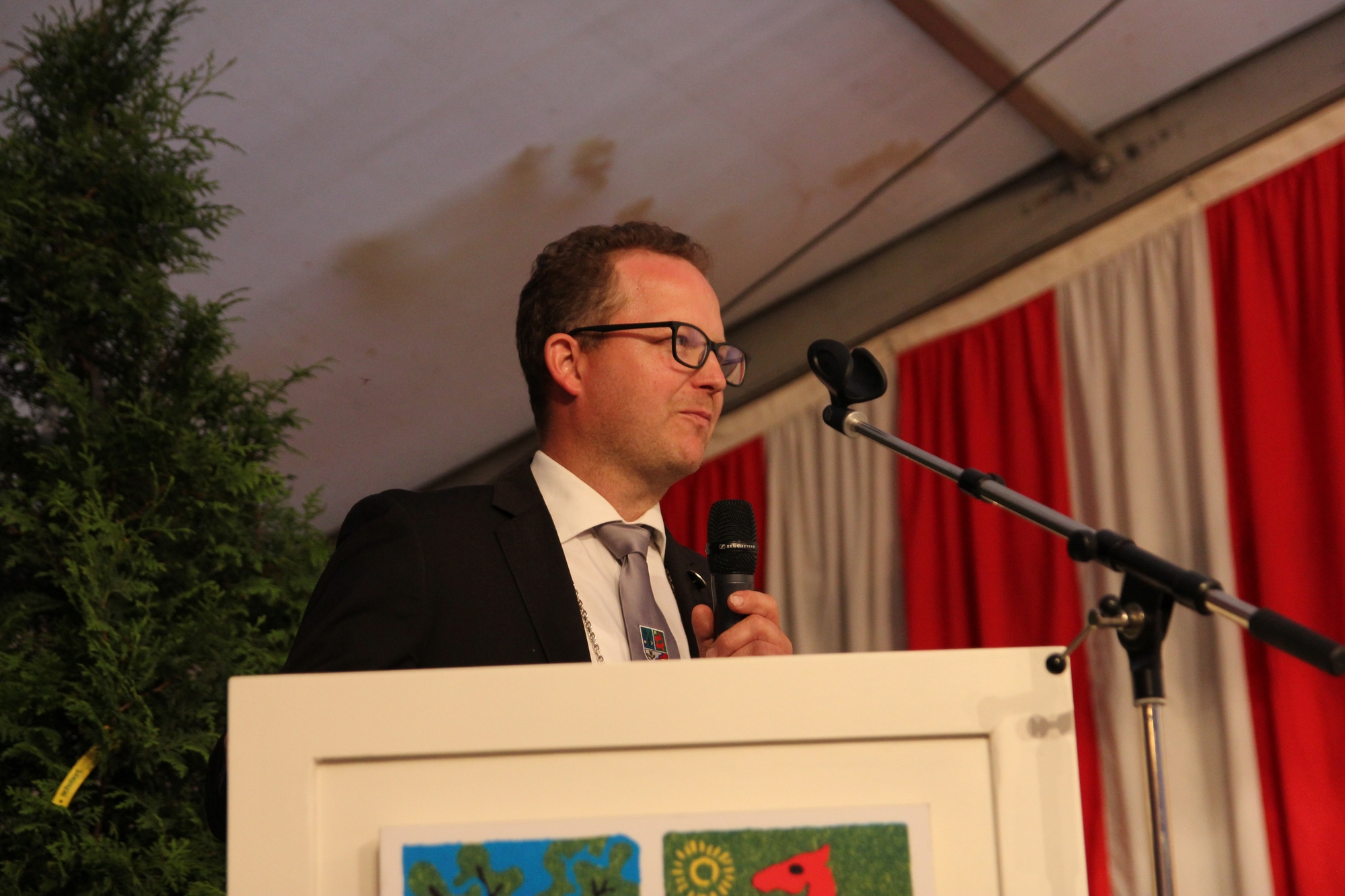 Wappen, Bühnenbild, Schützenbaum, Fahnen, Standarte