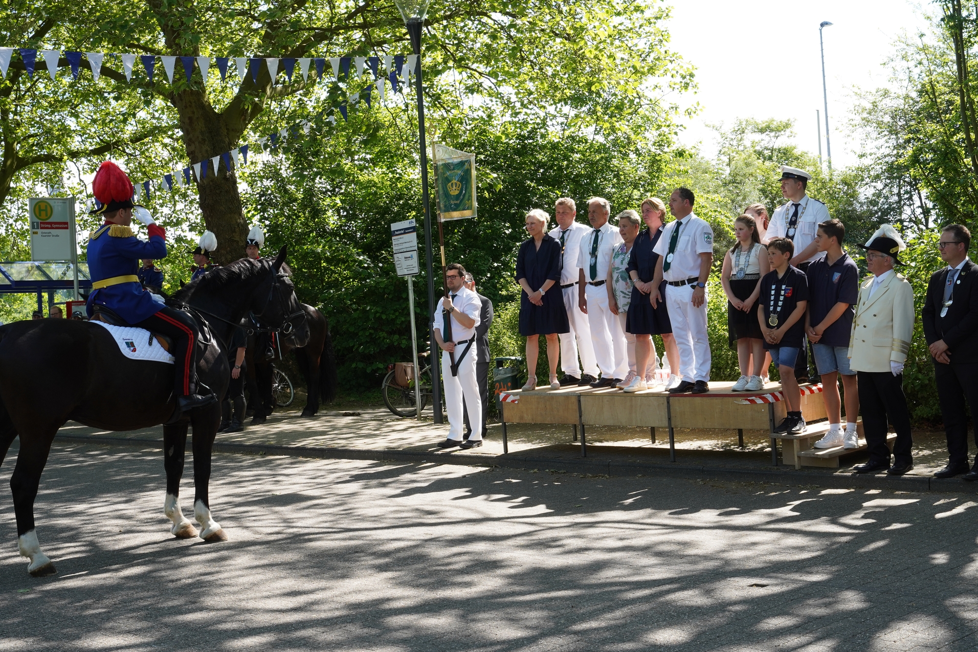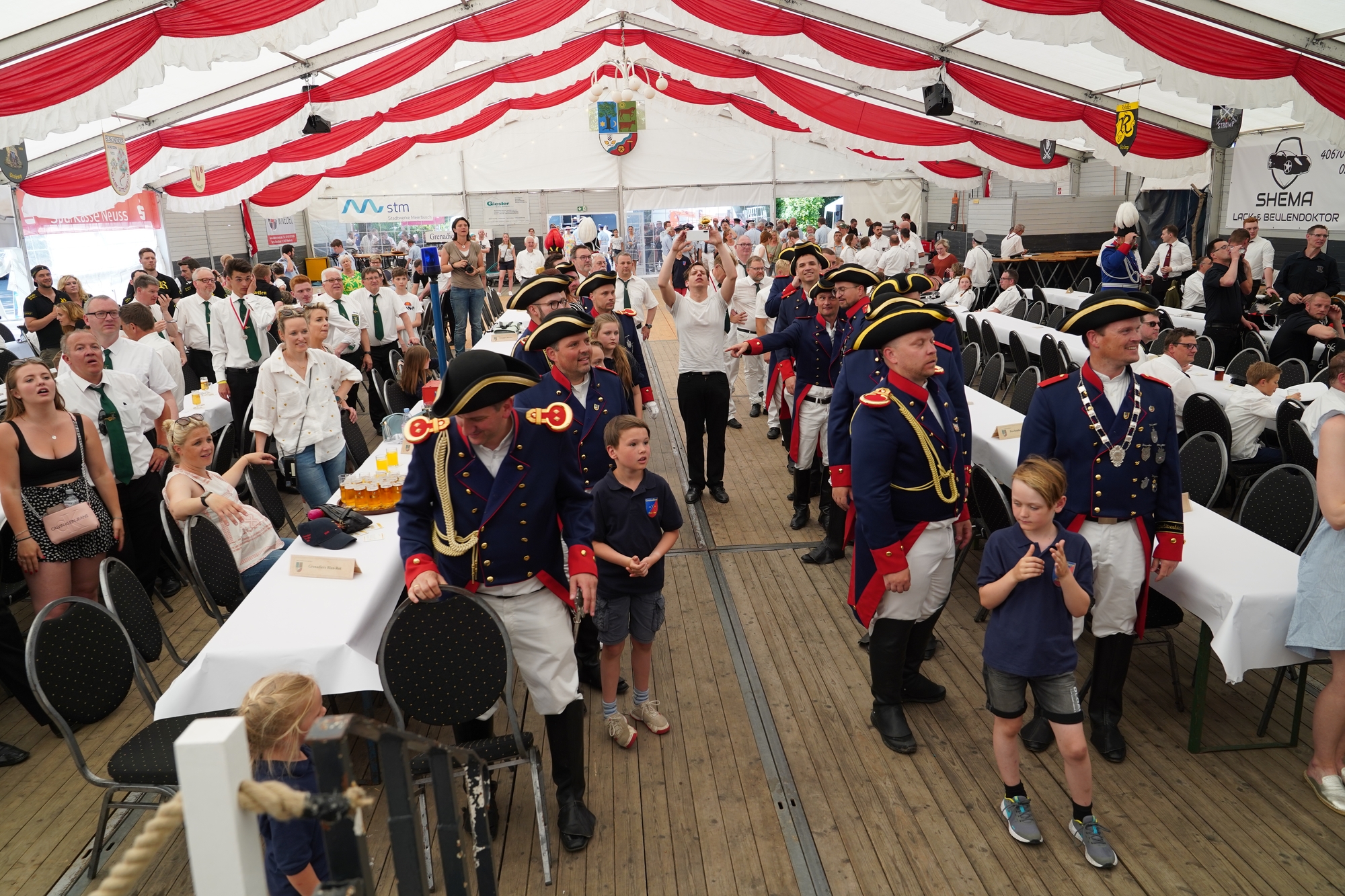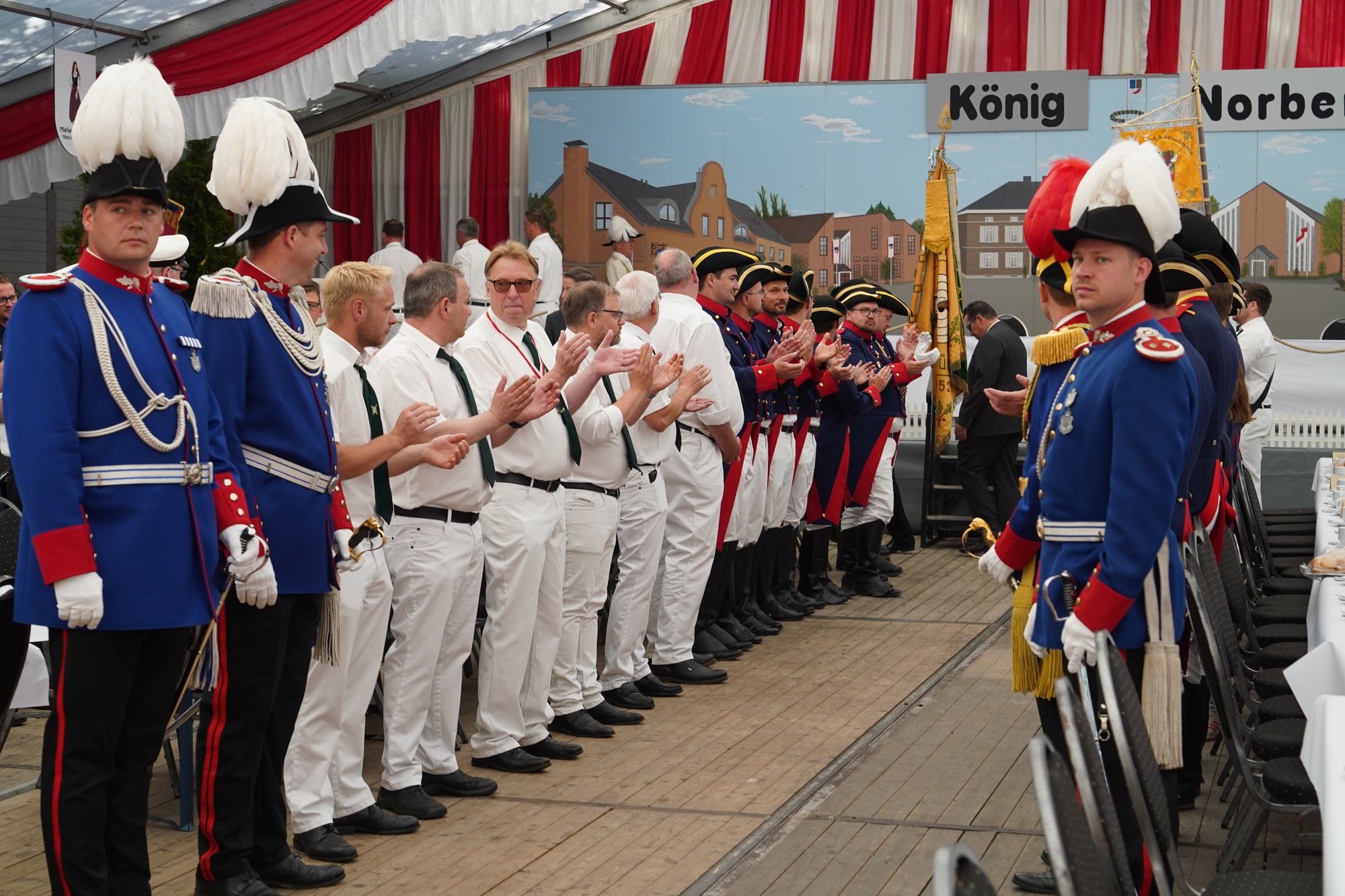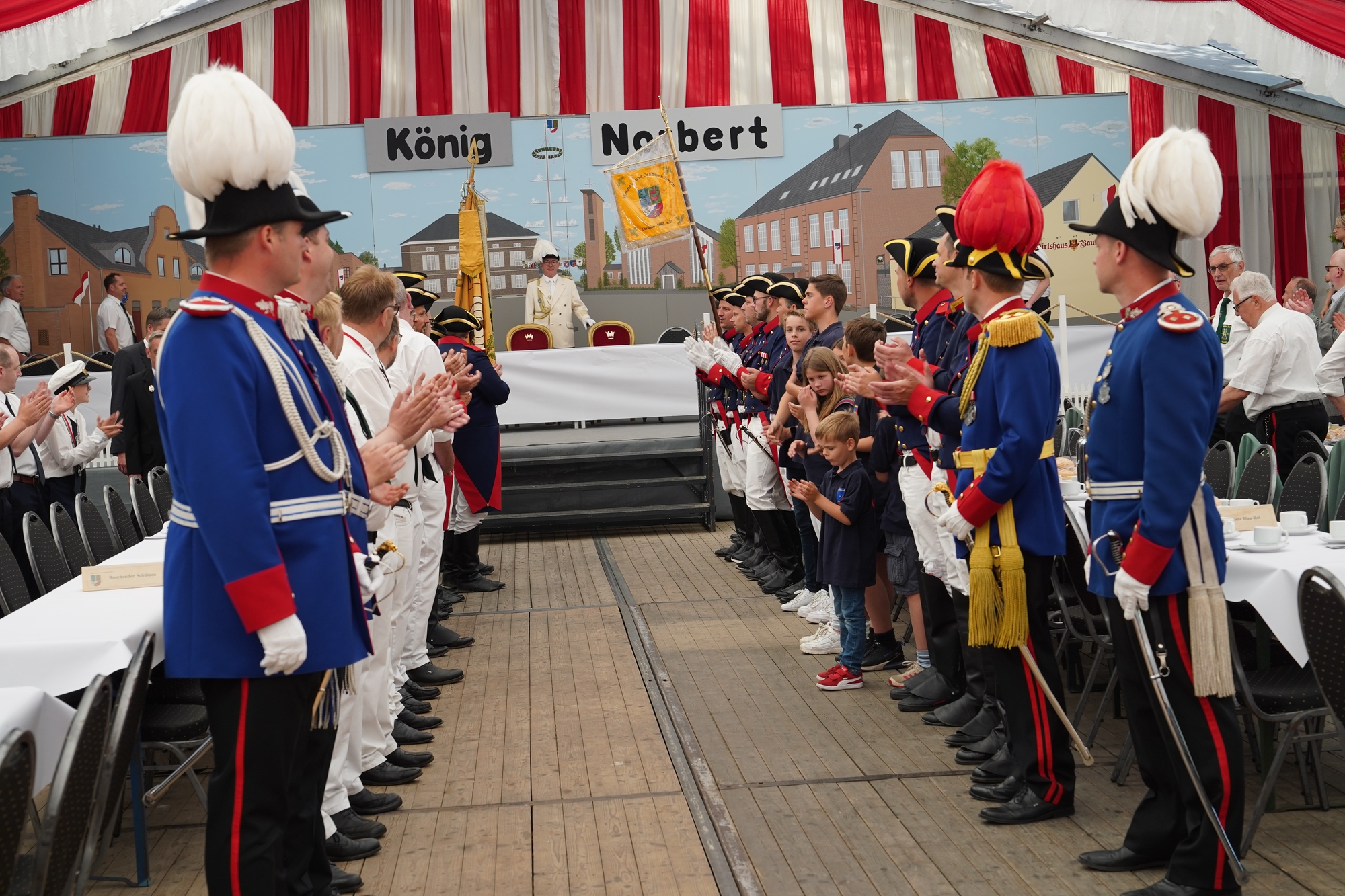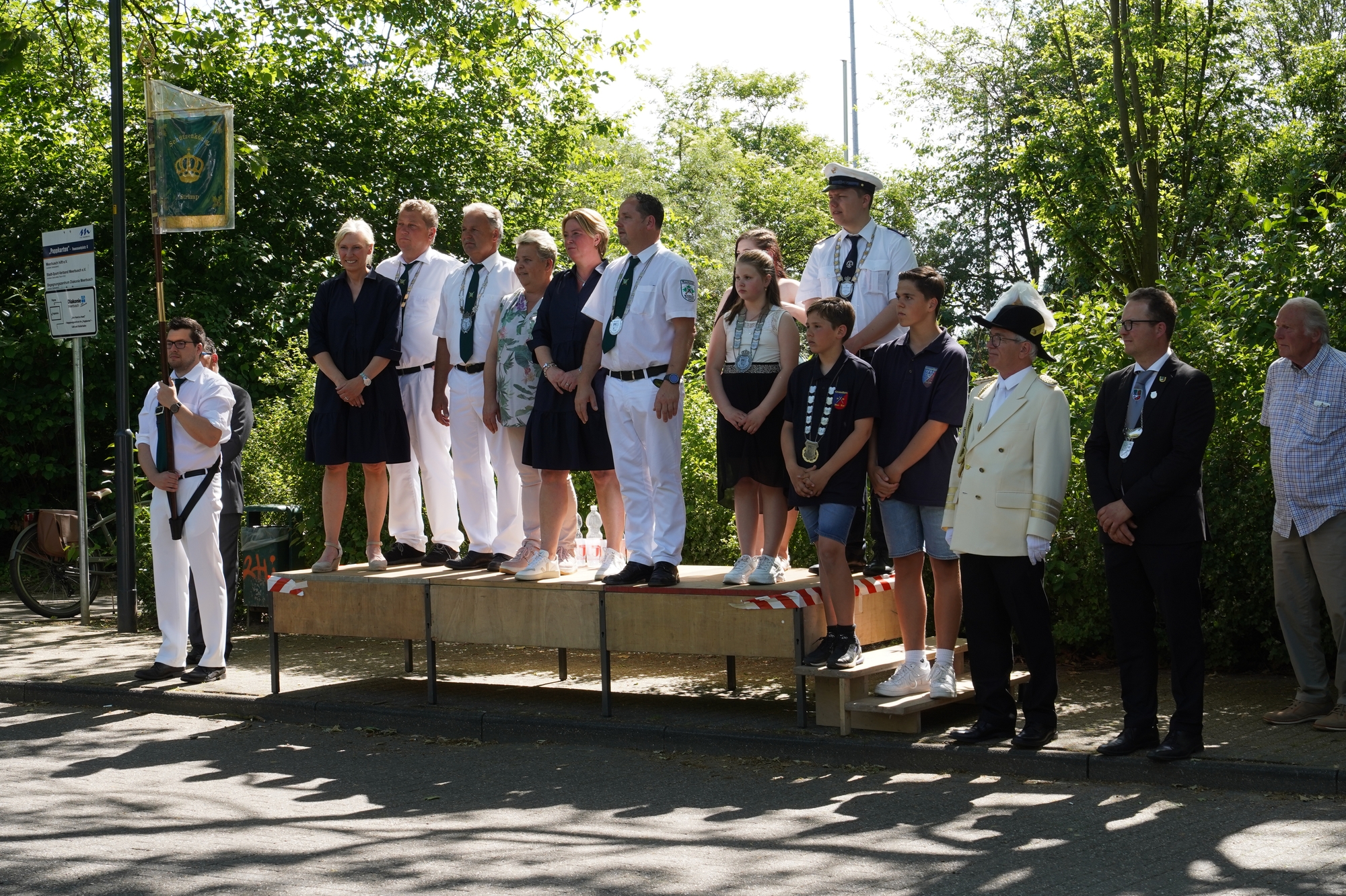 Wappen, Bühnenbild, Schützenbaum, Fahnen, Standarte