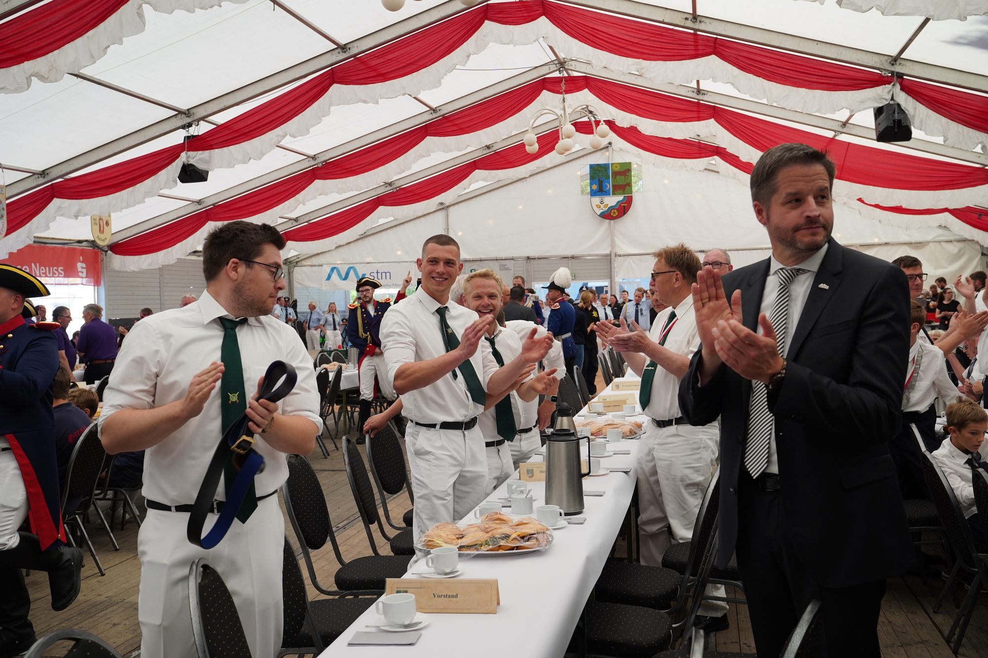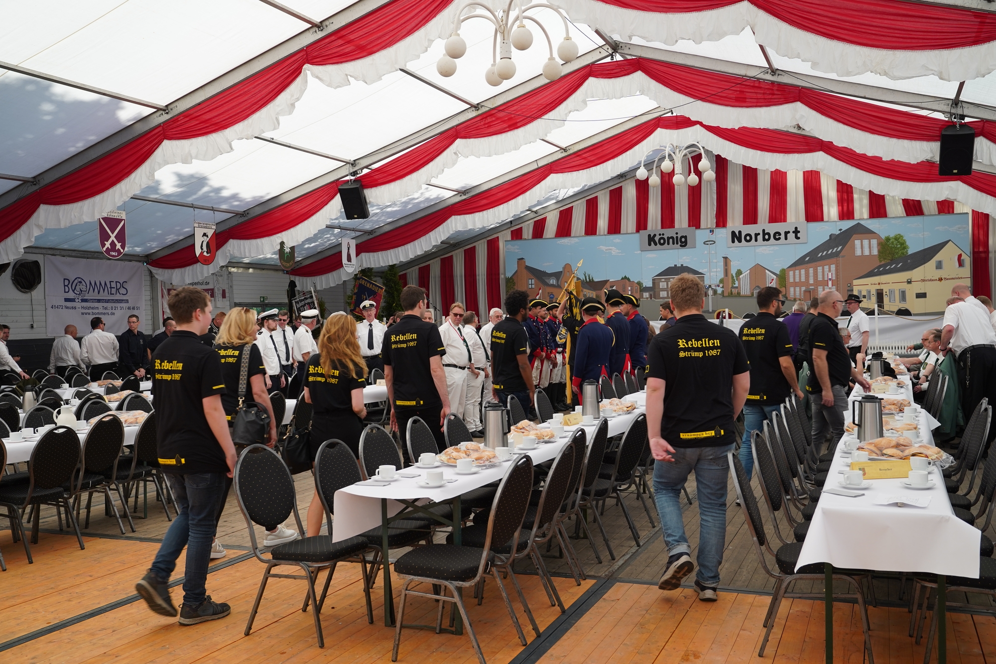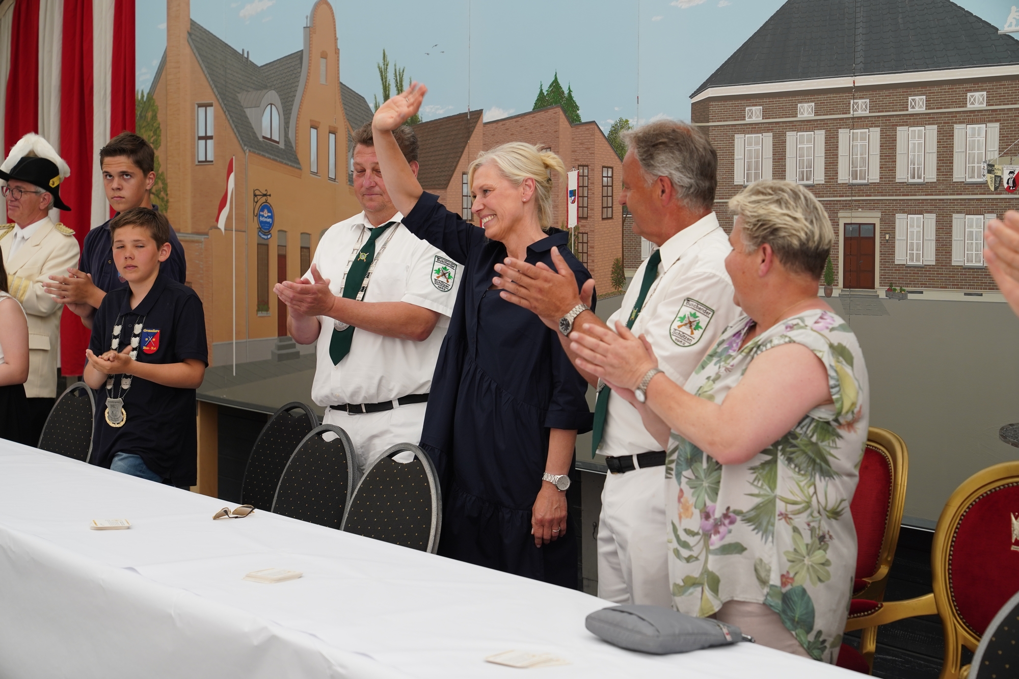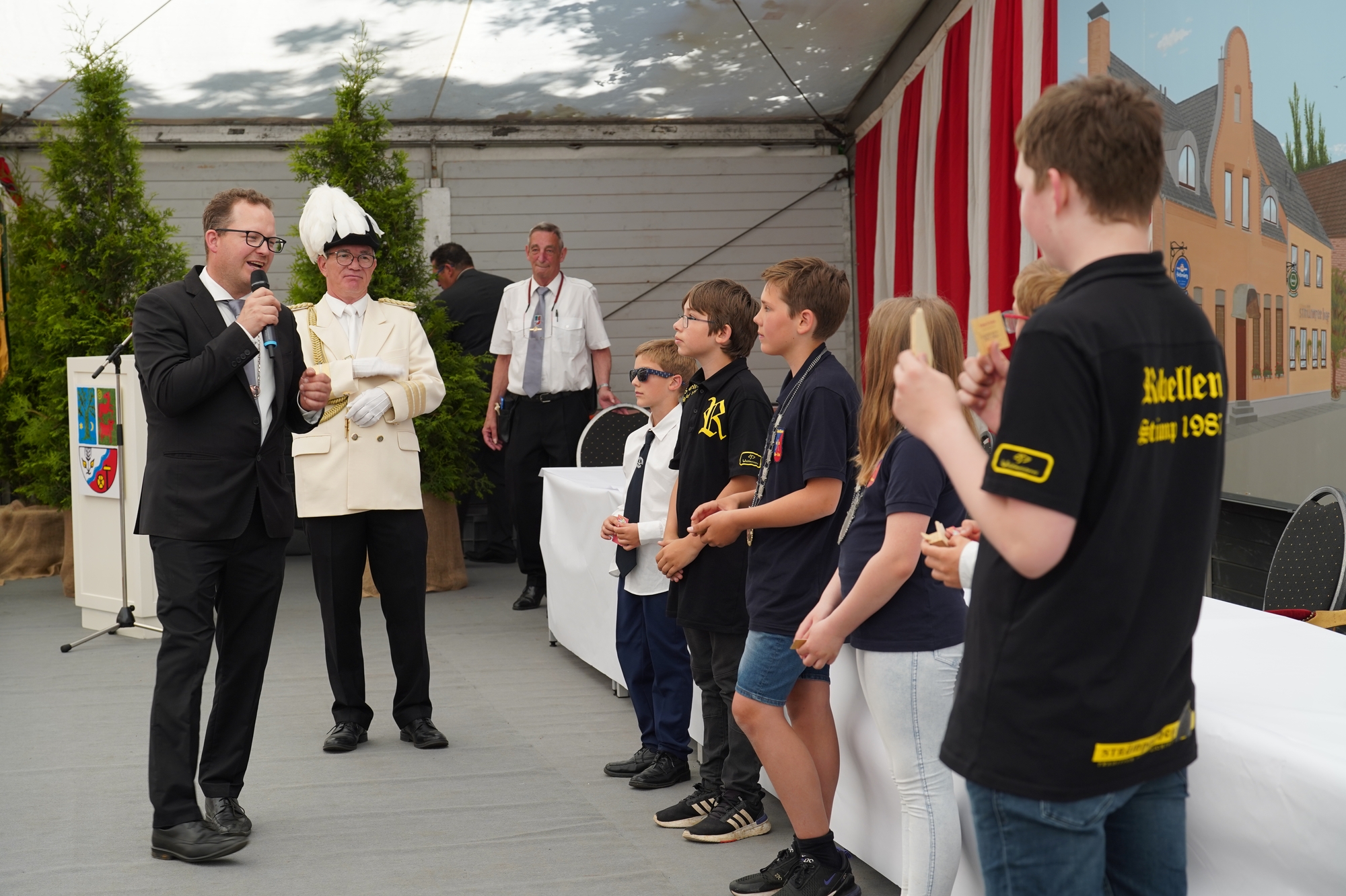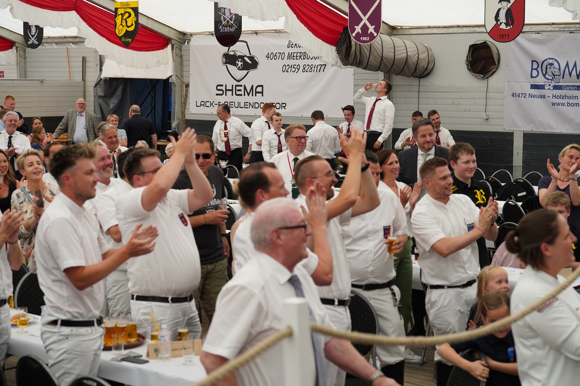 Wappen, Bühnenbild, Schützenbaum, Fahnen, Standarte