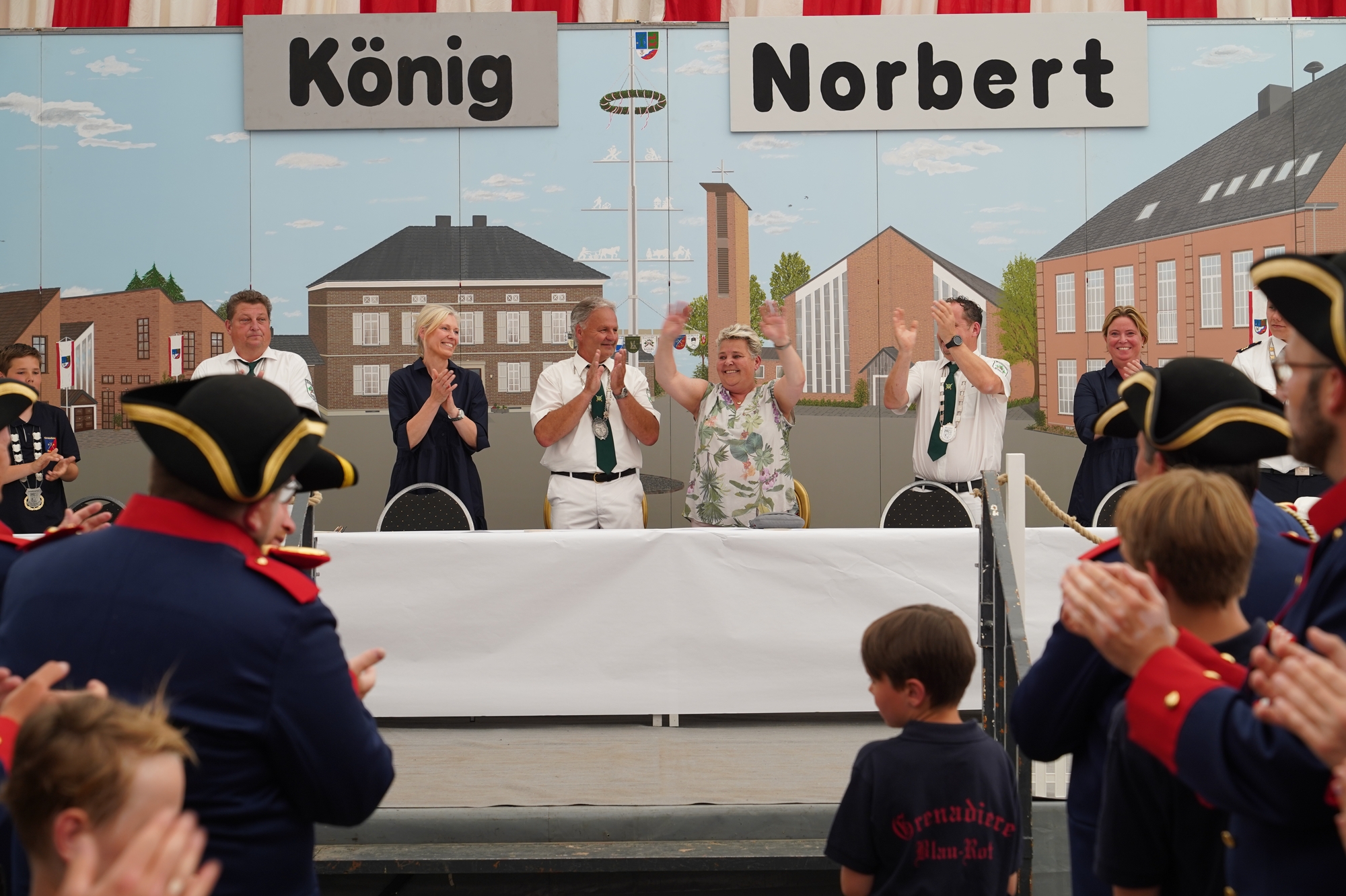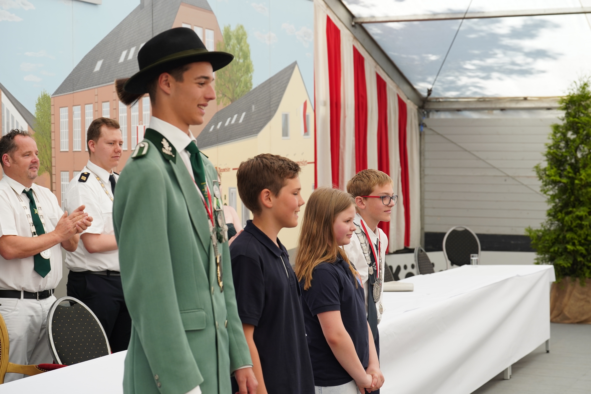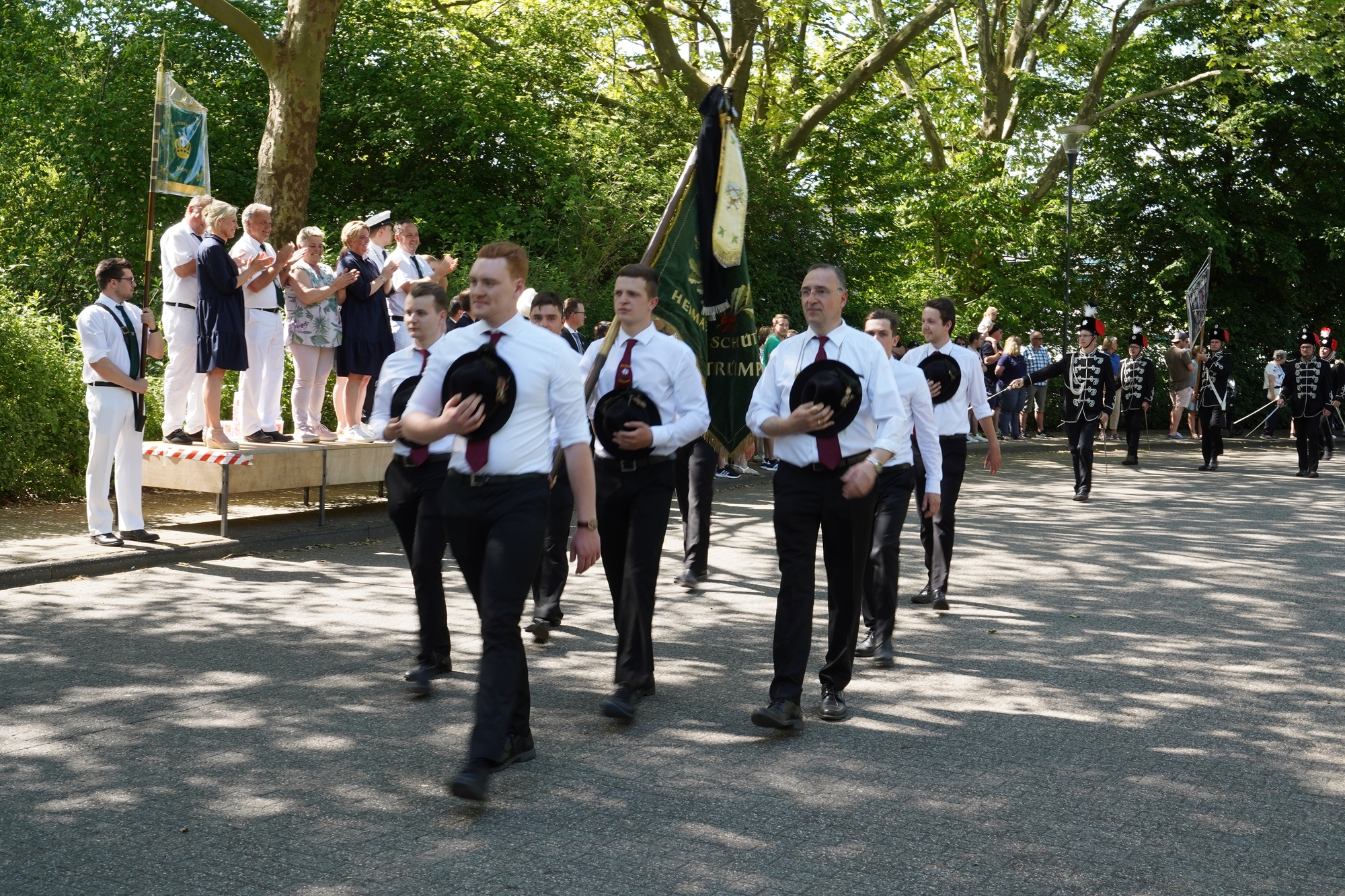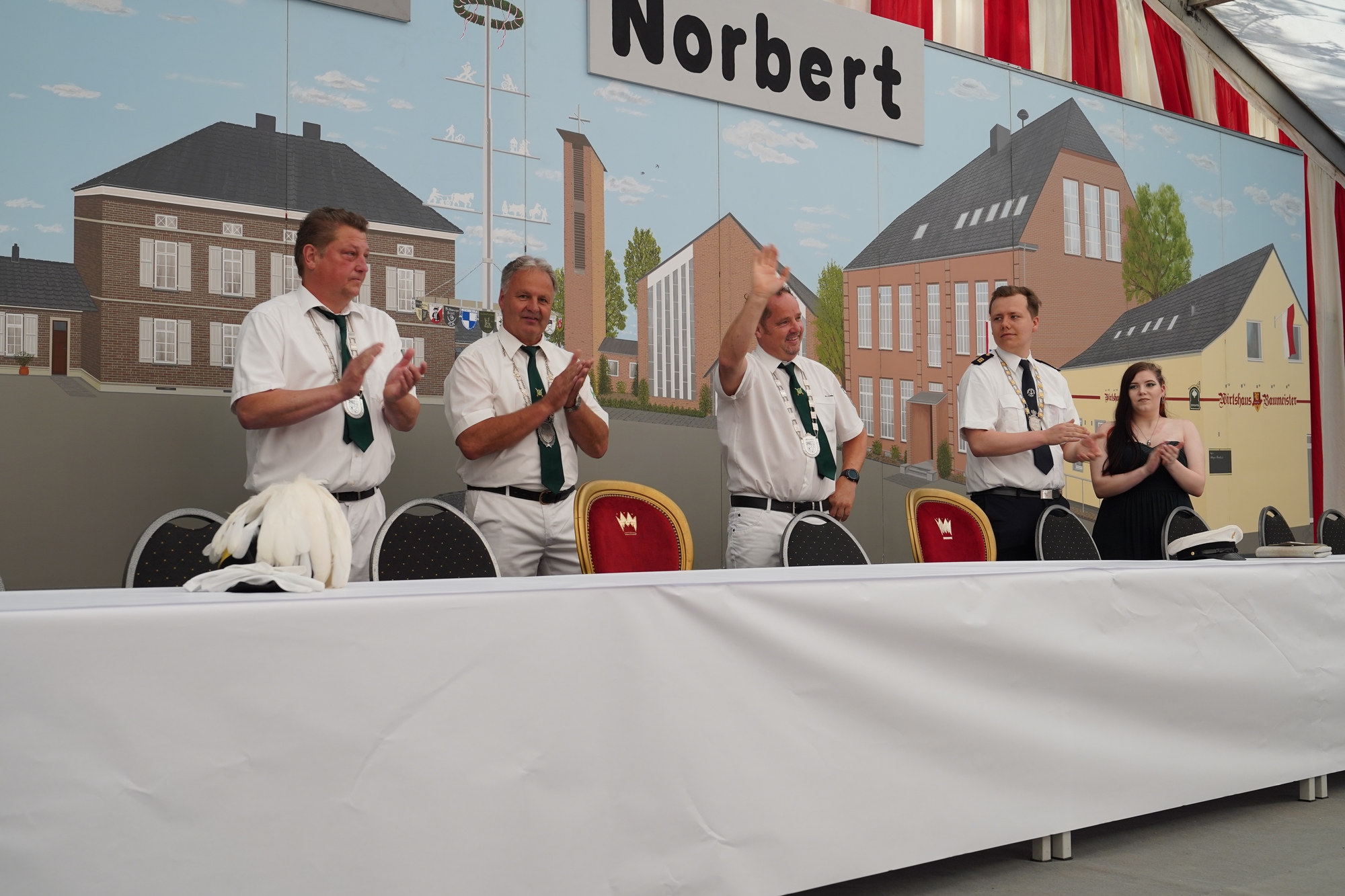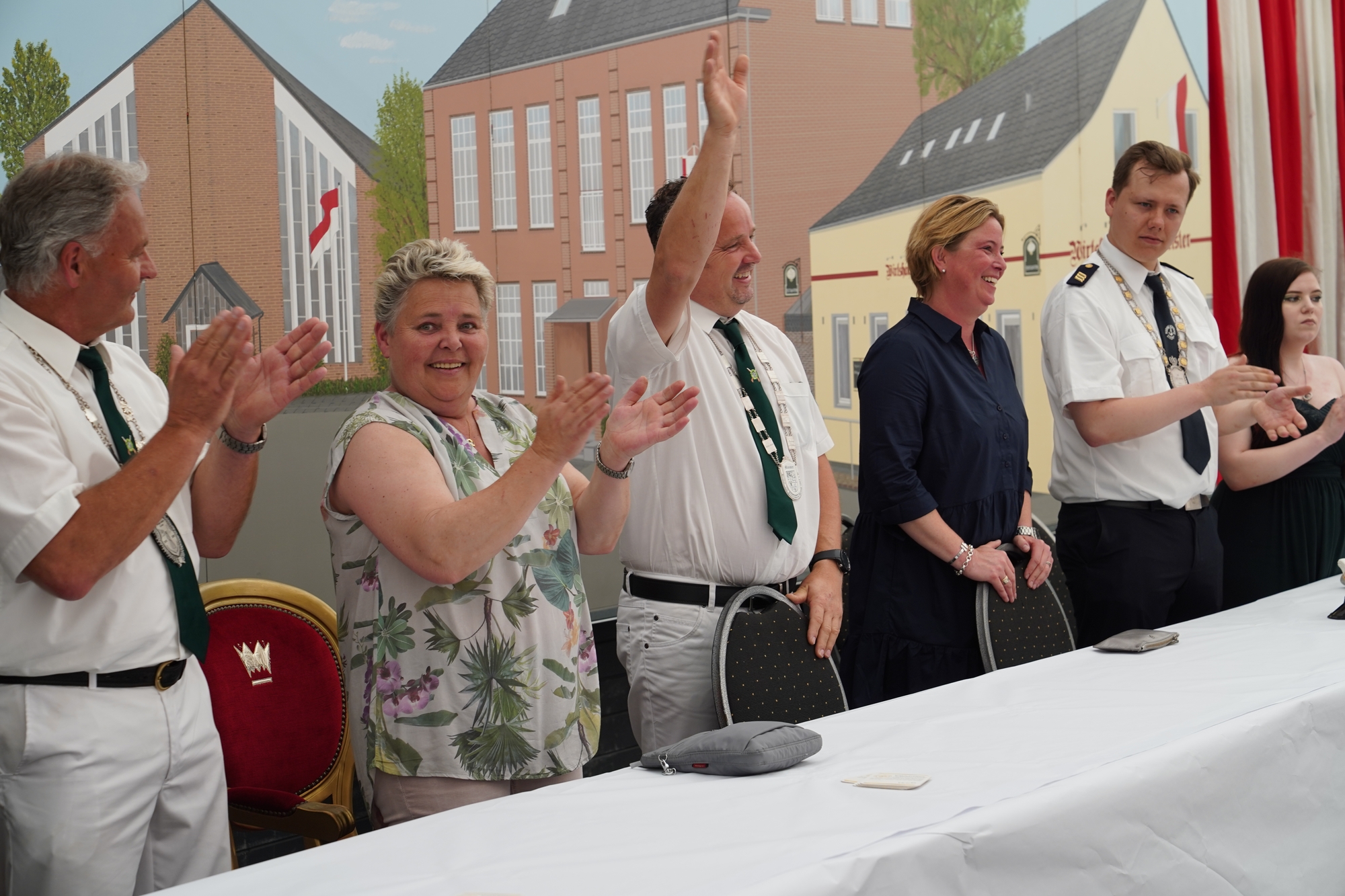 Wappen, Bühnenbild, Schützenbaum, Fahnen, Standarte