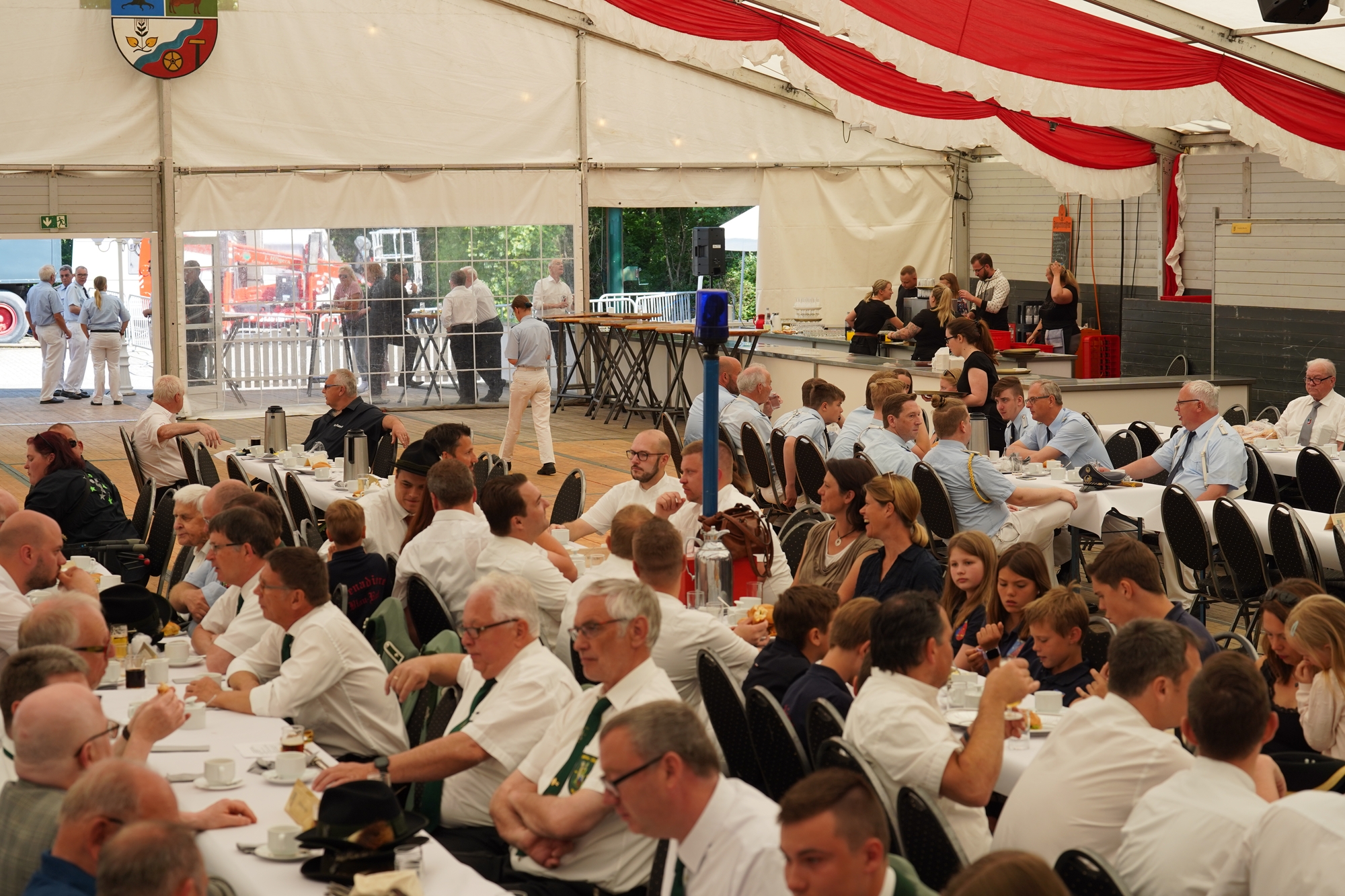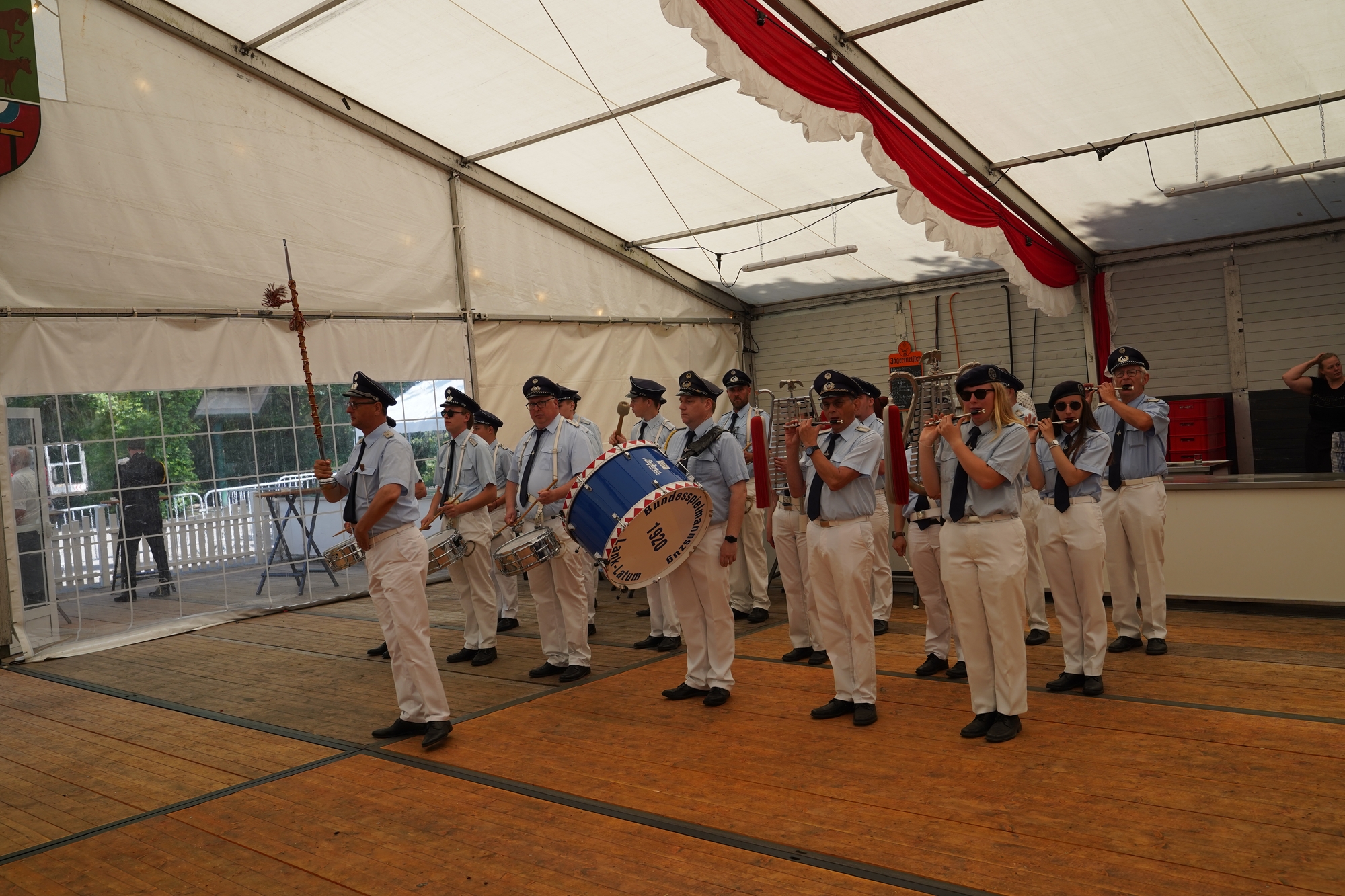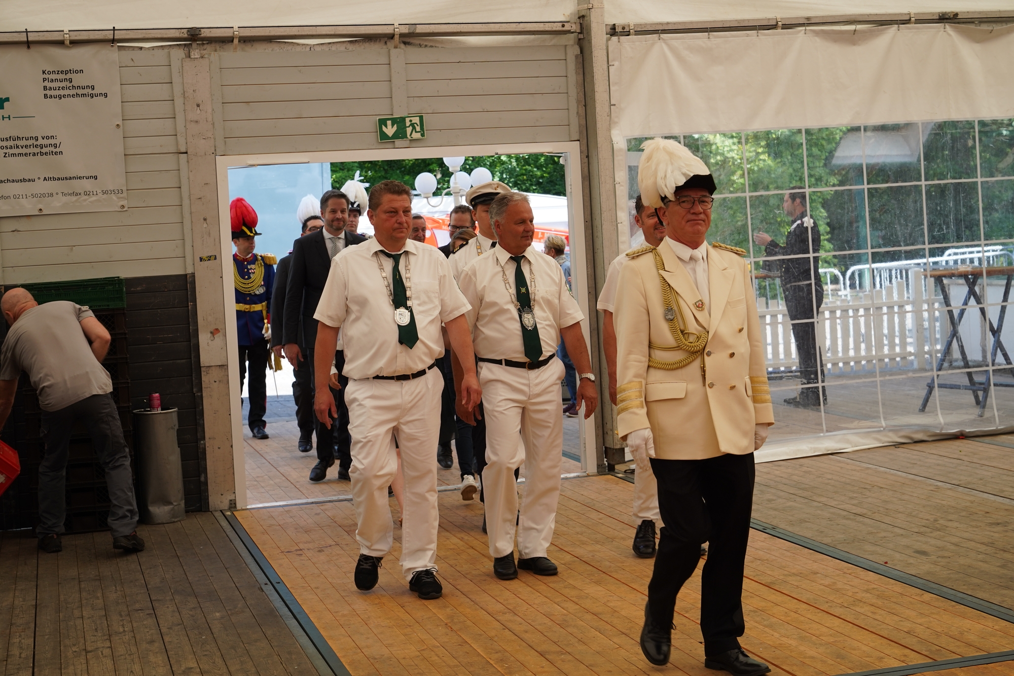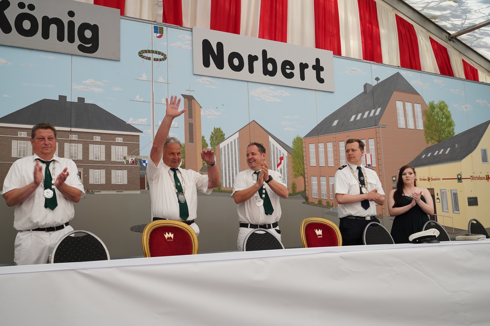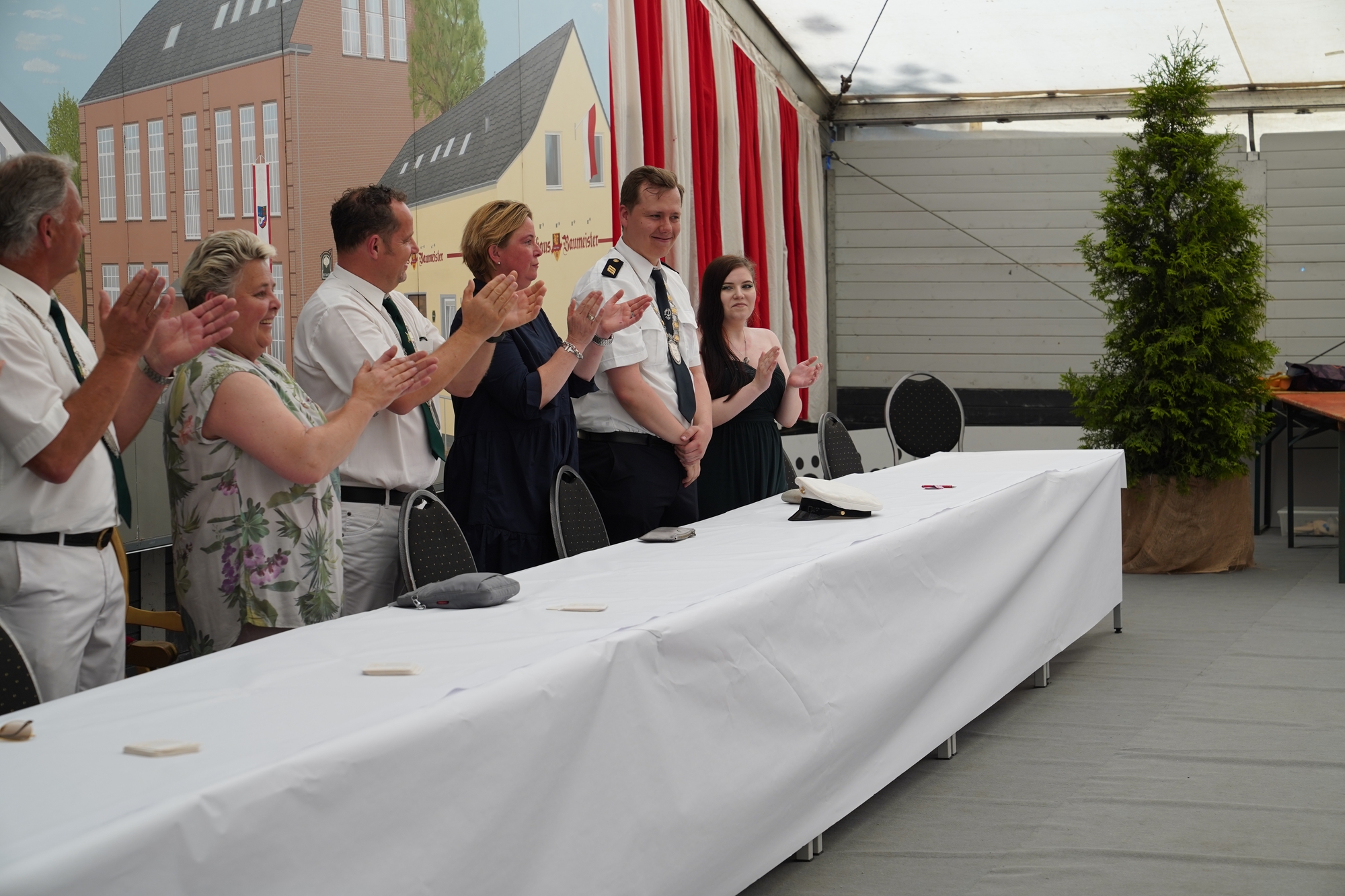 Wappen, Bühnenbild, Schützenbaum, Fahnen, Standarte