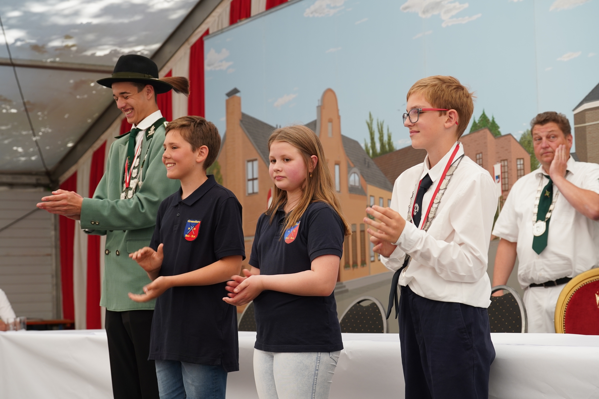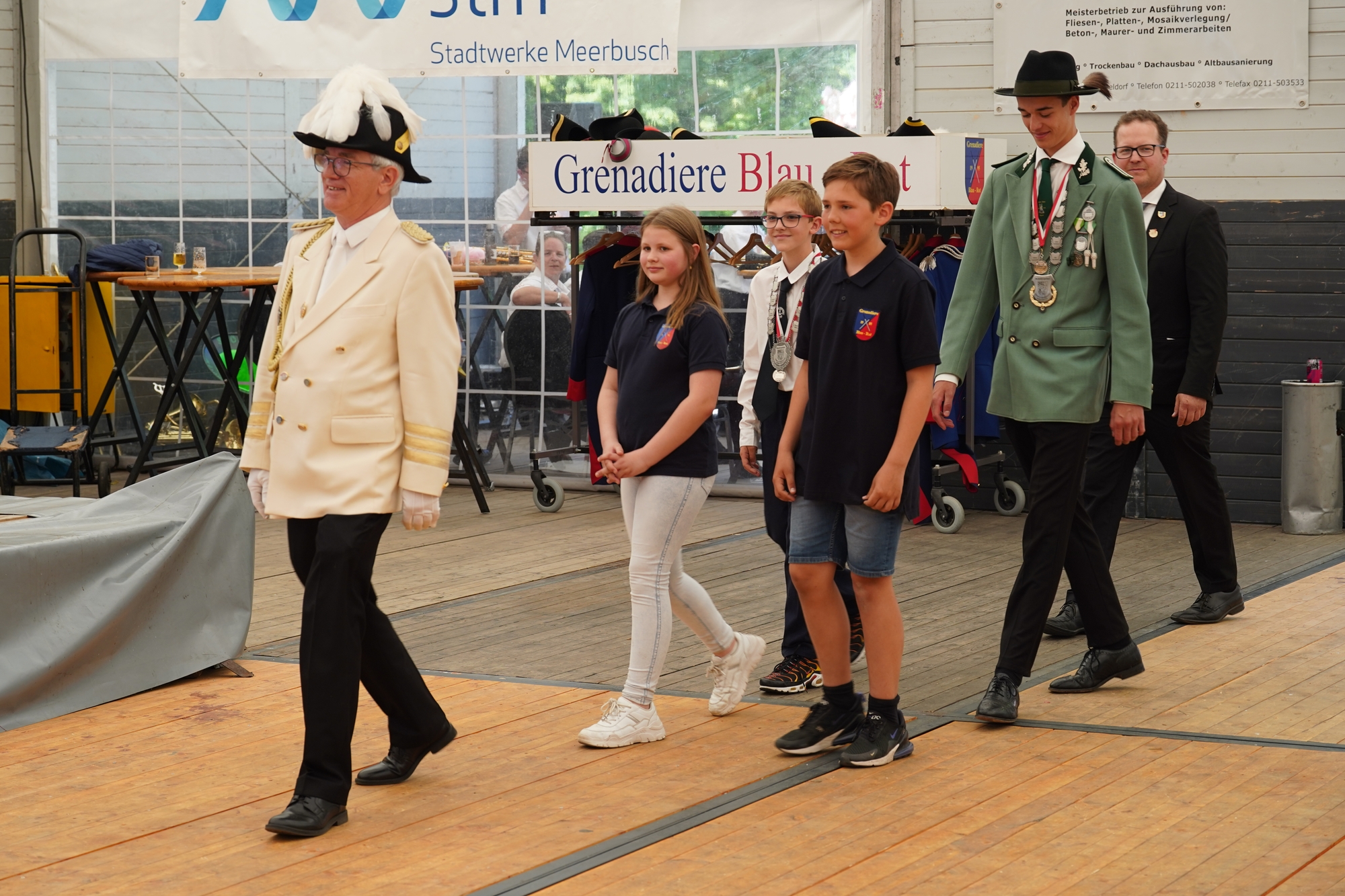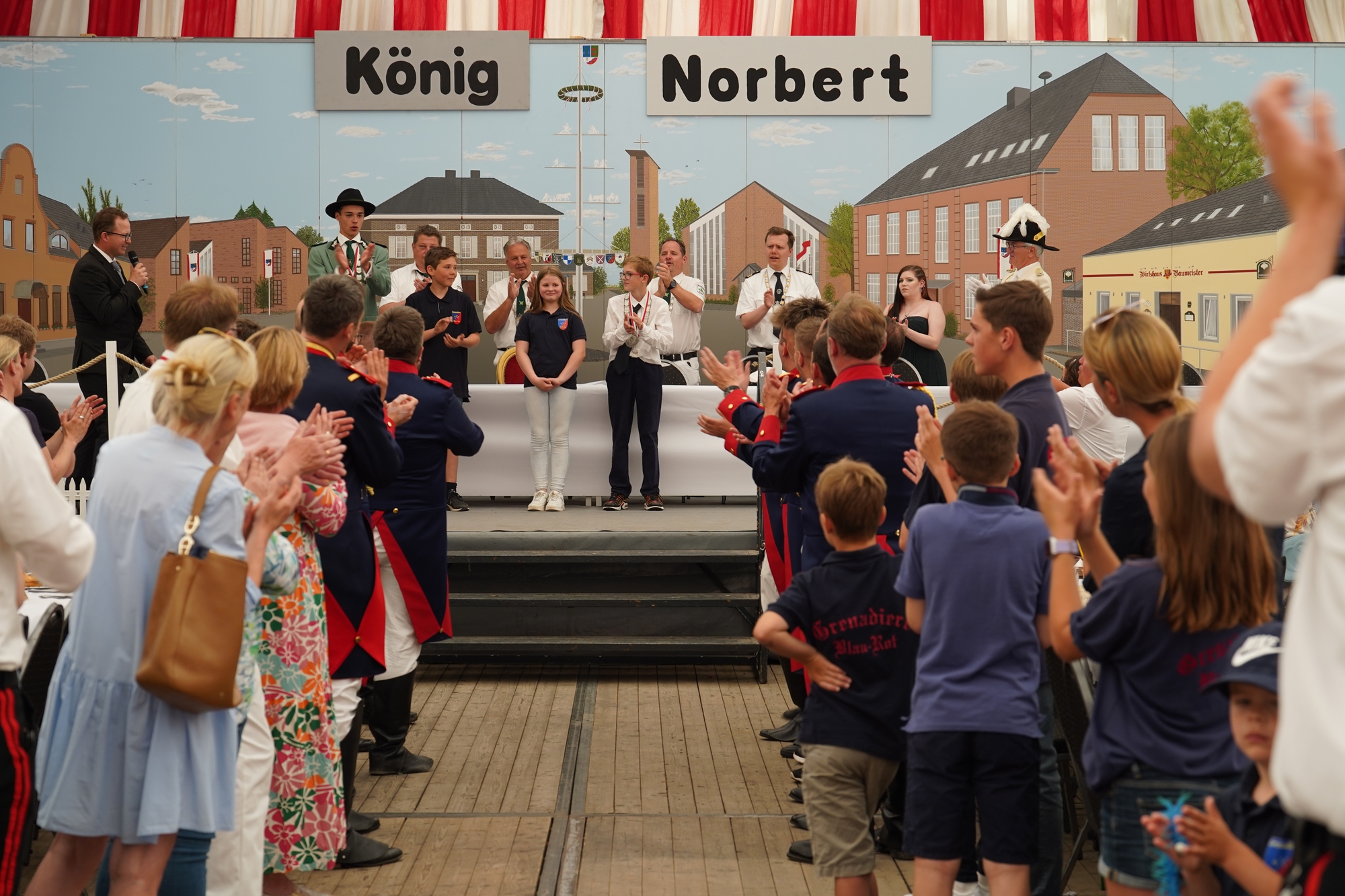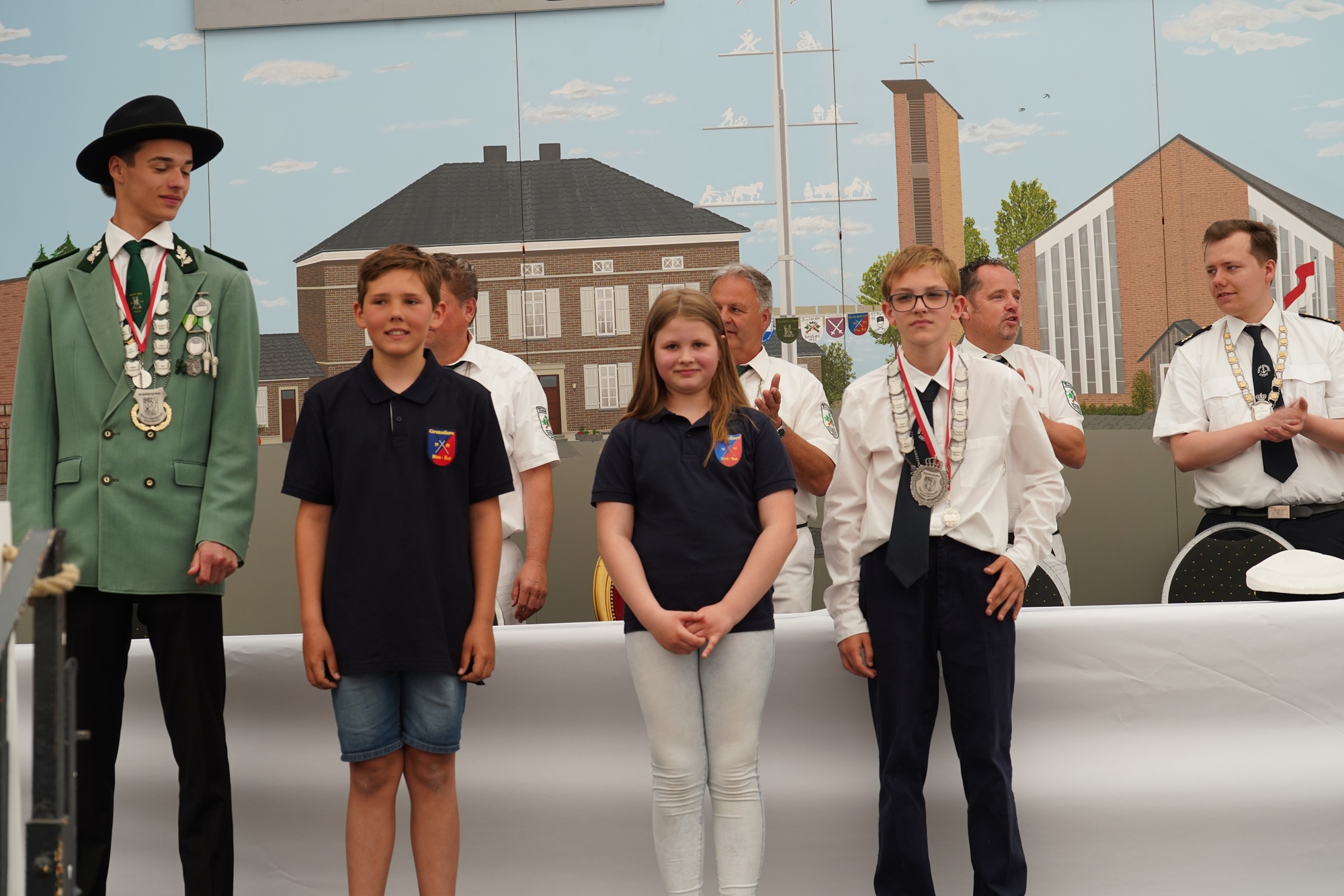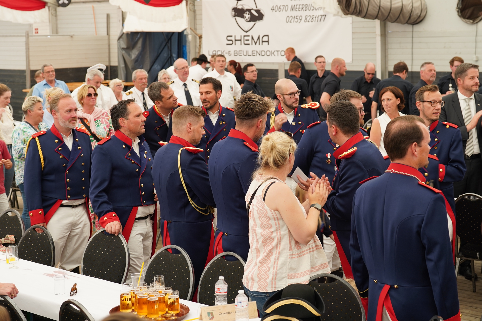 Wappen, Bühnenbild, Schützenbaum, Fahnen, Standarte