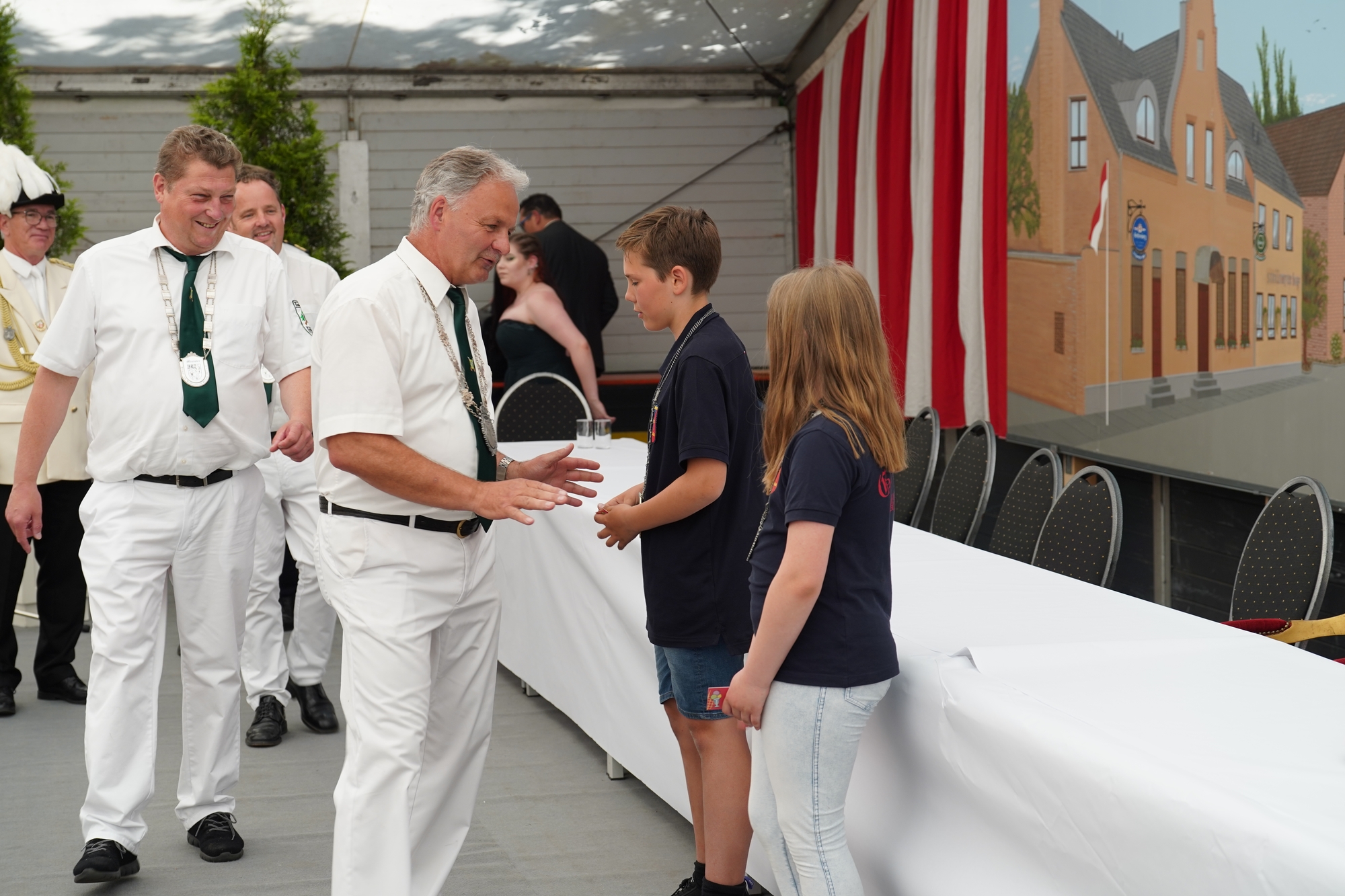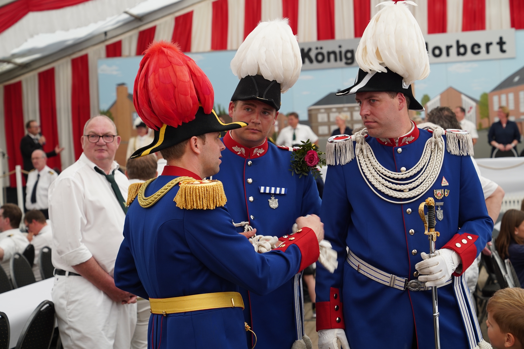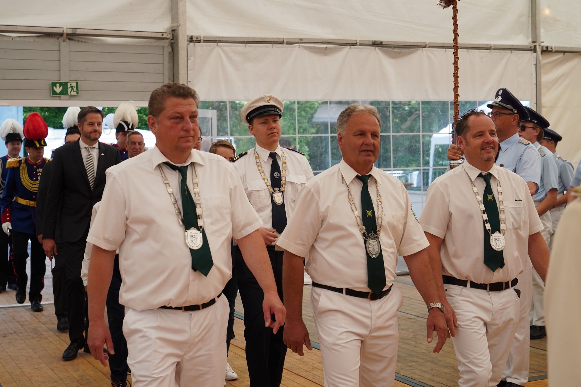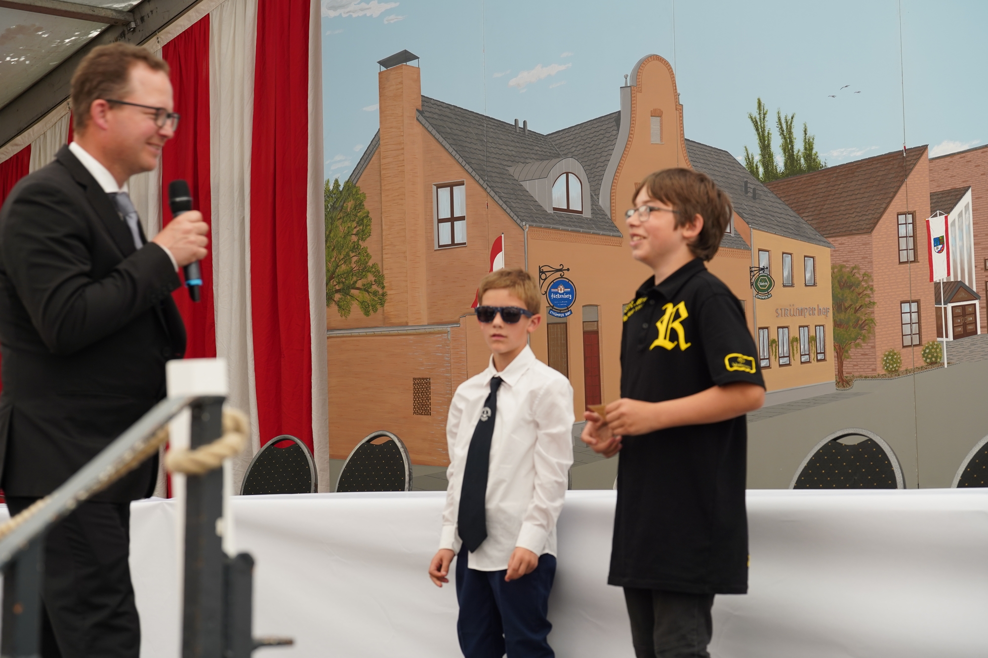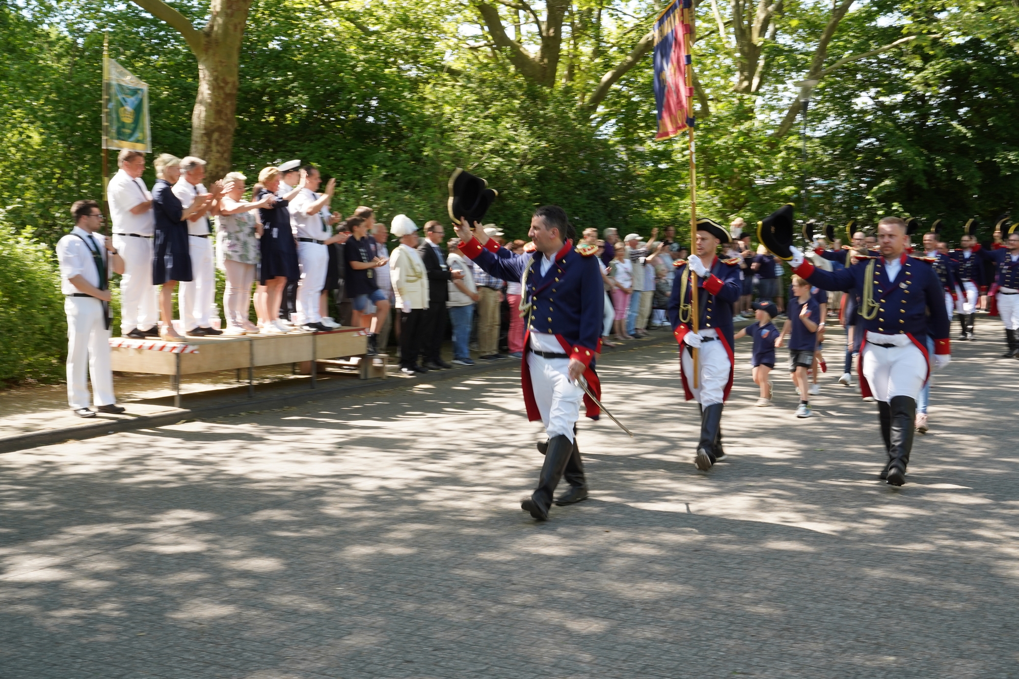 Wappen, Bühnenbild, Schützenbaum, Fahnen, Standarte