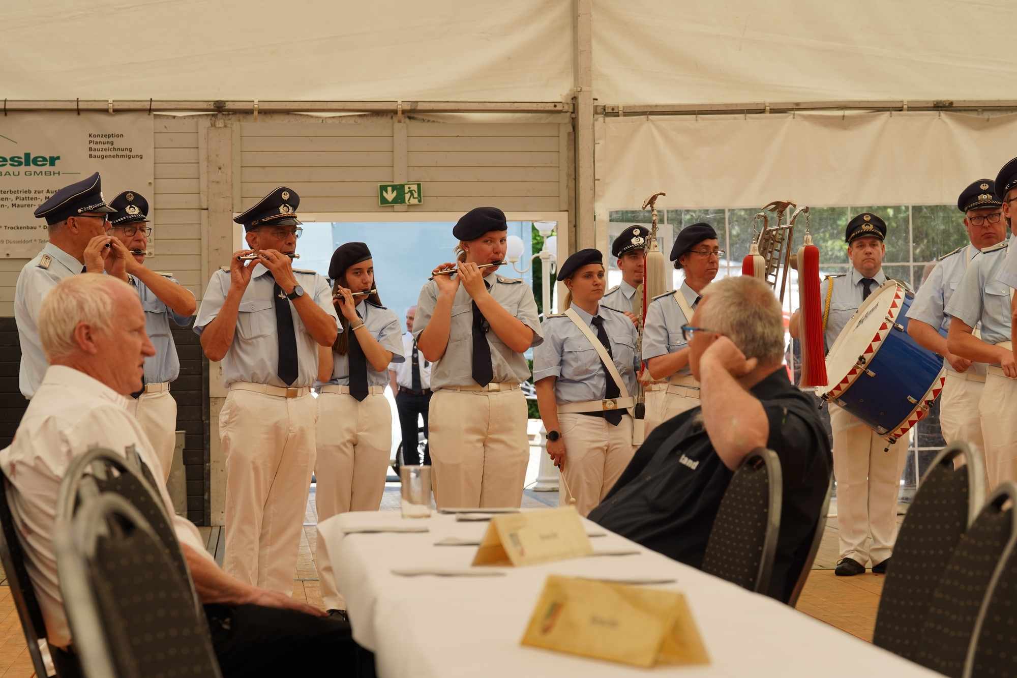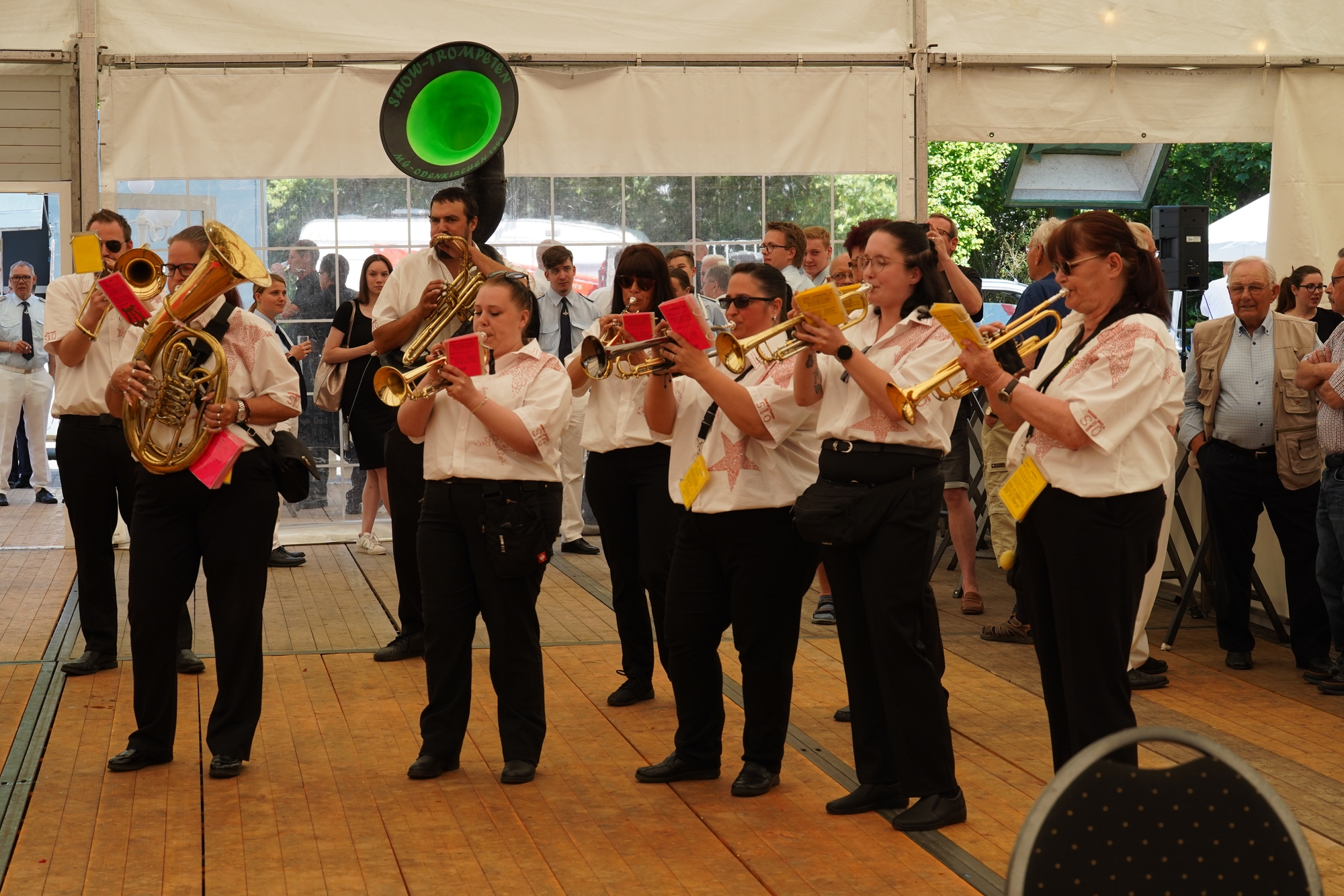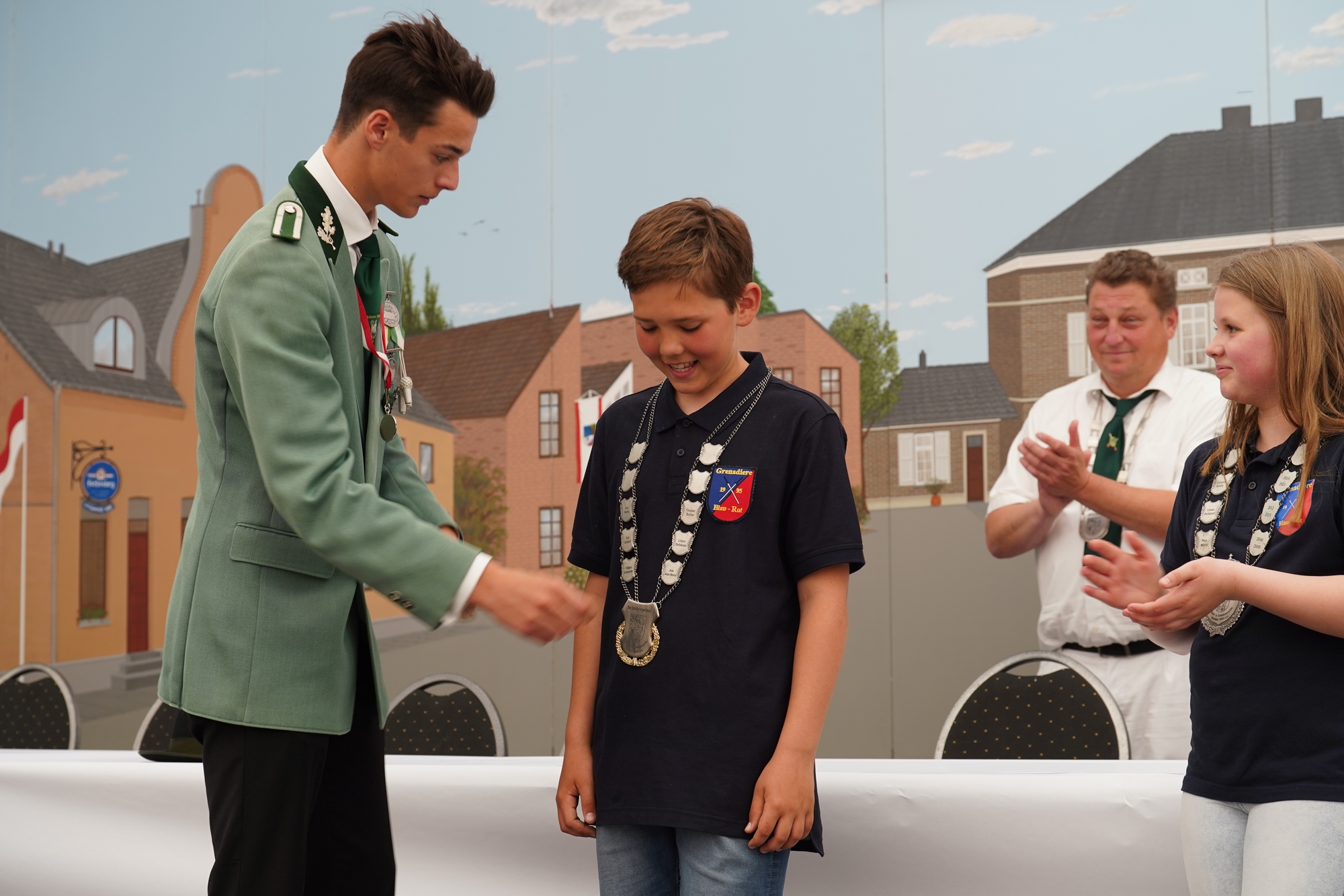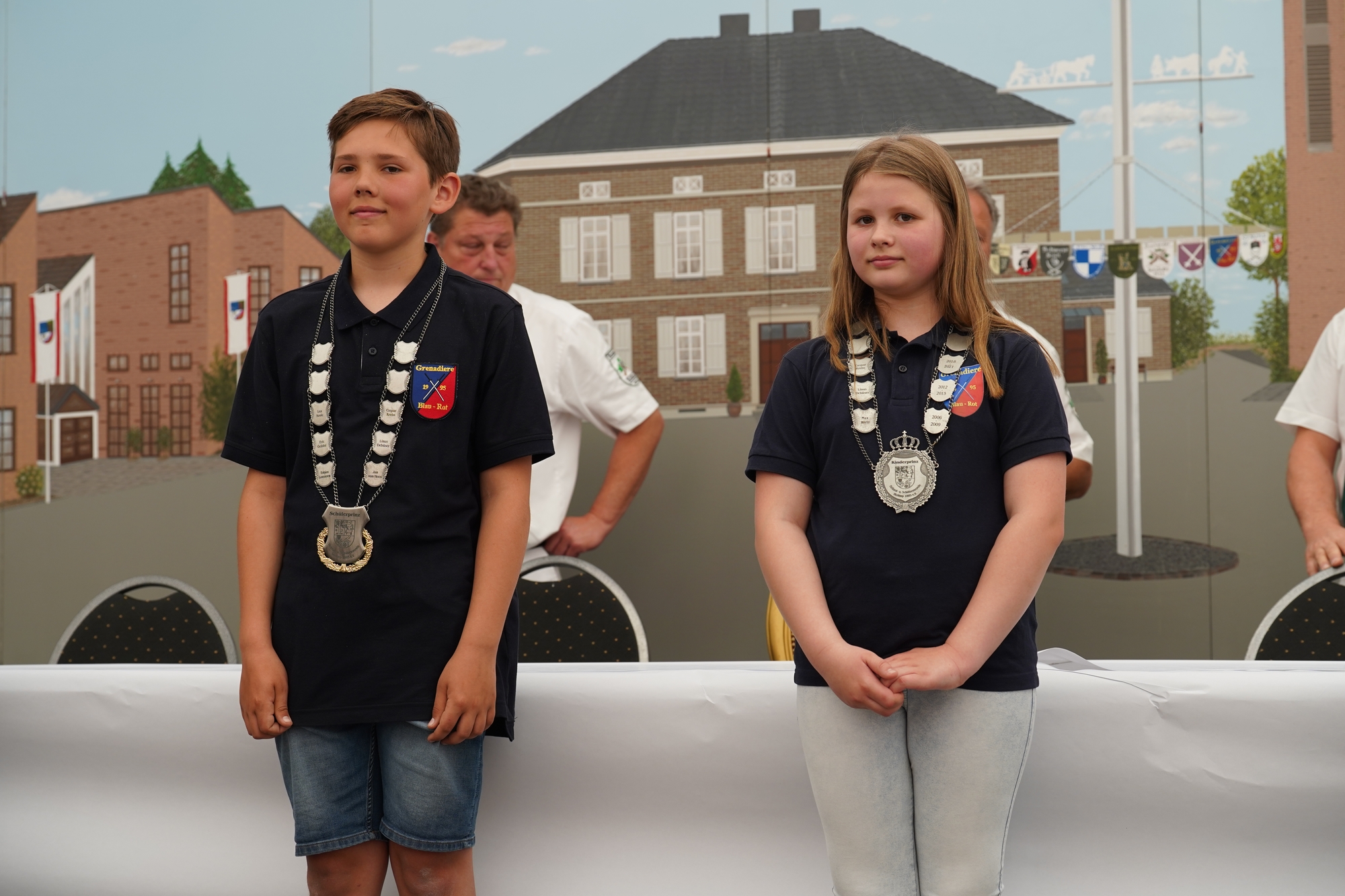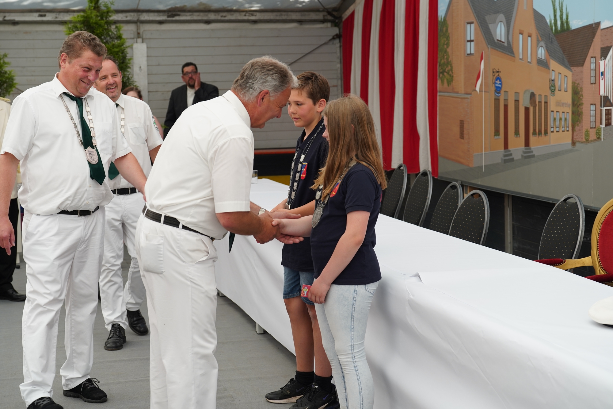 Wappen, Bühnenbild, Schützenbaum, Fahnen, Standarte