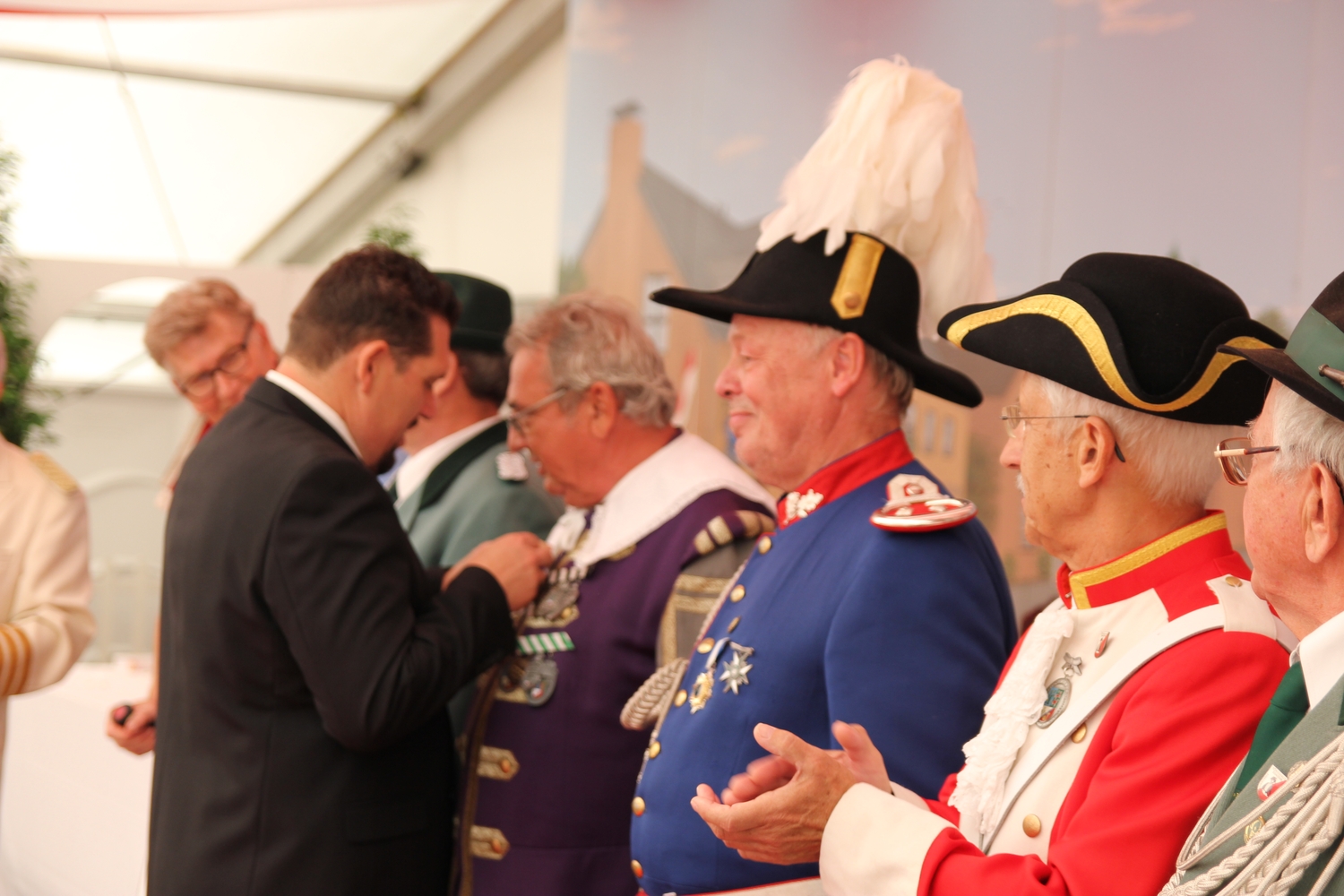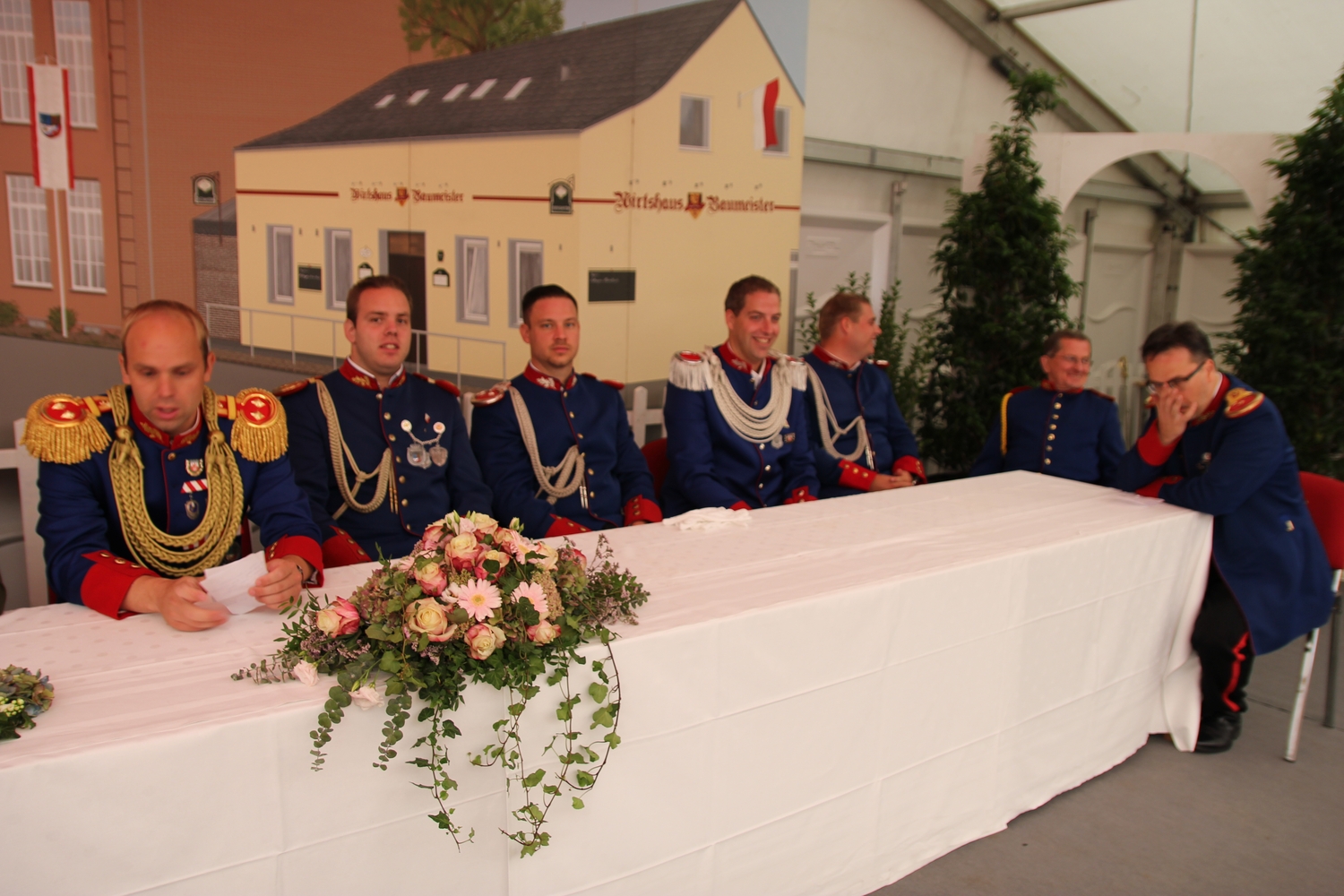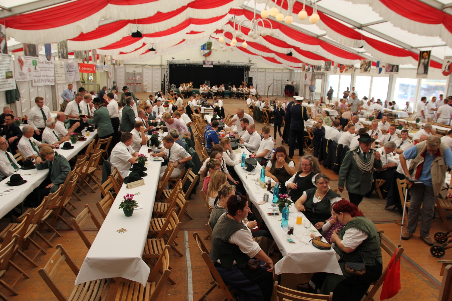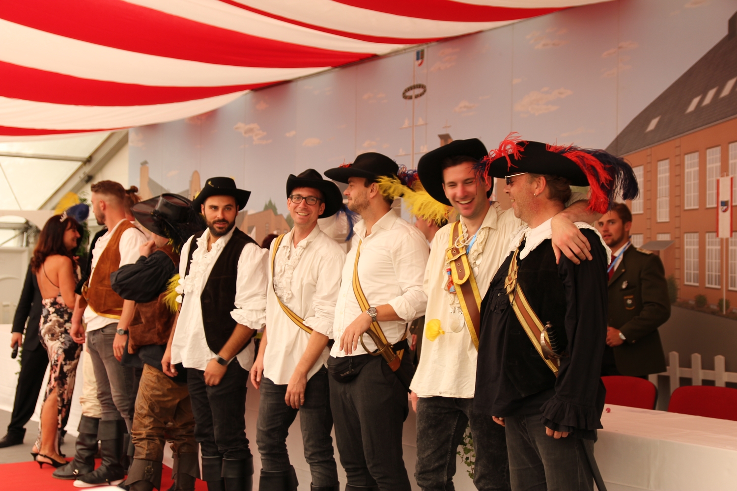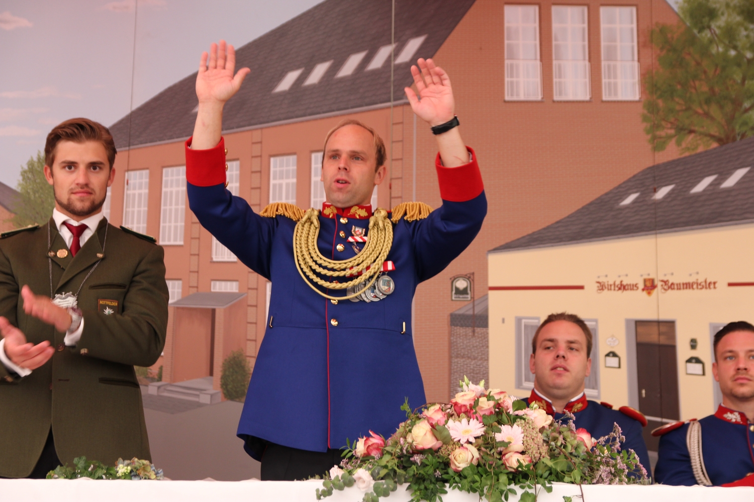 Wappen, Bühnenbild, Schützenbaum, Fahnen, Standarte