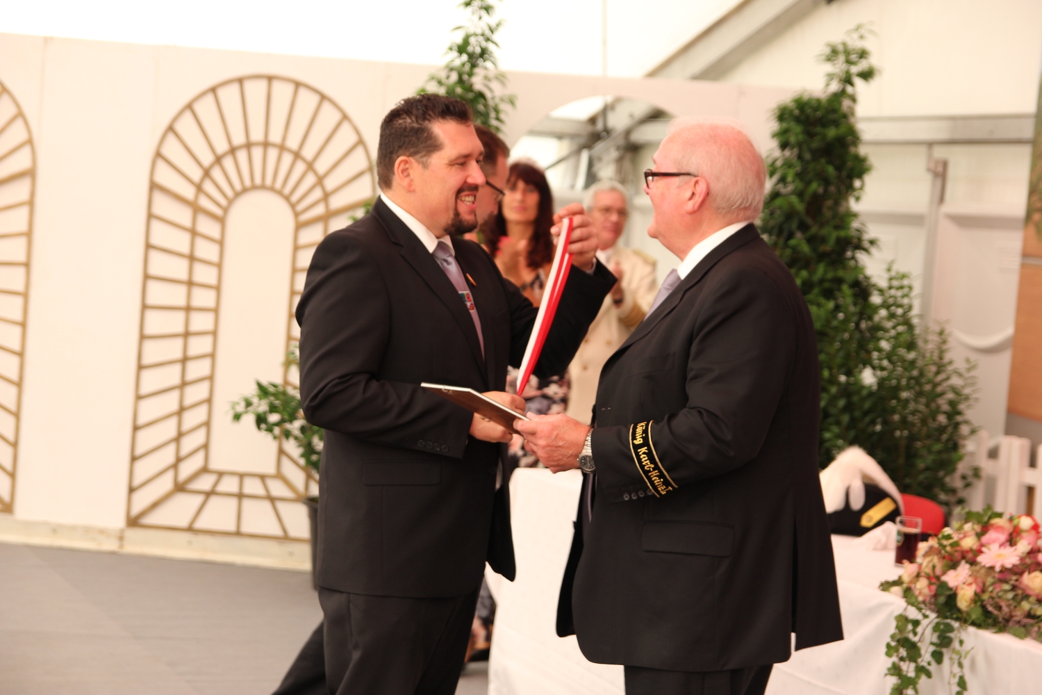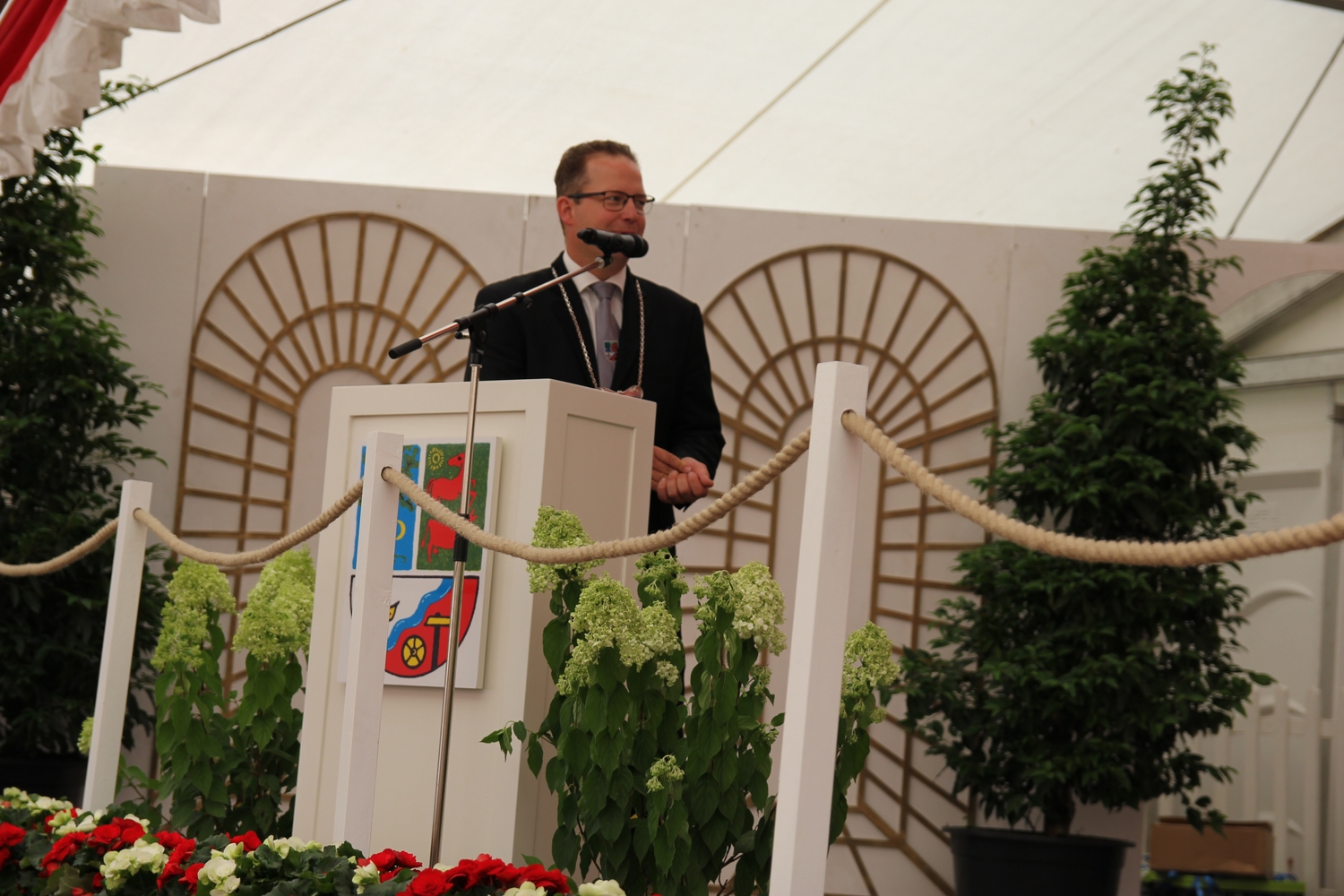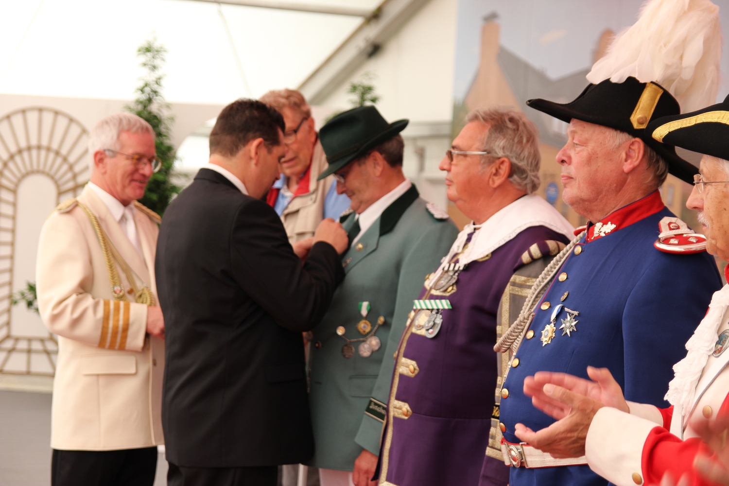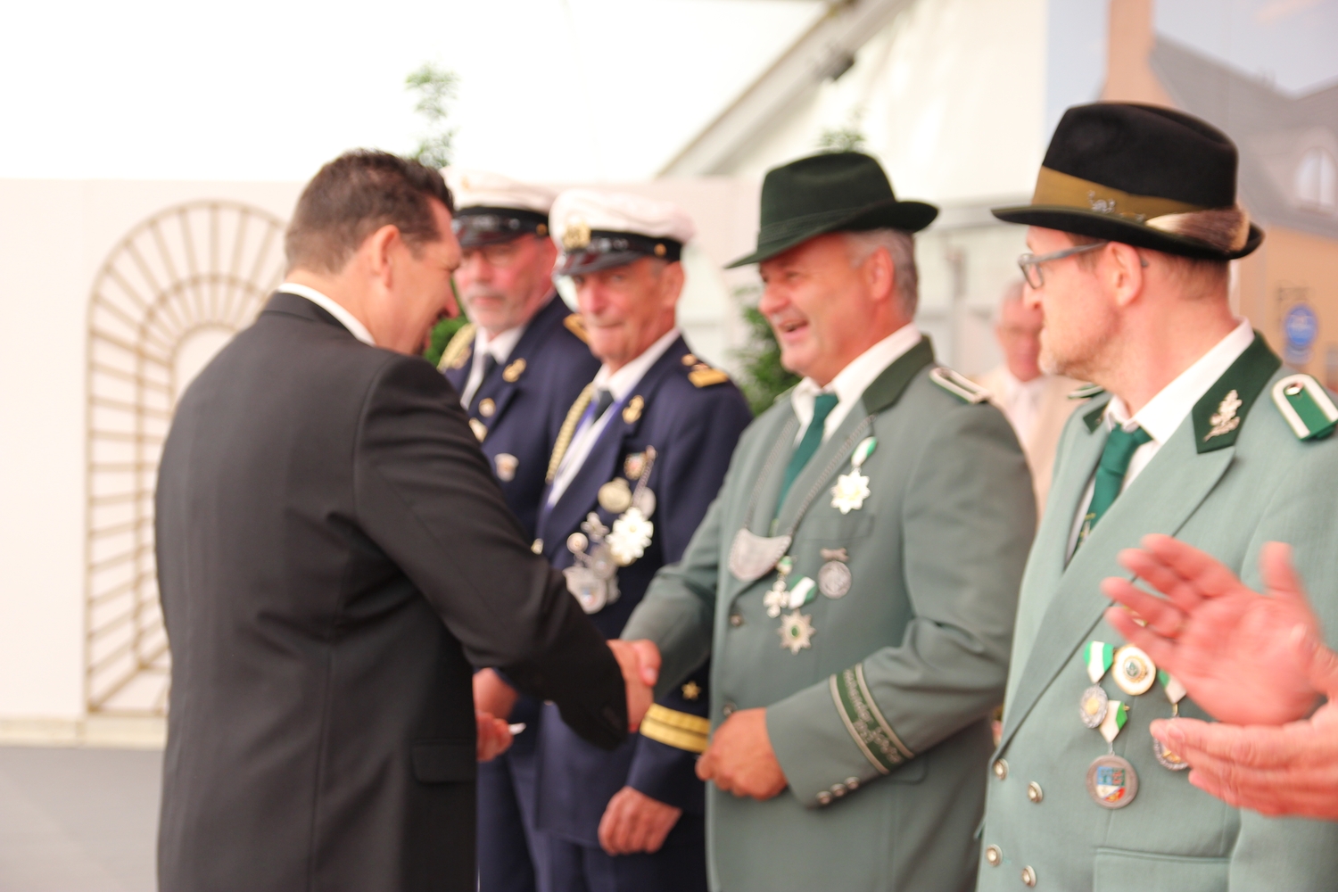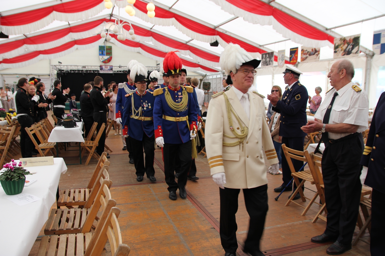 Wappen, Bühnenbild, Schützenbaum, Fahnen, Standarte