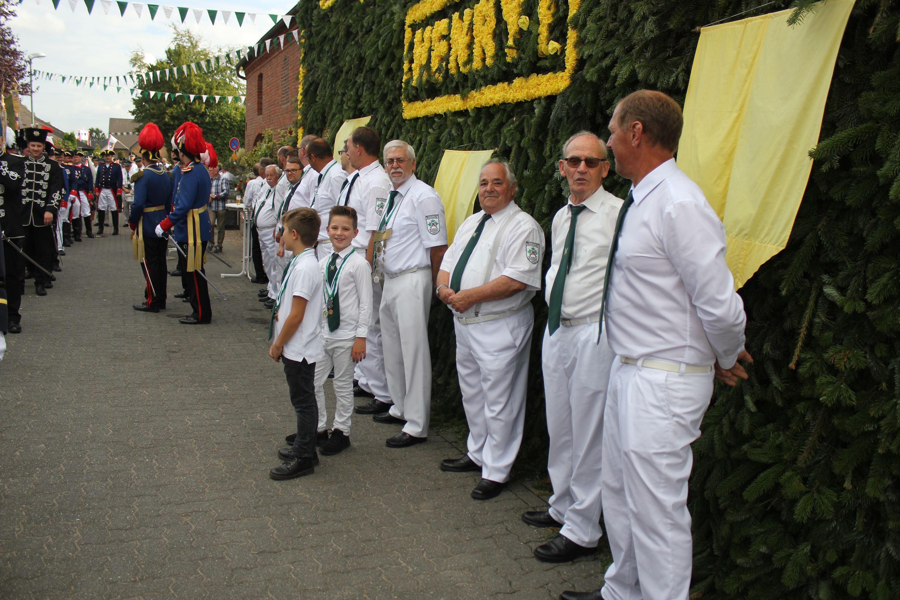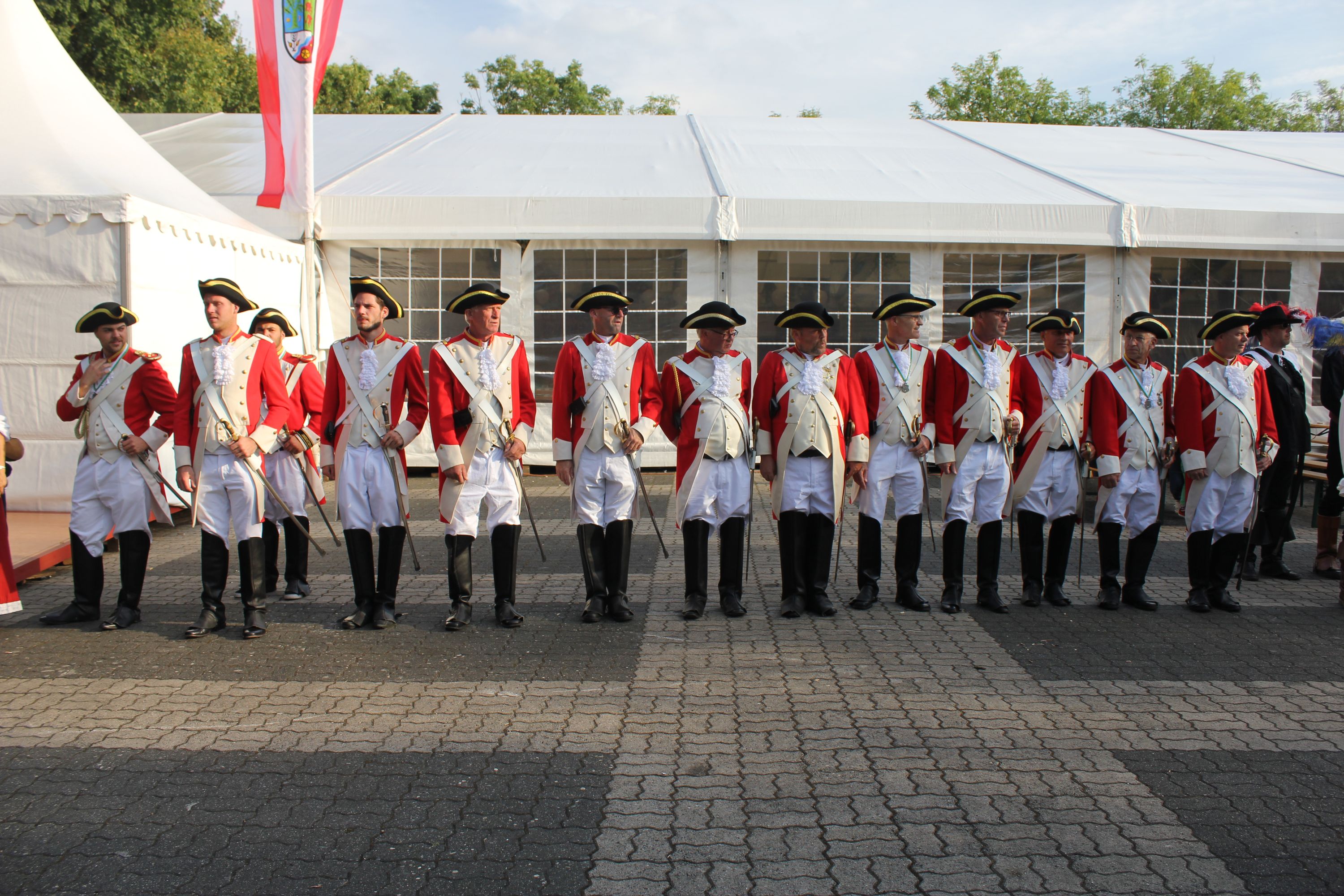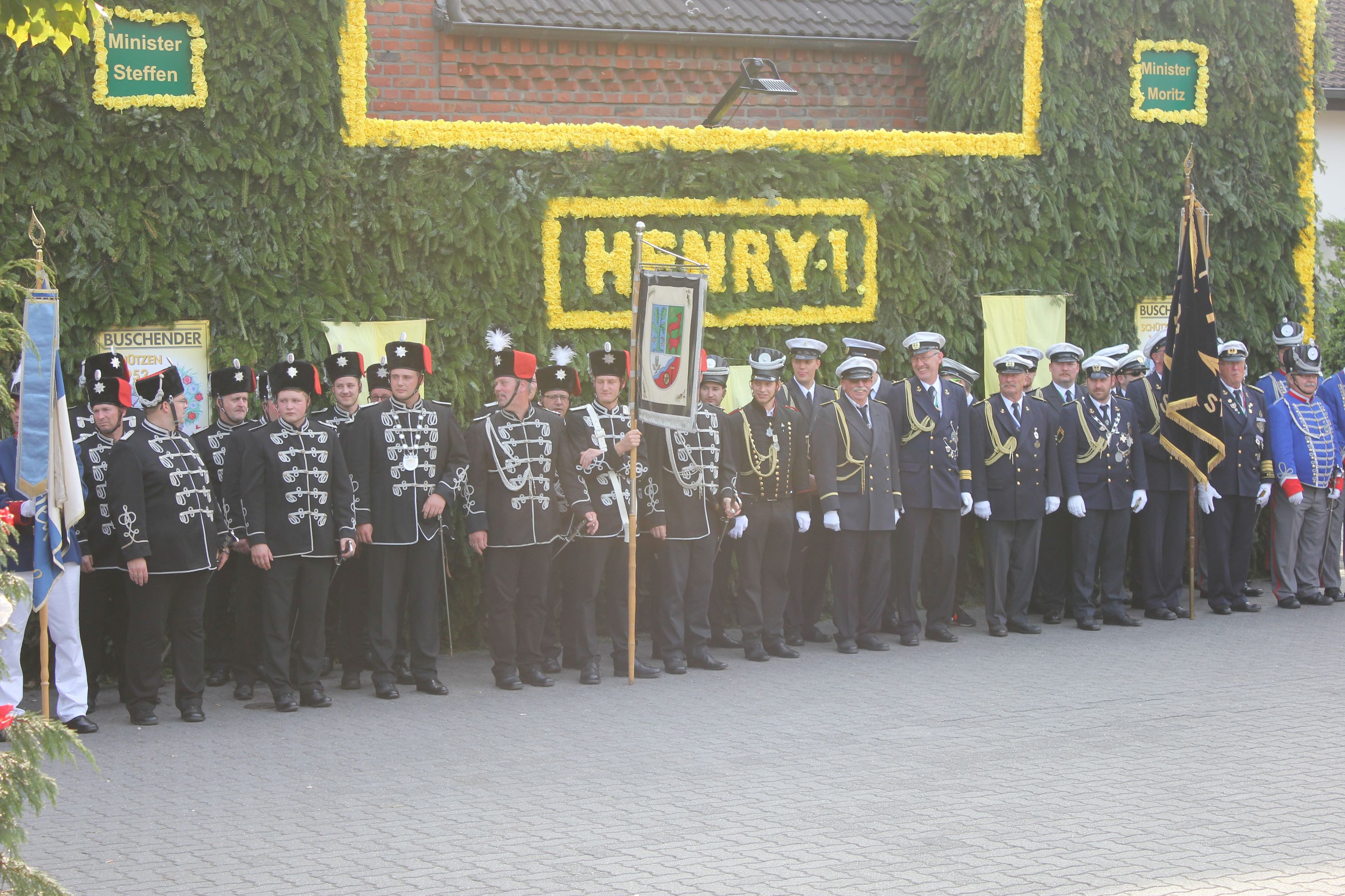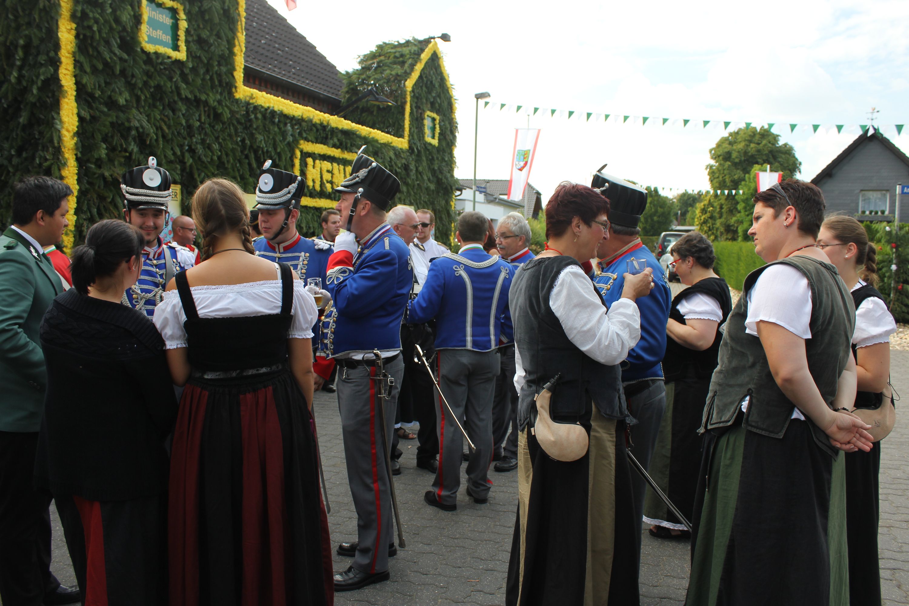 Wappen, Bühnenbild, Schützenbaum, Fahnen, Standarte