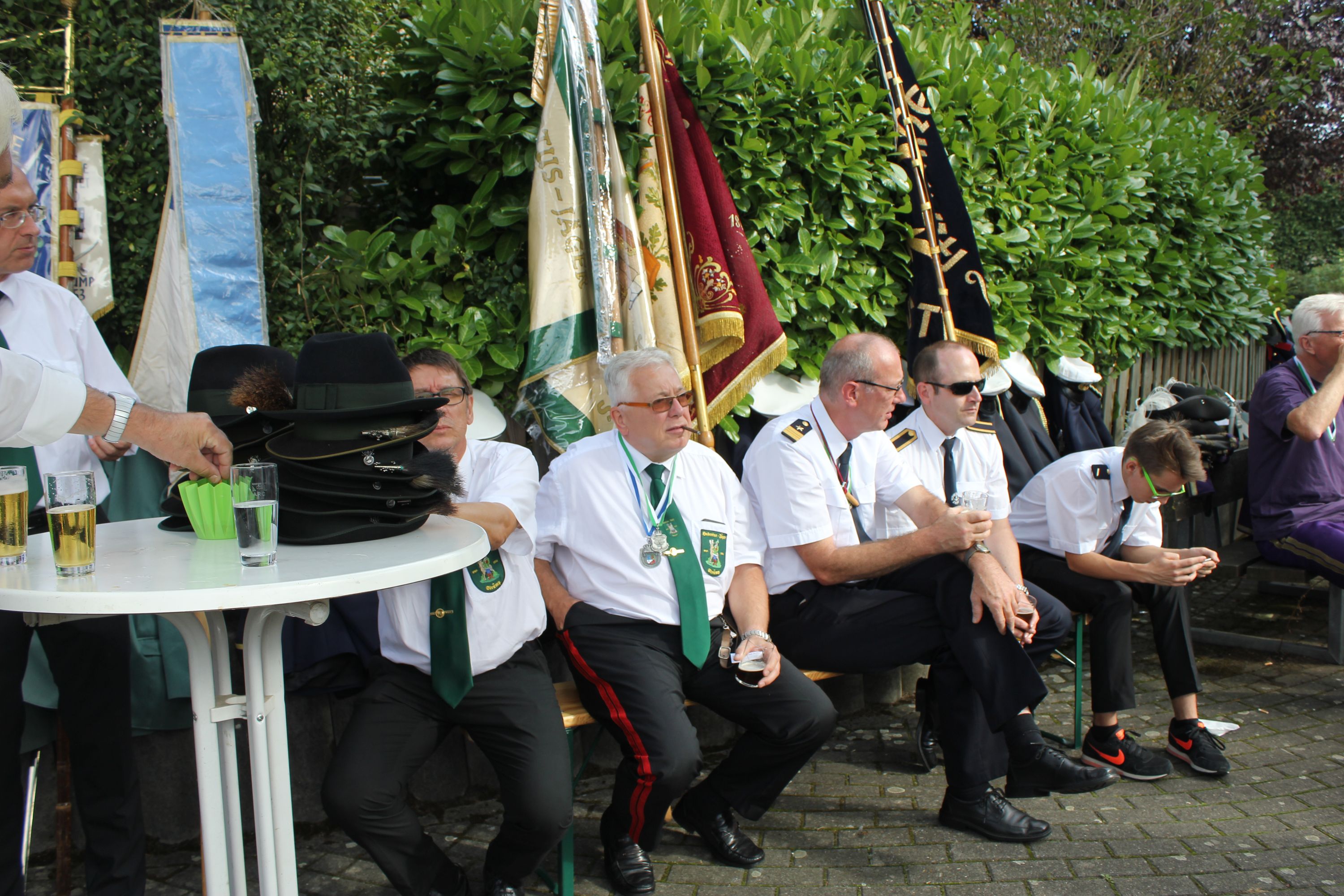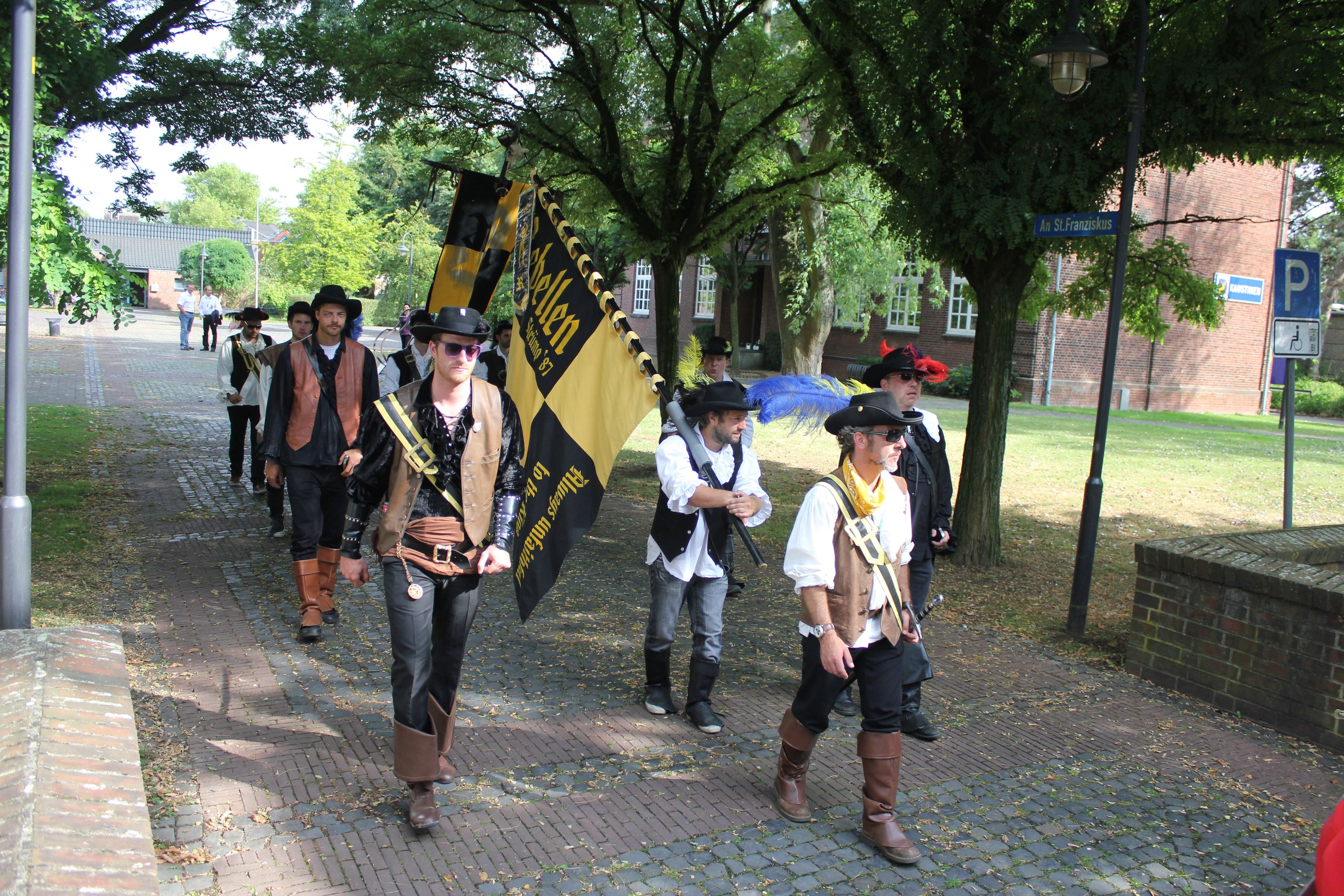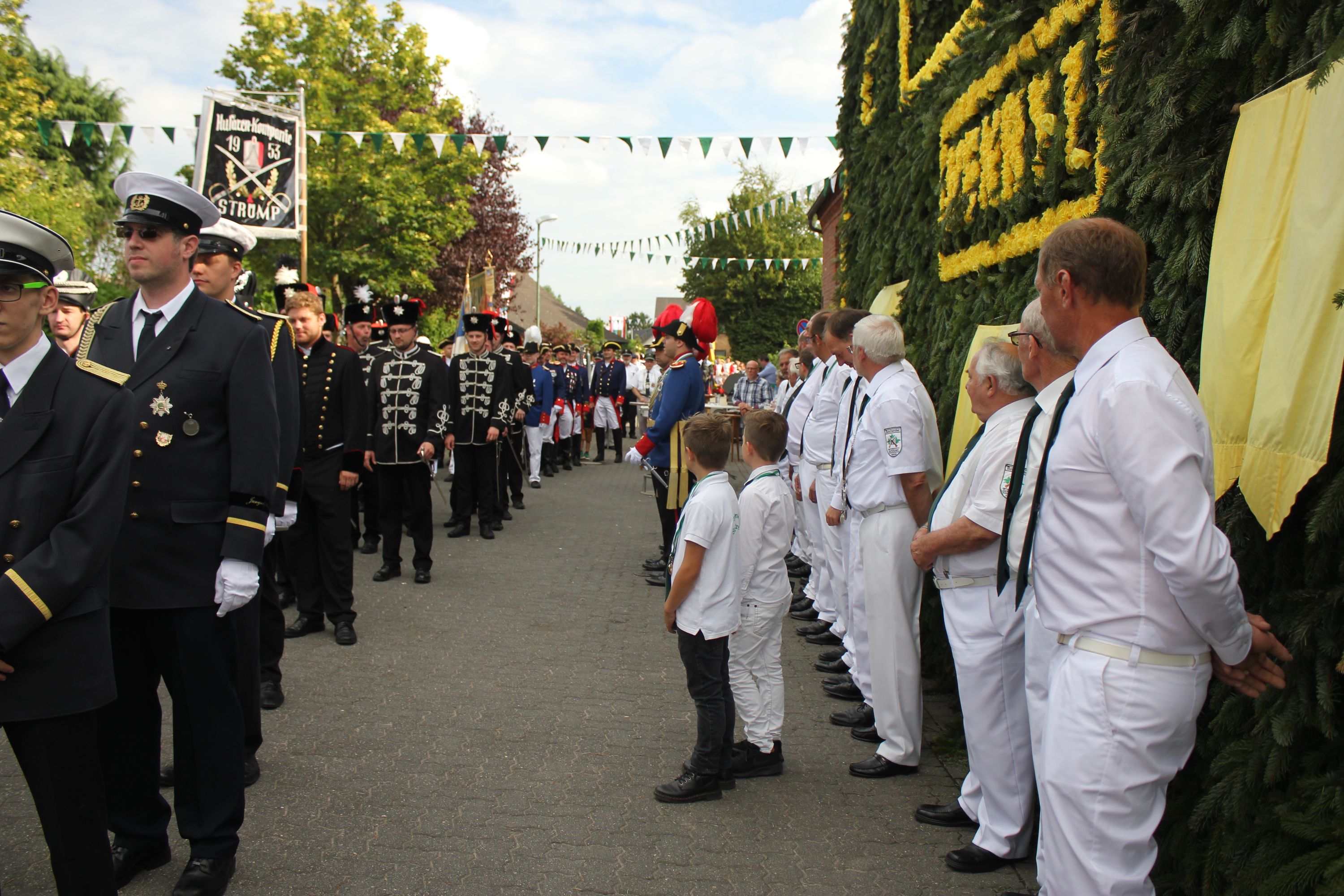 Wappen, Bühnenbild, Schützenbaum, Fahnen, Standarte