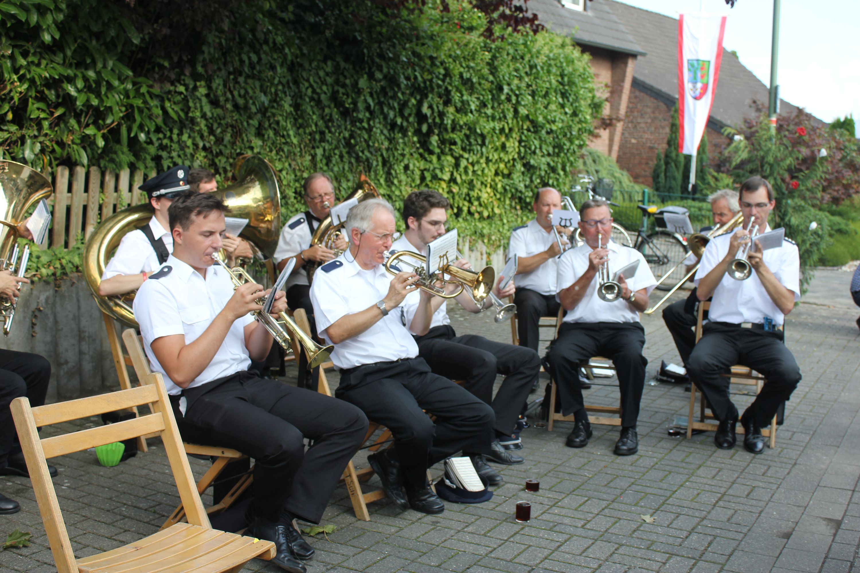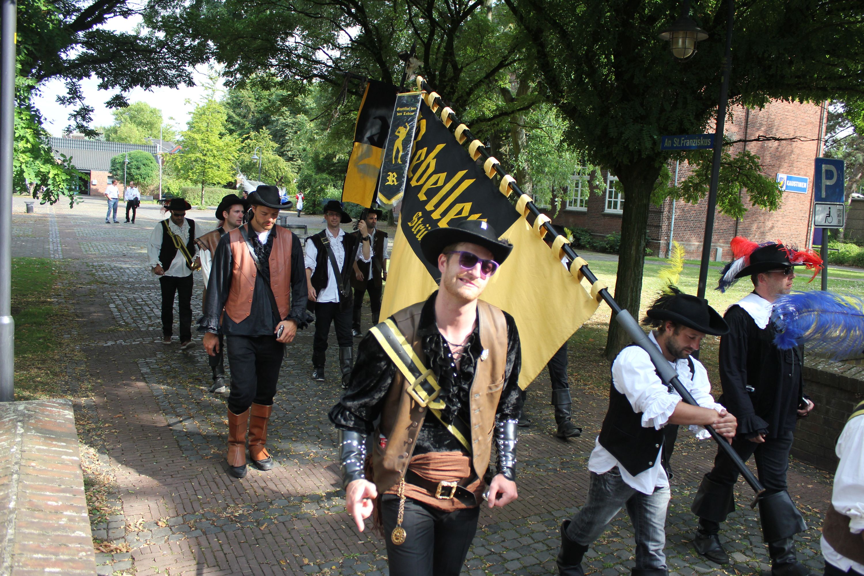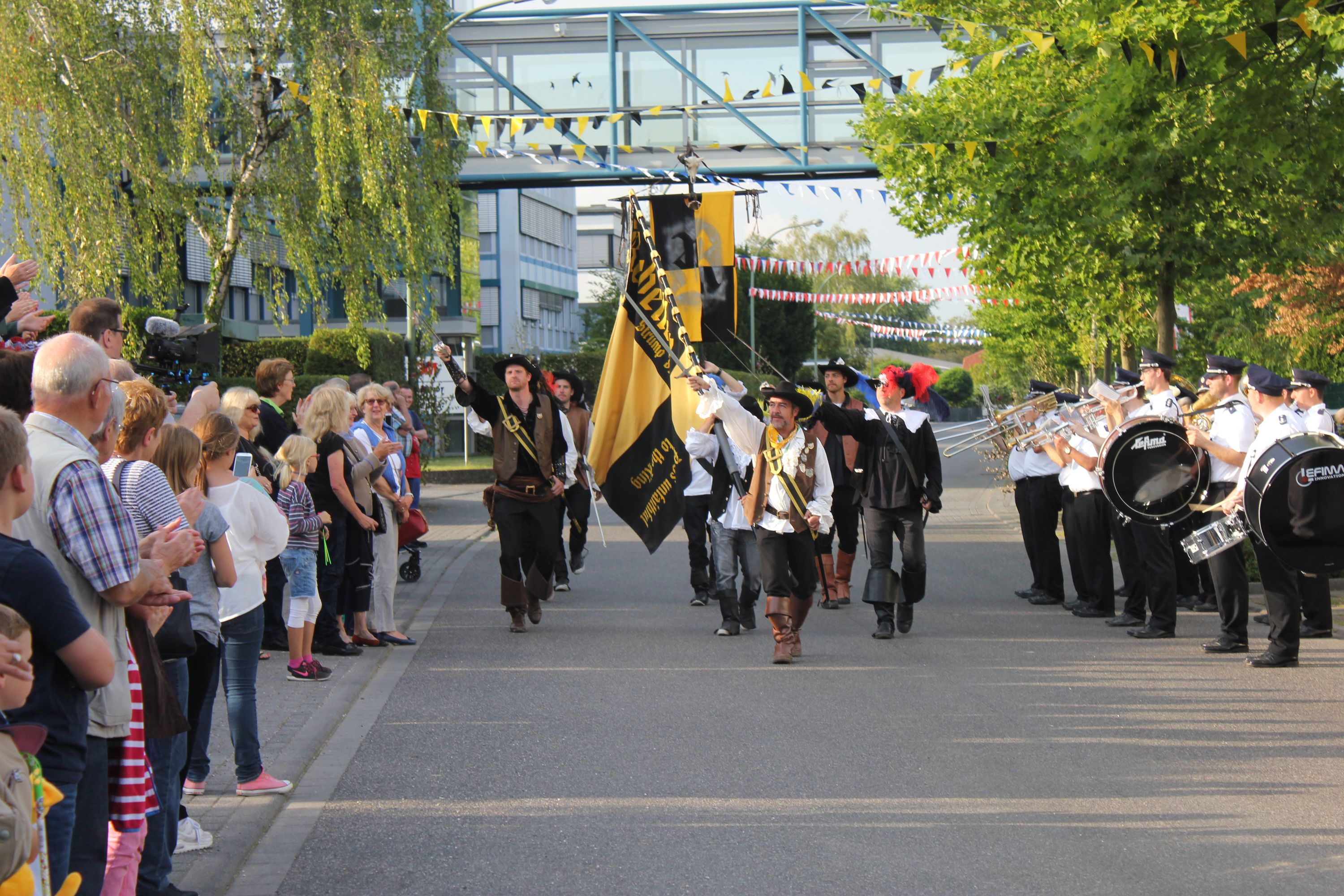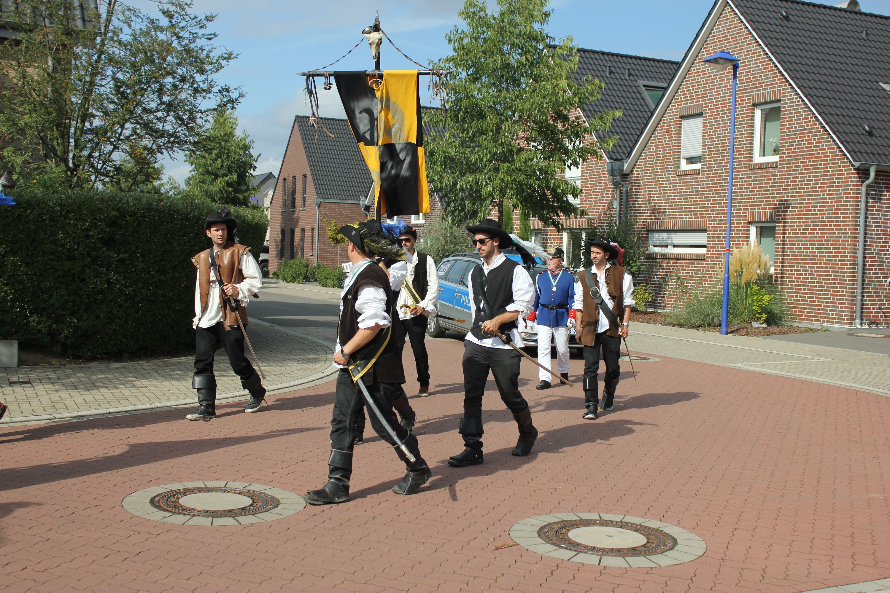 Wappen, Bühnenbild, Schützenbaum, Fahnen, Standarte