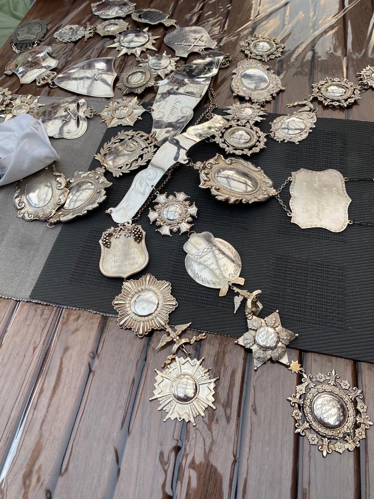 Wappen, Bühnenbild, Schützenbaum, Fahnen, Standarte