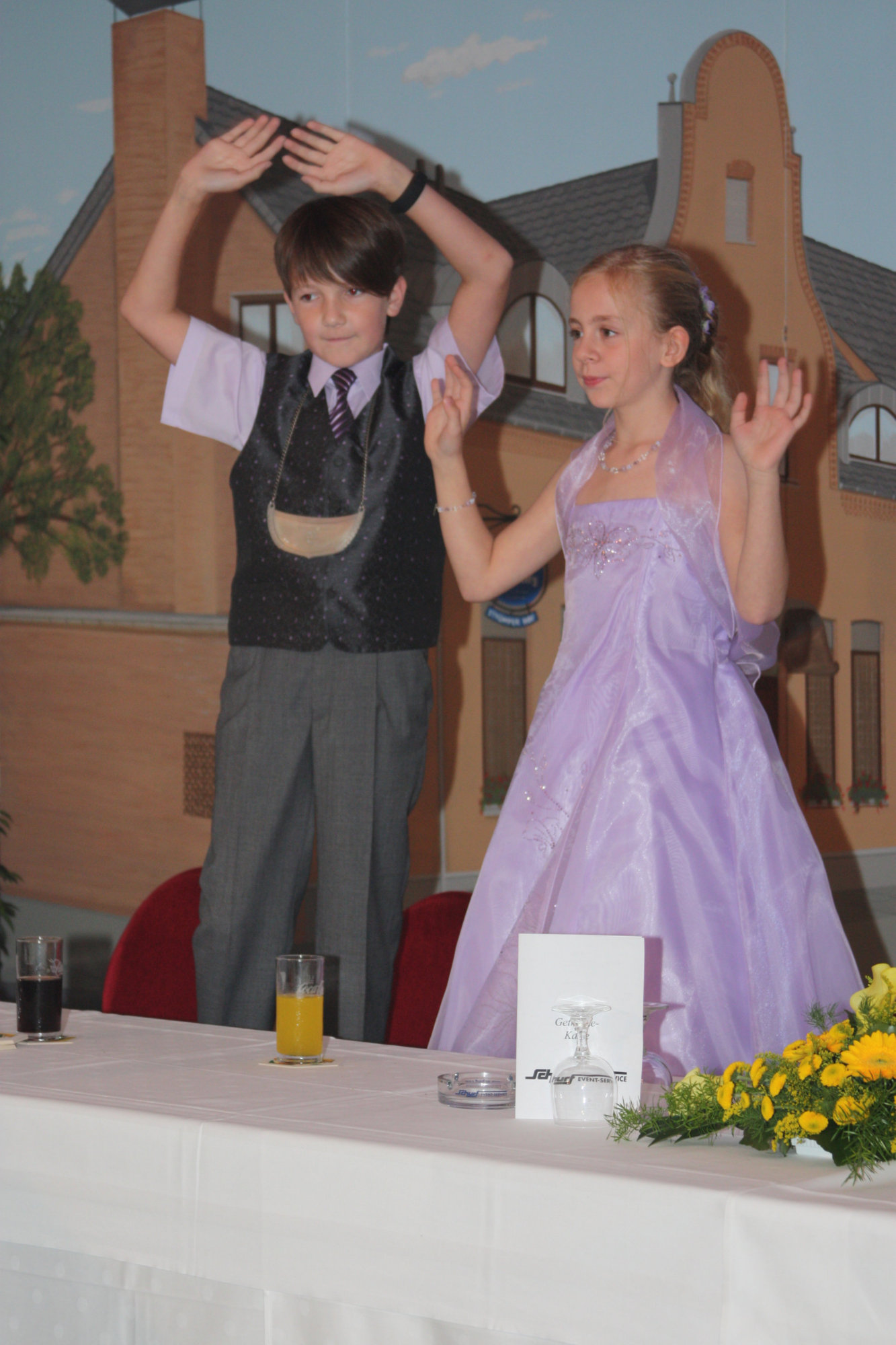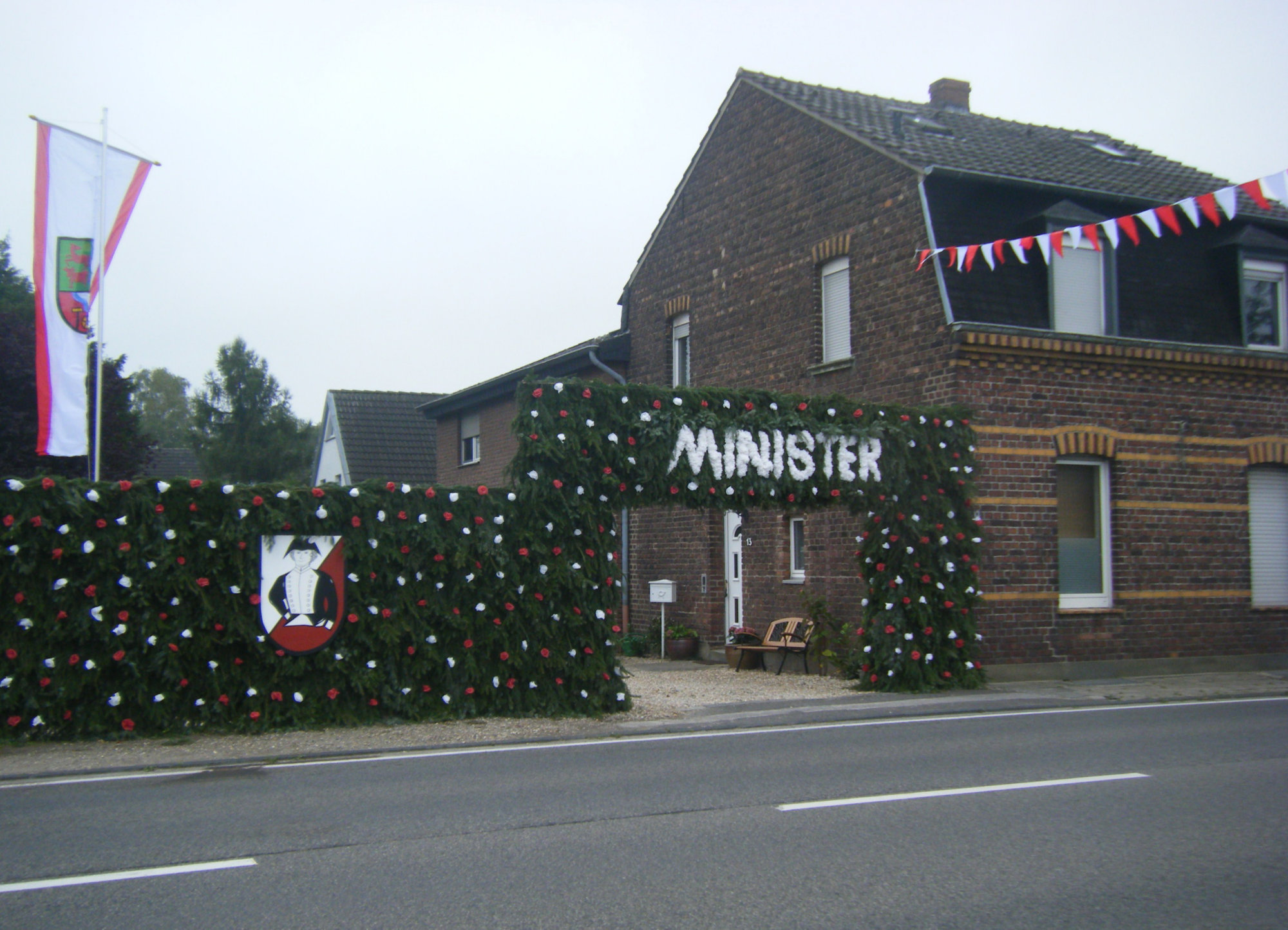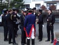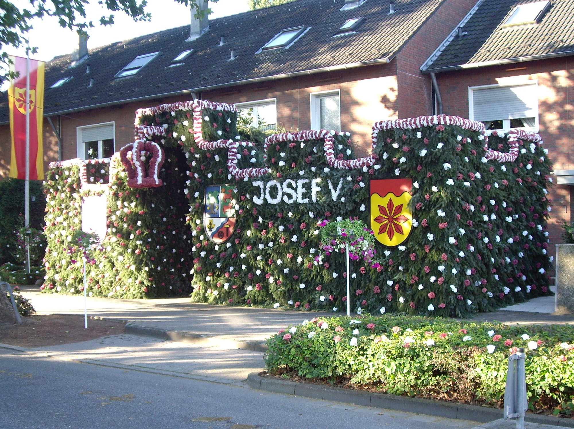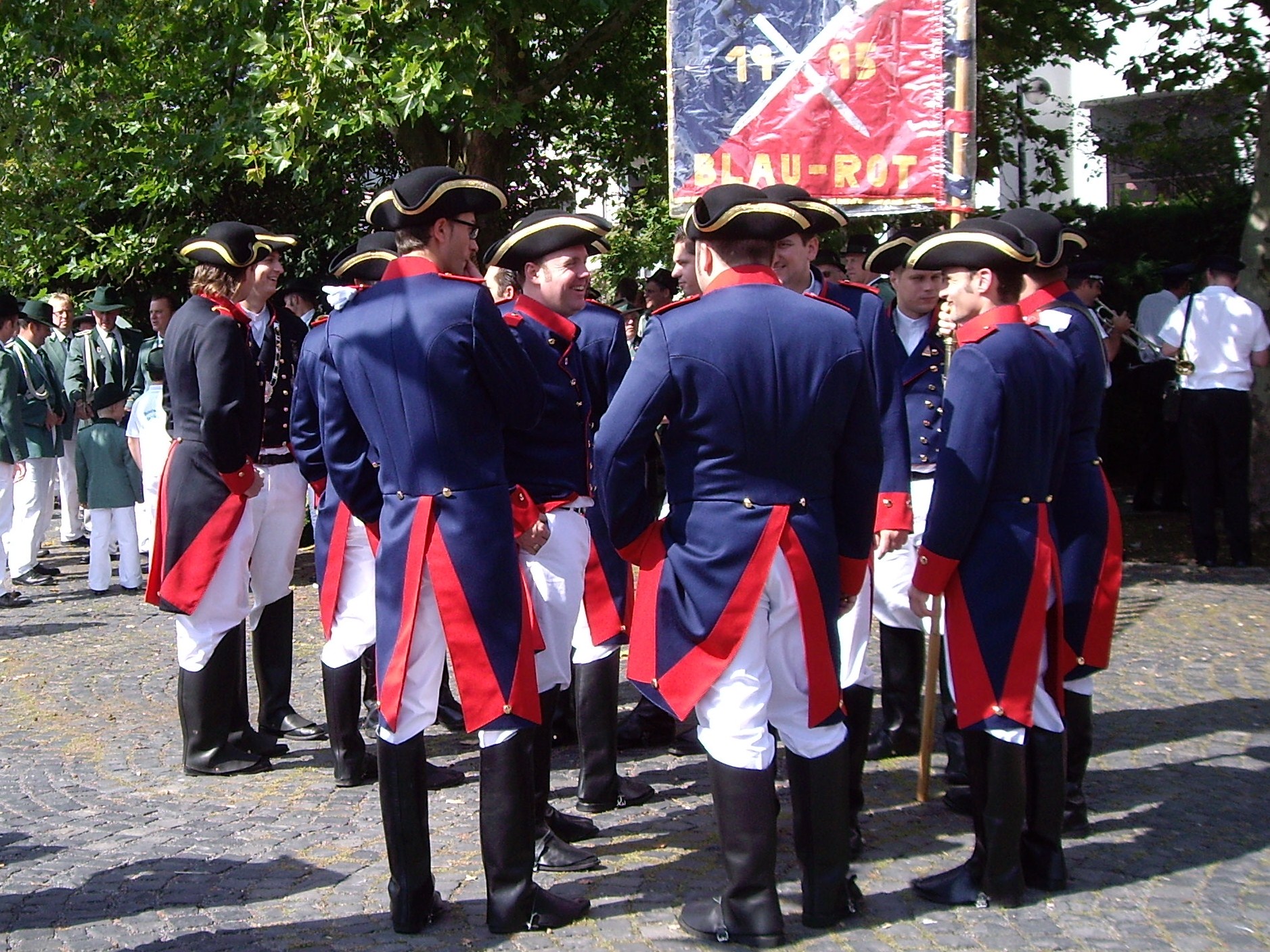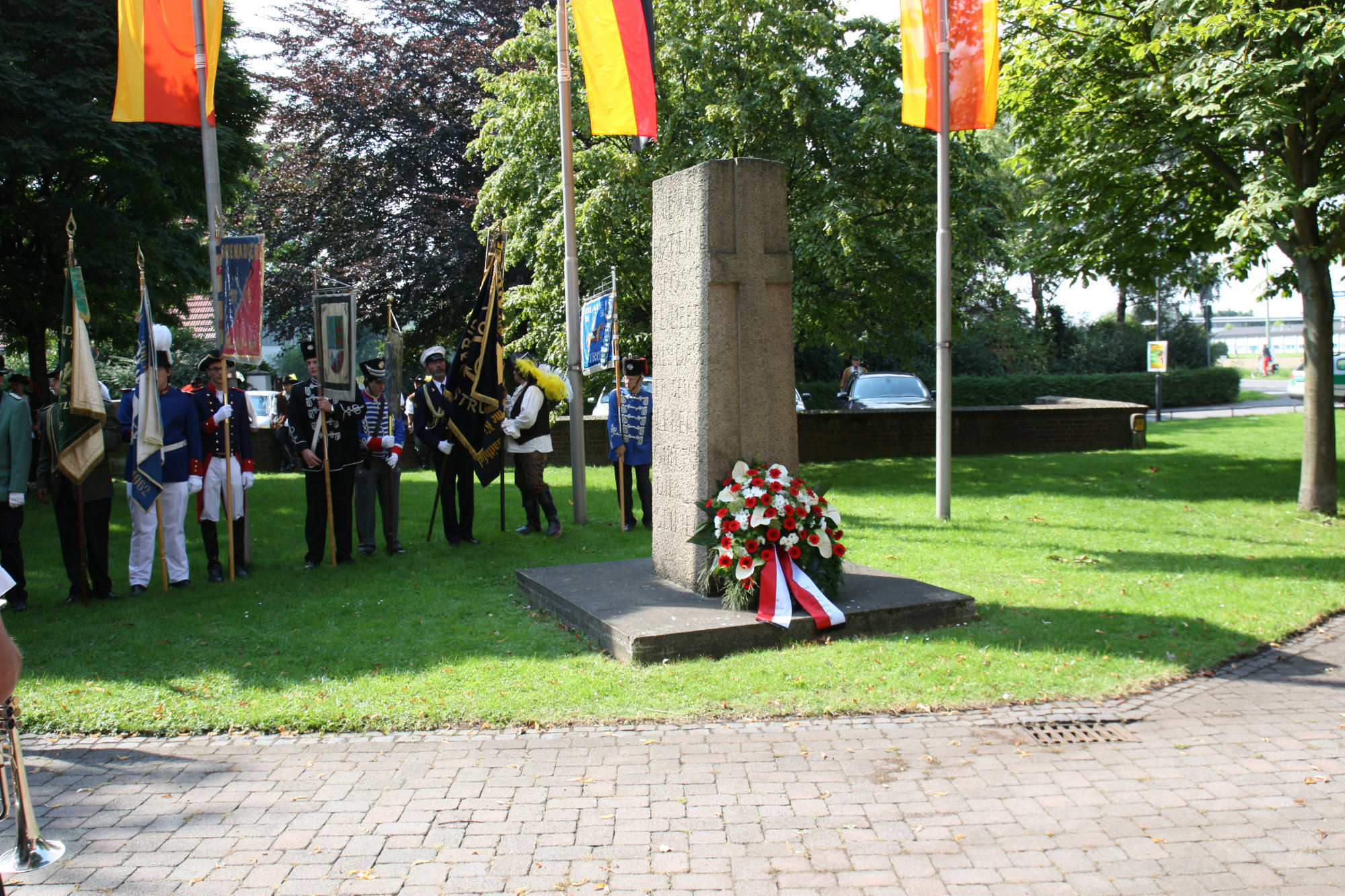 unten v.l.: Mundschenk Michael Grimm, Jungschützenkönigspaar Dominik Blömer und Linda Pukropski, Hofdamen Marie Giesler, Jayde Watton, Sophie Webers und Maureen Paas, Kinderprinzenpaar Linus Debüser und Sofia Steinfort, Standartenträger Maximilian Crieé
