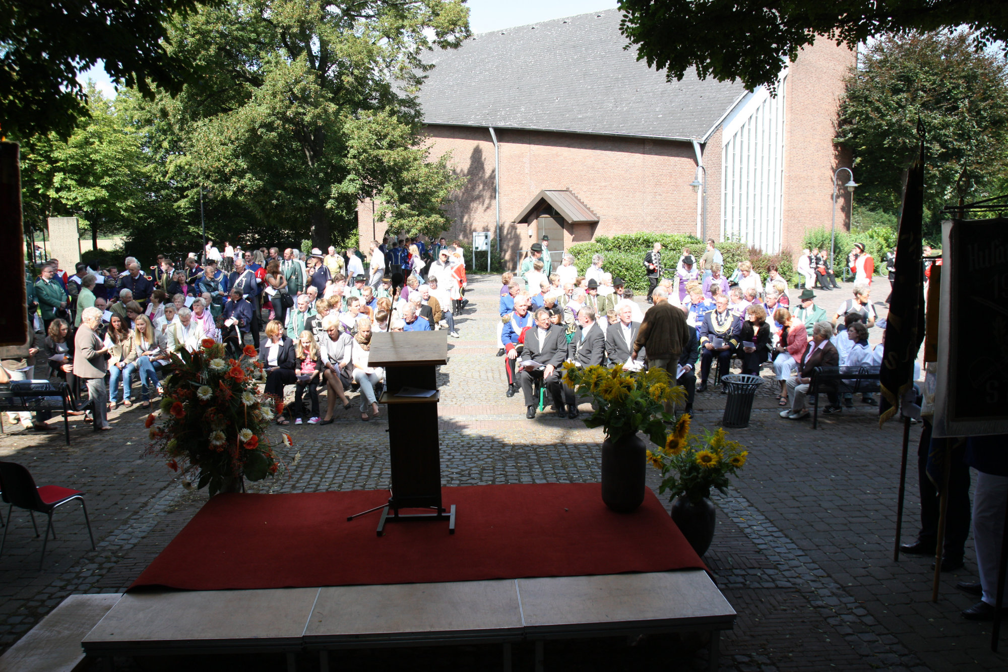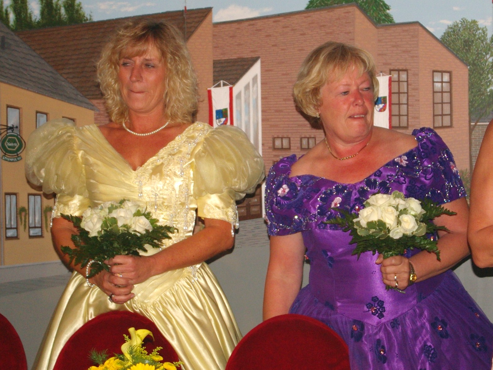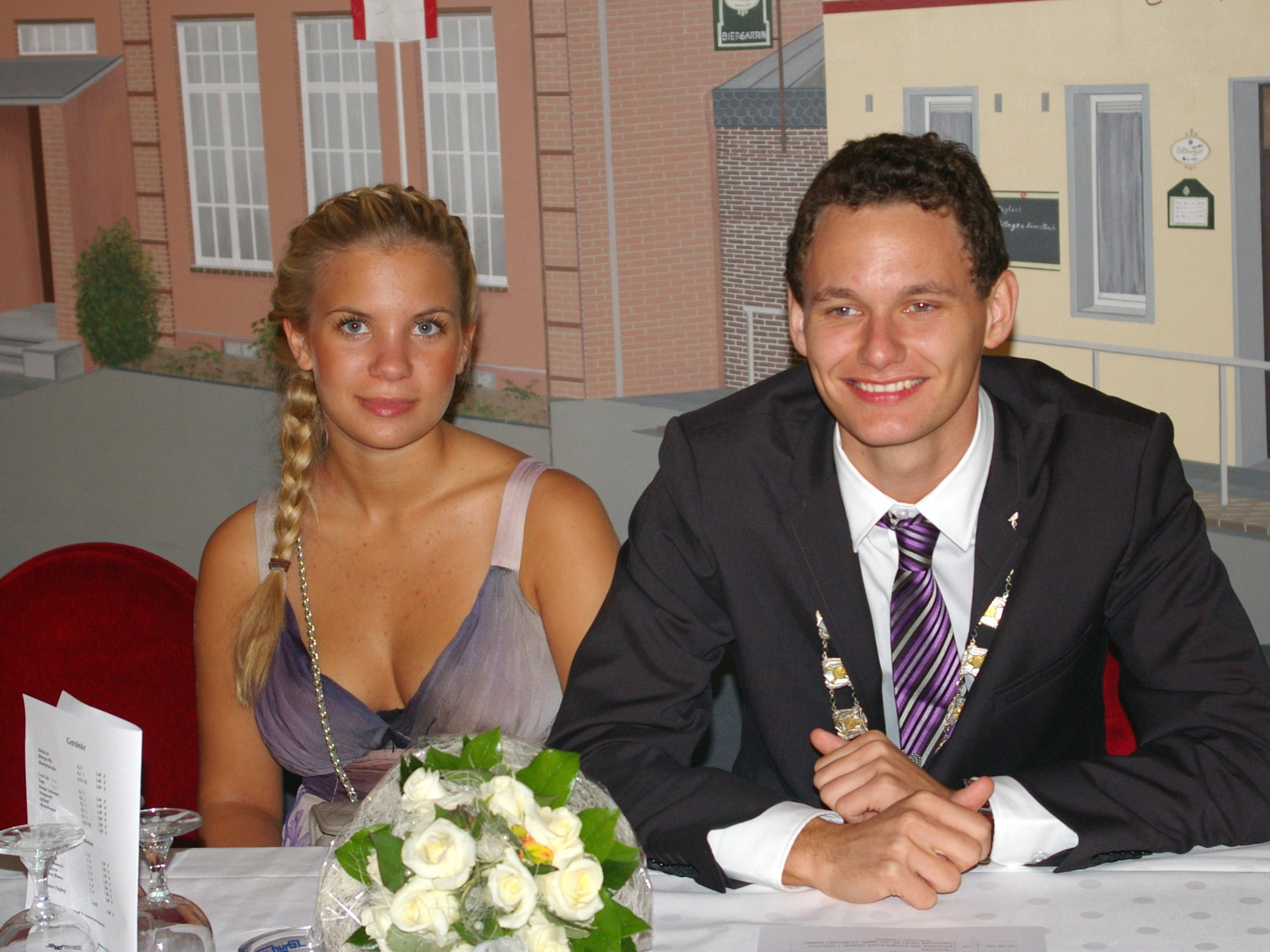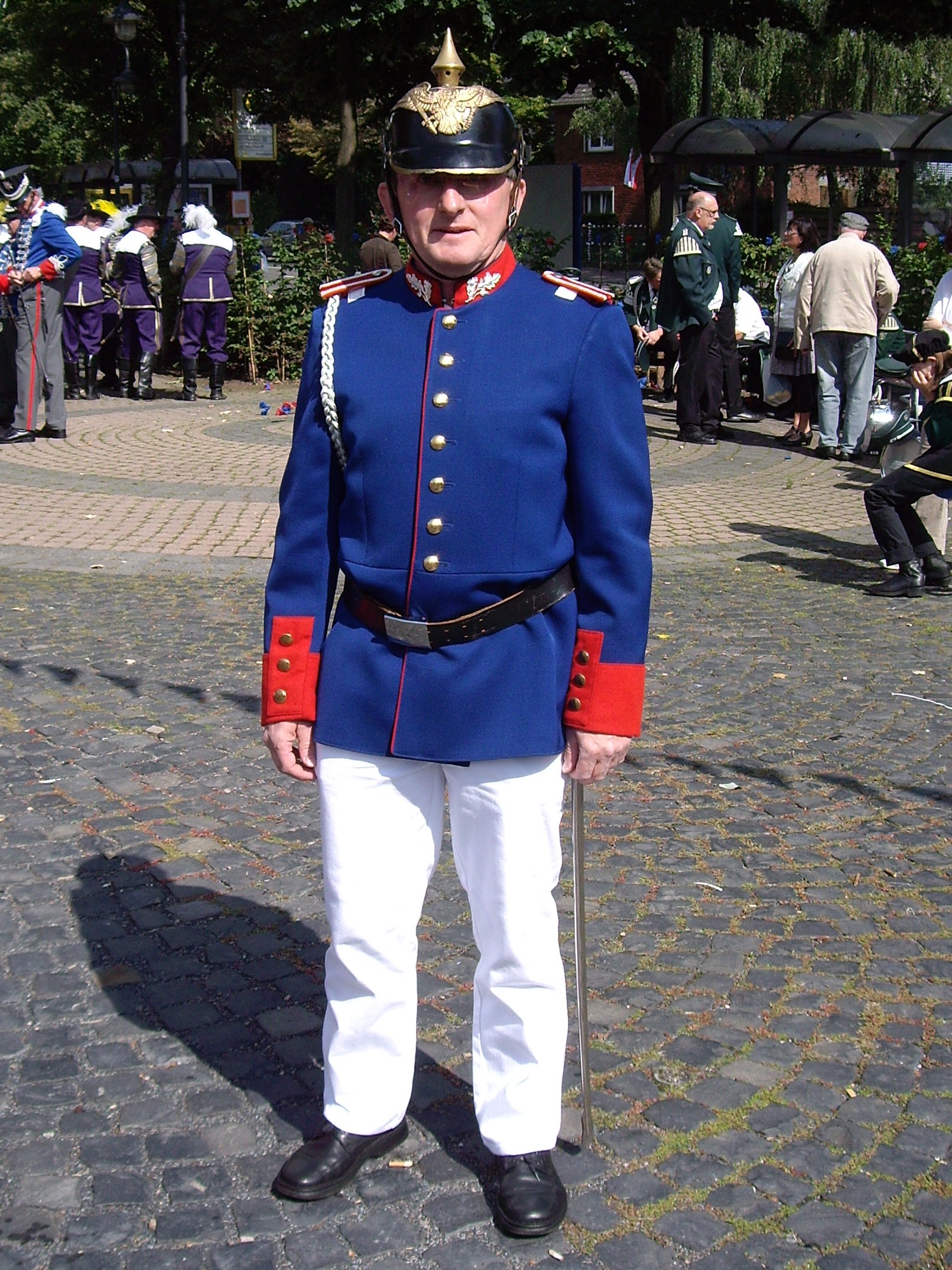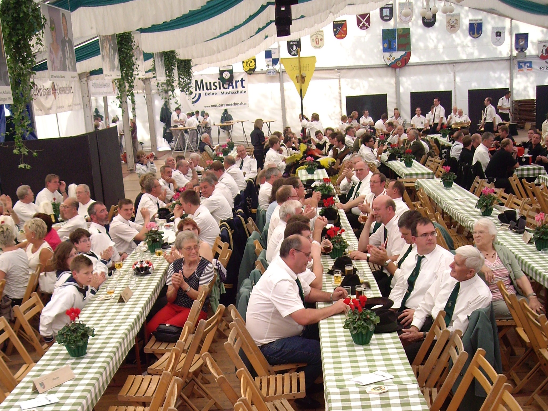 unten v.l.: Mundschenk Michael Grimm, Jungschützenkönigspaar Dominik Blömer und Linda Pukropski, Hofdamen Marie Giesler, Jayde Watton, Sophie Webers und Maureen Paas, Kinderprinzenpaar Linus Debüser und Sofia Steinfort, Standartenträger Maximilian Crieé
