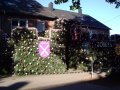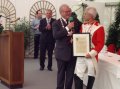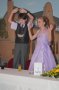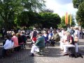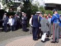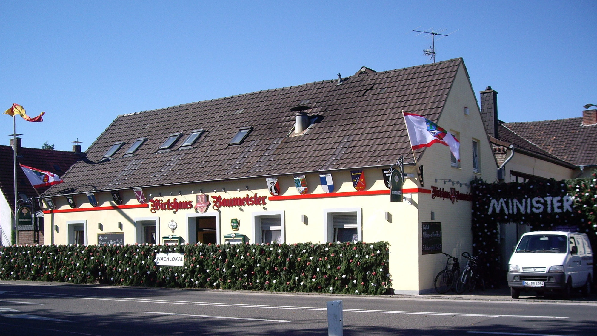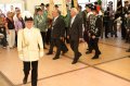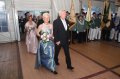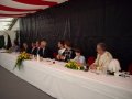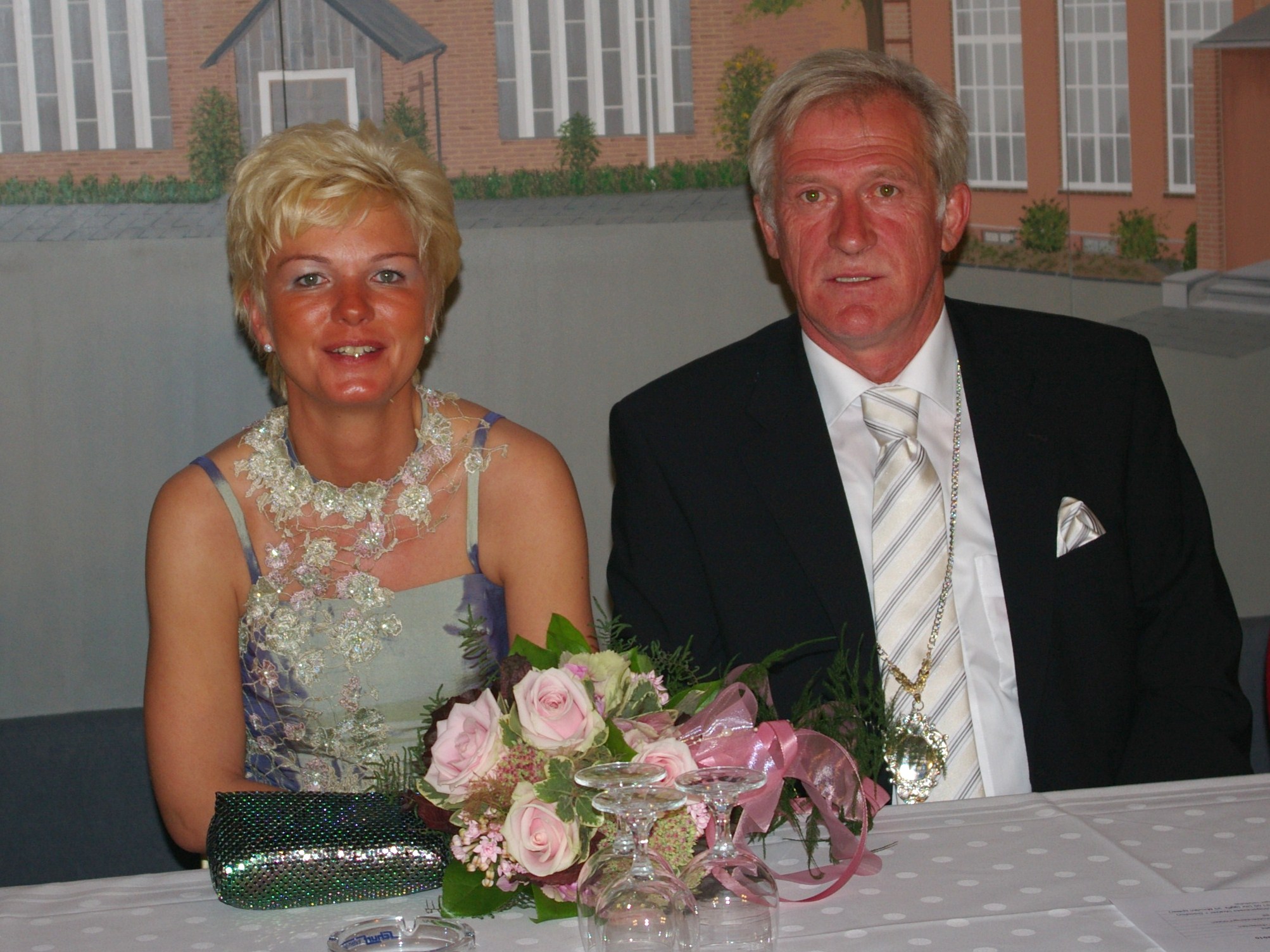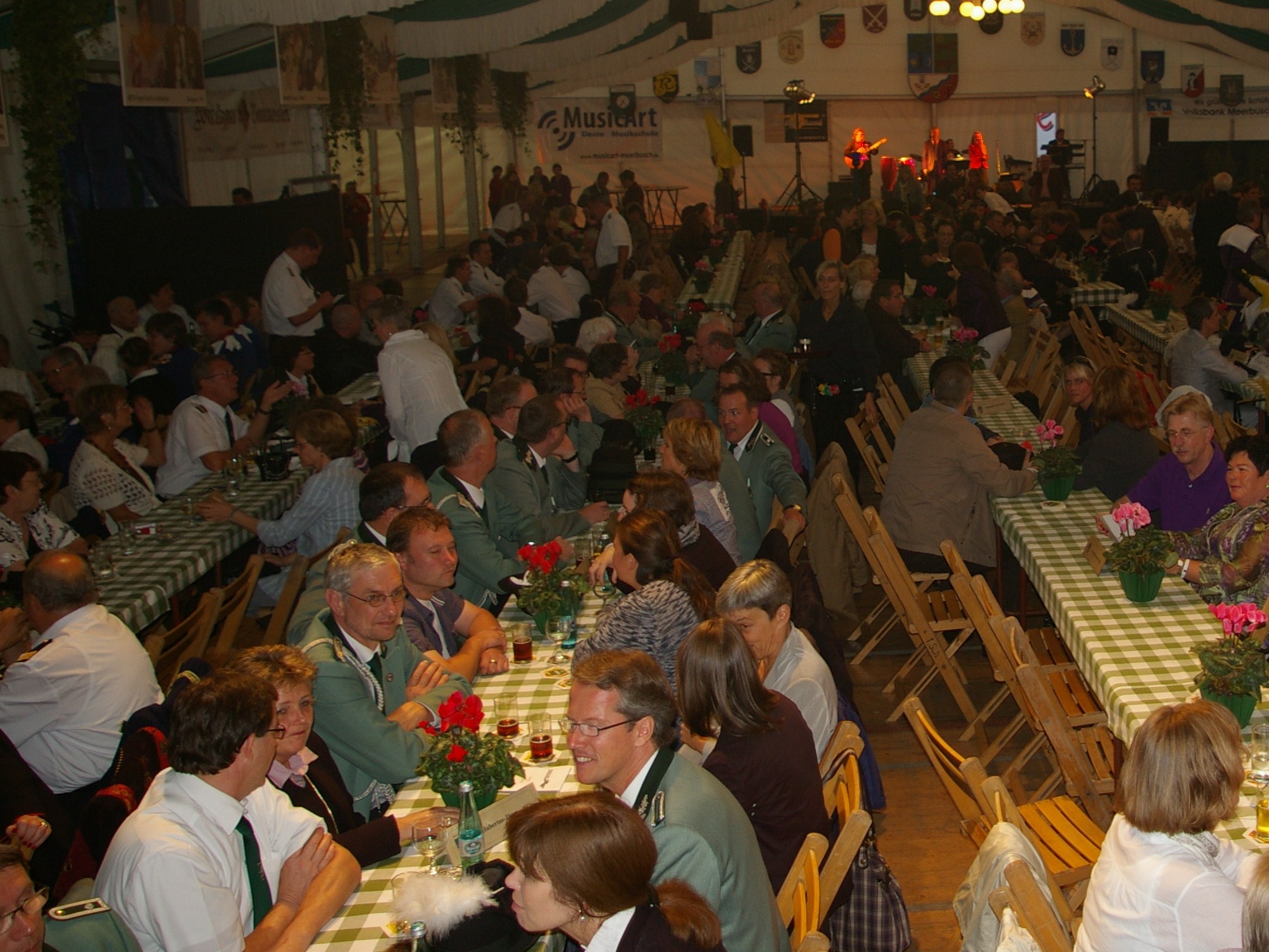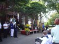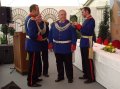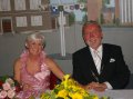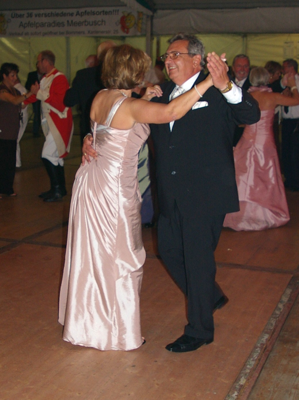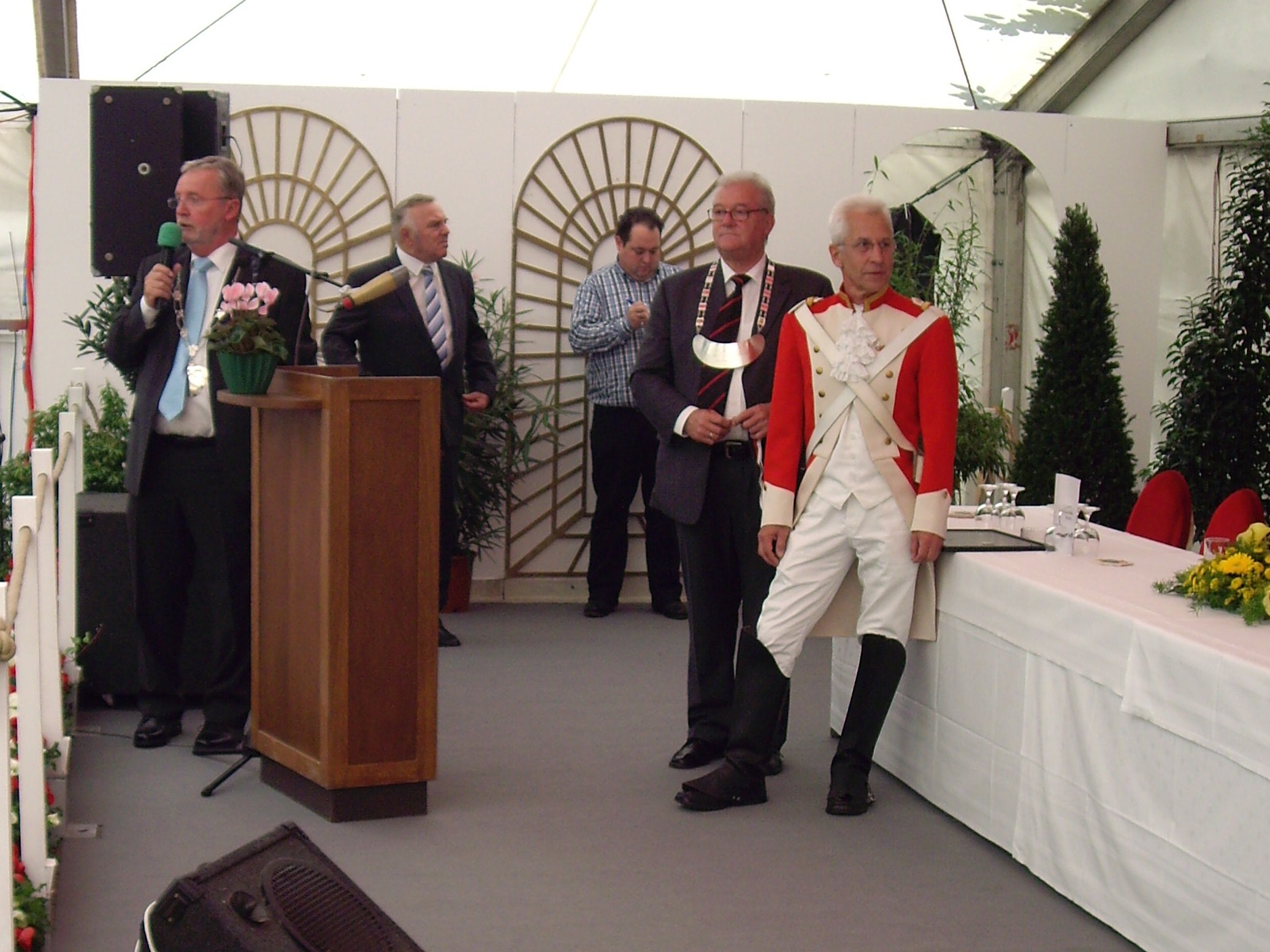 bei der Serenade vor der Königsburgoben v.l.: Präsident Karl-Heinz Rütten, Ministerpaar Christine und Matthias Vieten, Königspaar Josef und Marlene Arts, Ministerpaar Claudia Sparla und Herbert Baumeister
