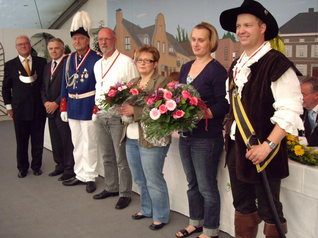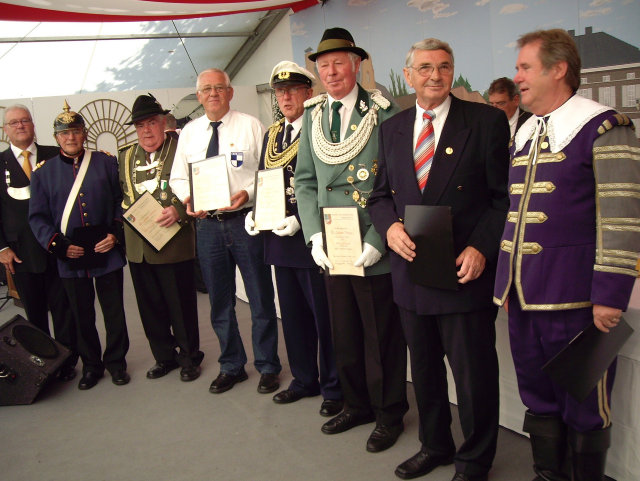 Ehrungen des Vereins durch den Präsidenten Karl-Heinz Rütten (links) an:von rechts: Stefan Deußen, Christine Deußen, Ricarda Roßbruch, Alfred Füssel, Wolfgang Möller = Orden für "besondere Verdienste" und Bernhard Fucken = Auszeichnung als Ehrenmitglied