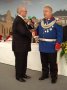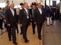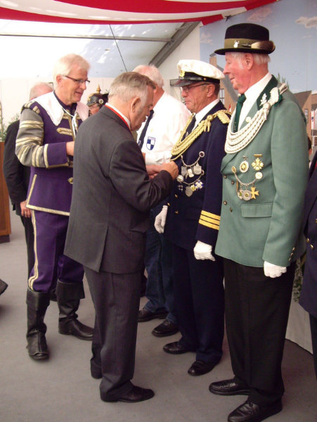 der langjährige Spieß des Regiments Georg Ziebarth (mitte) wird zum Ehrenspieß des Regiments ernannt und erhält die Plakette als neues Ehrenmitgliedlinks: General Franz Nelsen, rechts: Präsident Karl-Heinz Rütten